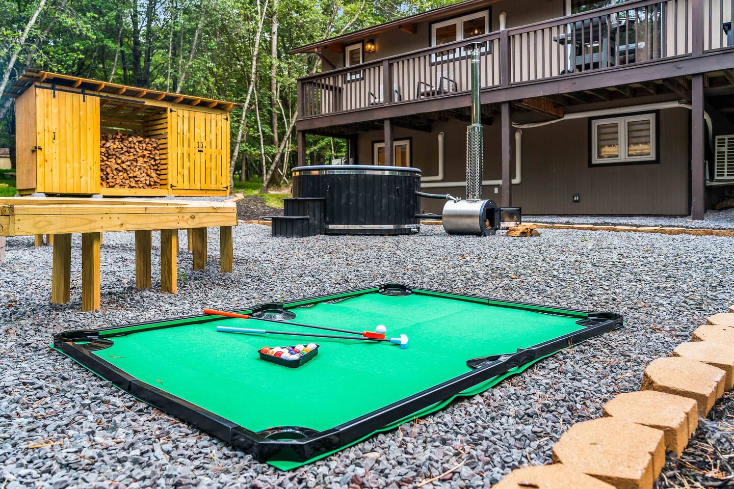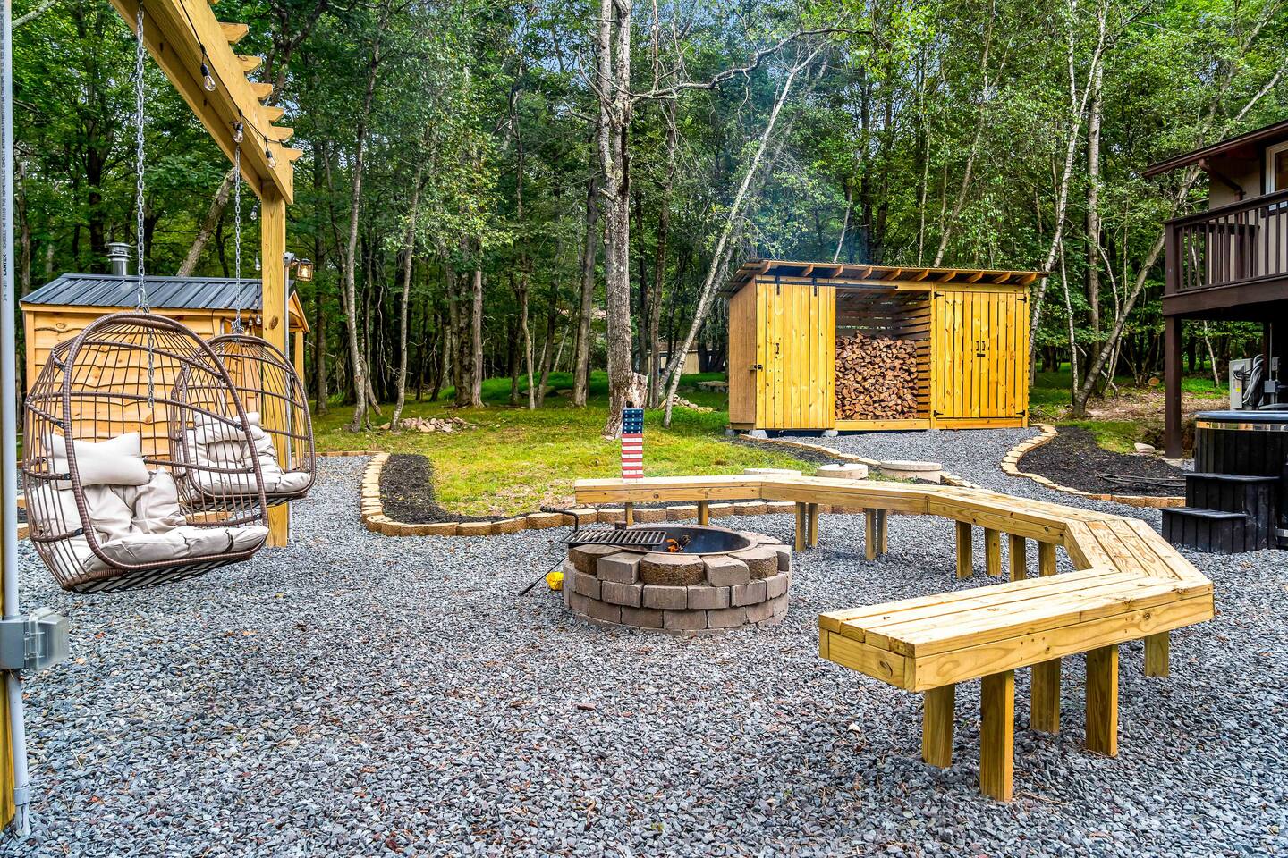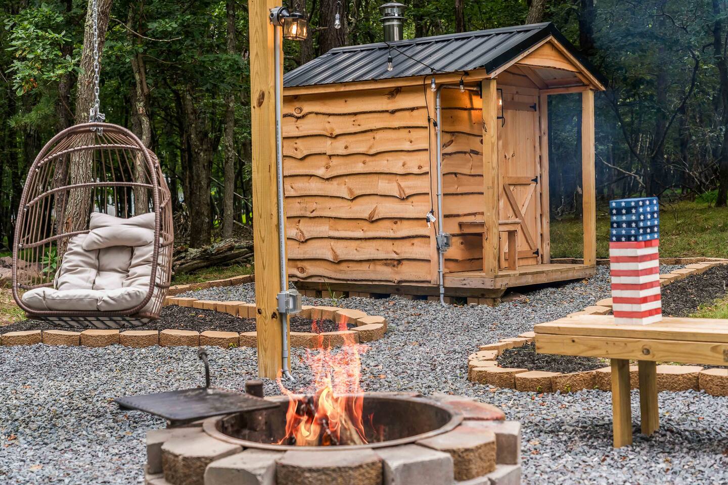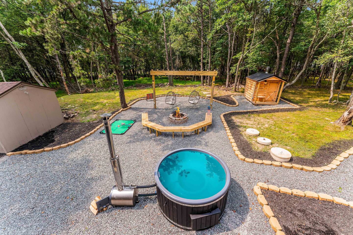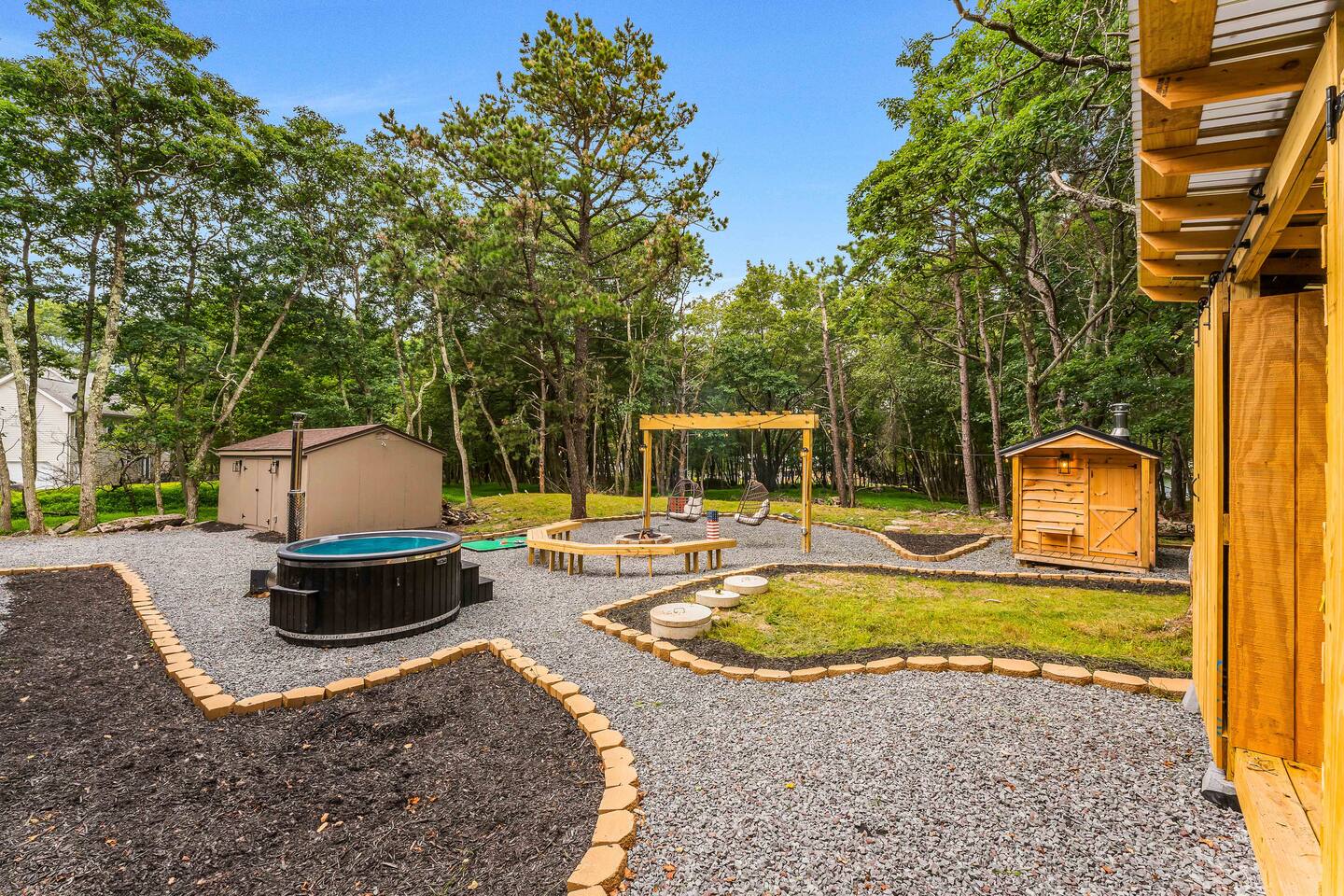 Escape to our 4BR 2BA Pocono Heaven where rustic warmth meets modern style—sleeps 9 in comfort. Gather in the open-concept living space with a cozy pellet stove, cook in the stylish kitchen & dine together with ease. Outdoors, enjoy a deck with BBQ and gas fire pit, plus a backyard oasis with swings & Bench around a fire pit, games, wood-burning hot tub, and sauna. Close to top Pocono attractions. Perfect blend of relaxation and adventure. Near Jack Frost Ski Resort, minutes from Pocono Raceway.