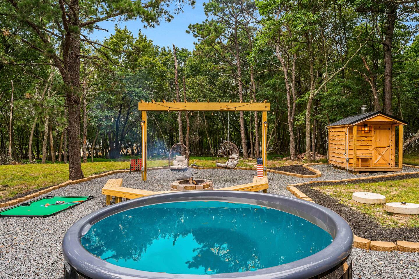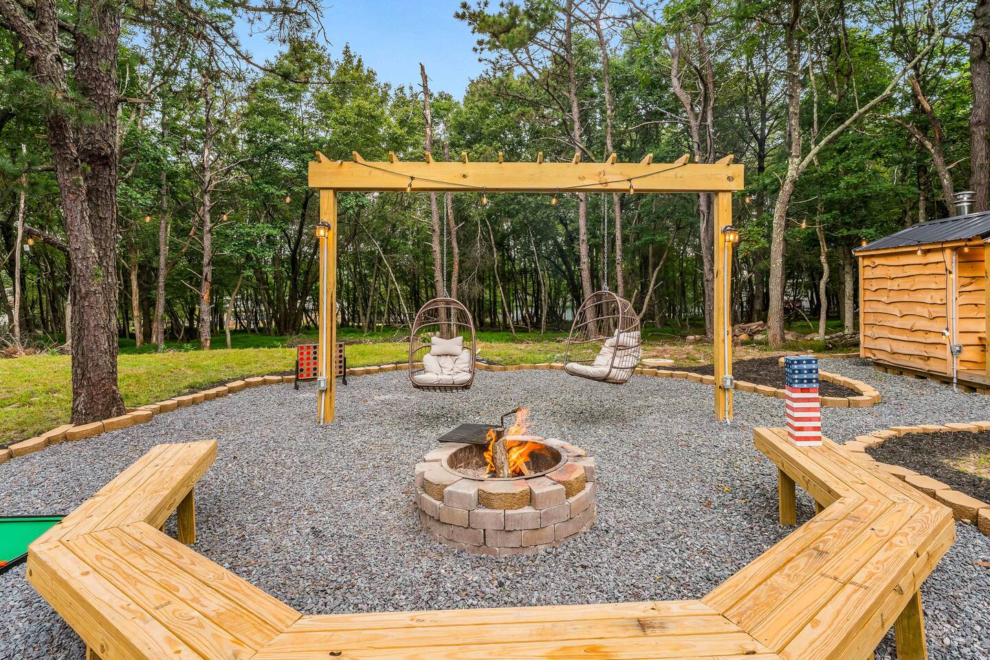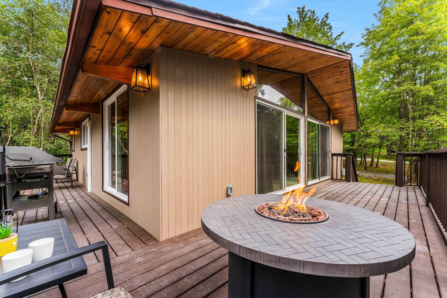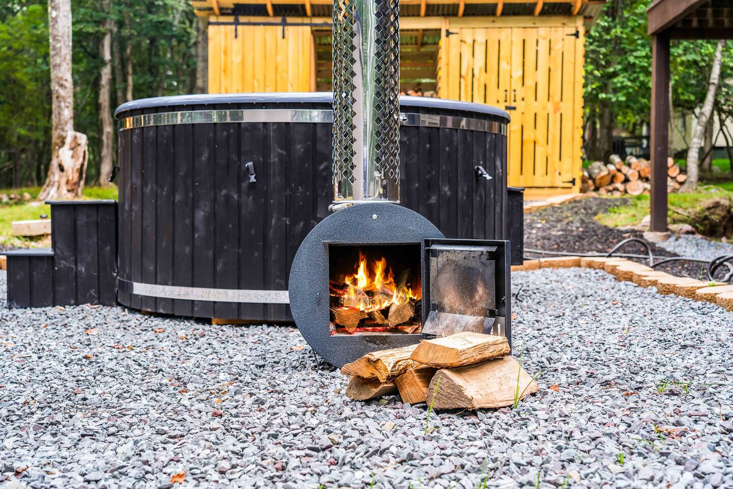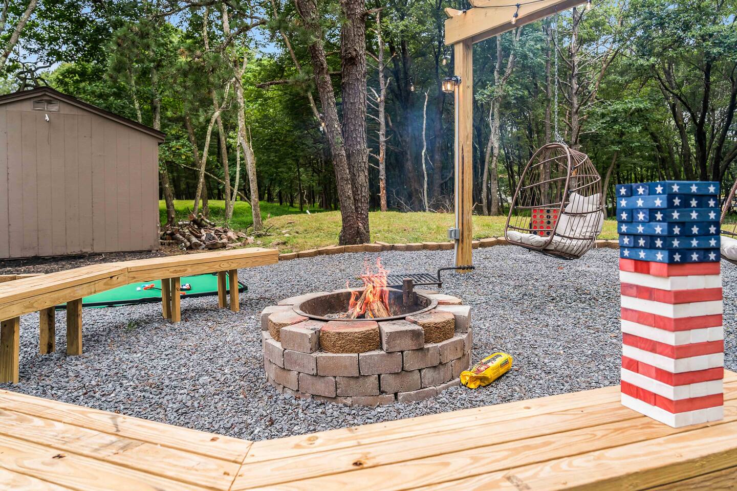 Escape to our 4BR 2BA Pocono Heaven where rustic warmth meets modern style—sleeps 9 in comfort. Gather in the open-concept living space with a cozy pellet stove, cook in the stylish kitchen & dine together with ease. Outdoors, enjoy a deck with BBQ and gas fire pit, plus a backyard oasis with swings & Bench around a fire pit, games, wood-burning hot tub, and sauna. Close to top Pocono attractions. Perfect blend of relaxation and adventure. Near Jack Frost Ski Resort, minutes from Pocono Raceway.
