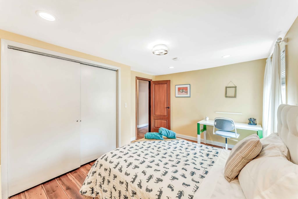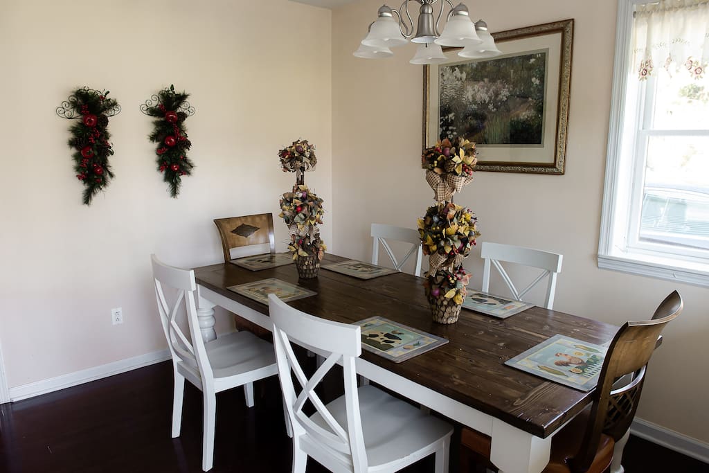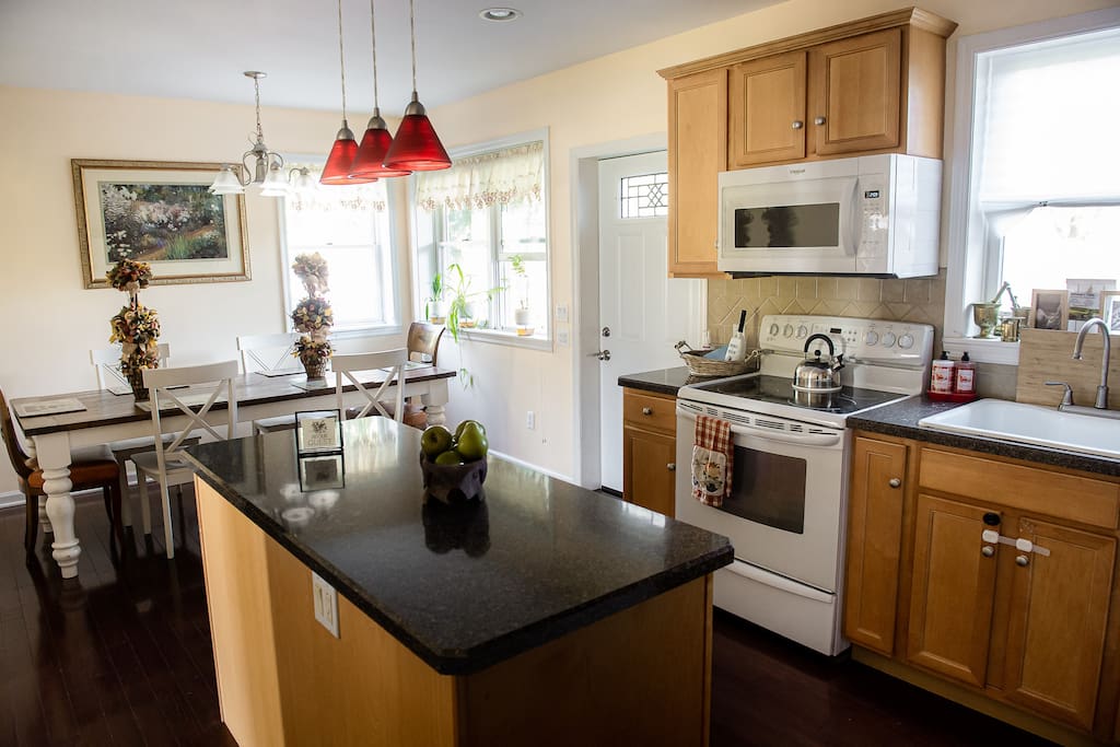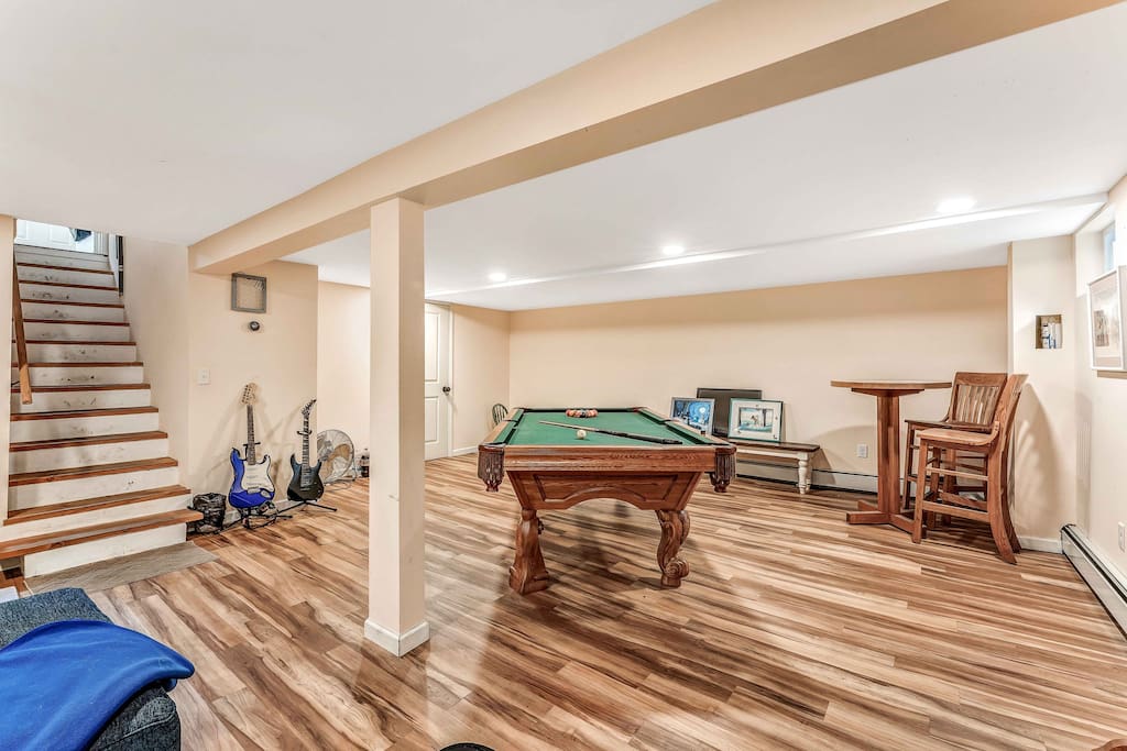 House Description: Main Level: (Kitchen, Full Bathroom with Shower, Dinning Room, Living Room, Office). Upper Level: That's were 4 bedrooms are located. Master Bedroom with king bed and lots of closet space. 2nd Bedroom with single bed, that unfolds to another single bed if needed and closet. 3rd Bedroom with Full Size Bed and closet. 4rd Bedroom with Closet. Basement: Entertainment area with pool table, sitting area, lots of board games and laundry room. (You may see 2/3 locked up owners closet through out the house) Outside: Front porch with a bench perfect for morning coffee and relaxation. Backyard: Lots of space for relax and entertainment. Seasonal Pool (Open from Memorial Day to the end of September - weather permissible so if you're booking with us solely for the purpose of using the pool, please check with us first if available) lounge chairs, outdoor furniture, dinning table under the patio and BBQ, soccer field. Guests may use up to 4 parking spaces in the driveway. Please note that street parking is not permitted.