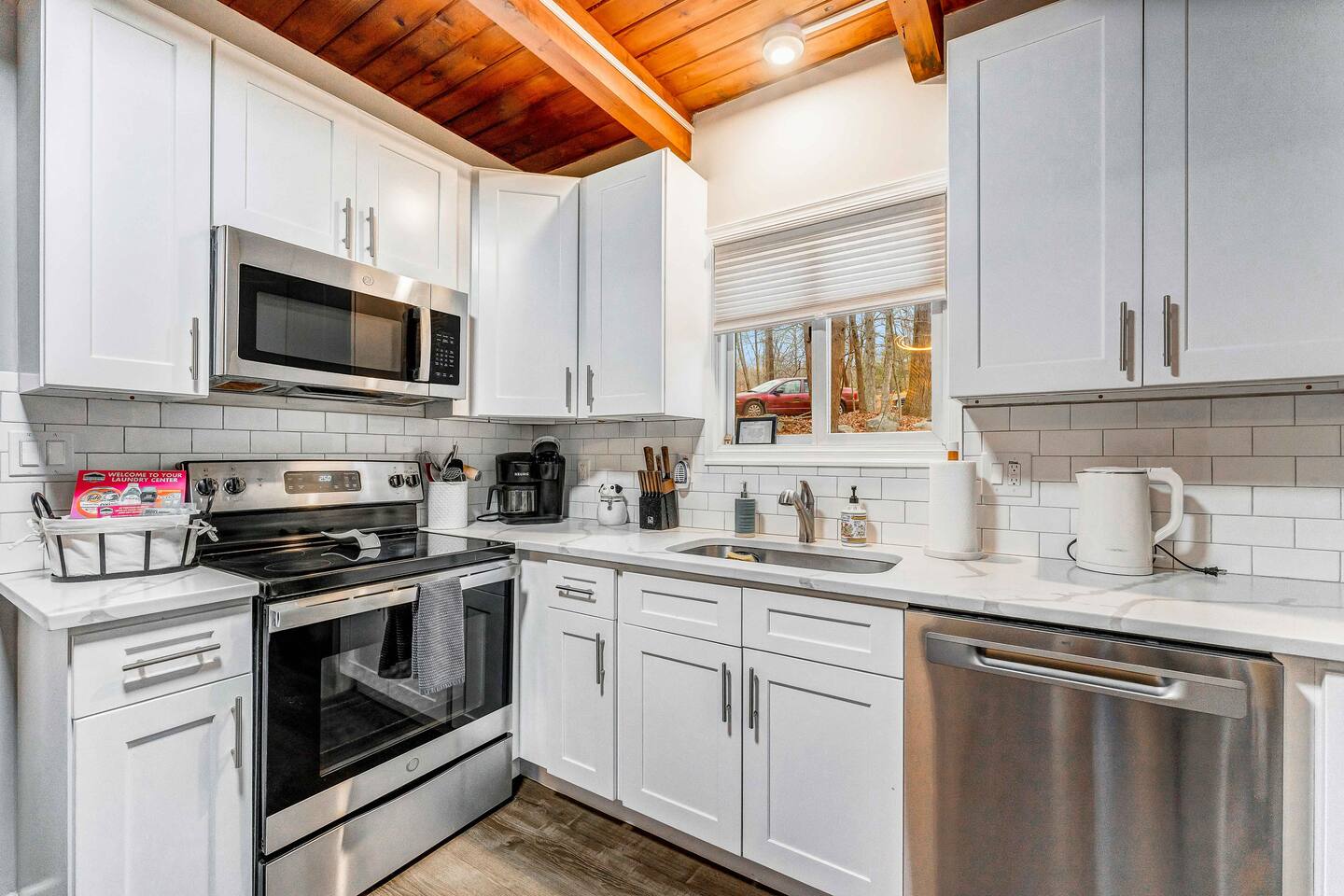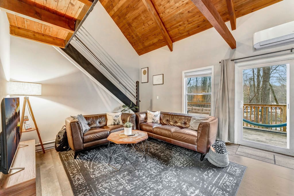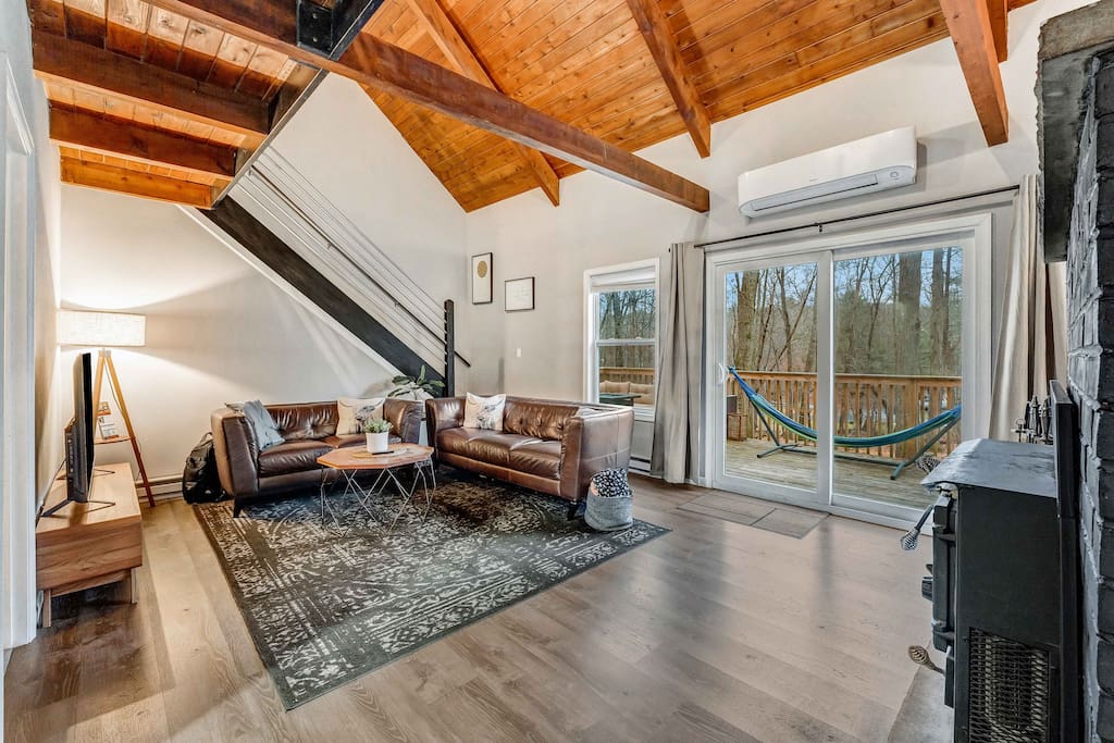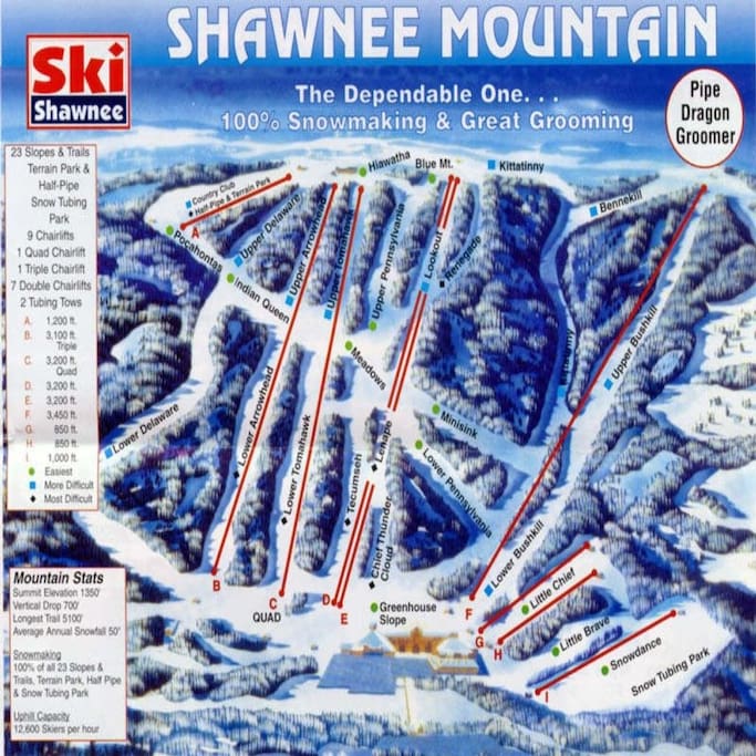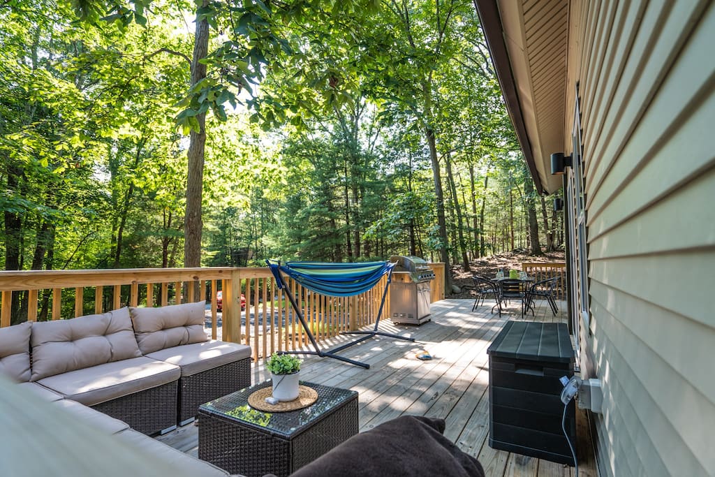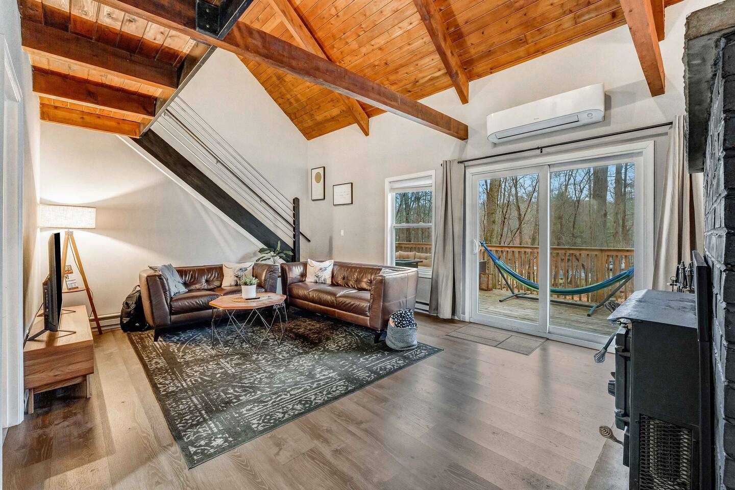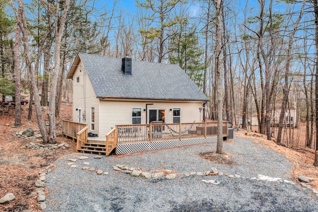 This is a True Mountain escape so prepare yourself to be surrounded by nature and wildlife. The roads in the last few seconds of your drive are gravel but comfortable to drive. Please note, in the winter time we recommend all wheel drive vehicle to access the property in order to get around winter storms. Price Chopper is a 24/7 Supermarket which will have an amazing selection of seafood, meats, vegetables, beer, wine and so much more. Shawnee Mountain is a short 10 minute drive for all your skiing and snowboarding needs. We have a kayaking place roughly 10-15 minutes from the house as well. Farmers Market happens every weekend as well and we will include instructions on how to access all the nearby places in our Guidebook that will be sent to you with the check in instructions.