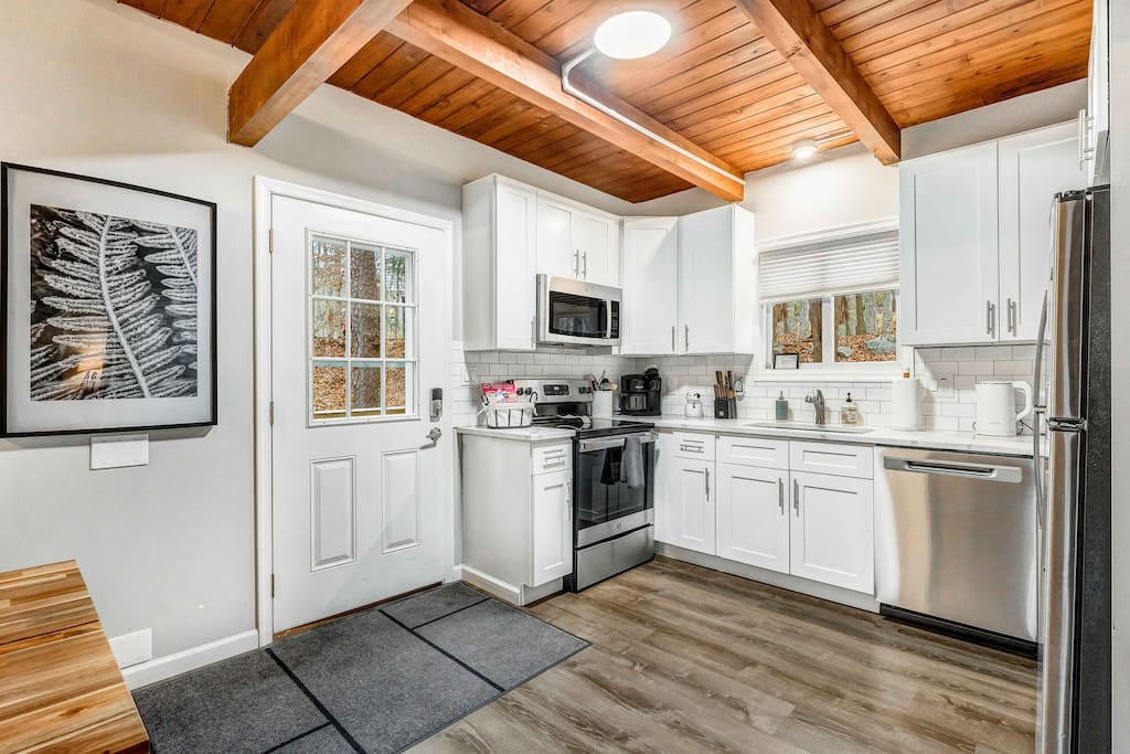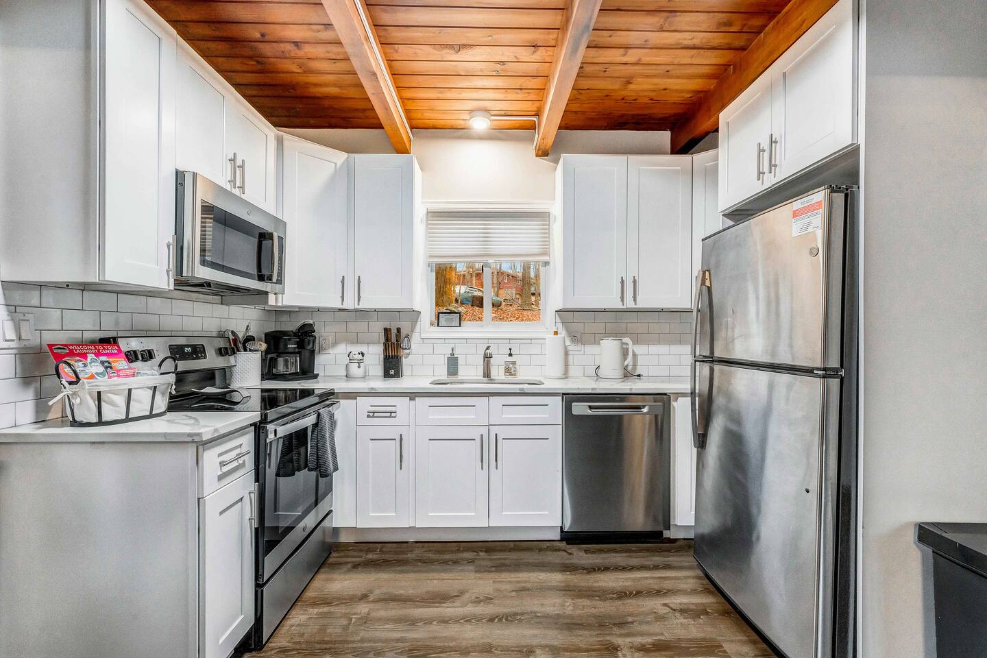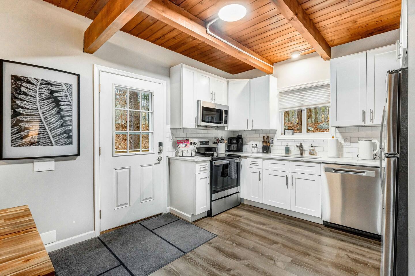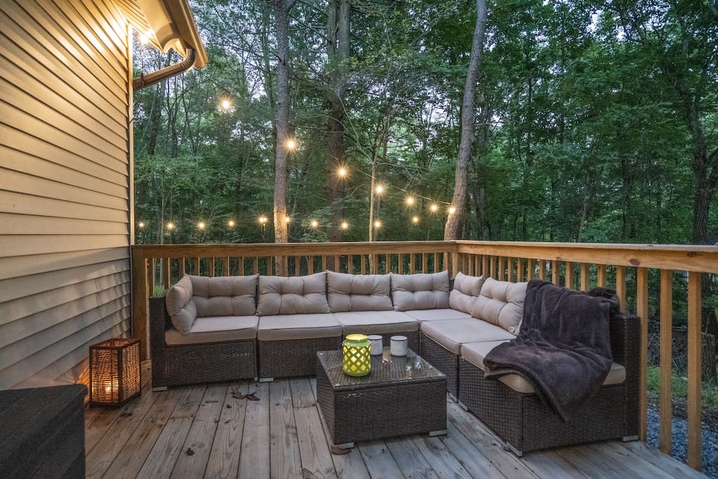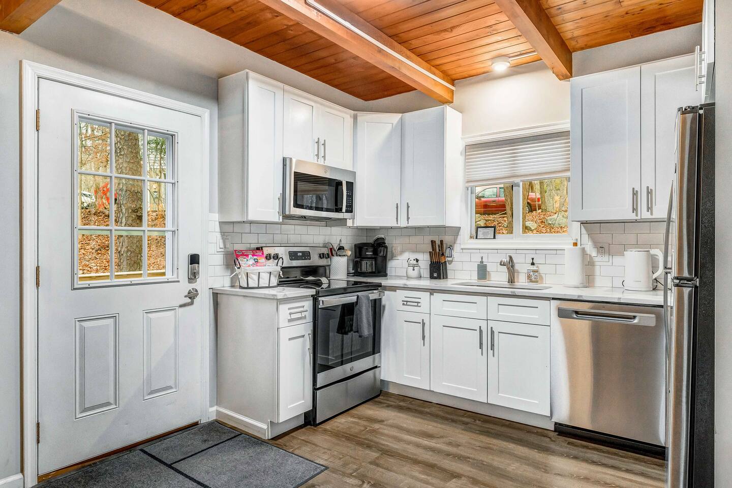 This is a True Mountain escape so prepare yourself to be surrounded by nature and wildlife. The roads in the last few seconds of your drive are gravel but comfortable to drive. Please note, in the winter time we recommend all wheel drive vehicle to access the property in order to get around winter storms. Price Chopper is a 24/7 Supermarket which will have an amazing selection of seafood, meats, vegetables, beer, wine and so much more. Shawnee Mountain is a short 10 minute drive for all your skiing and snowboarding needs. We have a kayaking place roughly 10-15 minutes from the house as well. Farmers Market happens every weekend as well and we will include instructions on how to access all the nearby places in our Guidebook that will be sent to you with the check in instructions.