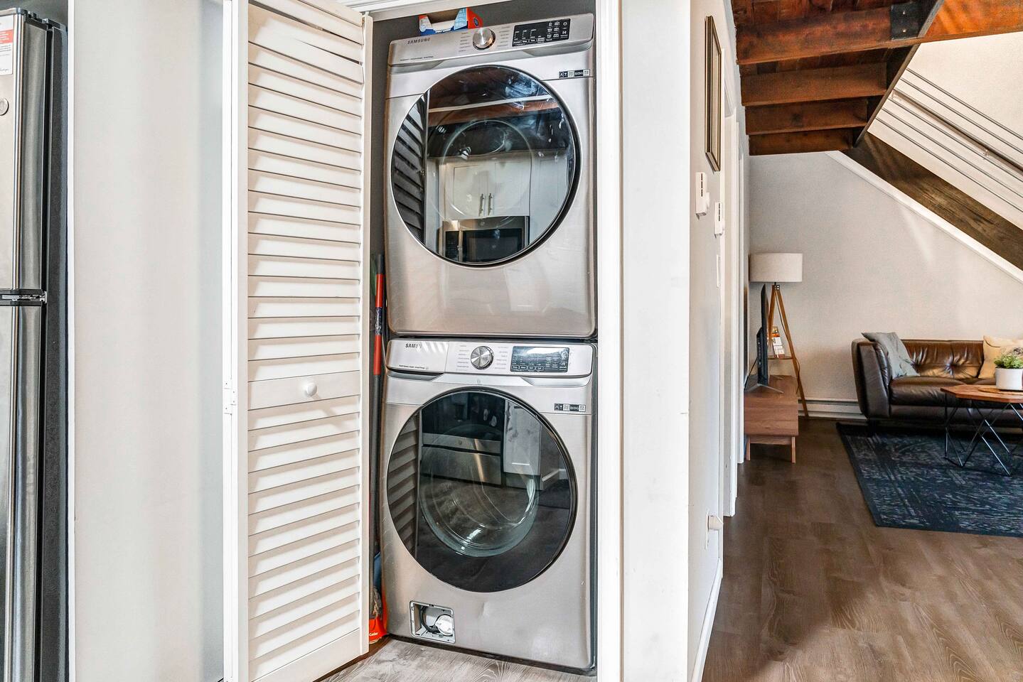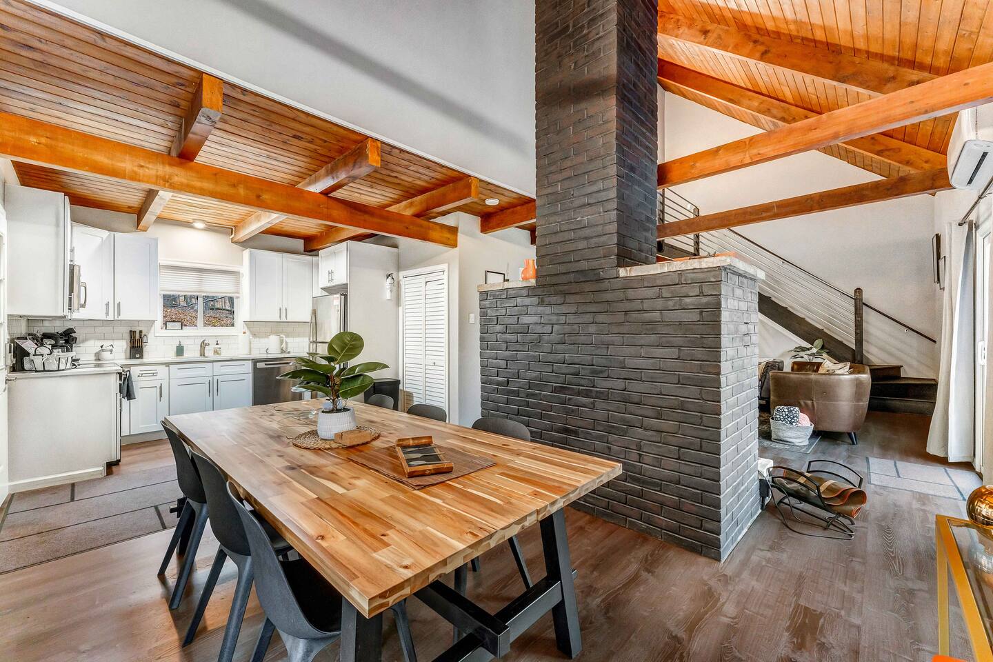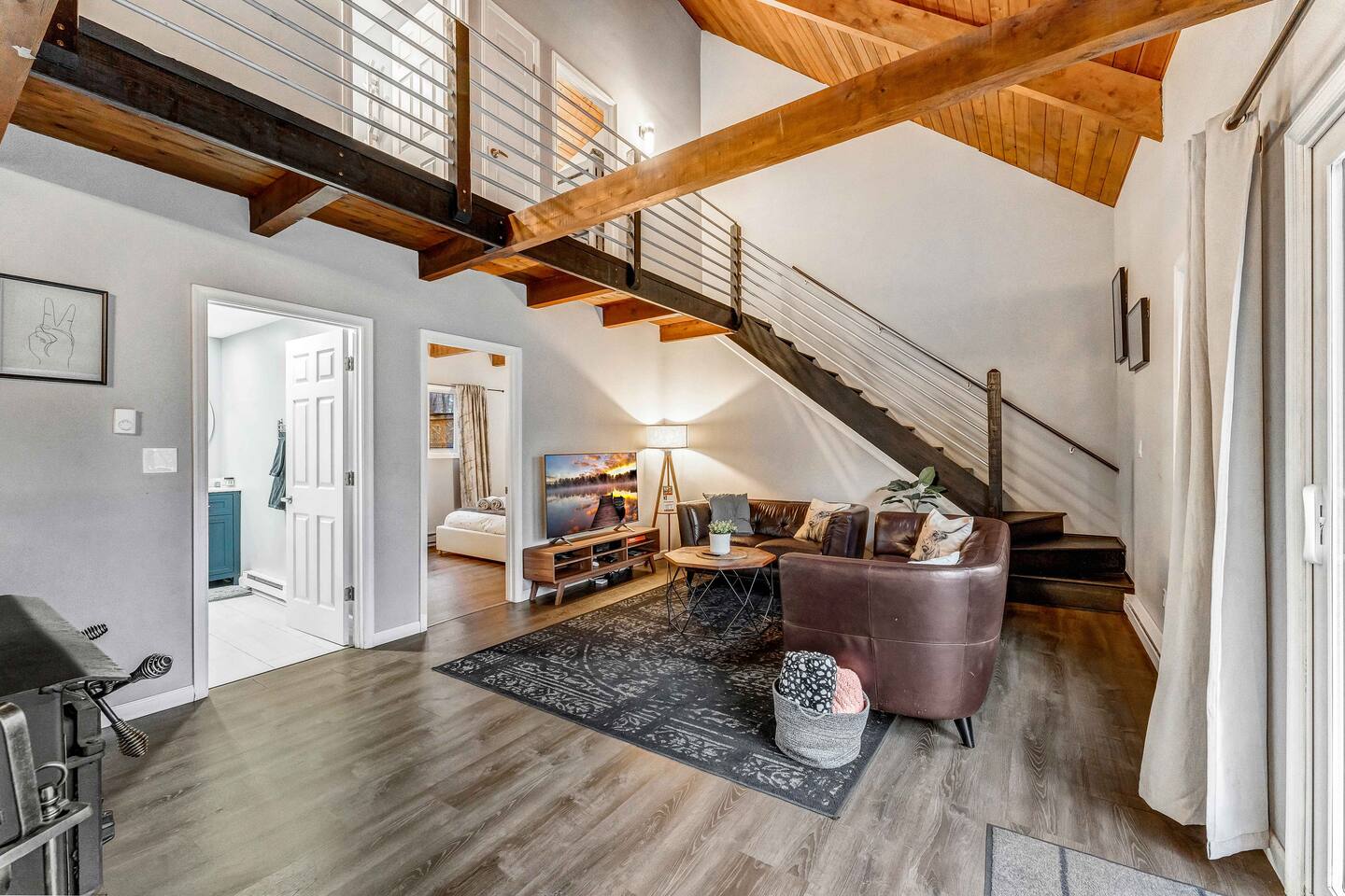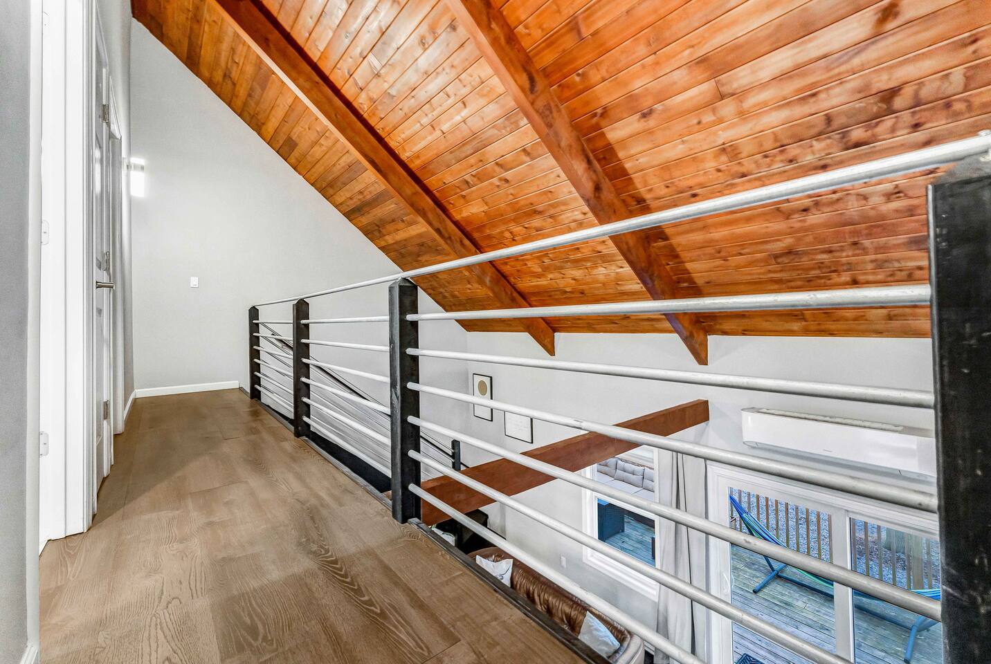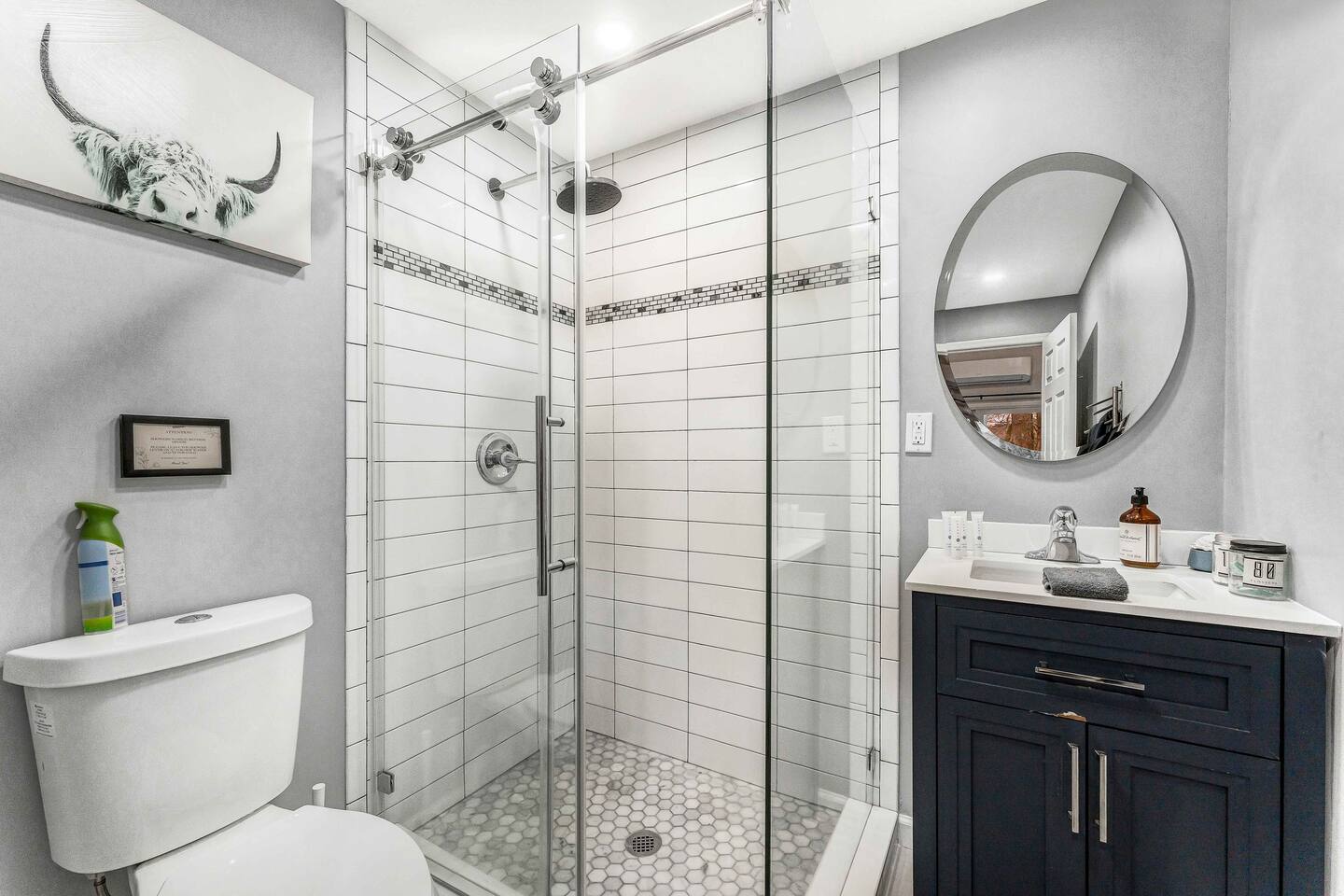 Welcome to our beautiful and spacious home, perfect for a relaxing getaway with family or friends. Nestled in a serene neighborhood, this property combines modern amenities with cozy charm for an unforgettable stay. Main Level: You’ll access the house through a side entrance, where you'll walk into an open-concept layout of the kitchen and dining room. The kitchen is fully equipped for all your cooking needs, and the dining area is perfect for enjoying meals together. As you continue through the space, you’ll step into the inviting living room, featuring high ceilings that open up to the second floor. The room is centered around a cozy wood-burning fireplace, and the comfortable sitting area is equipped with a TV for your entertainment. From here, you can access the first-level bedroom with a queen-sized bed & a dresser for your belongings. You will also find there a locked owners closet that guests unfortunately do not have access to. The main level also includes a full bathroom with a shower. Second Floor: Up the stairs, you’ll find the second bedroom on your right, featuring a full-over-full bunk bed and a closet for your storage needs. Just down the hallway, you’ll find another small closet that is locked for the owners' use only. Next, a second full bathroom awaits, complete with a spacious shower. Continuing down the hall, the third bedroom is the largest, offering ample space, a dresser, and a closet for your comfort. Deck & Outdoor Amenities: Step outside the sliding door in the main level living room onto the front deck, where you’ll find a cozy sitting area with a gas fireplace, an outdoor heater to keep you warm on cooler evenings, a hammock for relaxation, a dining table for outdoor meals, and a BBQ for grilling. Please note, the outdoor cushions and hammock hanging material will be stored in the outdoor storage box next to the deck. Heading down the deck stairs to the side of the property, you'll discover even more outdoor amenities, including a wood-burning hot tub that fits up to 6 people, an outdoor TV, a fire pit, a swing, and a wood shed for your convenience. Parking: There is spacious parking available right in front of the property, making it easy to come and go. Whether you're looking to relax in comfort, enjoy the outdoors, or explore the area, this home offers everything you need for a memorable stay. We can't wait to welcome you!