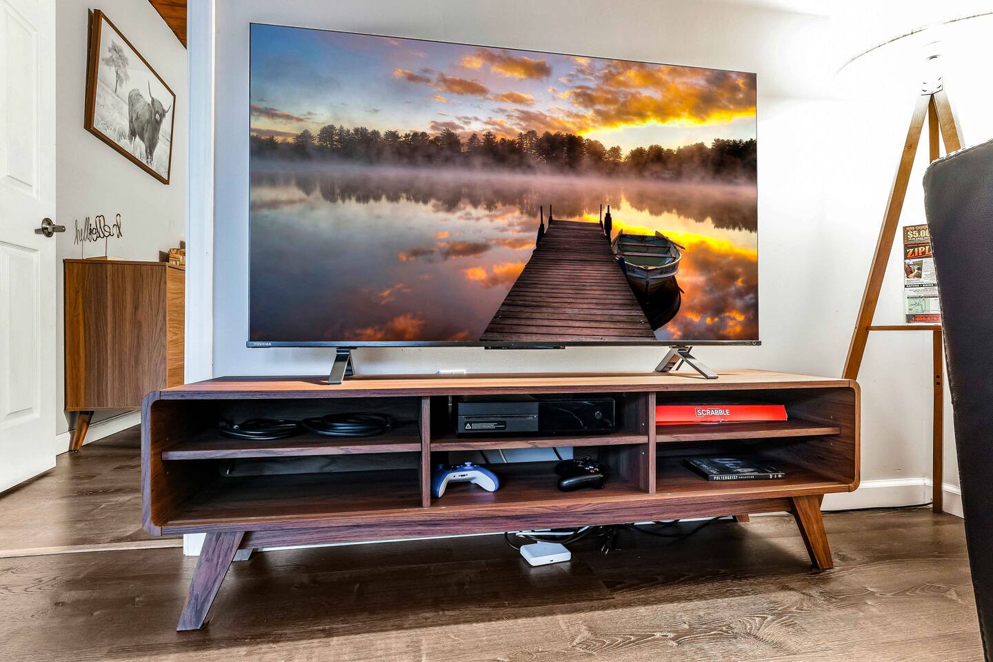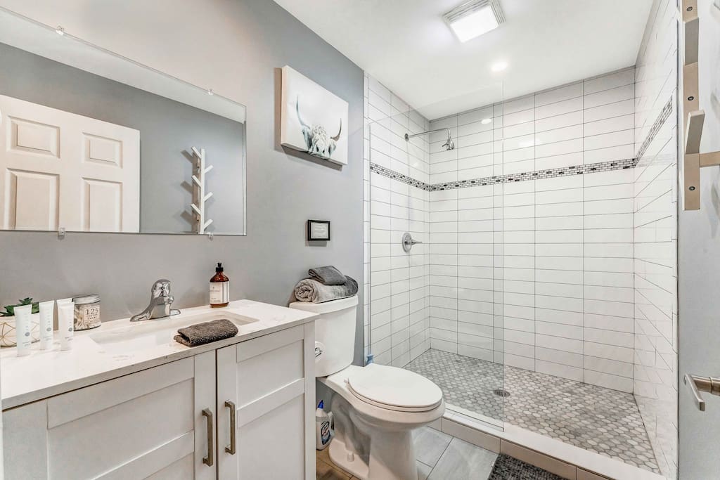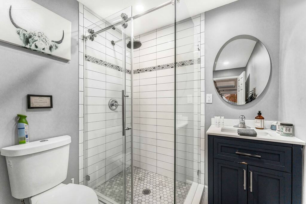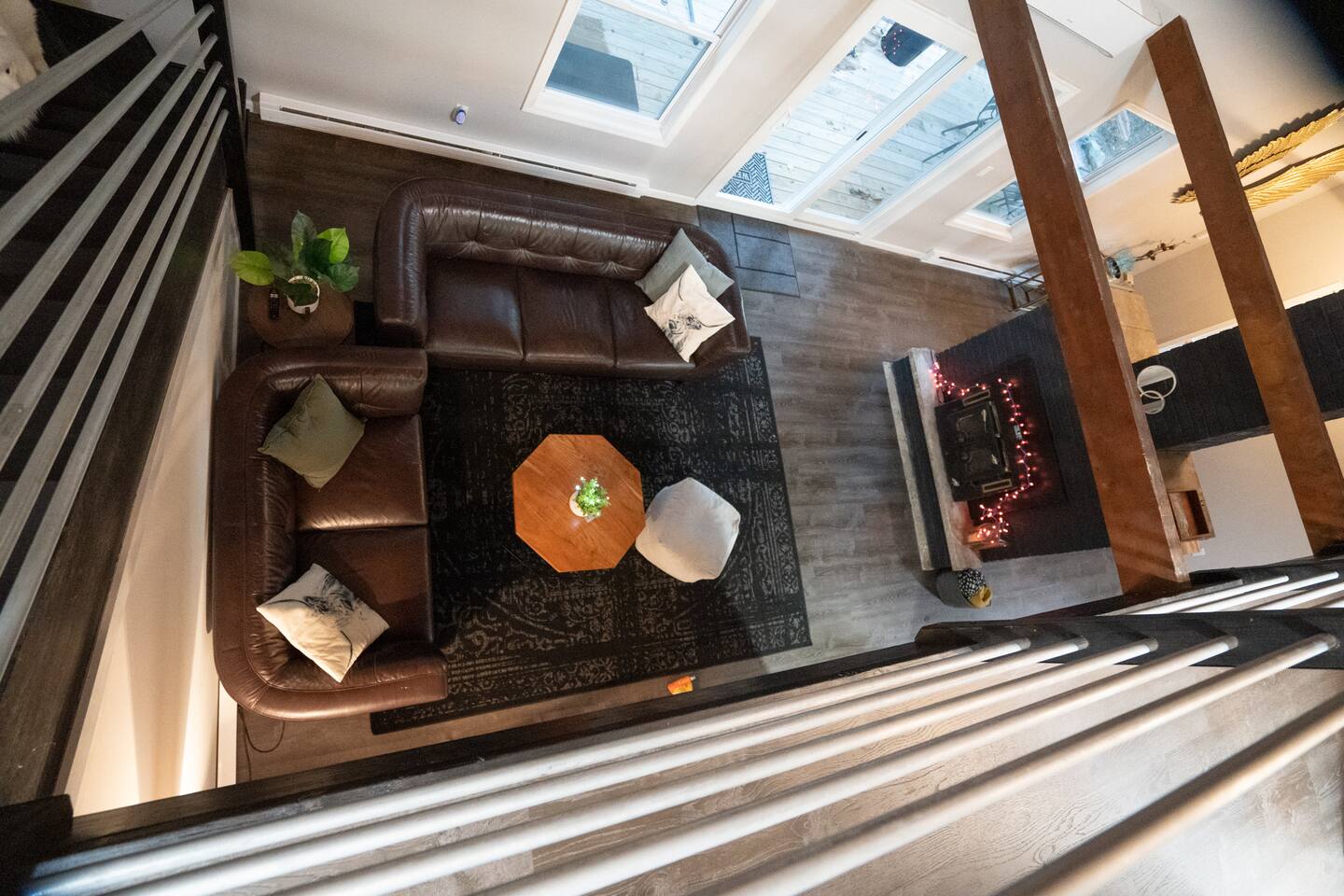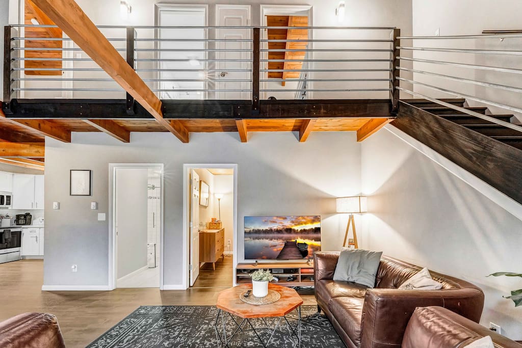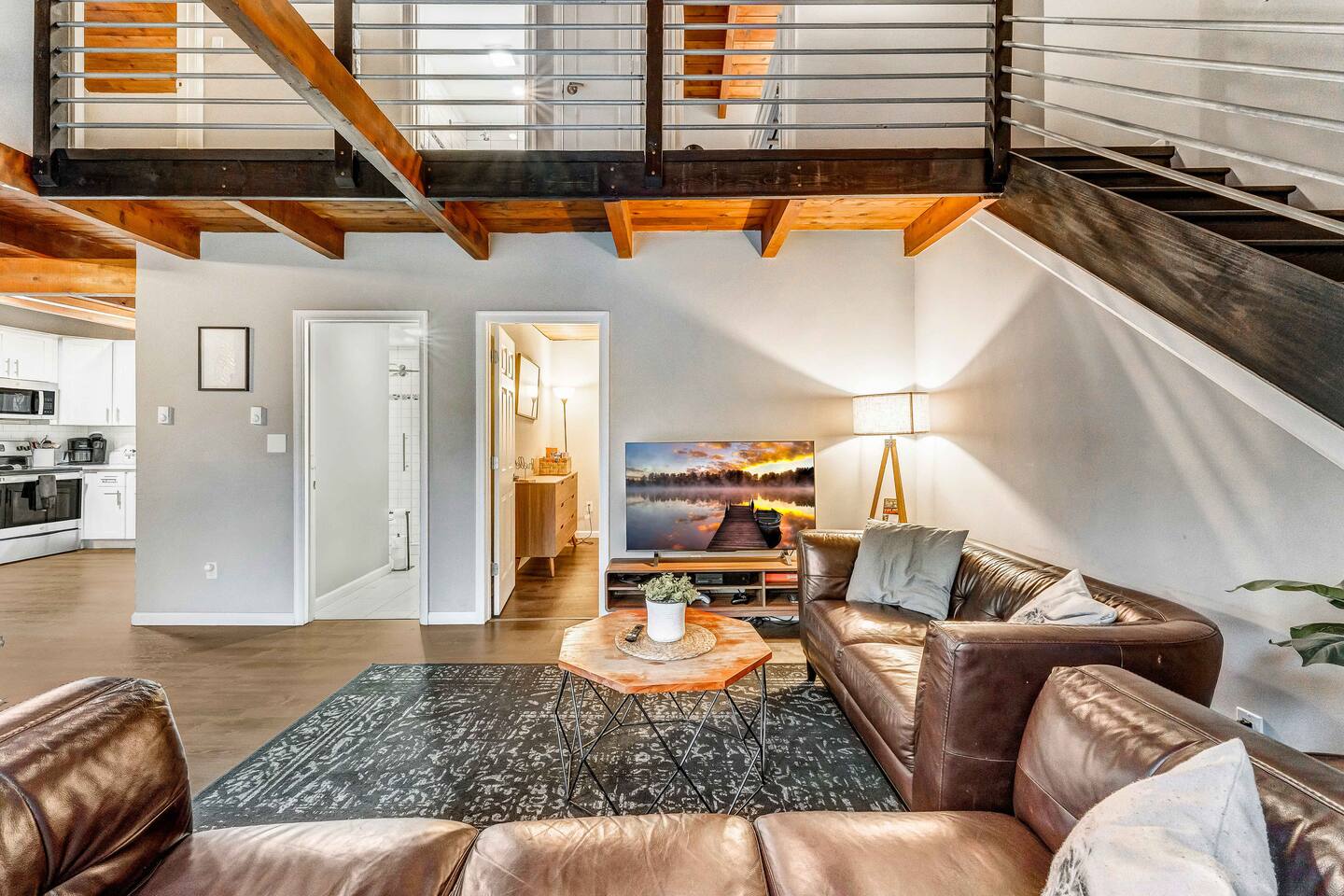 Welcome to our beautiful and spacious home, perfect for a relaxing getaway with family or friends. Nestled in a serene neighborhood, this property combines modern amenities with cozy charm for an unforgettable stay. Main Level: You’ll access the house through a side entrance, where you'll walk into an open-concept layout of the kitchen and dining room. The kitchen is fully equipped for all your cooking needs, and the dining area is perfect for enjoying meals together. As you continue through the space, you’ll step into the inviting living room, featuring high ceilings that open up to the second floor. The room is centered around a cozy wood-burning fireplace, and the comfortable sitting area is equipped with a TV for your entertainment. From here, you can access the first-level bedroom with a queen-sized bed & a dresser for your belongings. You will also find there a locked owners closet that guests unfortunately do not have access to. The main level also includes a full bathroom with a shower. Second Floor: Up the stairs, you’ll find the second bedroom on your right, featuring a full-over-full bunk bed and a closet for your storage needs. Just down the hallway, you’ll find another small closet that is locked for the owners' use only. Next, a second full bathroom awaits, complete with a spacious shower. Continuing down the hall, the third bedroom is the largest, offering ample space, a dresser, and a closet for your comfort. Deck & Outdoor Amenities: Step outside the sliding door in the main level living room onto the front deck, where you’ll find a cozy sitting area with a gas fireplace, an outdoor heater to keep you warm on cooler evenings, a hammock for relaxation, a dining table for outdoor meals, and a BBQ for grilling. Please note, the outdoor cushions and hammock hanging material will be stored in the outdoor storage box next to the deck. Heading down the deck stairs to the side of the property, you'll discover even more outdoor amenities, including a wood-burning hot tub that fits up to 6 people, an outdoor TV, a fire pit, a swing, and a wood shed for your convenience. Parking: There is spacious parking available right in front of the property, making it easy to come and go. Whether you're looking to relax in comfort, enjoy the outdoors, or explore the area, this home offers everything you need for a memorable stay. We can't wait to welcome you!