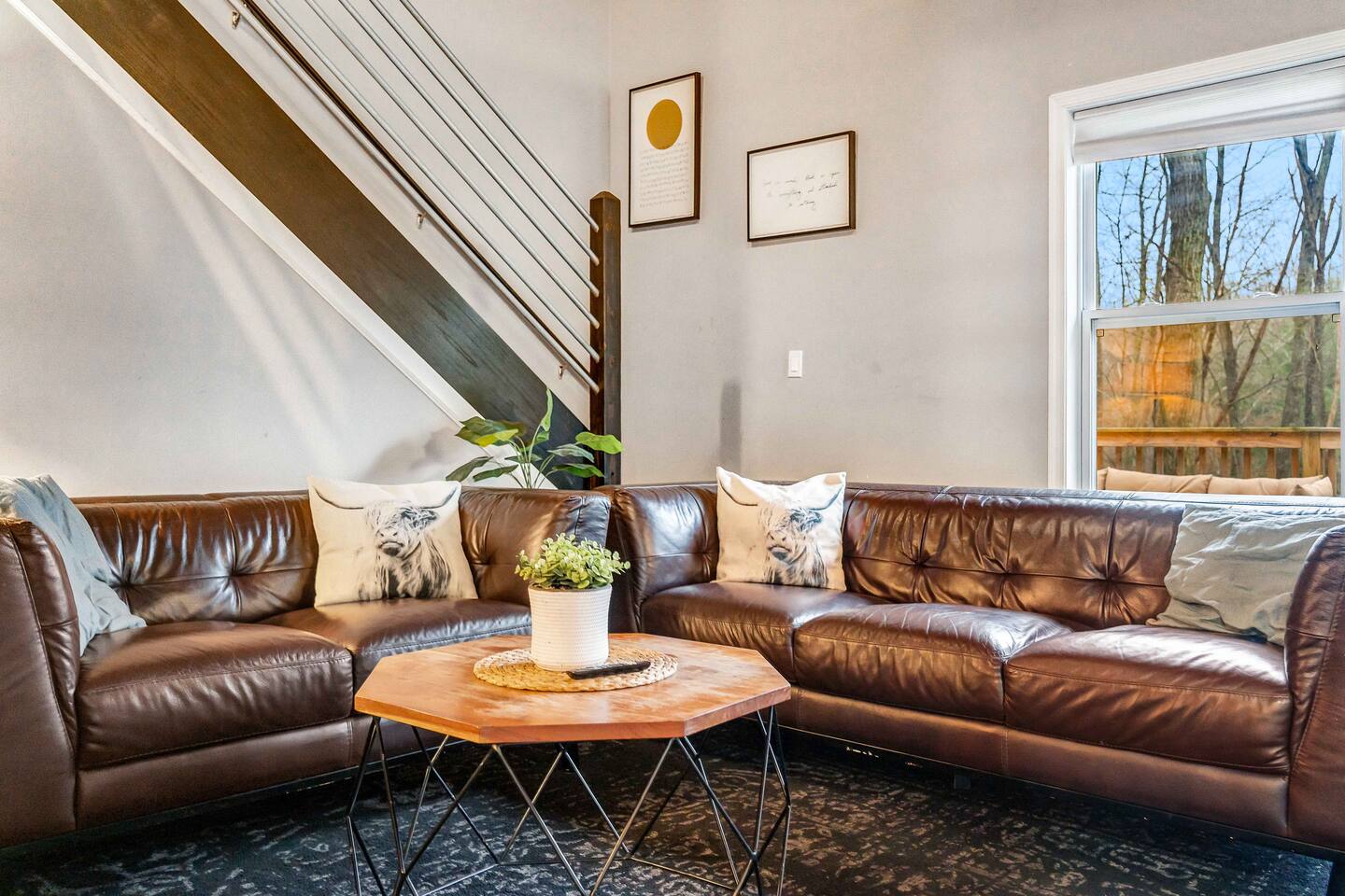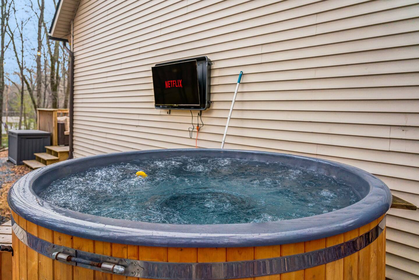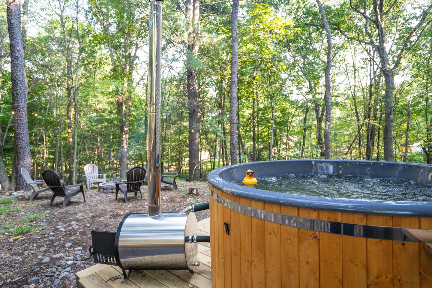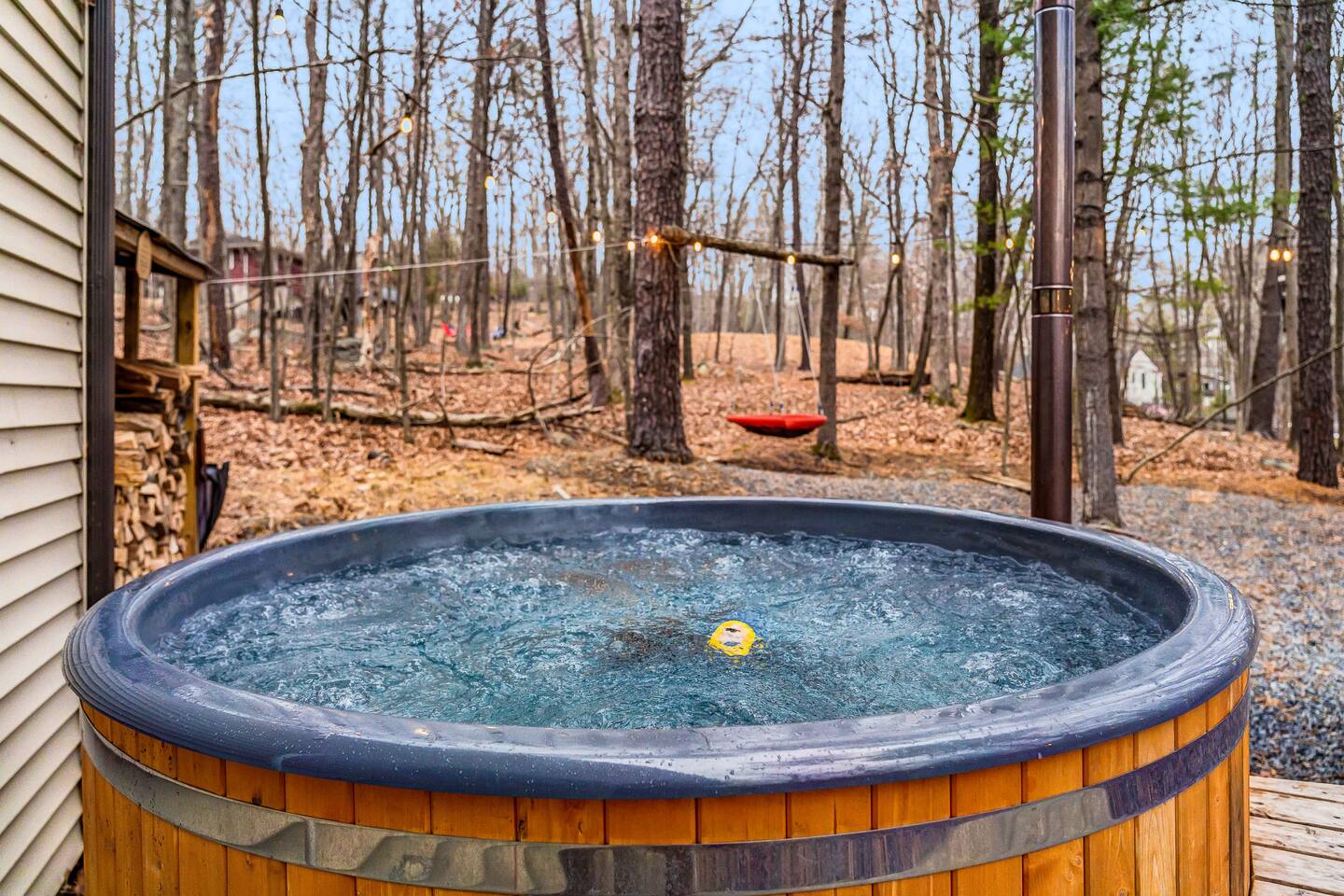 True nature escape with a wood burning hot tub, outdoor TV, fireplace & all the essentials you need for your Getaway escape! Hi-speed WiFi making it the perfect space to work from home. Great Location, only 10min drive from Shawnee Mountain & Bushkill Falls. The Cabin is suited for 8 people with 3 bedrooms. Open floor plan that connects the Kitchen, dining room and living space highlighted by a beautiful fireplace.Imagine yourself relaxing with your closest admiring nature's breathtaking views!