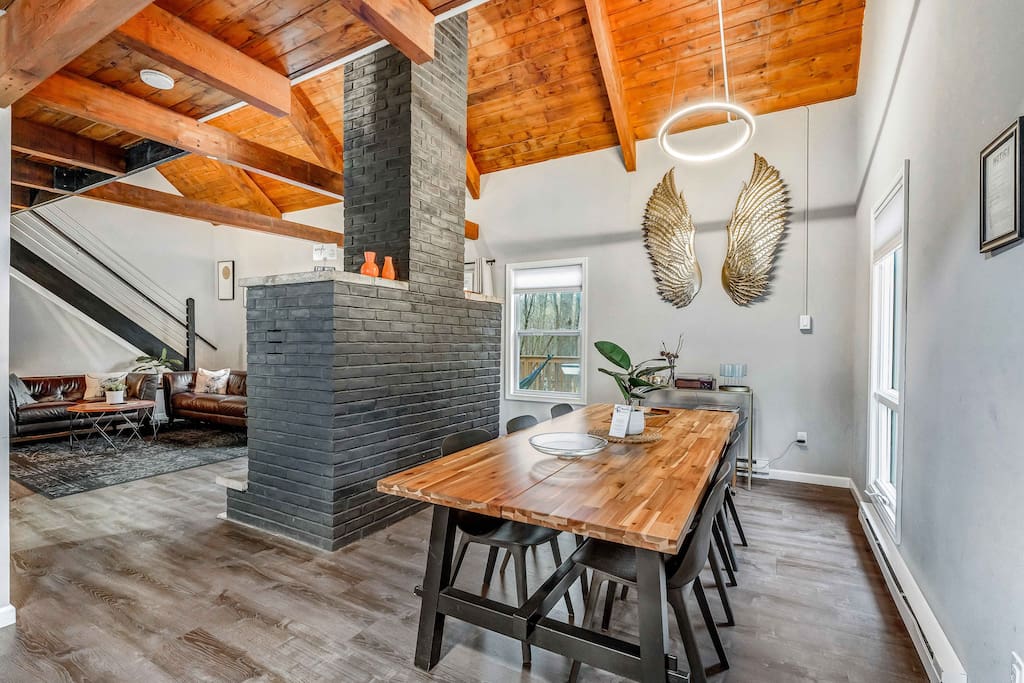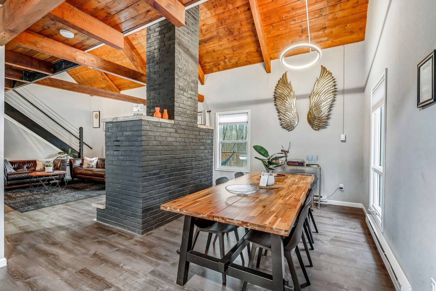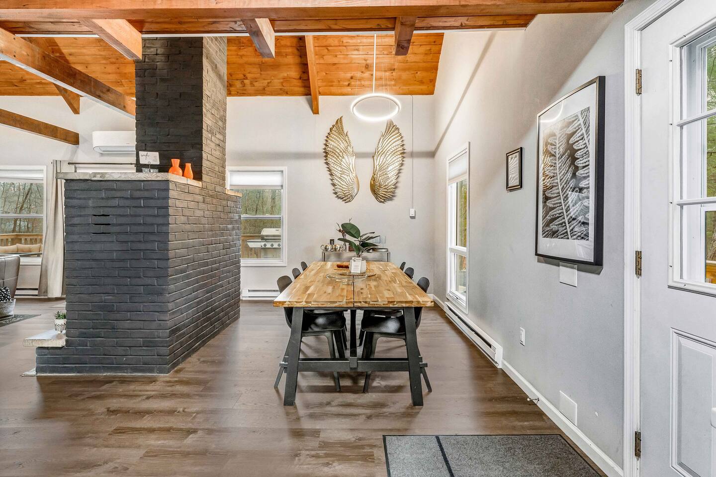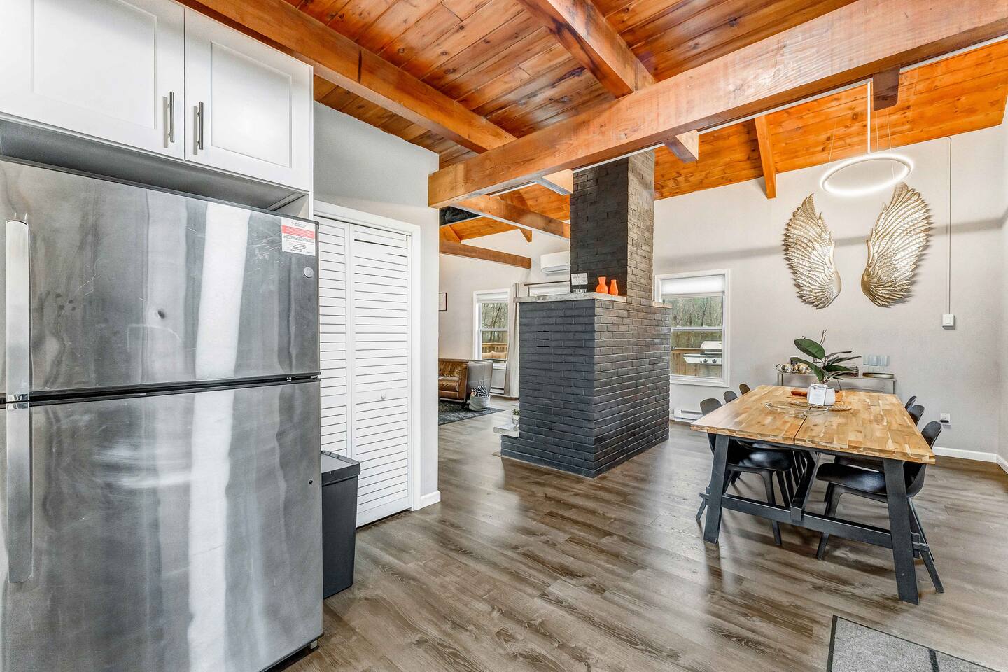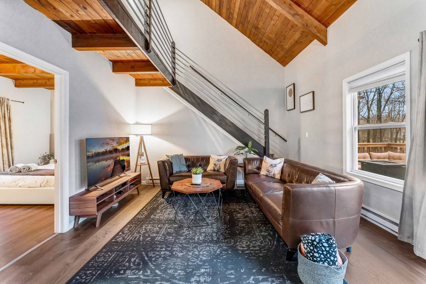 True nature escape with a wood burning hot tub, outdoor TV, fireplace & all the essentials you need for your Getaway escape! Hi-speed WiFi making it the perfect space to work from home. Great Location, only 10min drive from Shawnee Mountain & Bushkill Falls. The Cabin is suited for 8 people with 3 bedrooms. Open floor plan that connects the Kitchen, dining room and living space highlighted by a beautiful fireplace.Imagine yourself relaxing with your closest admiring nature's breathtaking views!