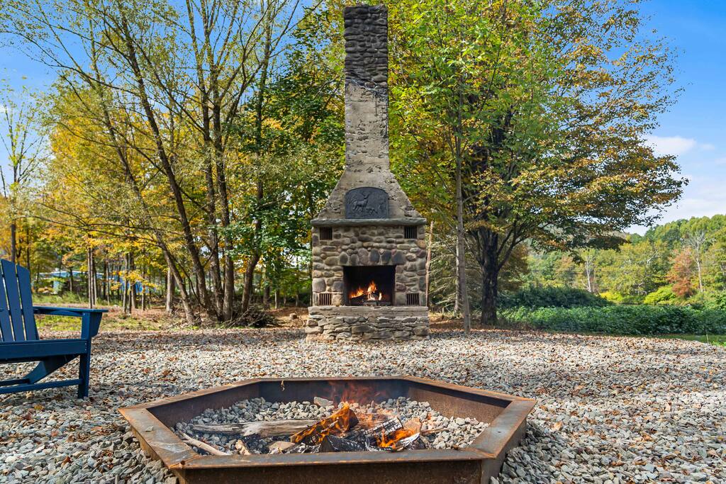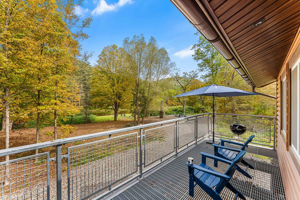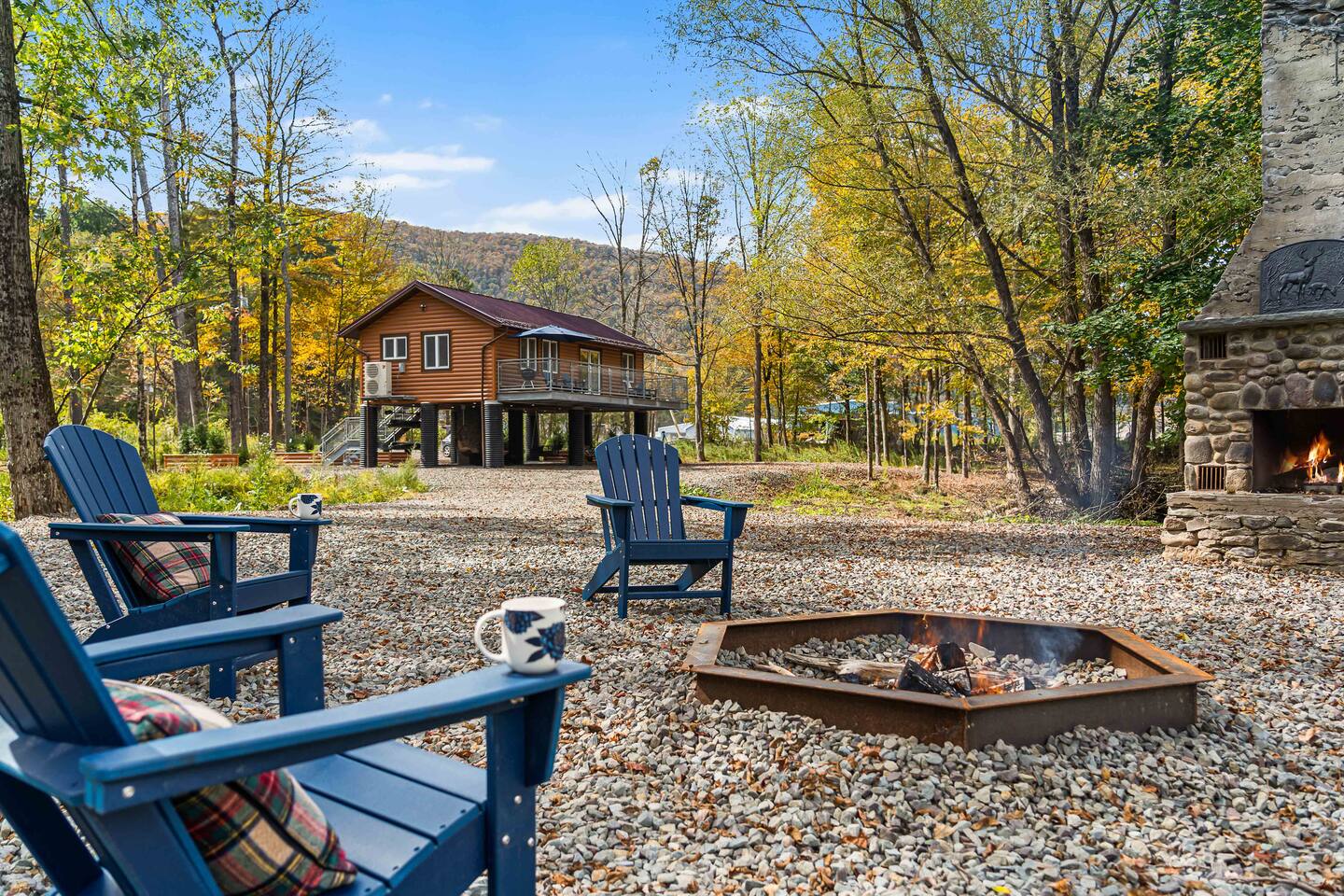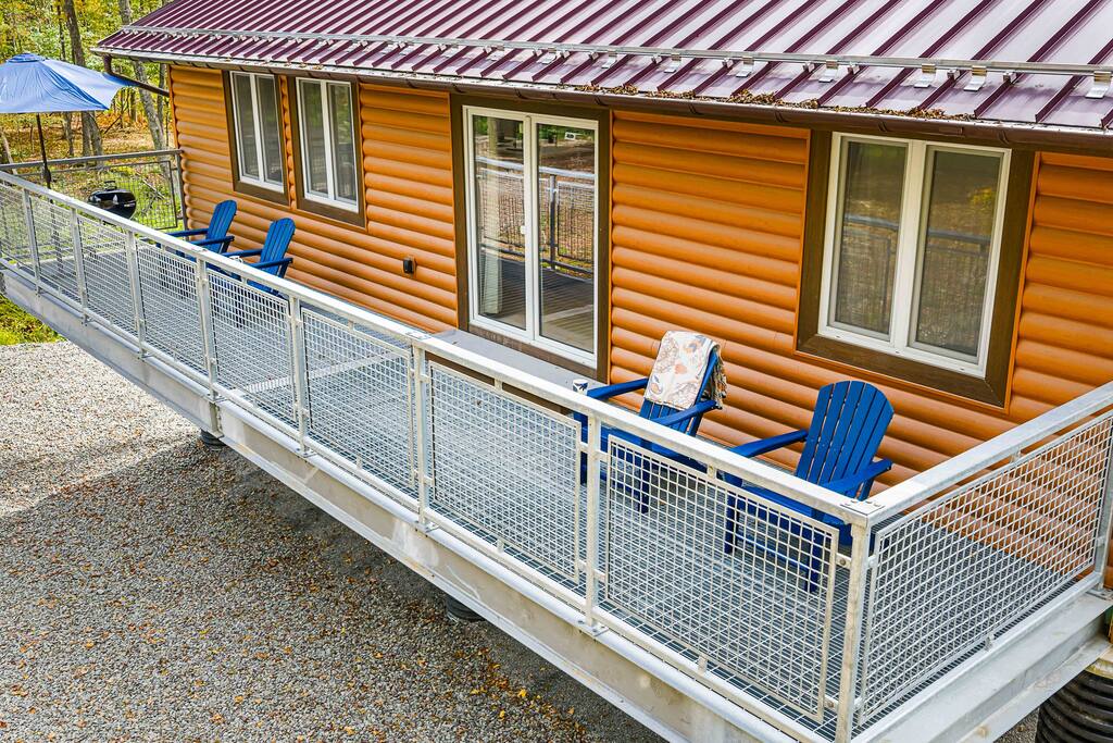 Charming Log Cabin on Beaver Kill River in the Catskills - a haven for fishing or relaxing in nature. Newly built 2 BD, 1 Bath retreat with rustic charm & modern comfort. Cozy living room with electric fireplace & smart TV, fully equipped kitchen, and balcony with BBQ. Under the house, a covered lounge with a swing, dining area, and kayaks (available to use with with signed disclosure). In the yard, enjoy a fire pit, decorative fireplace, and direct river access with serene seating by the water.