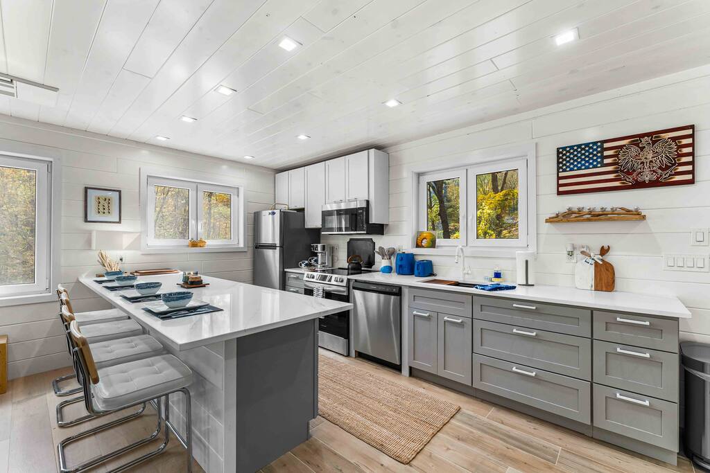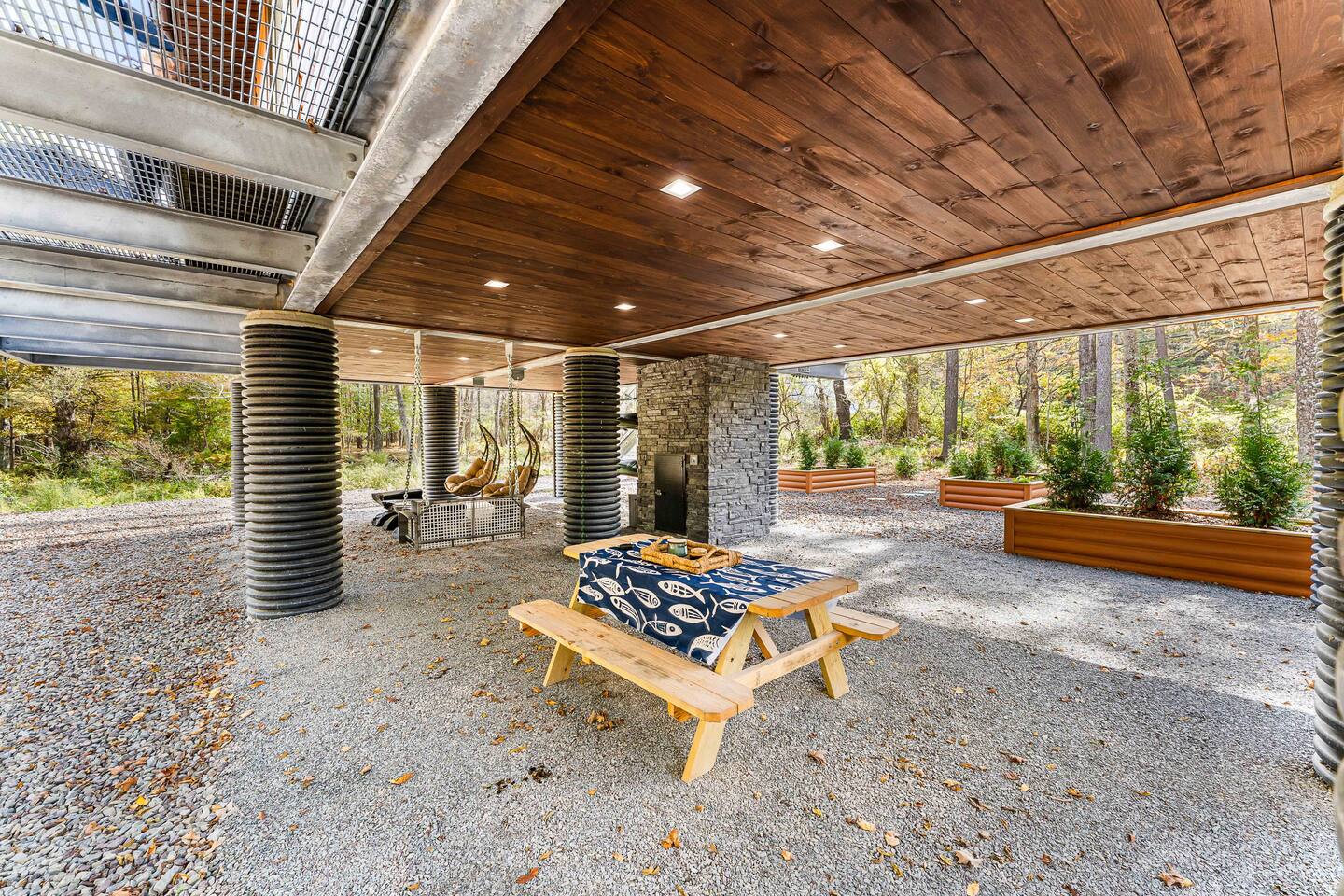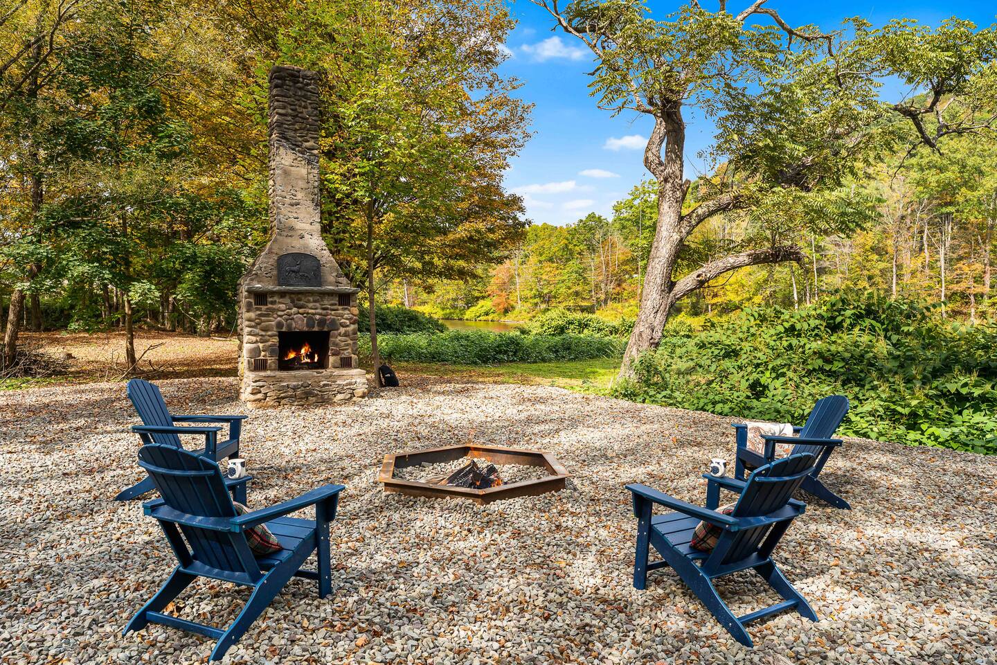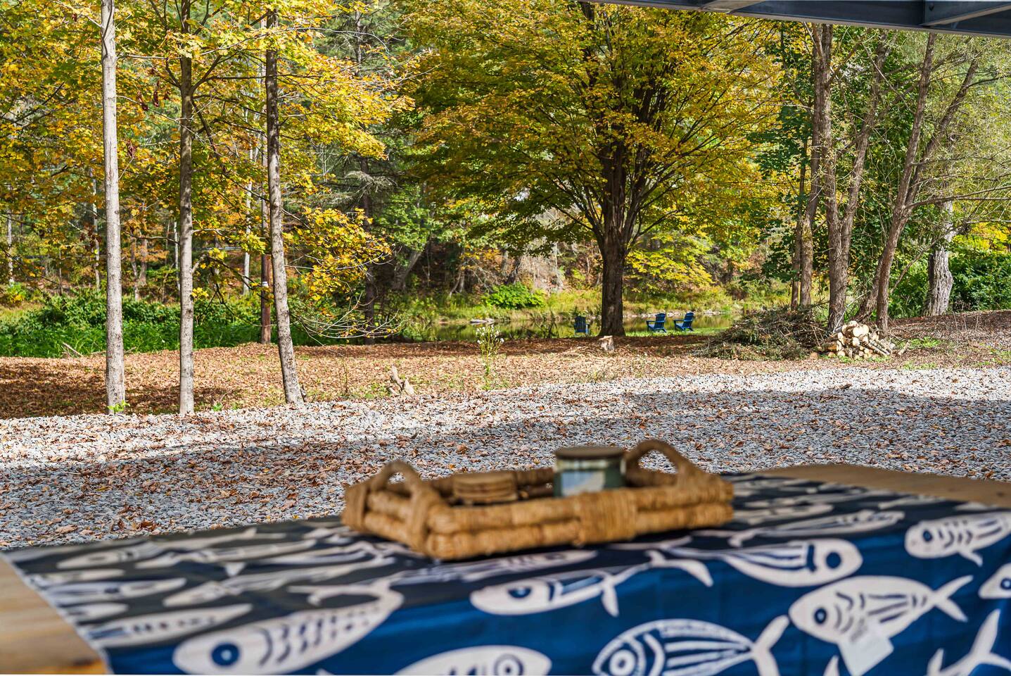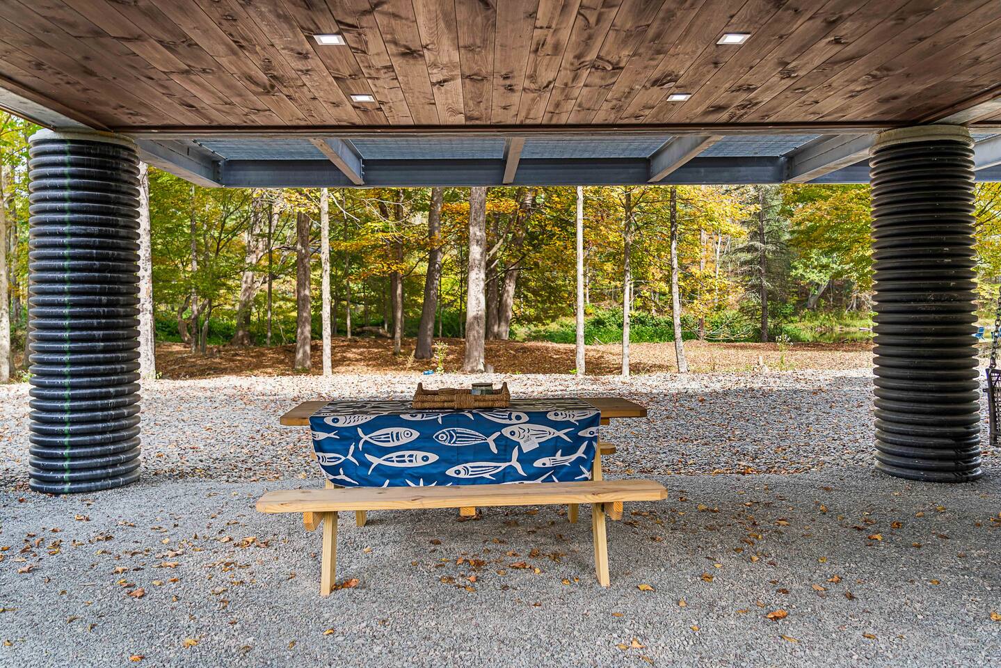 MAIN LEVEL LAYOUT: As you walk in, you’ll be greeted by an open-concept space. The kitchen is to your right, while two closets are on your left — the first is open for guest use, and the second is a locked owner’s closet. Continuing forward, you’ll find the living and dining area. The right side features a cozy living room with a couch, coffee table, Smart TV, and an electric fireplace. On the left, a sliding door leads to the balcony, and a dining table with seating for four completes the space. On the further left side of the main level, there are two bedrooms and one full bathroom: Right bedroom: Full-size bed Left bedroom: Queen bed The bathroom, located next to the queen bedroom, includes a shower. BALCONY: Accessible from the living room area, the balcony offers Adirondack chairs and a charcoal grill, perfect for outdoor dining or relaxing. UNDER THE HOUSE AREA: A great place to unwind — featuring outdoor swings with a coffee table, two kayaks available for use (with signed waiver), an outdoor dining table, and another charcoal grill. BACKYARD: Enjoy the fire pit area with a decorative fireplace (for display only — no fires permitted inside it). From here, you’ll have direct access to the Beaver Kill, perfect for relaxing by the water or casting a line.