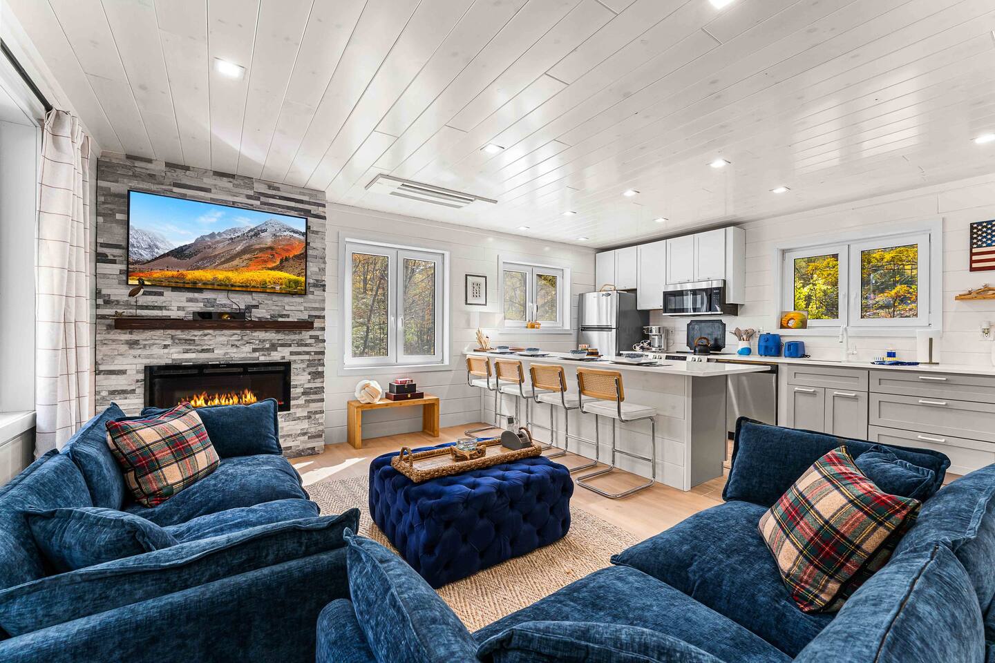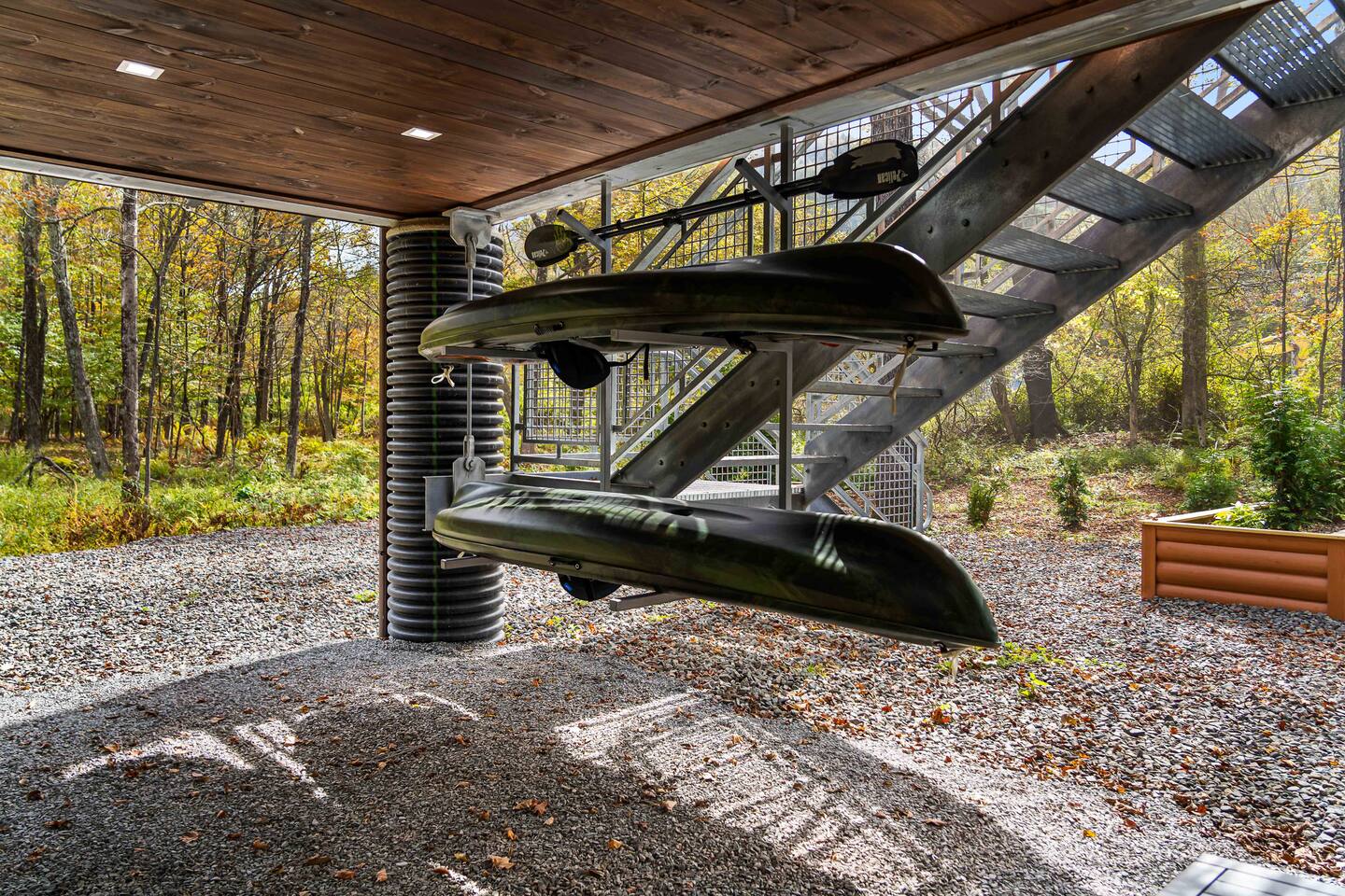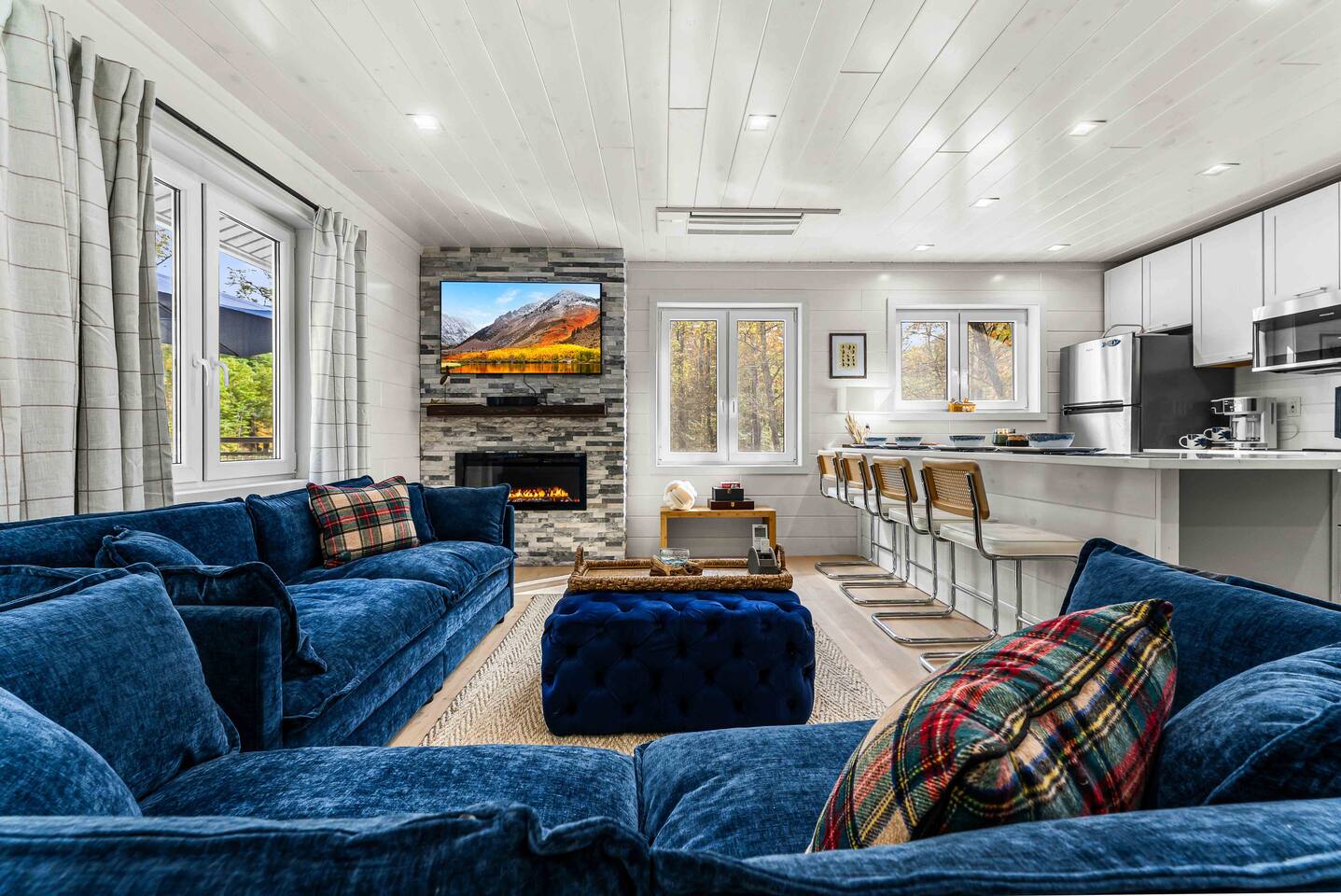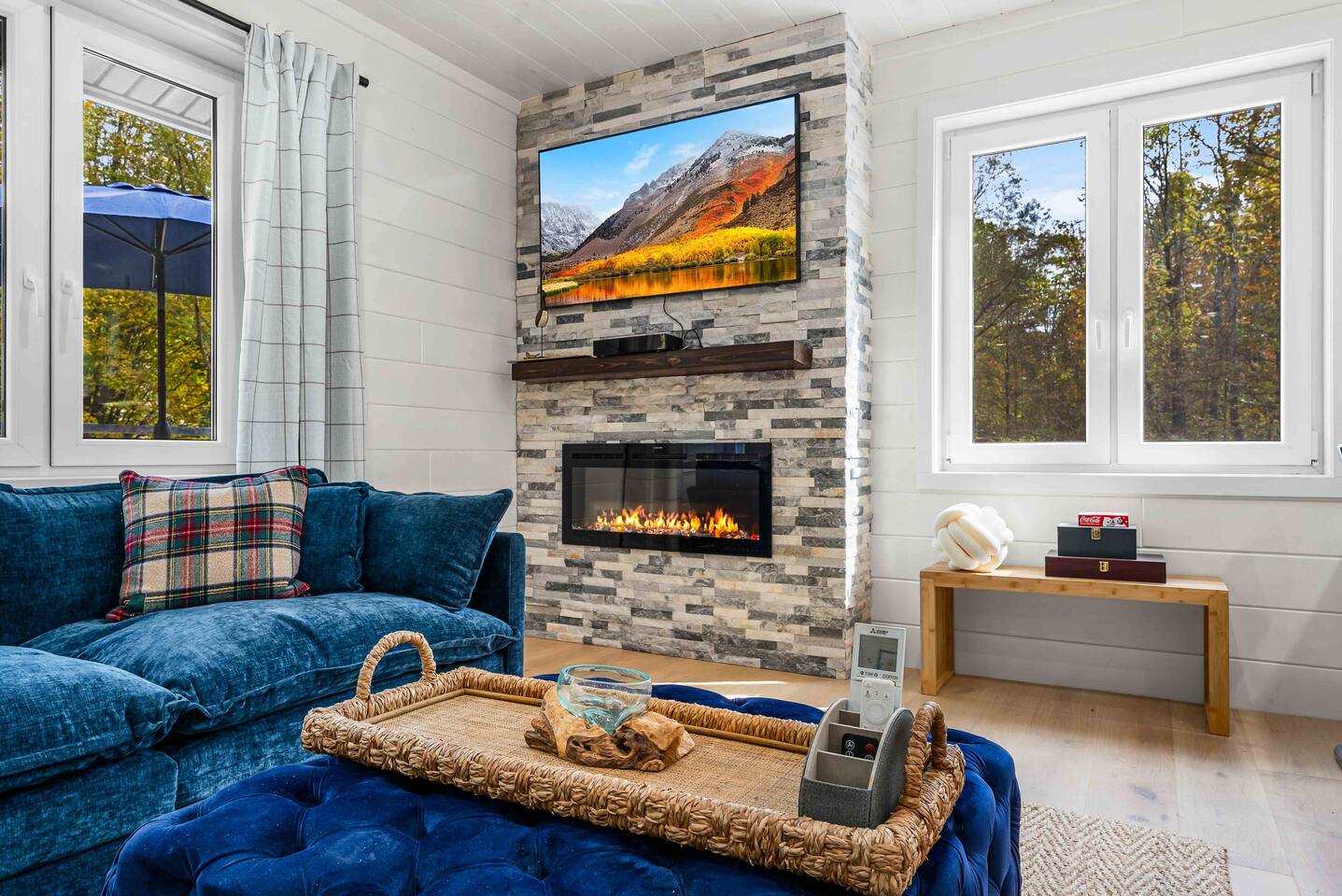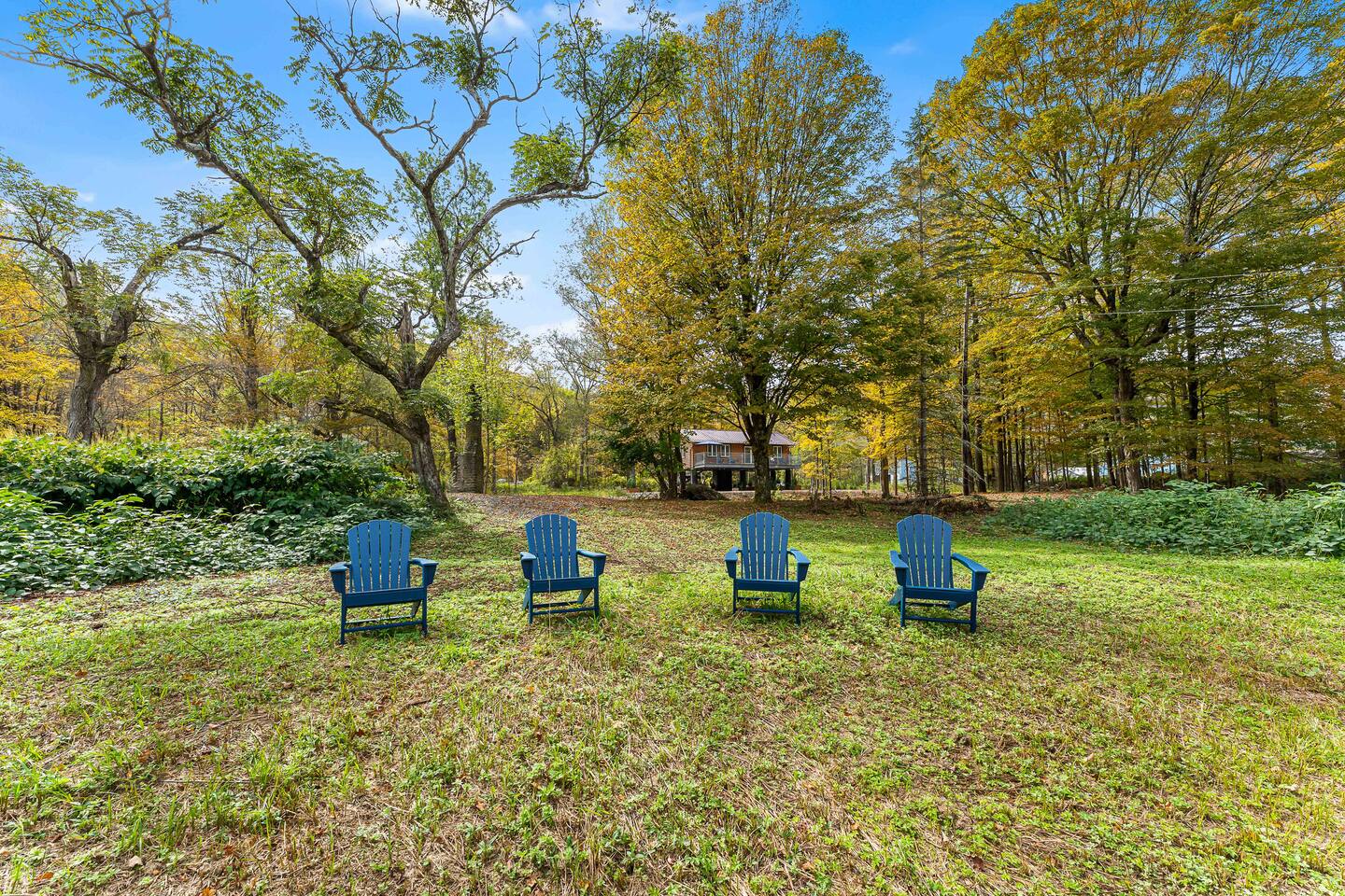 MAIN LEVEL LAYOUT: As you walk in, you’ll be greeted by an open-concept space. The kitchen is to your right, while two closets are on your left — the first is open for guest use, and the second is a locked owner’s closet. Continuing forward, you’ll find the living and dining area. The right side features a cozy living room with a couch, coffee table, Smart TV, and an electric fireplace. On the left, a sliding door leads to the balcony, and a dining table with seating for four completes the space. On the further left side of the main level, there are two bedrooms and one full bathroom: Right bedroom: Full-size bed Left bedroom: Queen bed The bathroom, located next to the queen bedroom, includes a shower. BALCONY: Accessible from the living room area, the balcony offers Adirondack chairs and a charcoal grill, perfect for outdoor dining or relaxing. UNDER THE HOUSE AREA: A great place to unwind — featuring outdoor swings with a coffee table, two kayaks available for use (with signed waiver), an outdoor dining table, and another charcoal grill. BACKYARD: Enjoy the fire pit area with a decorative fireplace (for display only — no fires permitted inside it). From here, you’ll have direct access to the Beaver Kill, perfect for relaxing by the water or casting a line.
