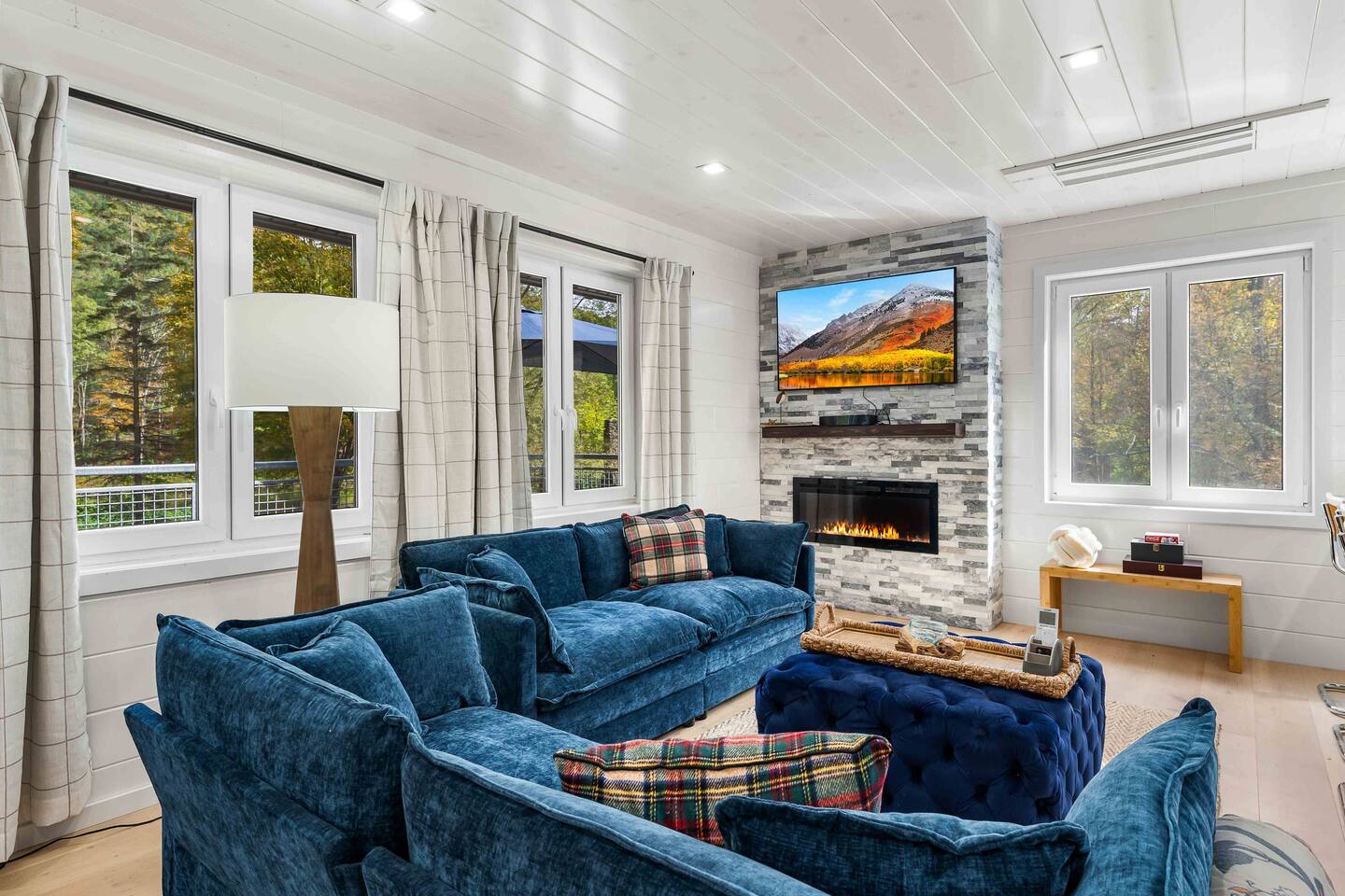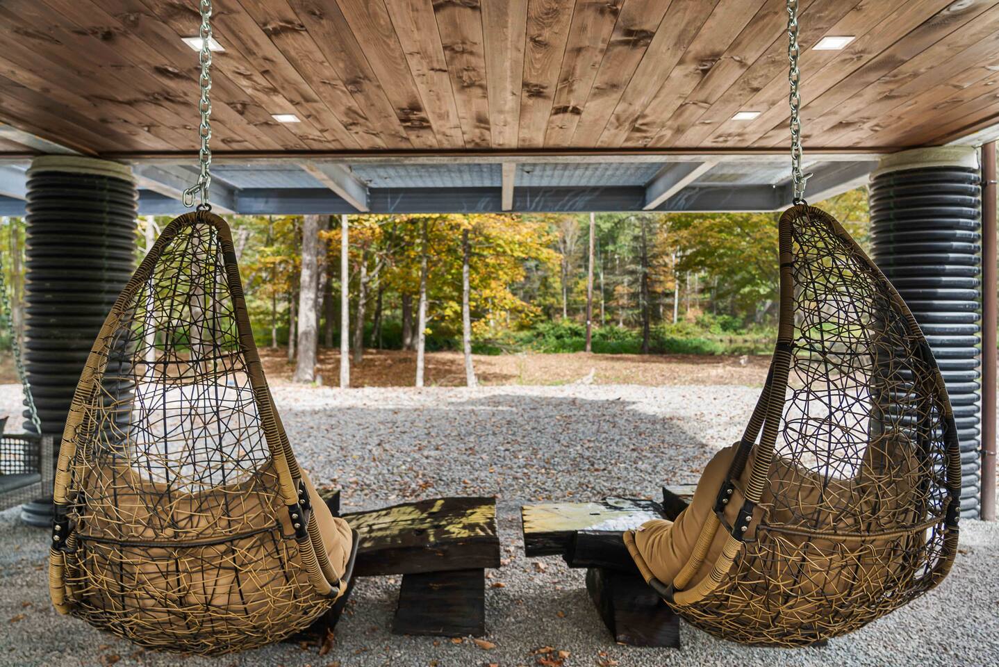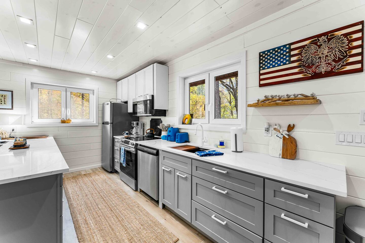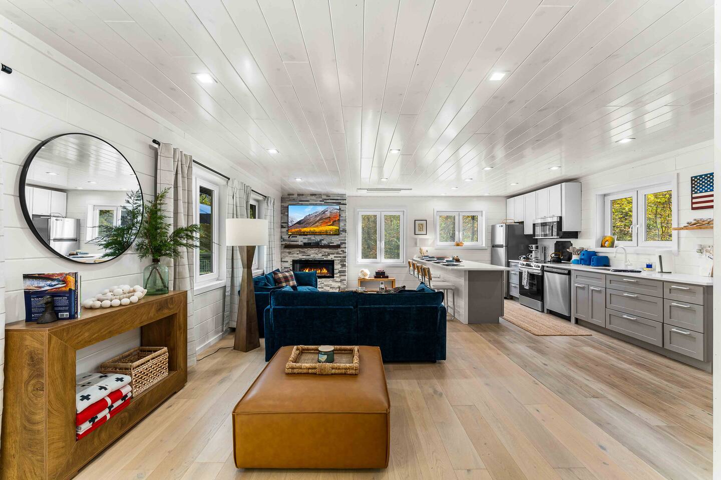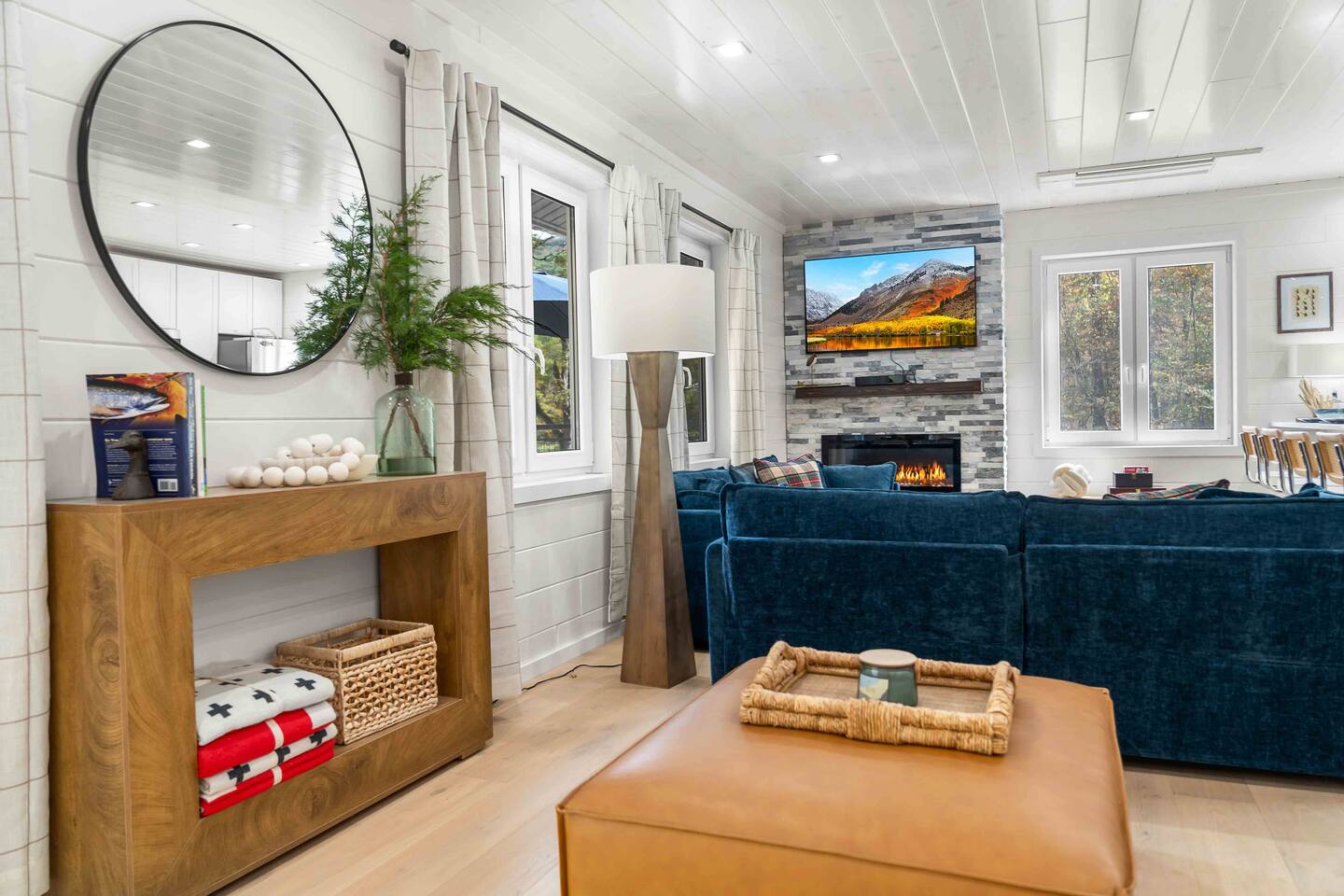 MAIN LEVEL LAYOUT: As you walk in, you’ll be greeted by an open-concept space. The kitchen is to your right, while two closets are on your left — the first is open for guest use, and the second is a locked owner’s closet. Continuing forward, you’ll find the living and dining area. The right side features a cozy living room with a couch, coffee table, Smart TV, and an electric fireplace. On the left, a sliding door leads to the balcony, and a dining table with seating for four completes the space. On the further left side of the main level, there are two bedrooms and one full bathroom: Right bedroom: Full-size bed Left bedroom: Queen bed The bathroom, located next to the queen bedroom, includes a shower. BALCONY: Accessible from the living room area, the balcony offers Adirondack chairs and a charcoal grill, perfect for outdoor dining or relaxing. UNDER THE HOUSE AREA: A great place to unwind — featuring outdoor swings with a coffee table, two kayaks available for use (with signed waiver), an outdoor dining table, and another charcoal grill. BACKYARD: Enjoy the fire pit area with a decorative fireplace (for display only — no fires permitted inside it). From here, you’ll have direct access to the Beaver Kill, perfect for relaxing by the water or casting a line.