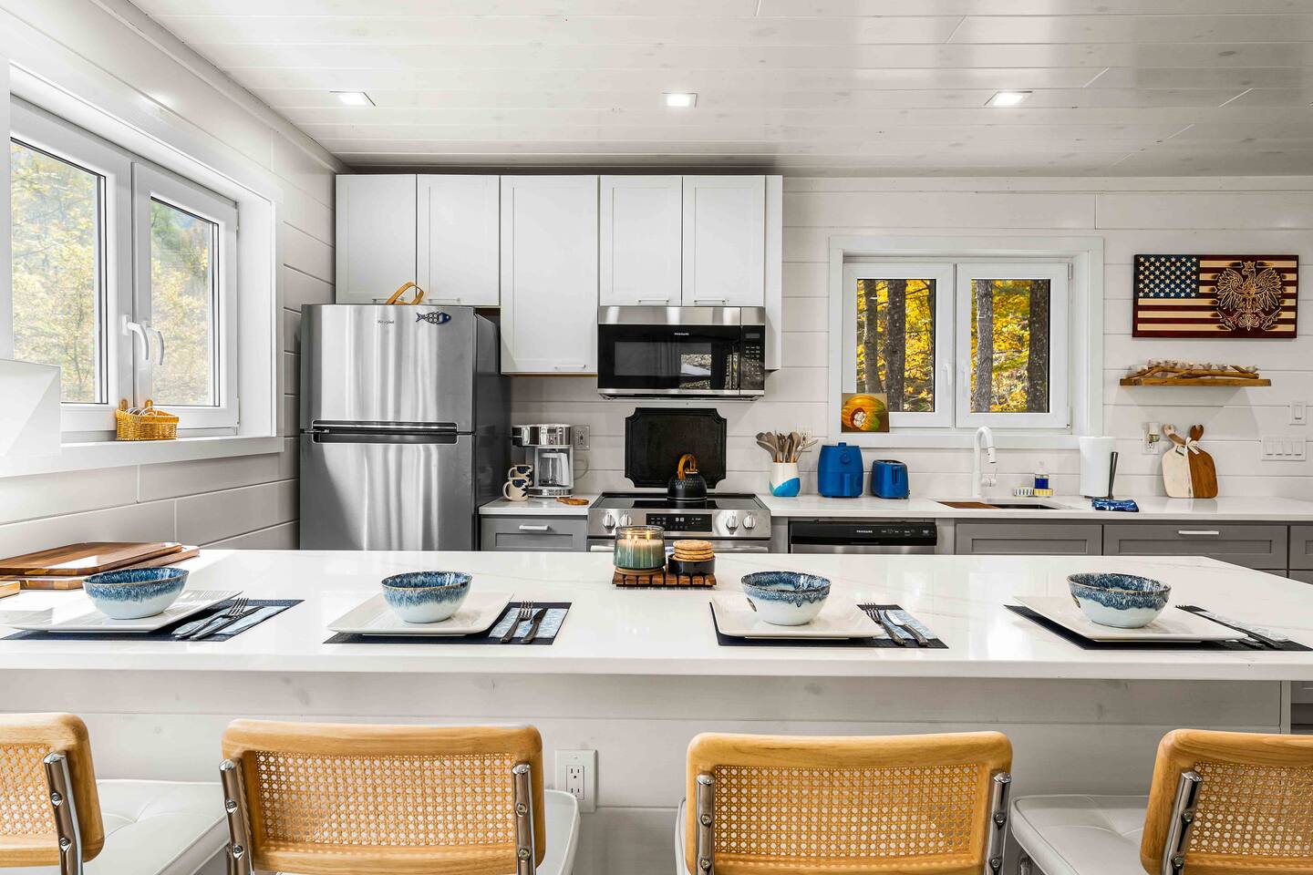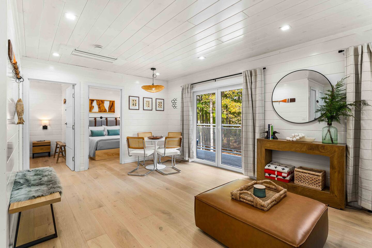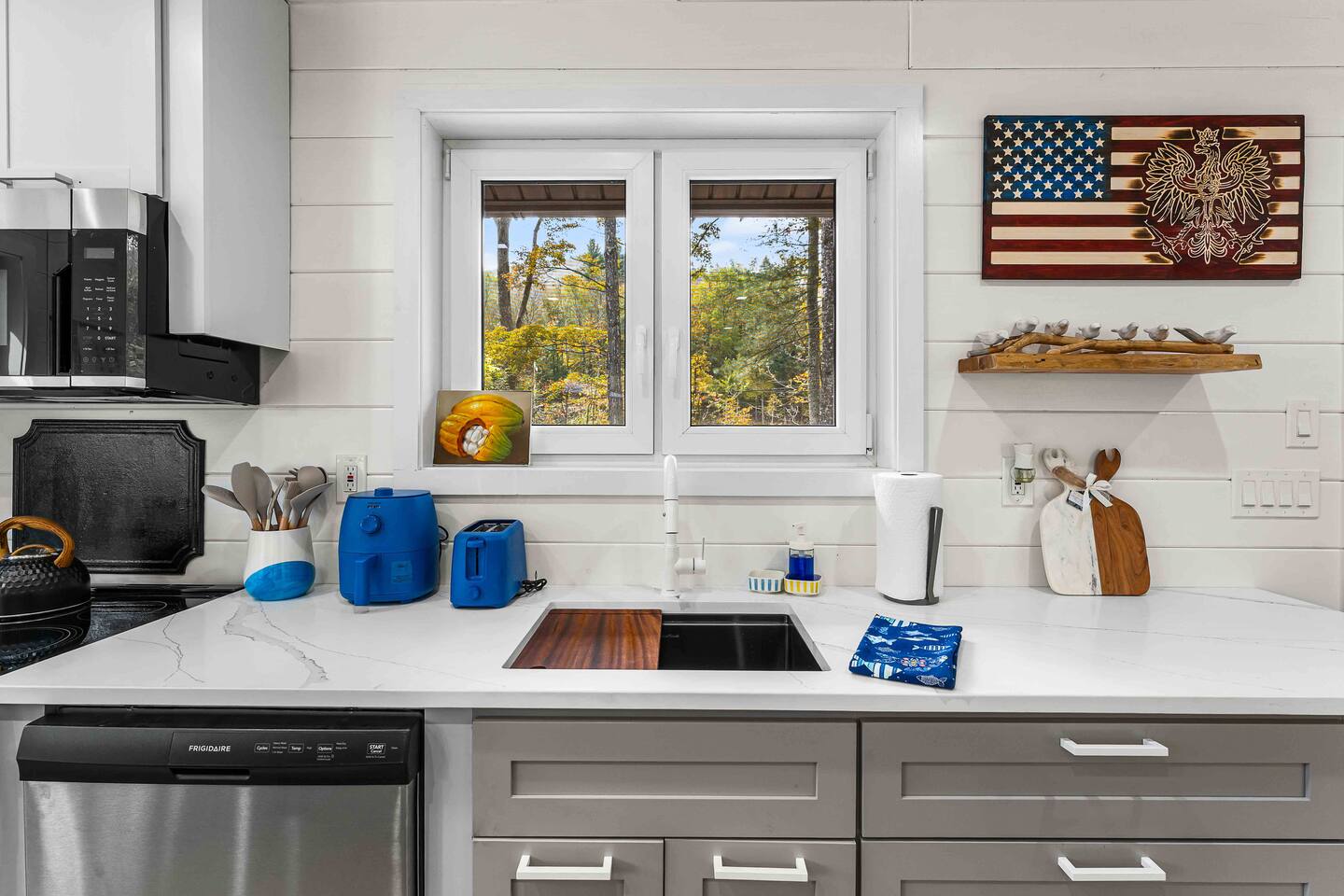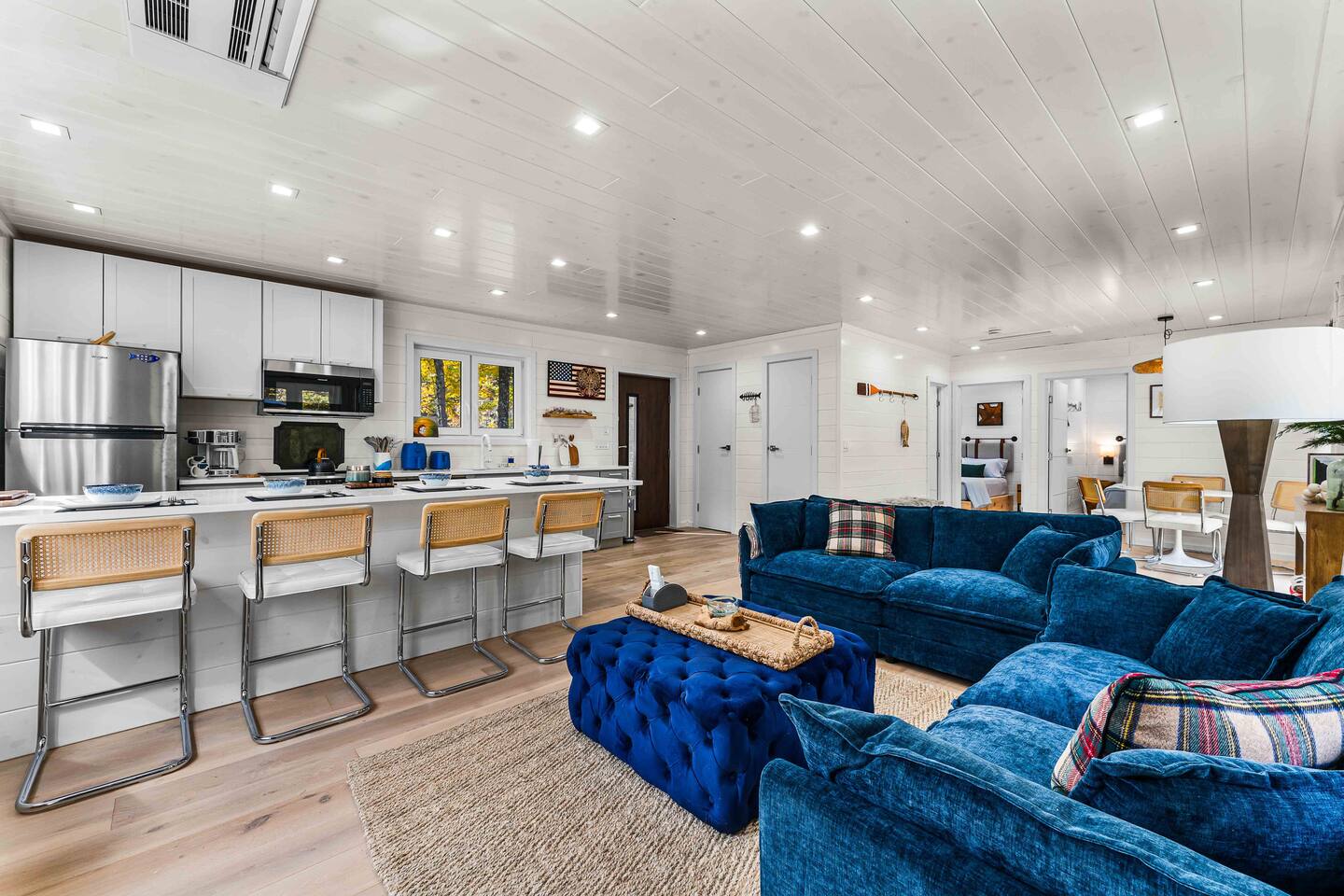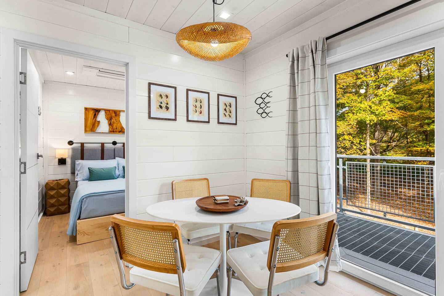 MAIN LEVEL LAYOUT: As you walk in, you’ll be greeted by an open-concept space. The kitchen is to your right, while two closets are on your left — the first is open for guest use, and the second is a locked owner’s closet. Continuing forward, you’ll find the living and dining area. The right side features a cozy living room with a couch, coffee table, Smart TV, and an electric fireplace. On the left, a sliding door leads to the balcony, and a dining table with seating for four completes the space. On the further left side of the main level, there are two bedrooms and one full bathroom: Right bedroom: Full-size bed Left bedroom: Queen bed The bathroom, located next to the queen bedroom, includes a shower. BALCONY: Accessible from the living room area, the balcony offers Adirondack chairs and a charcoal grill, perfect for outdoor dining or relaxing. UNDER THE HOUSE AREA: A great place to unwind — featuring outdoor swings with a coffee table, two kayaks available for use (with signed waiver), an outdoor dining table, and another charcoal grill. BACKYARD: Enjoy the fire pit area with a decorative fireplace (for display only — no fires permitted inside it). From here, you’ll have direct access to the Beaver Kill, perfect for relaxing by the water or casting a line.