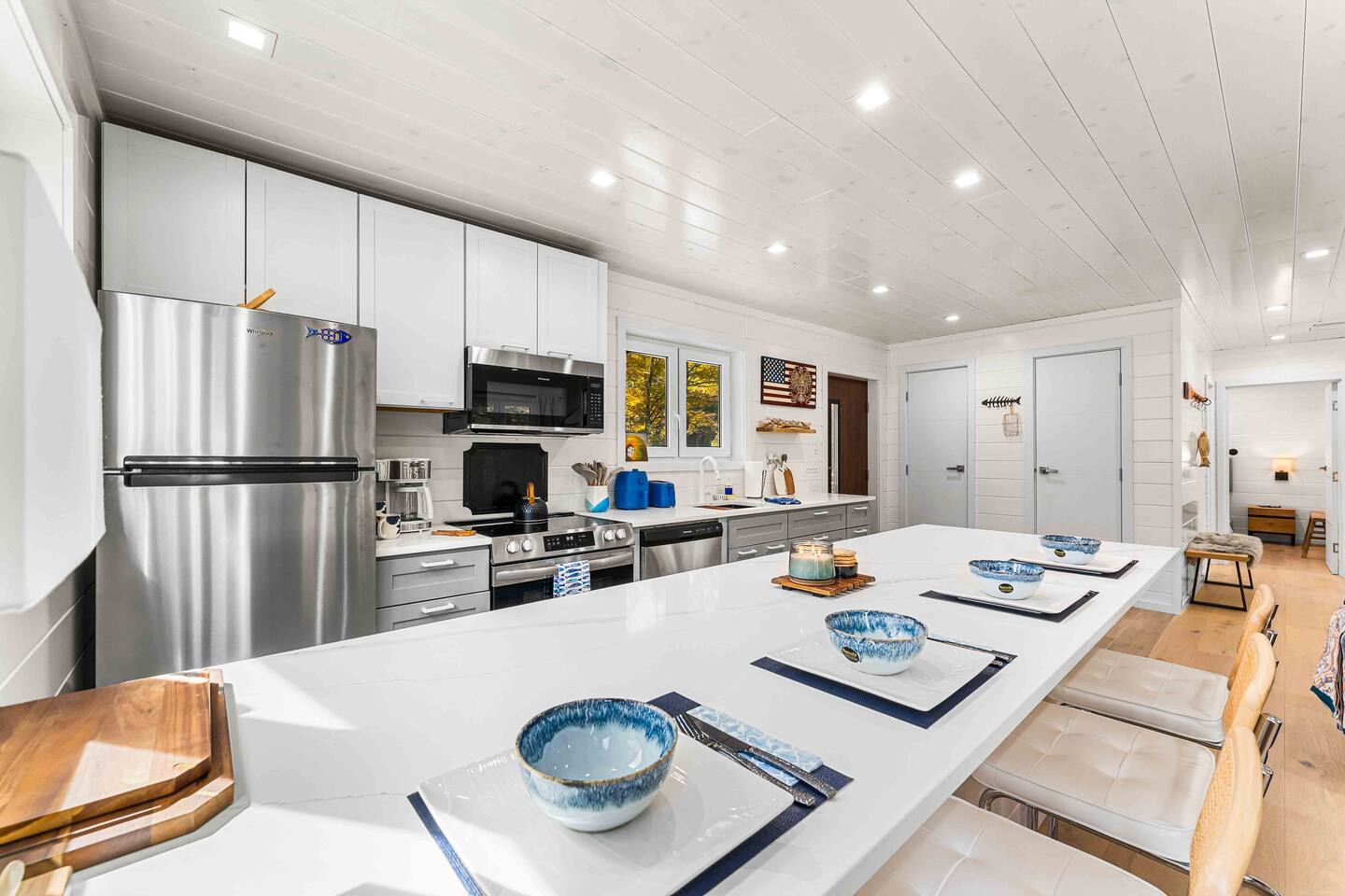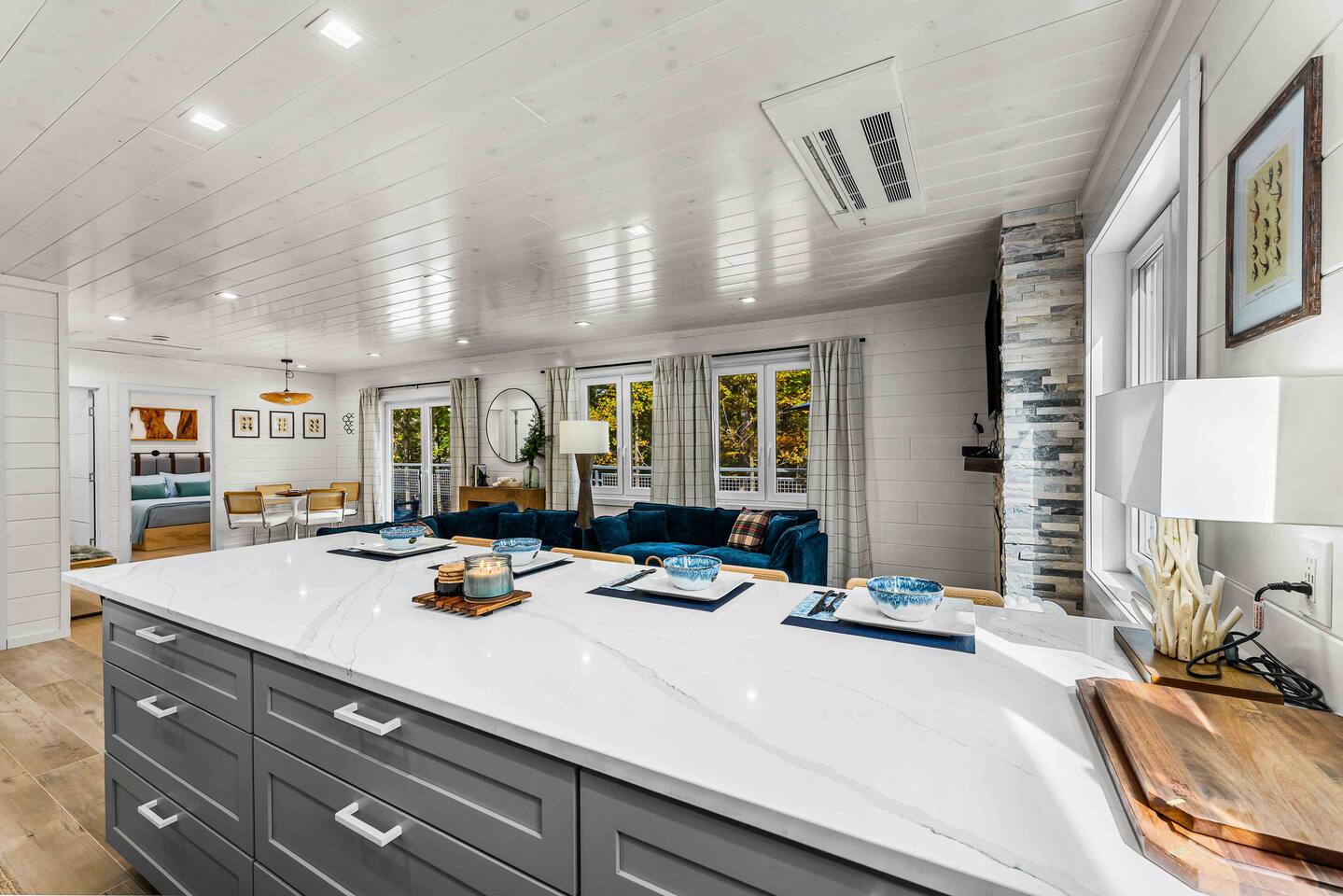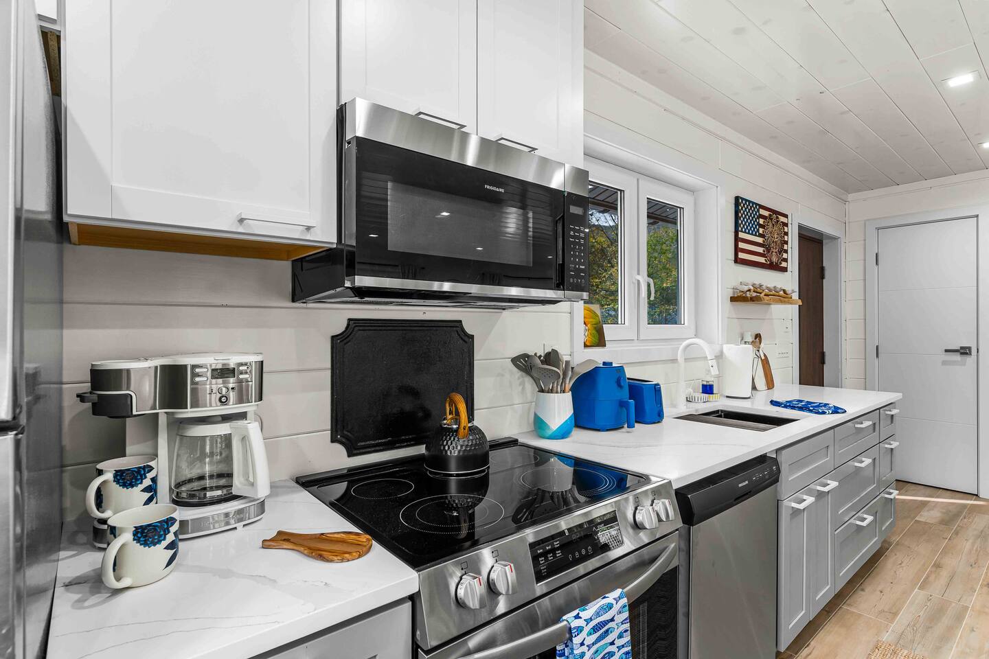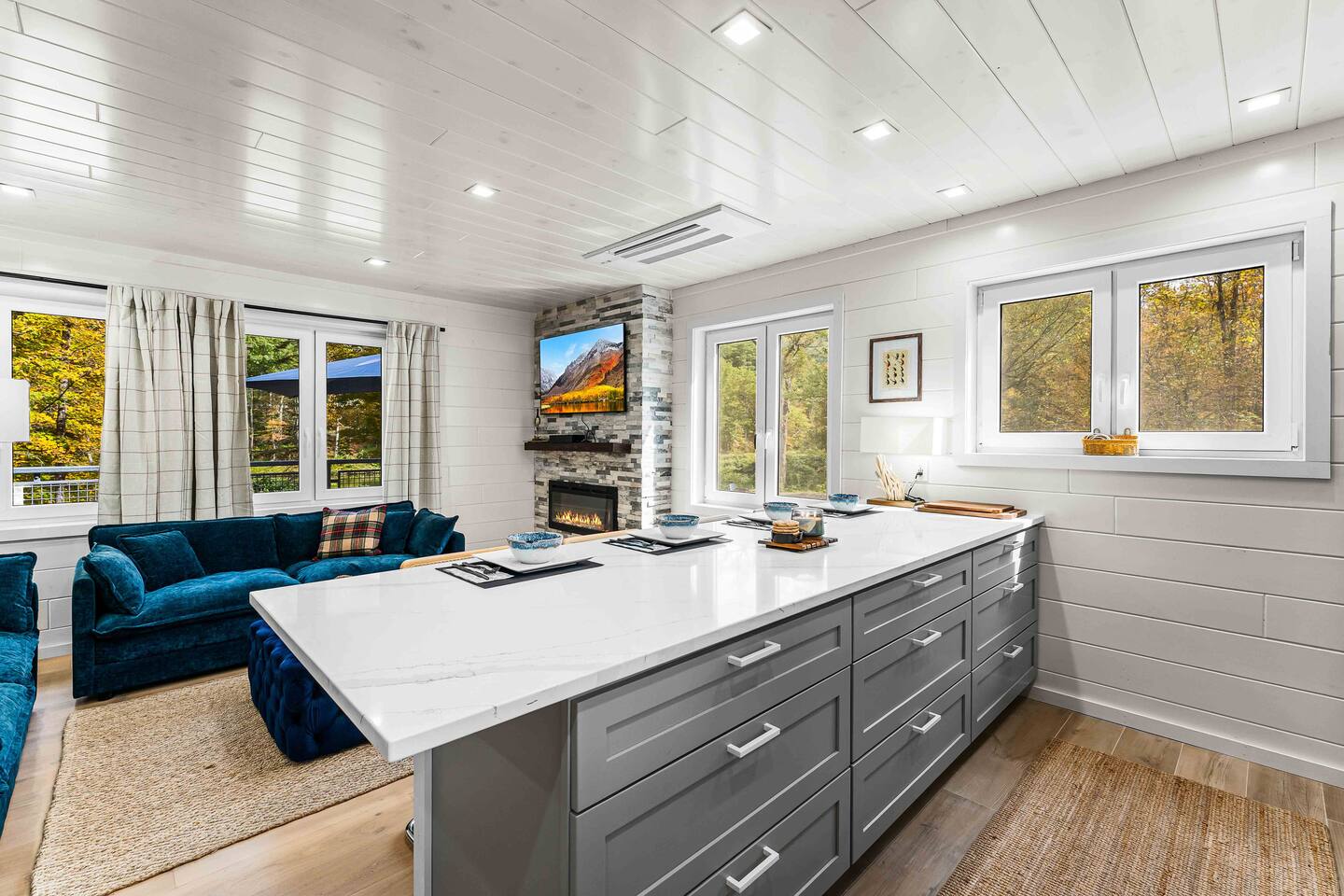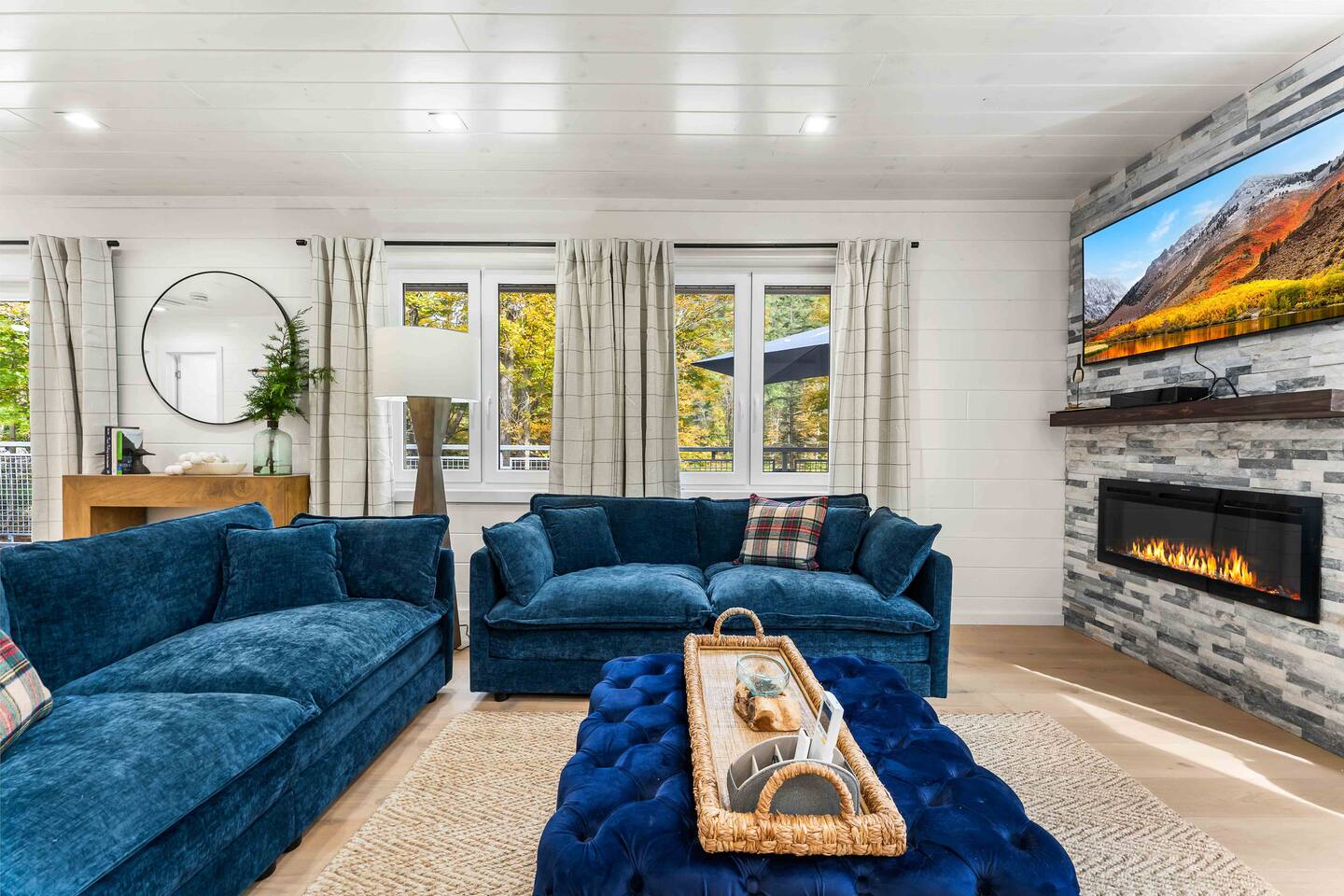MAIN LEVEL LAYOUT: As you walk in, you’ll be greeted by an open-concept space. The kitchen is to your right, while two closets are on your left — the first is open for guest use, and the second is a locked owner’s closet. Continuing forward, you’ll find the living and dining area. The right side features a cozy living room with a couch, coffee table, Smart TV, and an electric fireplace. On the left, a sliding door leads to the balcony, and a dining table with seating for four completes the space. On the further left side of the main level, there are two bedrooms and one full bathroom: Right bedroom: Full-size bed Left bedroom: Queen bed The bathroom, located next to the queen bedroom, includes a shower. BALCONY: Accessible from the living room area, the balcony offers Adirondack chairs and a charcoal grill, perfect for outdoor dining or relaxing. UNDER THE HOUSE AREA: A great place to unwind — featuring outdoor swings with a coffee table, two kayaks available for use (with signed waiver), an outdoor dining table, and another charcoal grill. BACKYARD: Enjoy the fire pit area with a decorative fireplace (for display only — no fires permitted inside it). From here, you’ll have direct access to the Beaver Kill, perfect for relaxing by the water or casting a line.