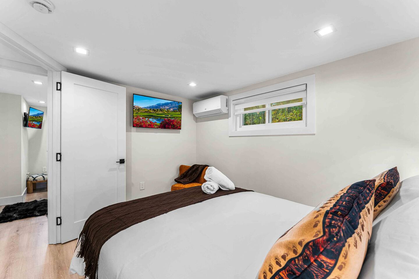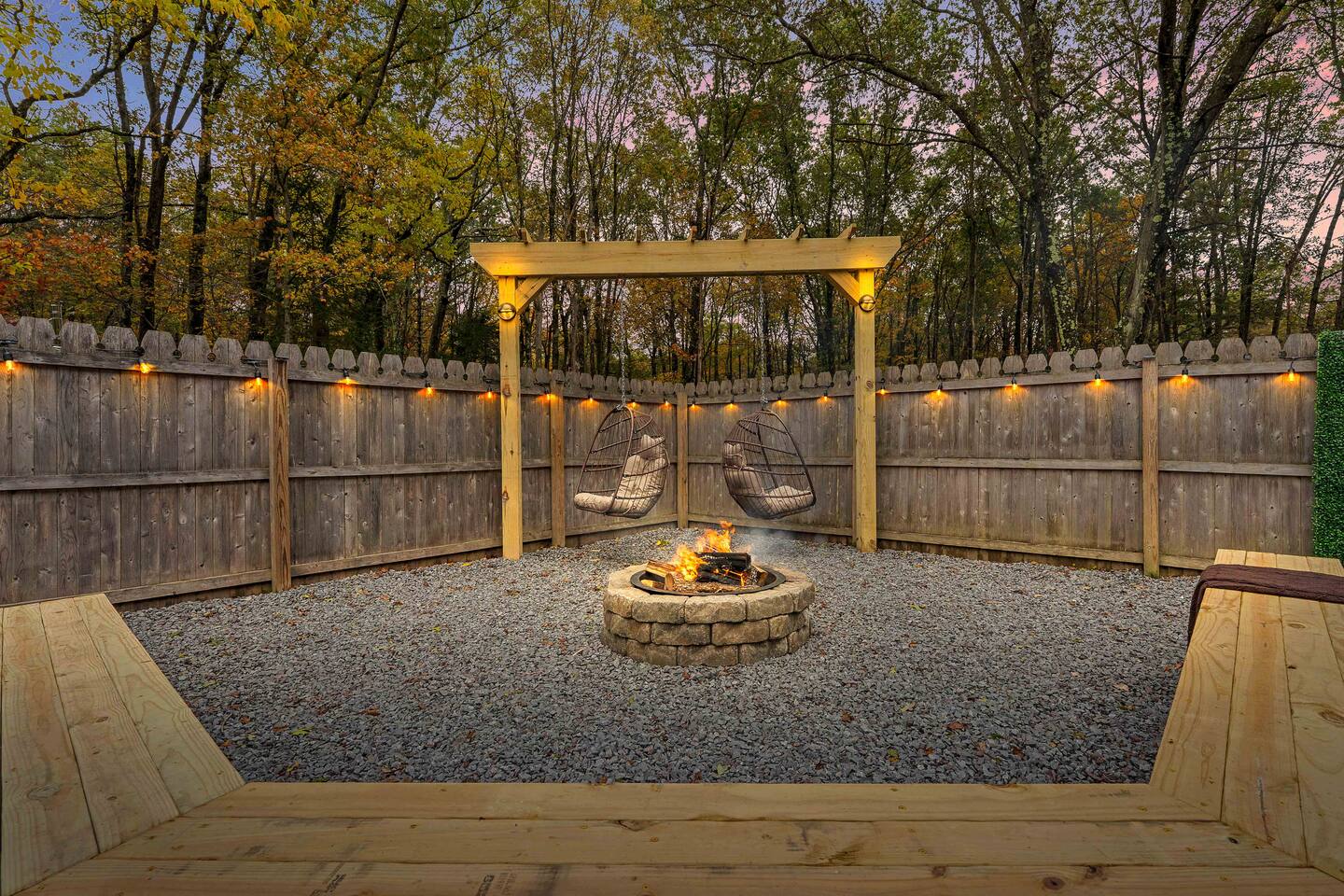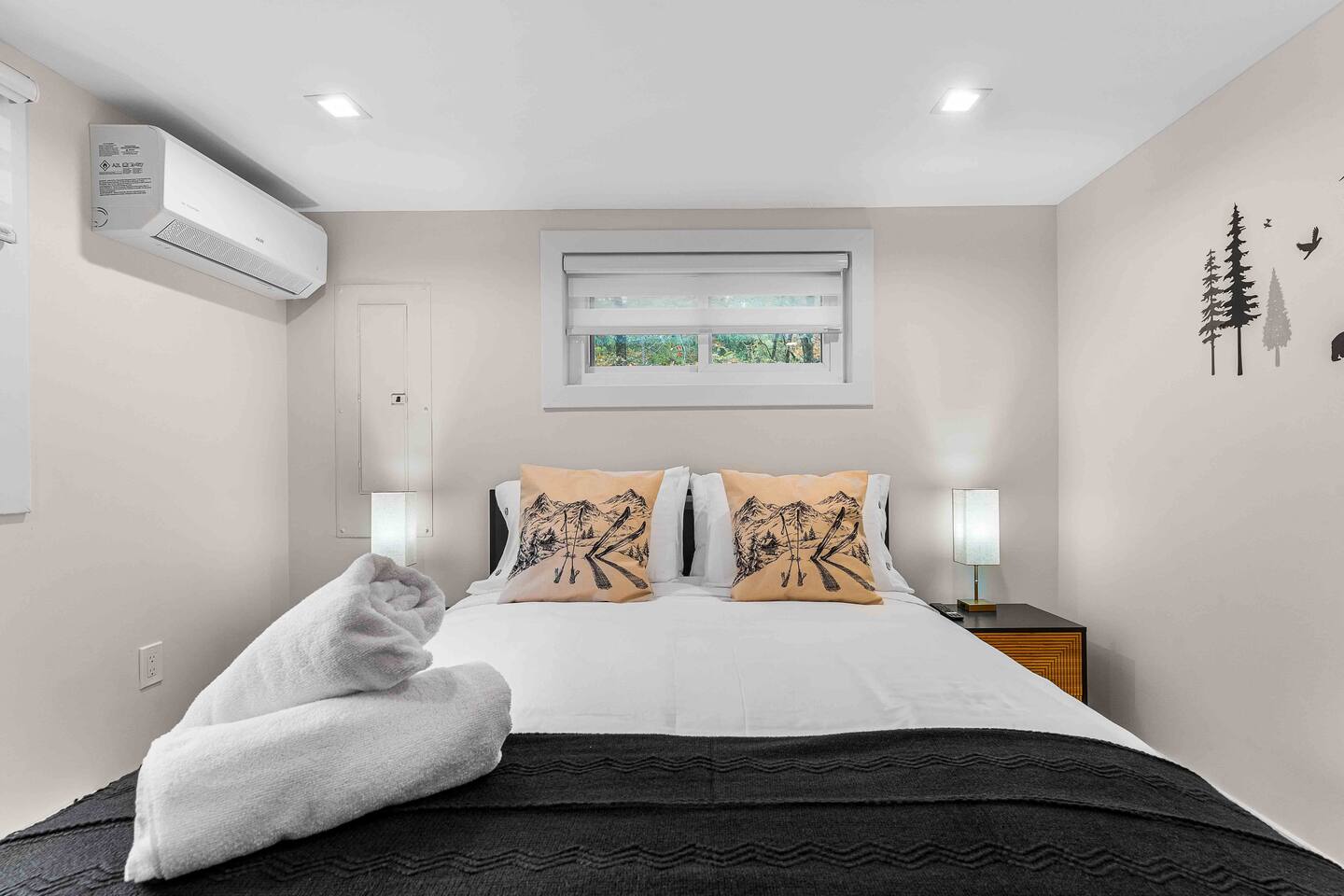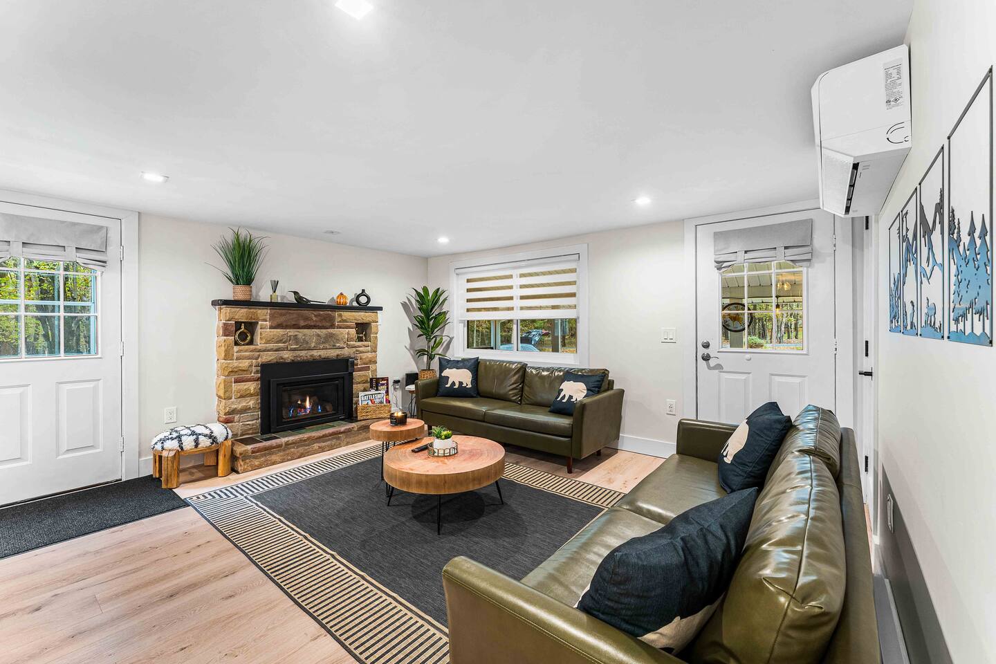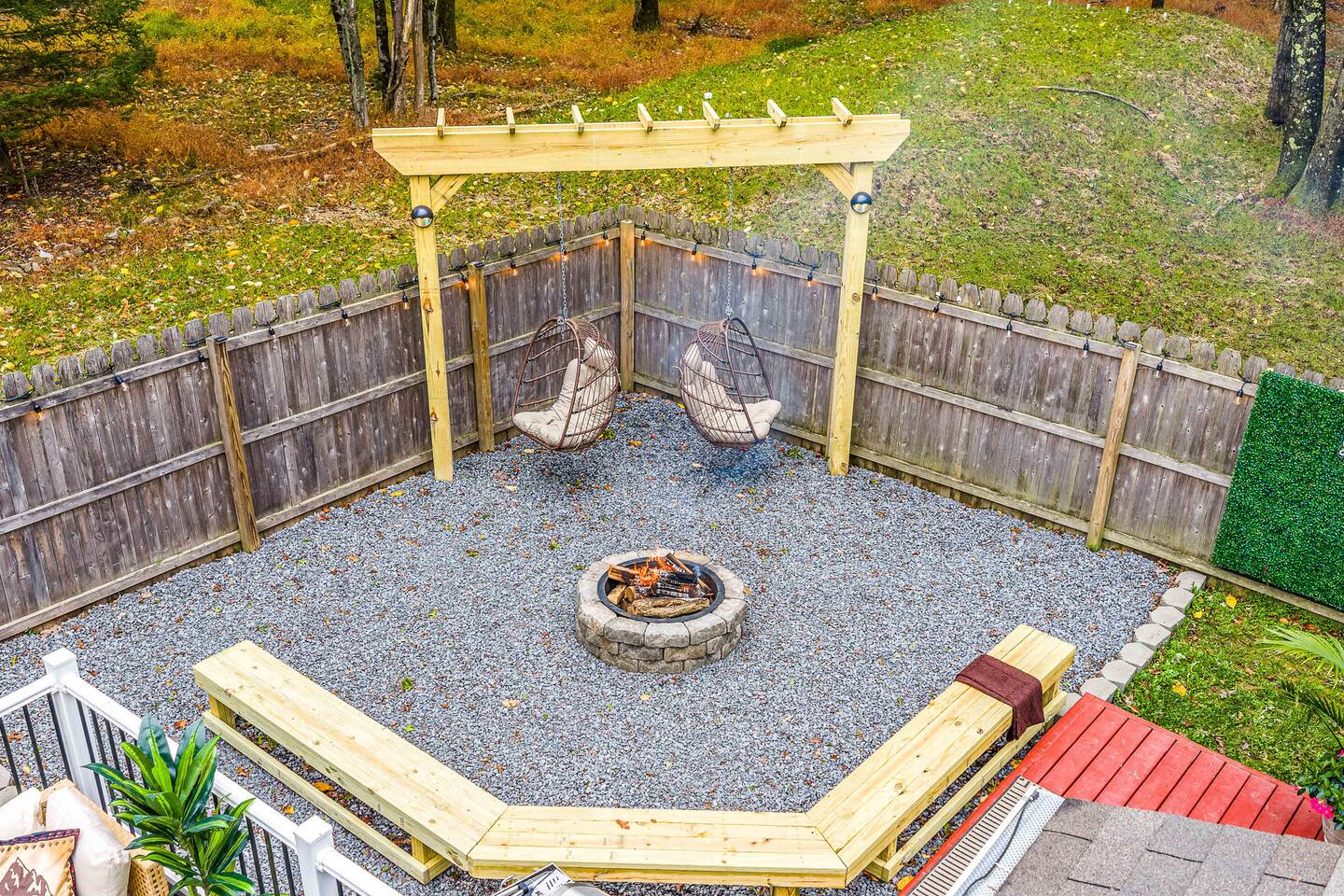 WELCOME TO OUR CABIN We are so happy to host you and hope you enjoy every moment of your stay! This cozy and stylish home is designed for comfort, relaxation, and creating special memories with family and friends. INSIDE As you enter through the side entrance, you’ll be welcomed by an open-concept space filled with warmth and light. To the right, a fully equipped kitchen features an eat-in island and a round dining table—perfect for shared meals. From here, you can step out to the deck or backyard for fresh air and outdoor enjoyment. Across from the entrance, the living room offers a gas fireplace and a smart TV—ideal for movie nights or board games. Connected to it is a bright sunroom with a sitting area, leading directly to the front yard. Behind the door next to the sunroom, you’ll find a stackable washer and dryer for your convenience. Down the hallway, the first door on the right is a full bathroom with a tub and shower combo. The closet opposite is for owners’ use. At the end of the hallway are two bedrooms, each with a queen-size bed, closet, and TV for your comfort. Sleeping arrangement can accommodate up to 6 guests, with 2 queen size bedrooms we have and 2 air mattresses. DECK Relax on the deck’s cozy sitting area with a gas firepit, perfect for morning coffee or evening chats. A few steps down lead you to the backyard oasis. BACKYARD Unwind in the electric hot tub while enjoying your favorite shows on the outdoor TV. Fire up the propane BBQ for a delicious meal, or capture fun moments by the artificial grass wall with a neon sign. Gather around the wood fire pit, complete with a wooden bench and swing set—an inviting spot for s’mores and stories. The fully fenced yard ensures privacy and safety for all. Please note: Guests do not have access to the garage.