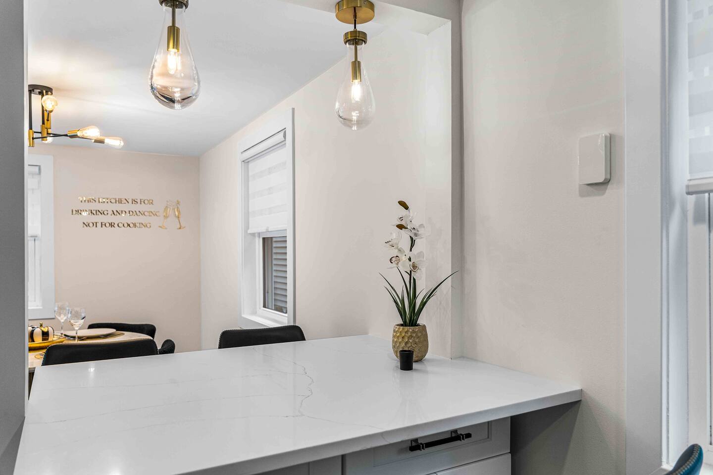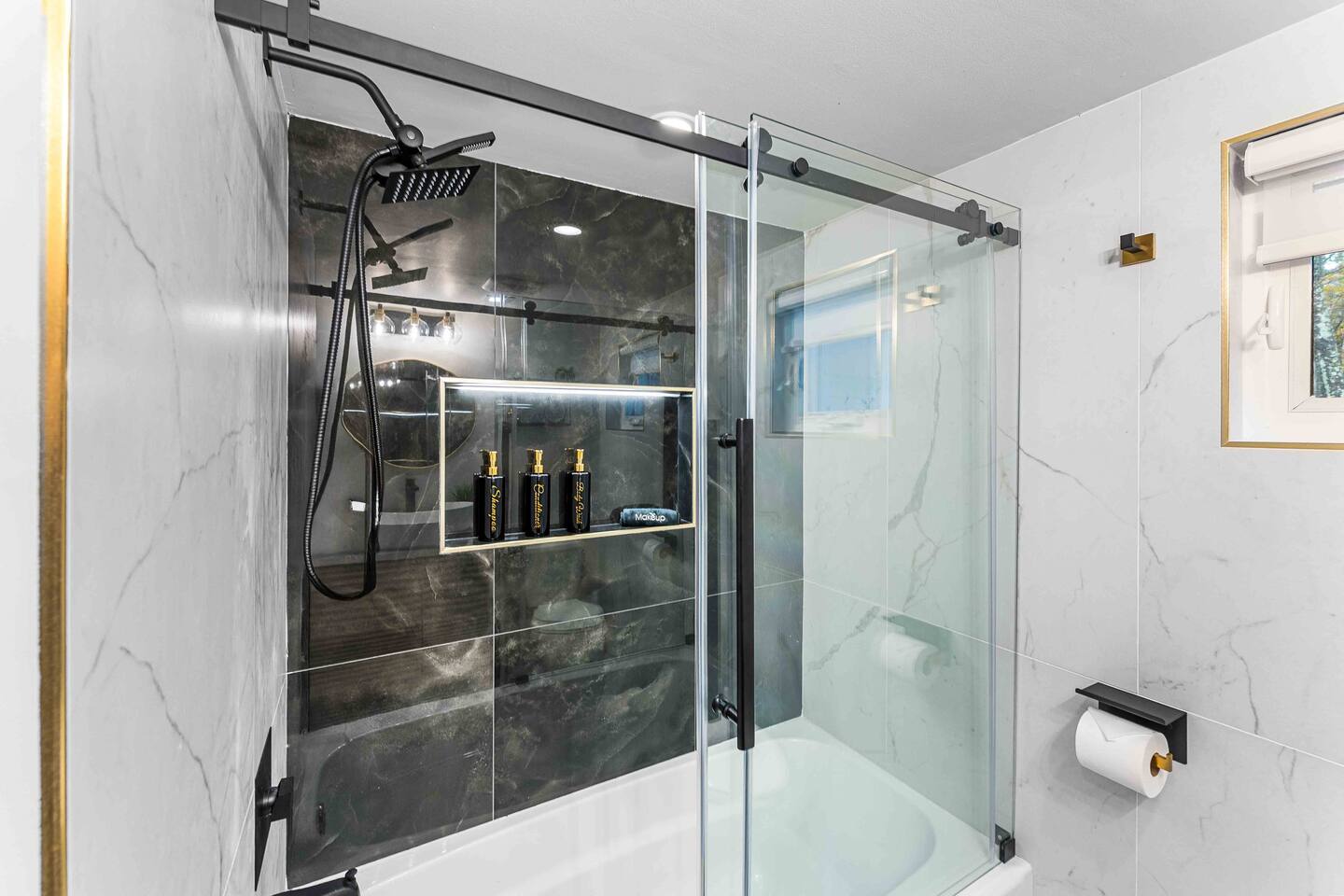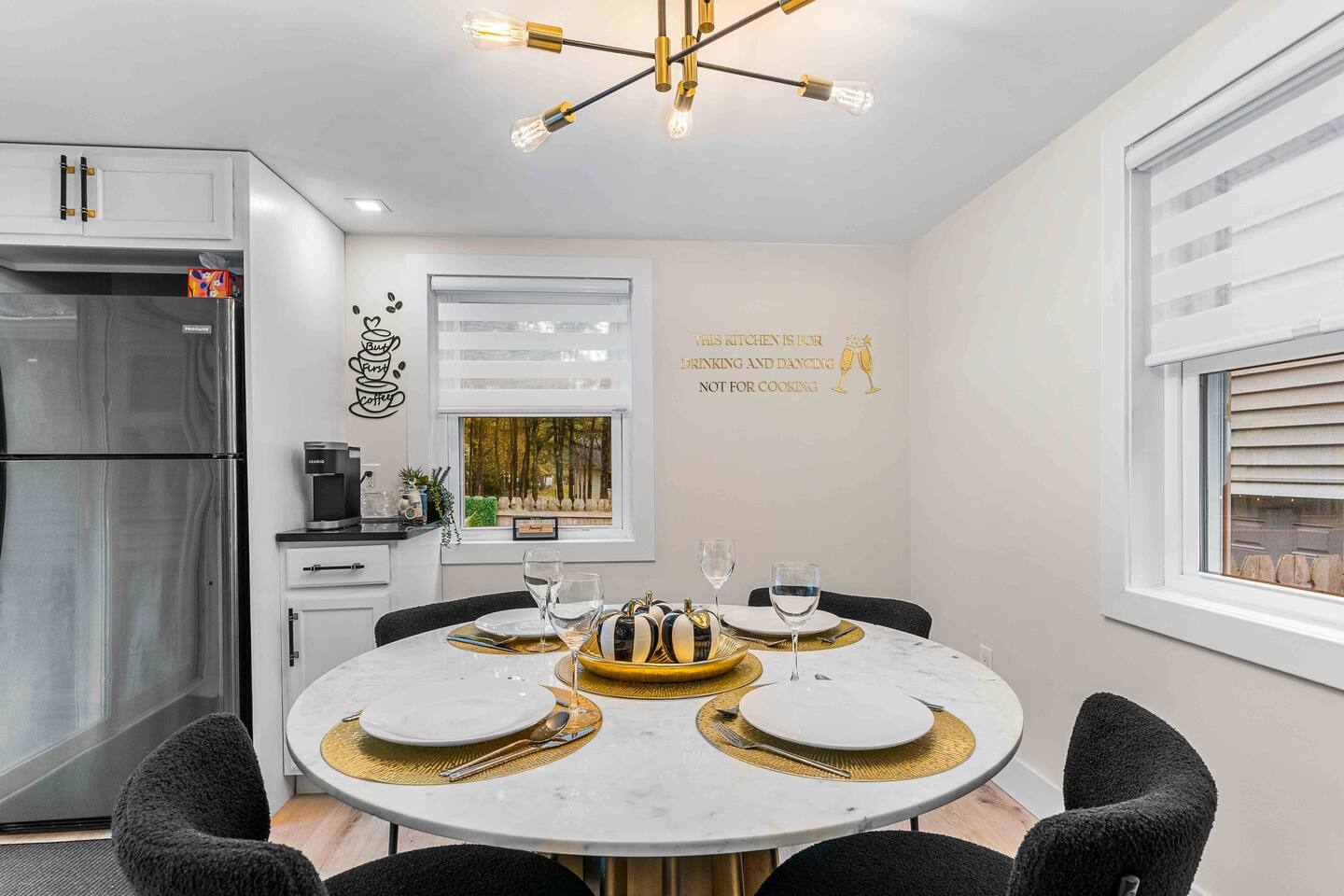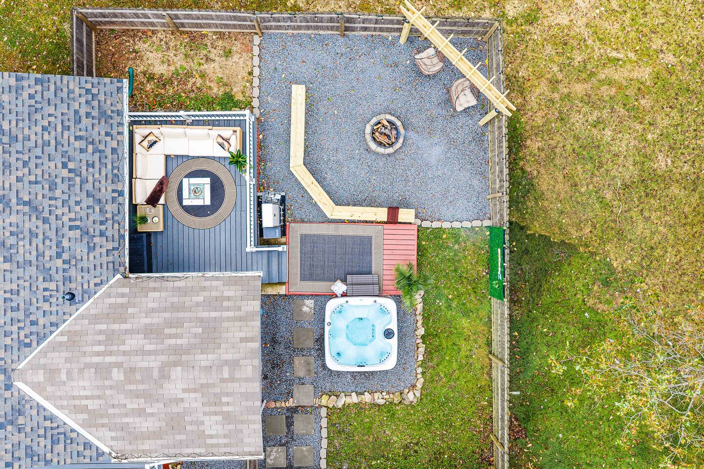 WELCOME TO OUR CABIN We are so happy to host you and hope you enjoy every moment of your stay! This cozy and stylish home is designed for comfort, relaxation, and creating special memories with family and friends. INSIDE As you enter through the side entrance, you’ll be welcomed by an open-concept space filled with warmth and light. To the right, a fully equipped kitchen features an eat-in island and a round dining table—perfect for shared meals. From here, you can step out to the deck or backyard for fresh air and outdoor enjoyment. Across from the entrance, the living room offers a gas fireplace and a smart TV—ideal for movie nights or board games. Connected to it is a bright sunroom with a sitting area, leading directly to the front yard. Behind the door next to the sunroom, you’ll find a stackable washer and dryer for your convenience. Down the hallway, the first door on the right is a full bathroom with a tub and shower combo. The closet opposite is for owners’ use. At the end of the hallway are two bedrooms, each with a queen-size bed, closet, and TV for your comfort. Sleeping arrangement can accommodate up to 6 guests, with 2 queen size bedrooms we have and 2 air mattresses. DECK Relax on the deck’s cozy sitting area with a gas firepit, perfect for morning coffee or evening chats. A few steps down lead you to the backyard oasis. BACKYARD Unwind in the electric hot tub while enjoying your favorite shows on the outdoor TV. Fire up the propane BBQ for a delicious meal, or capture fun moments by the artificial grass wall with a neon sign. Gather around the wood fire pit, complete with a wooden bench and swing set—an inviting spot for s’mores and stories. The fully fenced yard ensures privacy and safety for all. Please note: Guests do not have access to the garage.