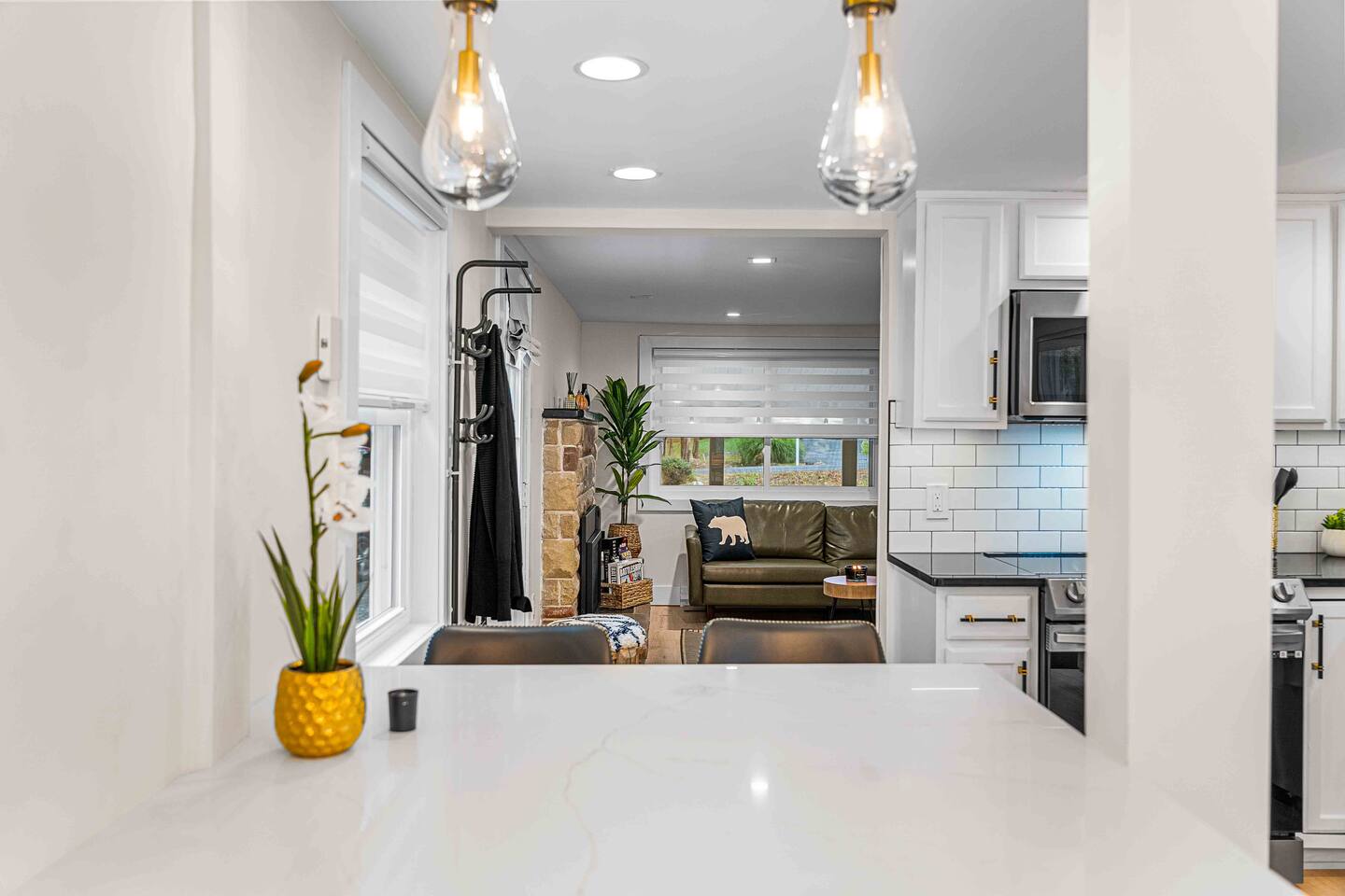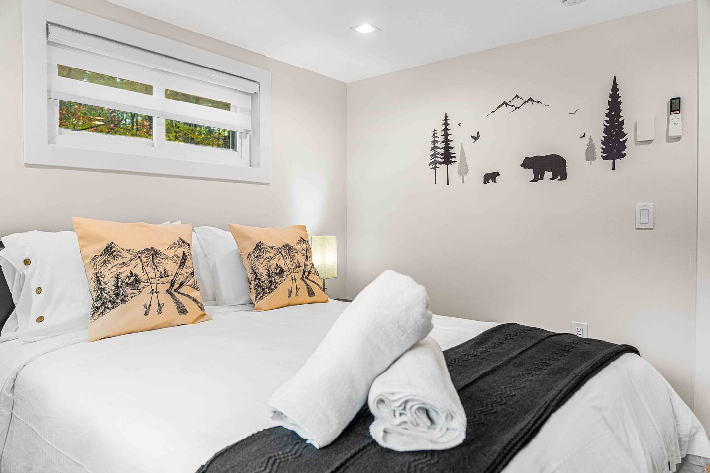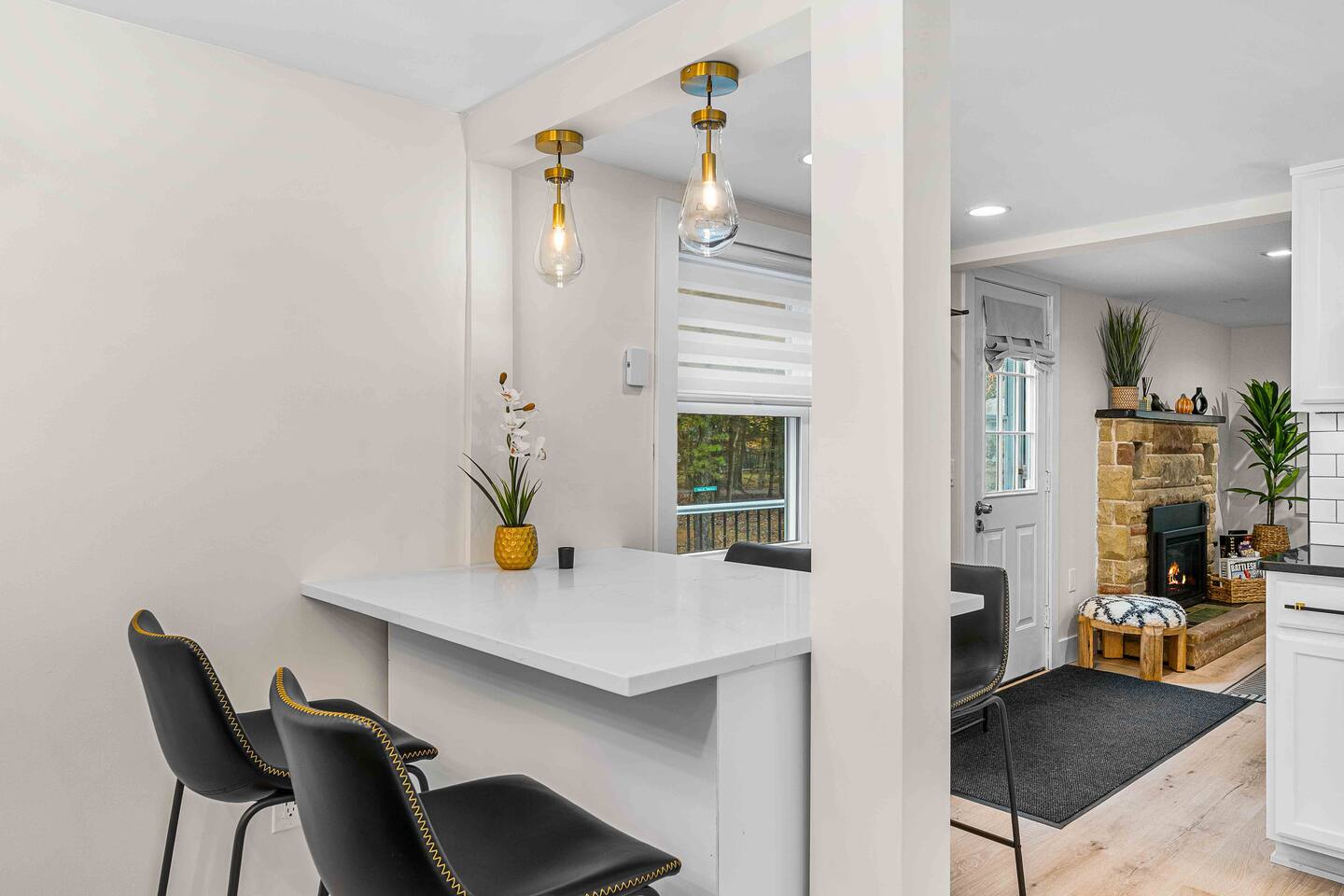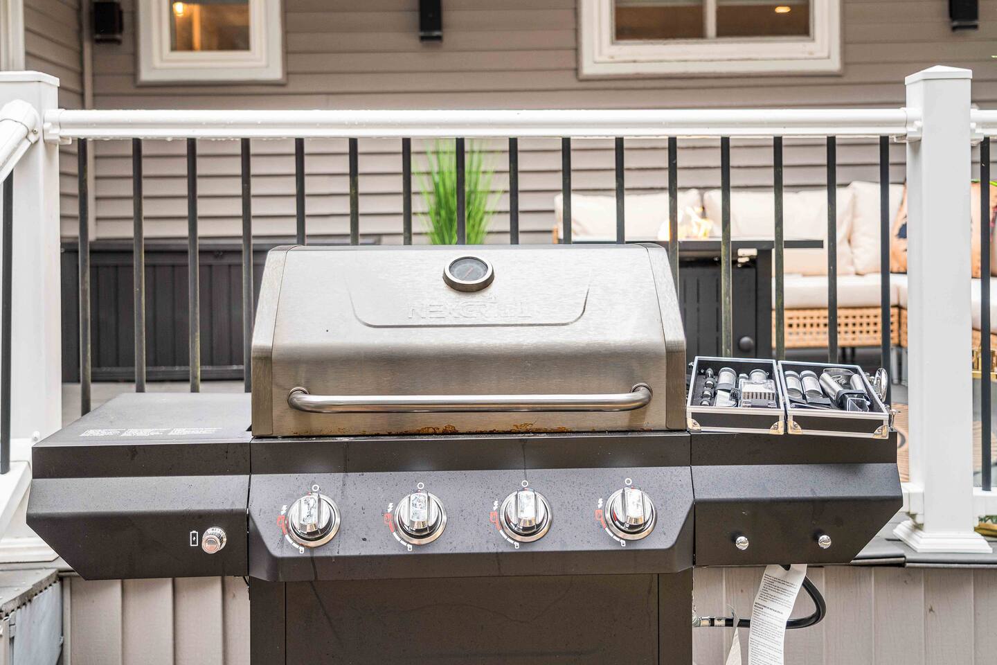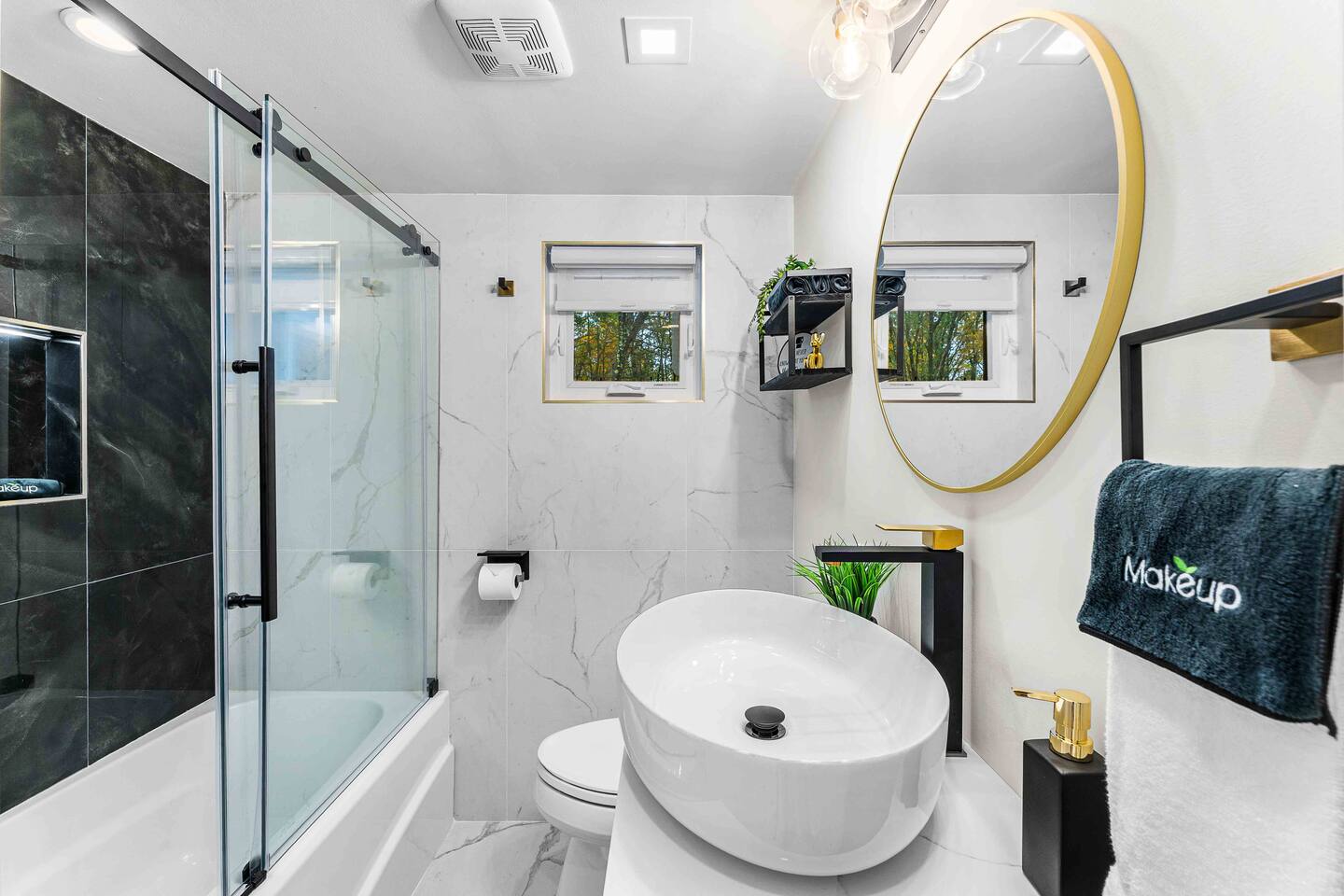 WELCOME TO OUR CABIN We are so happy to host you and hope you enjoy every moment of your stay! This cozy and stylish home is designed for comfort, relaxation, and creating special memories with family and friends. INSIDE As you enter through the side entrance, you’ll be welcomed by an open-concept space filled with warmth and light. To the right, a fully equipped kitchen features an eat-in island and a round dining table—perfect for shared meals. From here, you can step out to the deck or backyard for fresh air and outdoor enjoyment. Across from the entrance, the living room offers a gas fireplace and a smart TV—ideal for movie nights or board games. Connected to it is a bright sunroom with a sitting area, leading directly to the front yard. Behind the door next to the sunroom, you’ll find a stackable washer and dryer for your convenience. Down the hallway, the first door on the right is a full bathroom with a tub and shower combo. The closet opposite is for owners’ use. At the end of the hallway are two bedrooms, each with a queen-size bed, closet, and TV for your comfort. Sleeping arrangement can accommodate up to 6 guests, with 2 queen size bedrooms we have and 2 air mattresses. DECK Relax on the deck’s cozy sitting area with a gas firepit, perfect for morning coffee or evening chats. A few steps down lead you to the backyard oasis. BACKYARD Unwind in the electric hot tub while enjoying your favorite shows on the outdoor TV. Fire up the propane BBQ for a delicious meal, or capture fun moments by the artificial grass wall with a neon sign. Gather around the wood fire pit, complete with a wooden bench and swing set—an inviting spot for s’mores and stories. The fully fenced yard ensures privacy and safety for all. Please note: Guests do not have access to the garage.
