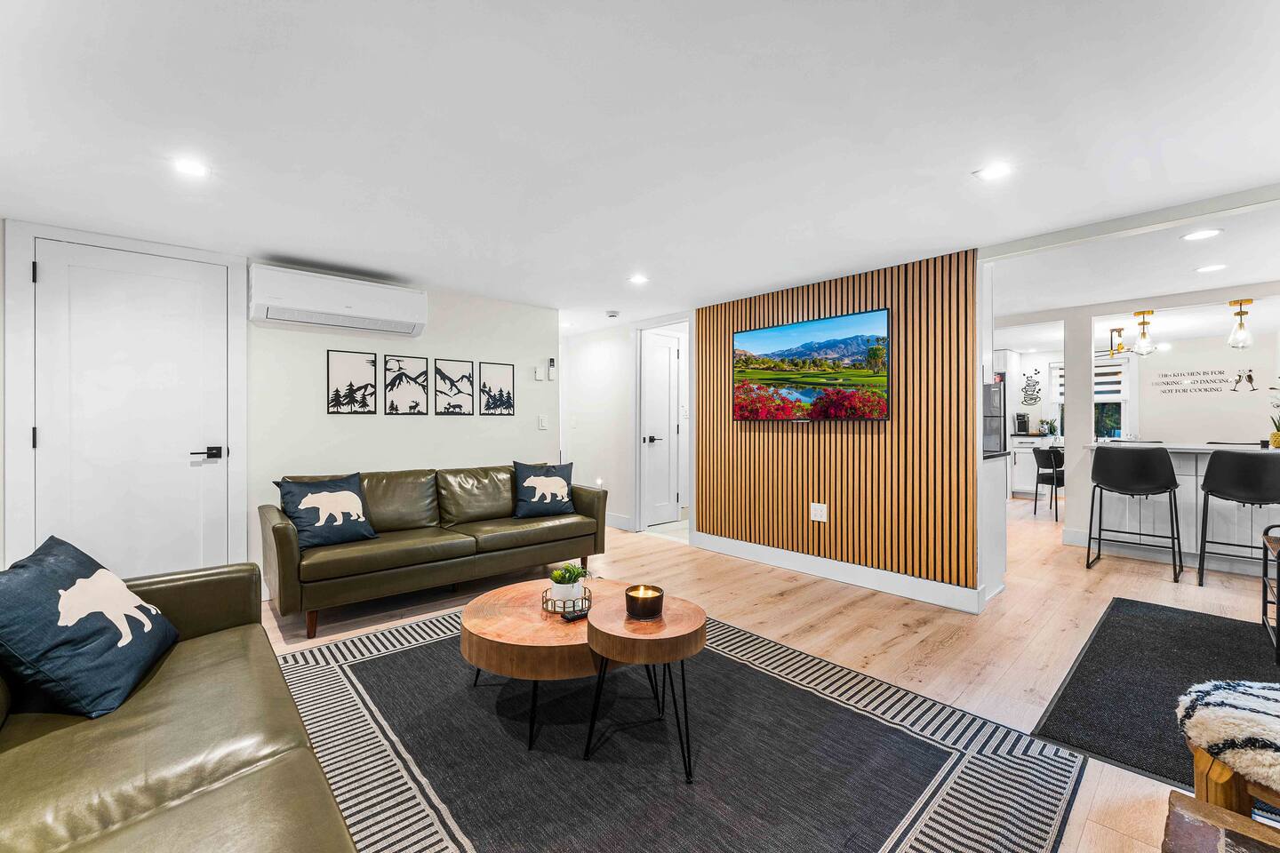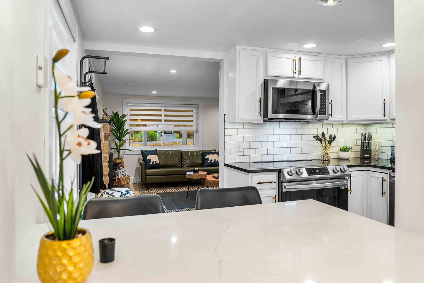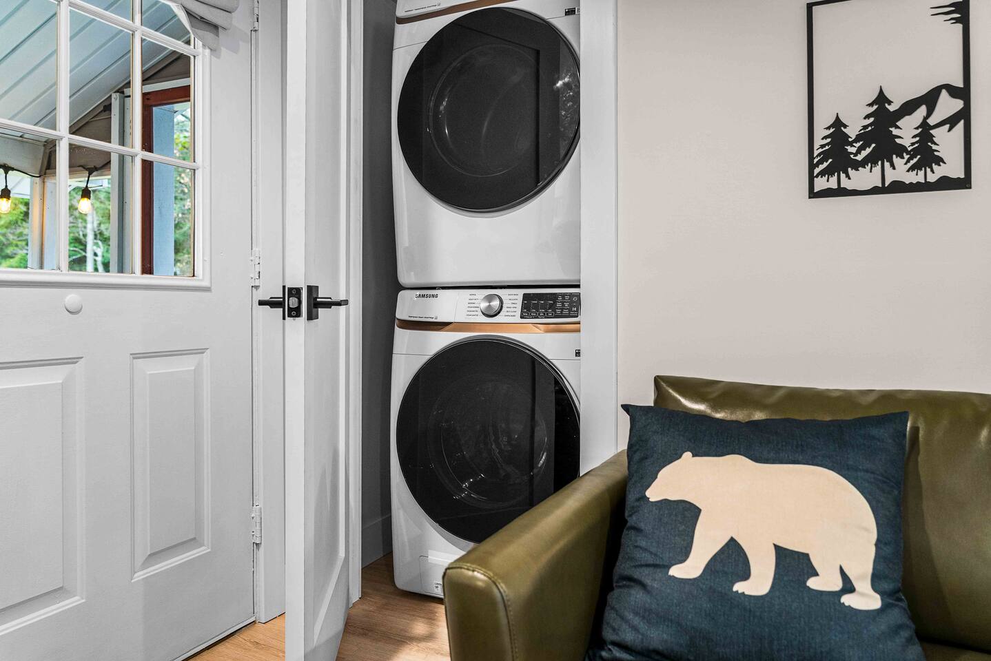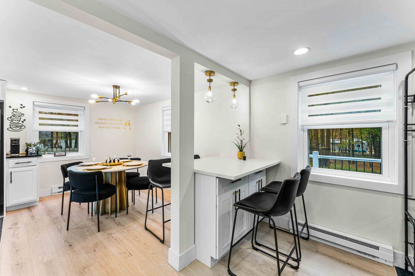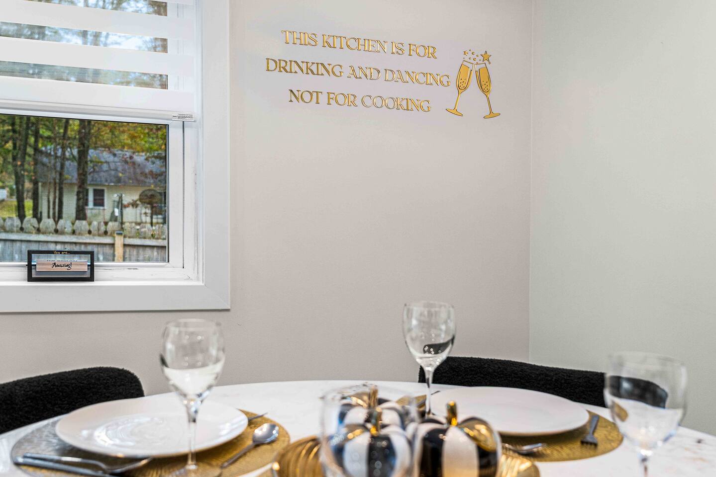 WELCOME TO OUR CABIN We are so happy to host you and hope you enjoy every moment of your stay! This cozy and stylish home is designed for comfort, relaxation, and creating special memories with family and friends. INSIDE As you enter through the side entrance, you’ll be welcomed by an open-concept space filled with warmth and light. To the right, a fully equipped kitchen features an eat-in island and a round dining table—perfect for shared meals. From here, you can step out to the deck or backyard for fresh air and outdoor enjoyment. Across from the entrance, the living room offers a gas fireplace and a smart TV—ideal for movie nights or board games. Connected to it is a bright sunroom with a sitting area, leading directly to the front yard. Behind the door next to the sunroom, you’ll find a stackable washer and dryer for your convenience. Down the hallway, the first door on the right is a full bathroom with a tub and shower combo. The closet opposite is for owners’ use. At the end of the hallway are two bedrooms, each with a queen-size bed, closet, and TV for your comfort. Sleeping arrangement can accommodate up to 6 guests, with 2 queen size bedrooms we have and 2 air mattresses. DECK Relax on the deck’s cozy sitting area with a gas firepit, perfect for morning coffee or evening chats. A few steps down lead you to the backyard oasis. BACKYARD Unwind in the electric hot tub while enjoying your favorite shows on the outdoor TV. Fire up the propane BBQ for a delicious meal, or capture fun moments by the artificial grass wall with a neon sign. Gather around the wood fire pit, complete with a wooden bench and swing set—an inviting spot for s’mores and stories. The fully fenced yard ensures privacy and safety for all. Please note: Guests do not have access to the garage.