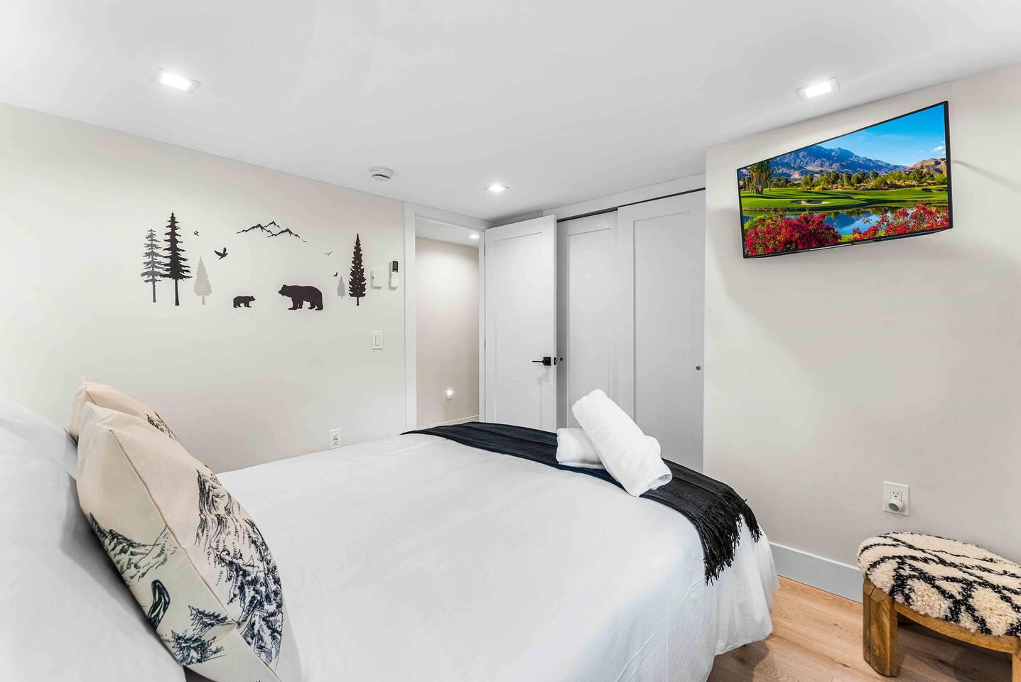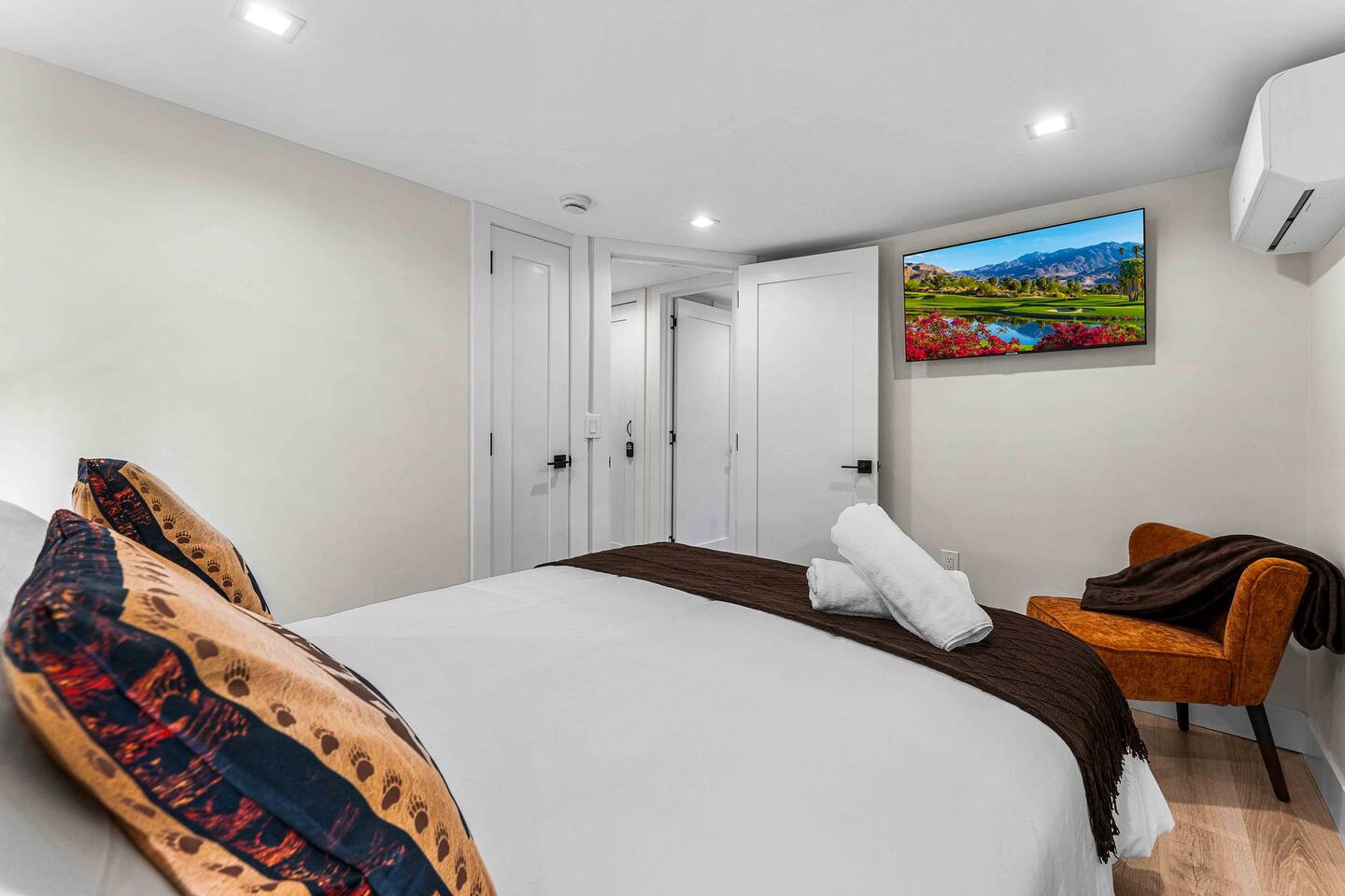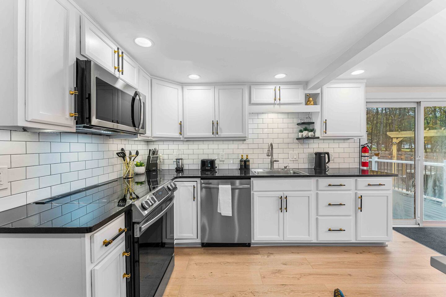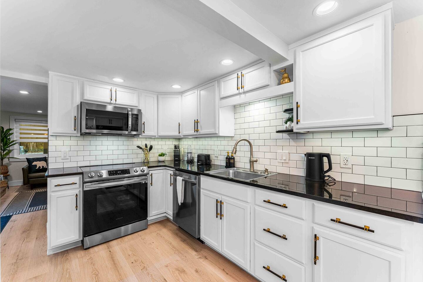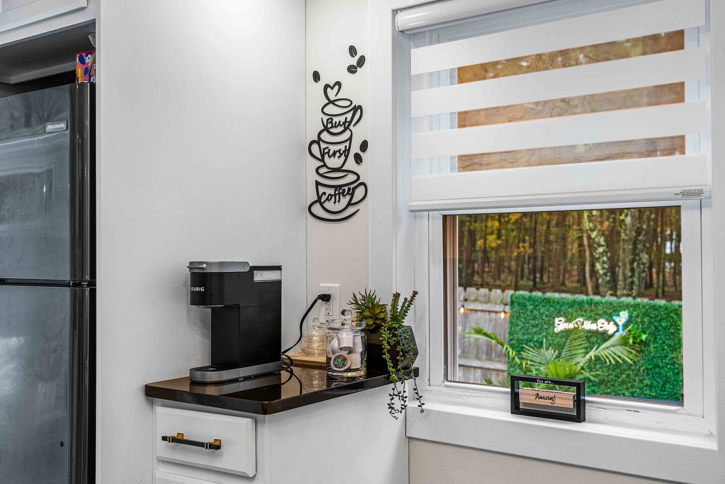 WELCOME TO OUR CABIN We are so happy to host you and hope you enjoy every moment of your stay! This cozy and stylish home is designed for comfort, relaxation, and creating special memories with family and friends. INSIDE As you enter through the side entrance, you’ll be welcomed by an open-concept space filled with warmth and light. To the right, a fully equipped kitchen features an eat-in island and a round dining table—perfect for shared meals. From here, you can step out to the deck or backyard for fresh air and outdoor enjoyment. Across from the entrance, the living room offers a gas fireplace and a smart TV—ideal for movie nights or board games. Connected to it is a bright sunroom with a sitting area, leading directly to the front yard. Behind the door next to the sunroom, you’ll find a stackable washer and dryer for your convenience. Down the hallway, the first door on the right is a full bathroom with a tub and shower combo. The closet opposite is for owners’ use. At the end of the hallway are two bedrooms, each with a queen-size bed, closet, and TV for your comfort. Sleeping arrangement can accommodate up to 6 guests, with 2 queen size bedrooms we have and 2 air mattresses. DECK Relax on the deck’s cozy sitting area with a gas firepit, perfect for morning coffee or evening chats. A few steps down lead you to the backyard oasis. BACKYARD Unwind in the electric hot tub while enjoying your favorite shows on the outdoor TV. Fire up the propane BBQ for a delicious meal, or capture fun moments by the artificial grass wall with a neon sign. Gather around the wood fire pit, complete with a wooden bench and swing set—an inviting spot for s’mores and stories. The fully fenced yard ensures privacy and safety for all. Please note: Guests do not have access to the garage.
