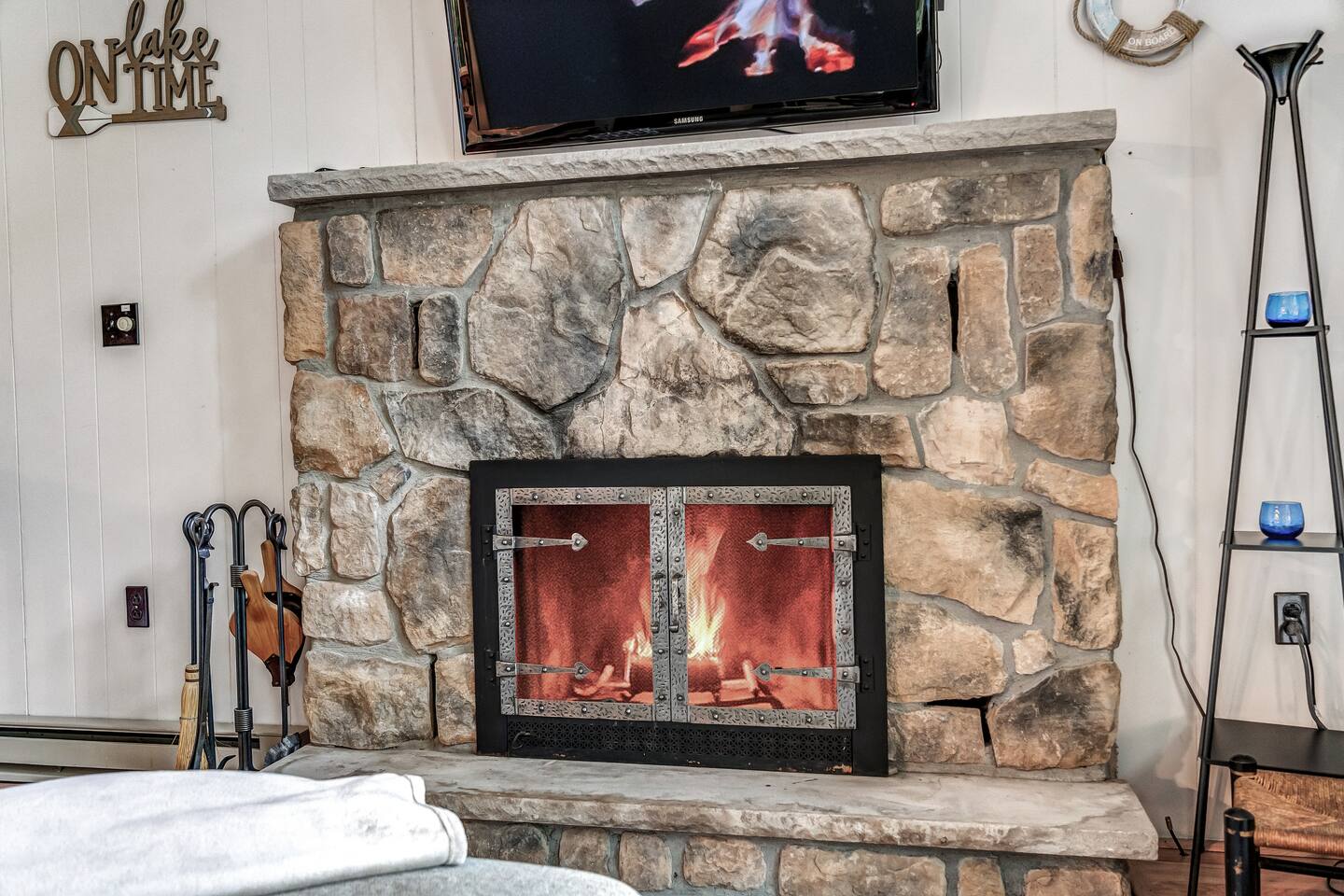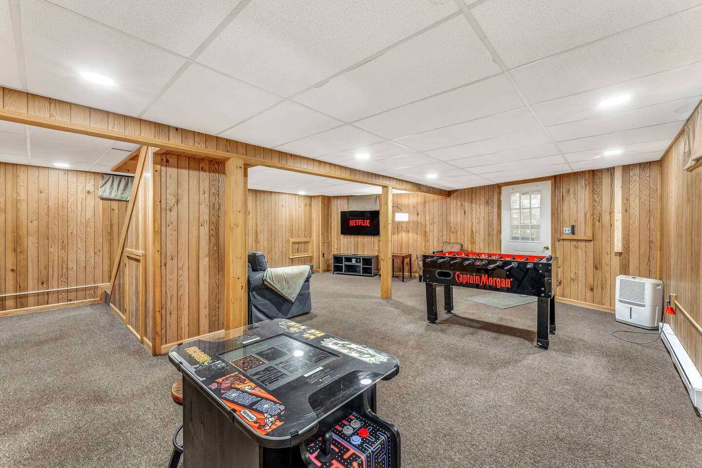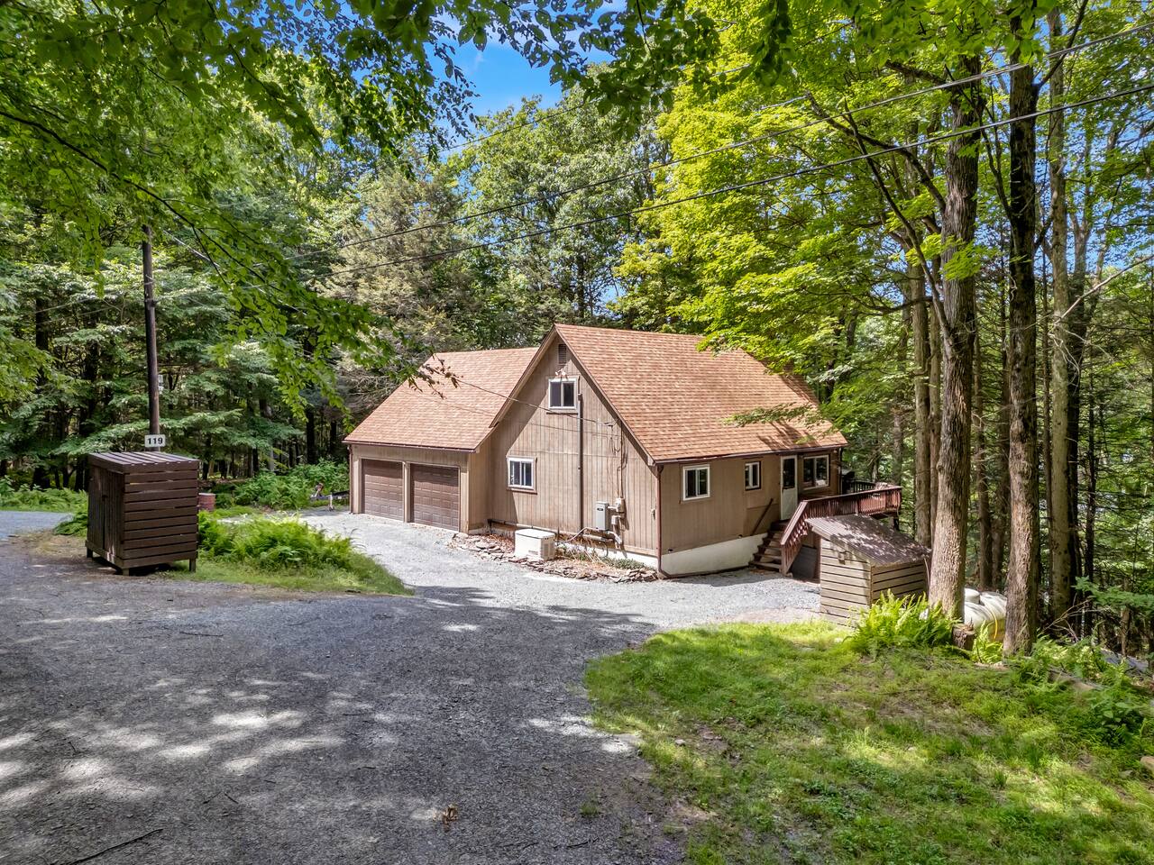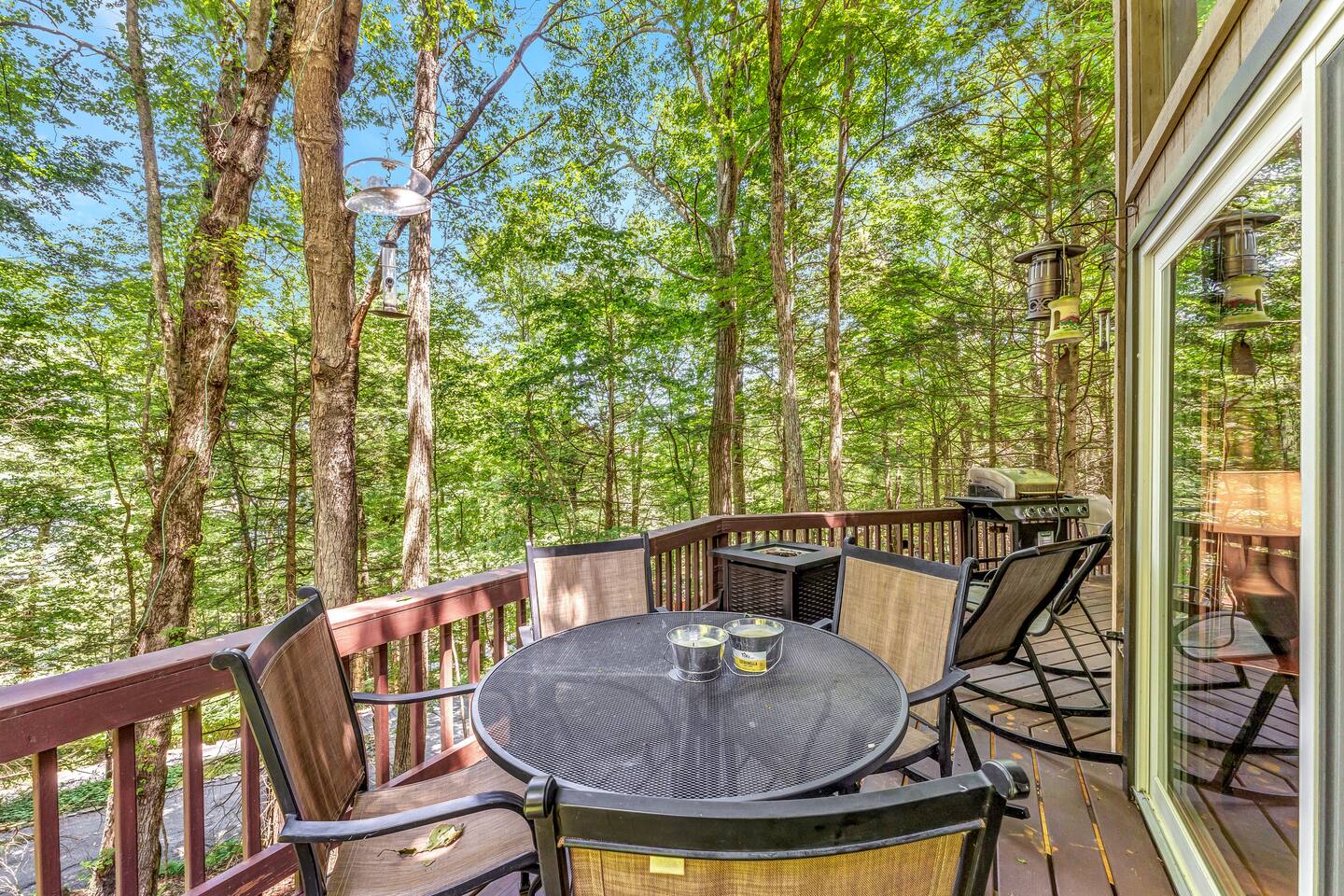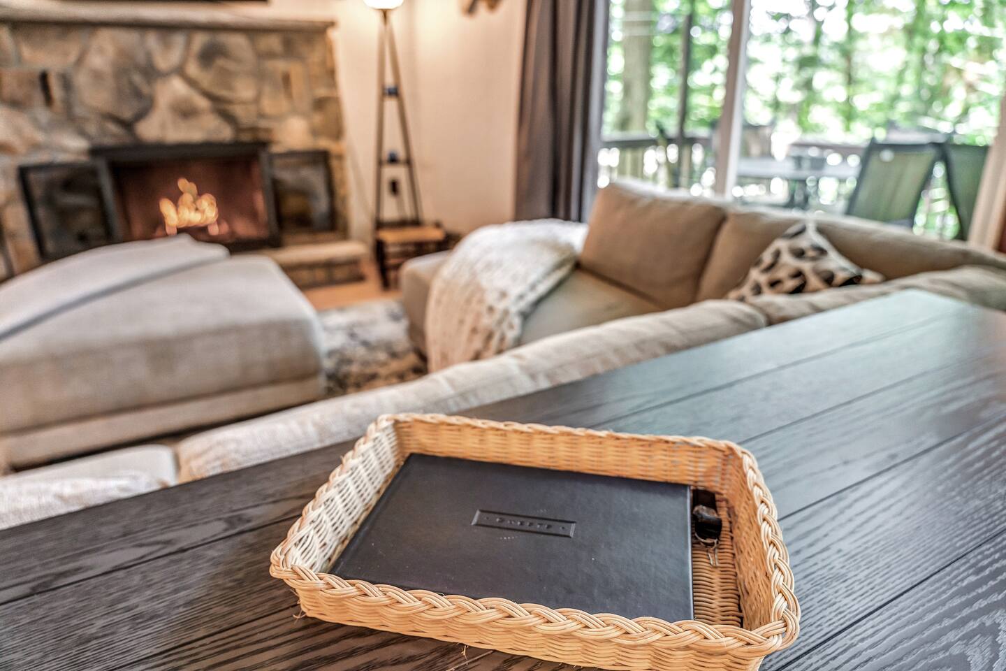 Feel Free to Review the Video of our Property! UPPER LEVEL: Enjoy the comfort of the primary suite featuring a luxurious king-sized bed and a Roku TV for entertainment. For extra sleeping arrangements, there's an additional single bed that rolls out to another single bed, perfect for families or groups needing flexibility. The suite connects to a small hallway where you'll find a locked closet designated for owner use. A full bathroom with a shower completes this level, offering privacy and convenience. Continuing through the hallway you will find another Bedroom with two full beds and a half bathroom. MIDDLE LEVEL: Main Living area offers spacious living space perfect for relaxation. Gather around the wood-burning fireplace on chilly evenings, or unwind in front of the TV after a day of adventure. The cozy living room is designed for comfort and features ample seating for everyone. Adjacent to the living room is the dining area perfect for family meals or group gatherings. The nearby kitchen is equipped with modern appliances, making meal preparation a breeze. Whether you're whipping up breakfast or cooking a gourmet dinner, you'll find everything you need right at your fingertips. A full bathroom with a shower is conveniently located on this level, ensuring everyone has easy access to facilities without having to climb stairs. Bedrooms on Middle Level: On this level, you'll find two additional bedrooms: One bedroom features a comfortable full-sized bed, perfect for a couple or individual seeking privacy and relaxation. The second bedroom offers a full bunk bed setup, with a single bed over a full-sized bed. This arrangement is ideal for families or groups, providing flexibility and plenty of sleeping space. OUTDOOR DECK: Step outside to our private deck, a perfect spot for enjoying the fresh air and soaking in the beautiful surroundings and seasonal view of Lake Wallenpaupack. Whether you're hosting a barbecue or simply relaxing with a good book, our deck is designed with your comfort in mind. BBQ Grill: Fire up the grill and cook up delicious meals for your family or friends. Dining Table: Gather around the outdoor dining table for al fresco meals under the sun or stars. It's the ideal setting for enjoying your favorite dishes while surrounded by nature. Gas Firepit: As the evening cools down, gather around the cozy gas firepit. Perfect for roasting marshmallows, sharing stories, or simply relaxing with a warm drink, the firepit adds a touch of warmth and ambiance to your outdoor experience. LOWER LEVEL: Descend to our lower level and discover a haven of entertainment and relaxation. Second Living Room: Relax on the comfortable couch and catch up on your favorite shows using the Roku-enabled TV. The foosball table and arcade game add a playful touch, perfect for friendly competitions and hours of entertainment. Laundry Room: Conveniently located on the lower level, our laundry room is equipped with a washer and dryer, making it easy to keep your clothes clean and fresh during your stay. Lower Level Deck: Step outside to the lower level deck, where you'll find even more amenities designed for outdoor enjoyment. Wood Burning Hot Tub: Unwind and soothe your muscles in our wood burning hot tub, surrounded by the tranquil ambiance of the outdoors. Please note that we do not provide wood for the hot tub, but it is available for purchase. Outdoor TV: Watch your favorite movies or sports games outdoors with our dedicated outdoor TV, combining the pleasures of soaking in the hot tub with entertainment. ADDITIONAL AMENITIES: Throughout the home, you'll find high-speed Wi-Fi, air conditioning for summer comfort, and heating to keep you warm during cooler months. Lots of parking for multiple cars or even a boat.