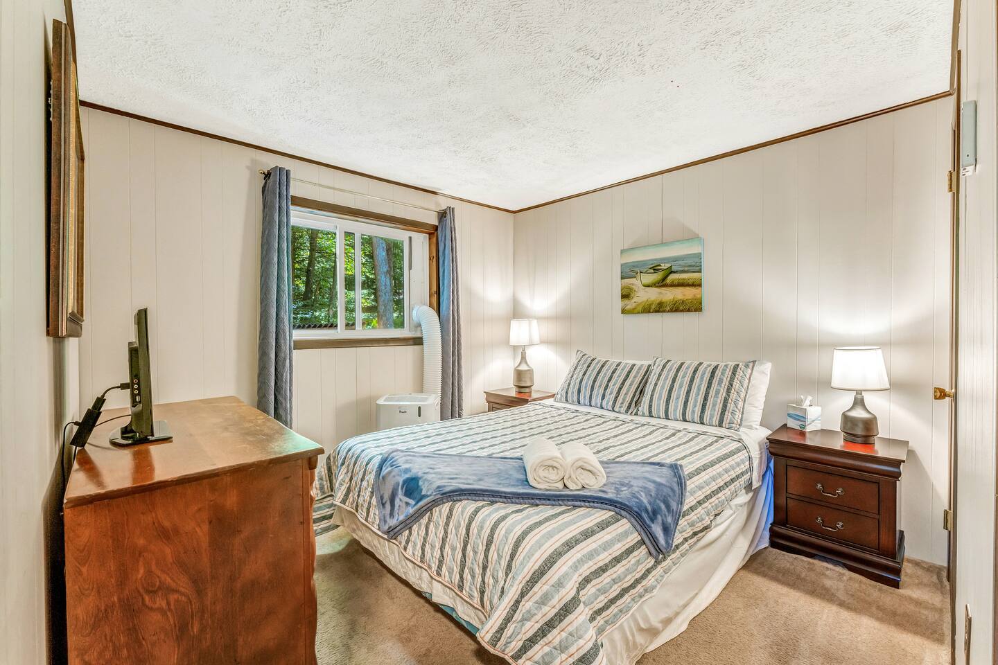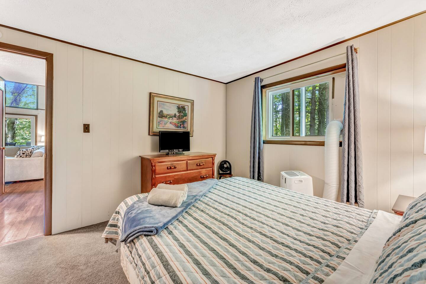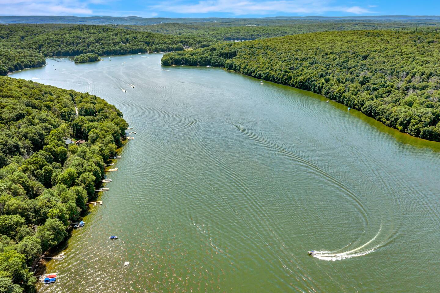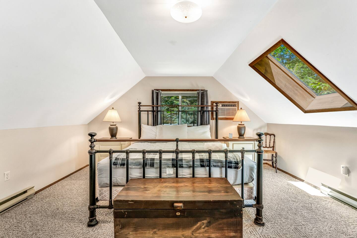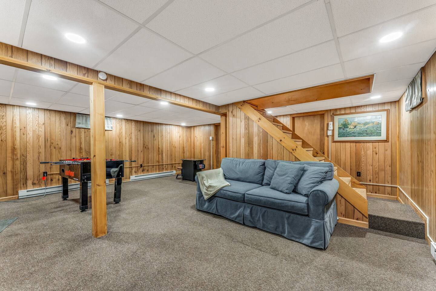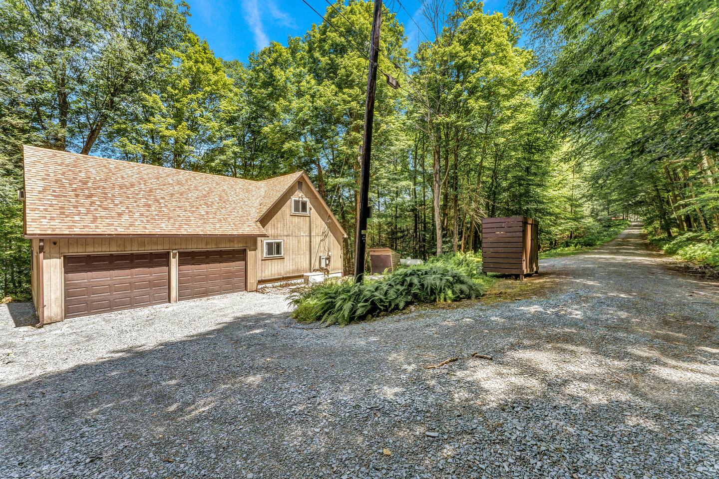 Feel Free to Review the Video of our Property! UPPER LEVEL: Enjoy the comfort of the primary suite featuring a luxurious king-sized bed and a Roku TV for entertainment. For extra sleeping arrangements, there's an additional single bed that rolls out to another single bed, perfect for families or groups needing flexibility. The suite connects to a small hallway where you'll find a locked closet designated for owner use. A full bathroom with a shower completes this level, offering privacy and convenience. Continuing through the hallway you will find another Bedroom with two full beds and a half bathroom. MIDDLE LEVEL: Main Living area offers spacious living space perfect for relaxation. Gather around the wood-burning fireplace on chilly evenings, or unwind in front of the TV after a day of adventure. The cozy living room is designed for comfort and features ample seating for everyone. Adjacent to the living room is the dining area perfect for family meals or group gatherings. The nearby kitchen is equipped with modern appliances, making meal preparation a breeze. Whether you're whipping up breakfast or cooking a gourmet dinner, you'll find everything you need right at your fingertips. A full bathroom with a shower is conveniently located on this level, ensuring everyone has easy access to facilities without having to climb stairs. Bedrooms on Middle Level: On this level, you'll find two additional bedrooms: One bedroom features a comfortable full-sized bed, perfect for a couple or individual seeking privacy and relaxation. The second bedroom offers a full bunk bed setup, with a single bed over a full-sized bed. This arrangement is ideal for families or groups, providing flexibility and plenty of sleeping space. OUTDOOR DECK: Step outside to our private deck, a perfect spot for enjoying the fresh air and soaking in the beautiful surroundings and seasonal view of Lake Wallenpaupack. Whether you're hosting a barbecue or simply relaxing with a good book, our deck is designed with your comfort in mind. BBQ Grill: Fire up the grill and cook up delicious meals for your family or friends. Dining Table: Gather around the outdoor dining table for al fresco meals under the sun or stars. It's the ideal setting for enjoying your favorite dishes while surrounded by nature. Gas Firepit: As the evening cools down, gather around the cozy gas firepit. Perfect for roasting marshmallows, sharing stories, or simply relaxing with a warm drink, the firepit adds a touch of warmth and ambiance to your outdoor experience. LOWER LEVEL: Descend to our lower level and discover a haven of entertainment and relaxation. Second Living Room: Relax on the comfortable couch and catch up on your favorite shows using the Roku-enabled TV. The foosball table and arcade game add a playful touch, perfect for friendly competitions and hours of entertainment. Laundry Room: Conveniently located on the lower level, our laundry room is equipped with a washer and dryer, making it easy to keep your clothes clean and fresh during your stay. Lower Level Deck: Step outside to the lower level deck, where you'll find even more amenities designed for outdoor enjoyment. Wood Burning Hot Tub: Unwind and soothe your muscles in our wood burning hot tub, surrounded by the tranquil ambiance of the outdoors. Please note that we do not provide wood for the hot tub, but it is available for purchase. Outdoor TV: Watch your favorite movies or sports games outdoors with our dedicated outdoor TV, combining the pleasures of soaking in the hot tub with entertainment. ADDITIONAL AMENITIES: Throughout the home, you'll find high-speed Wi-Fi, air conditioning for summer comfort, and heating to keep you warm during cooler months. Lots of parking for multiple cars or even a boat.