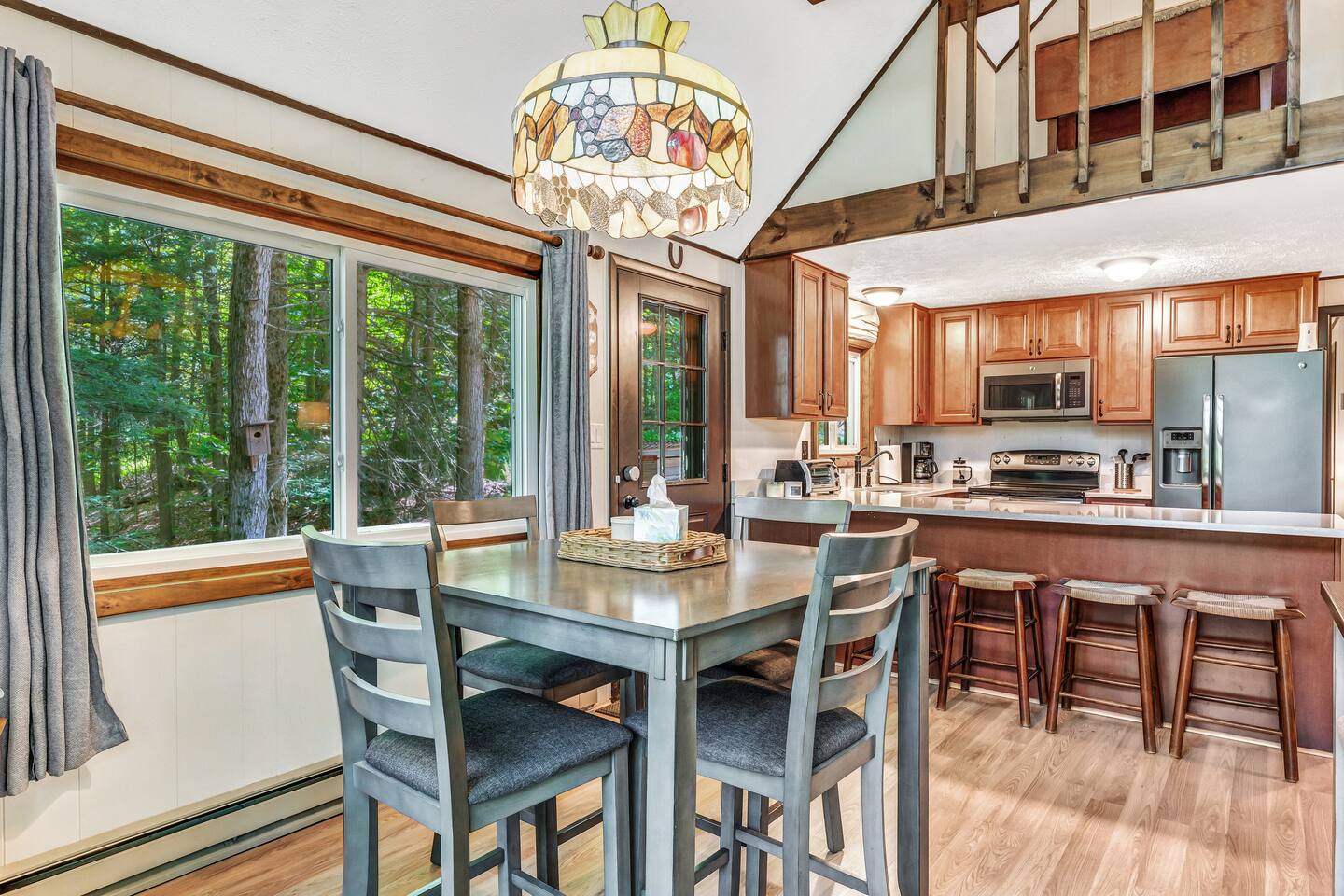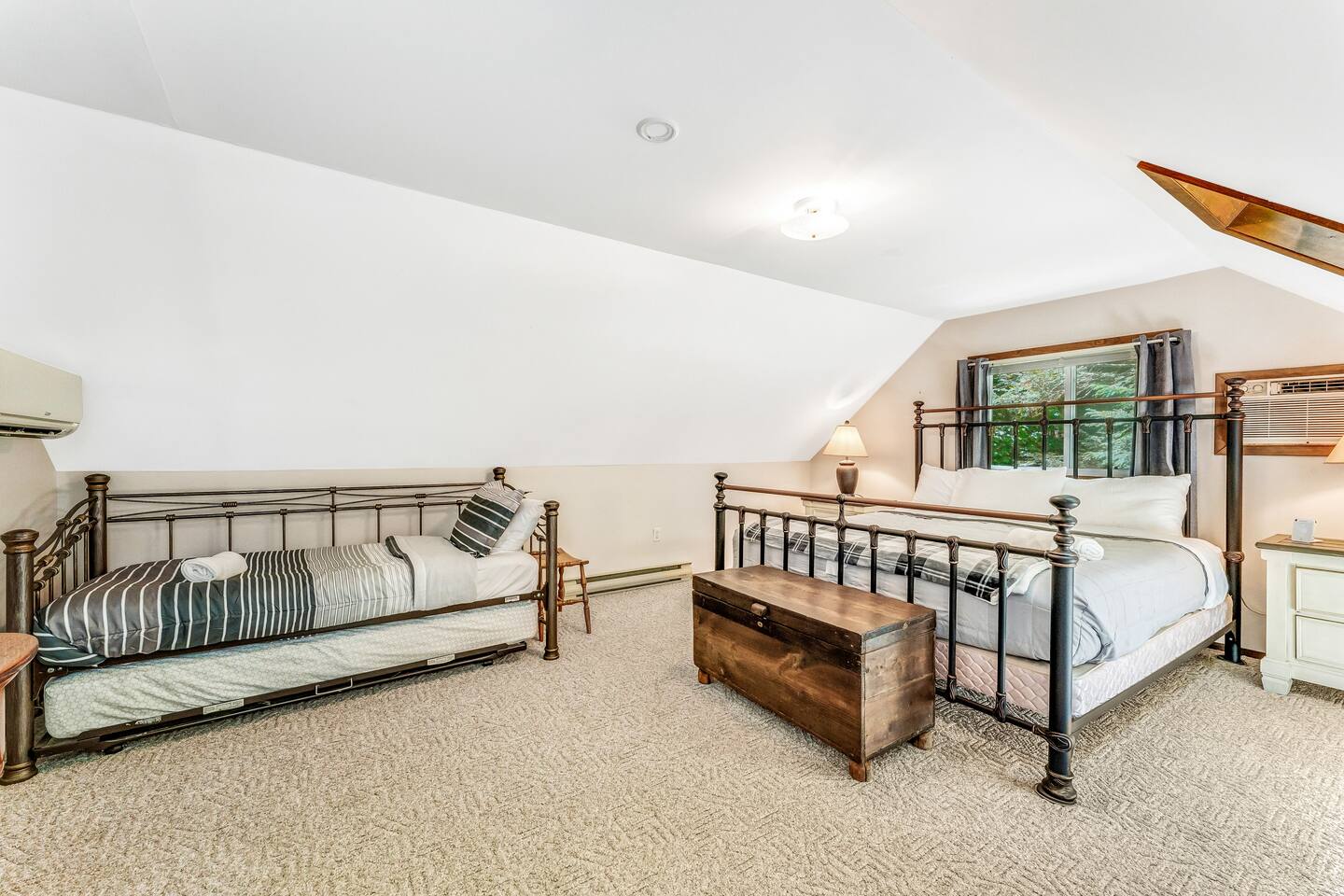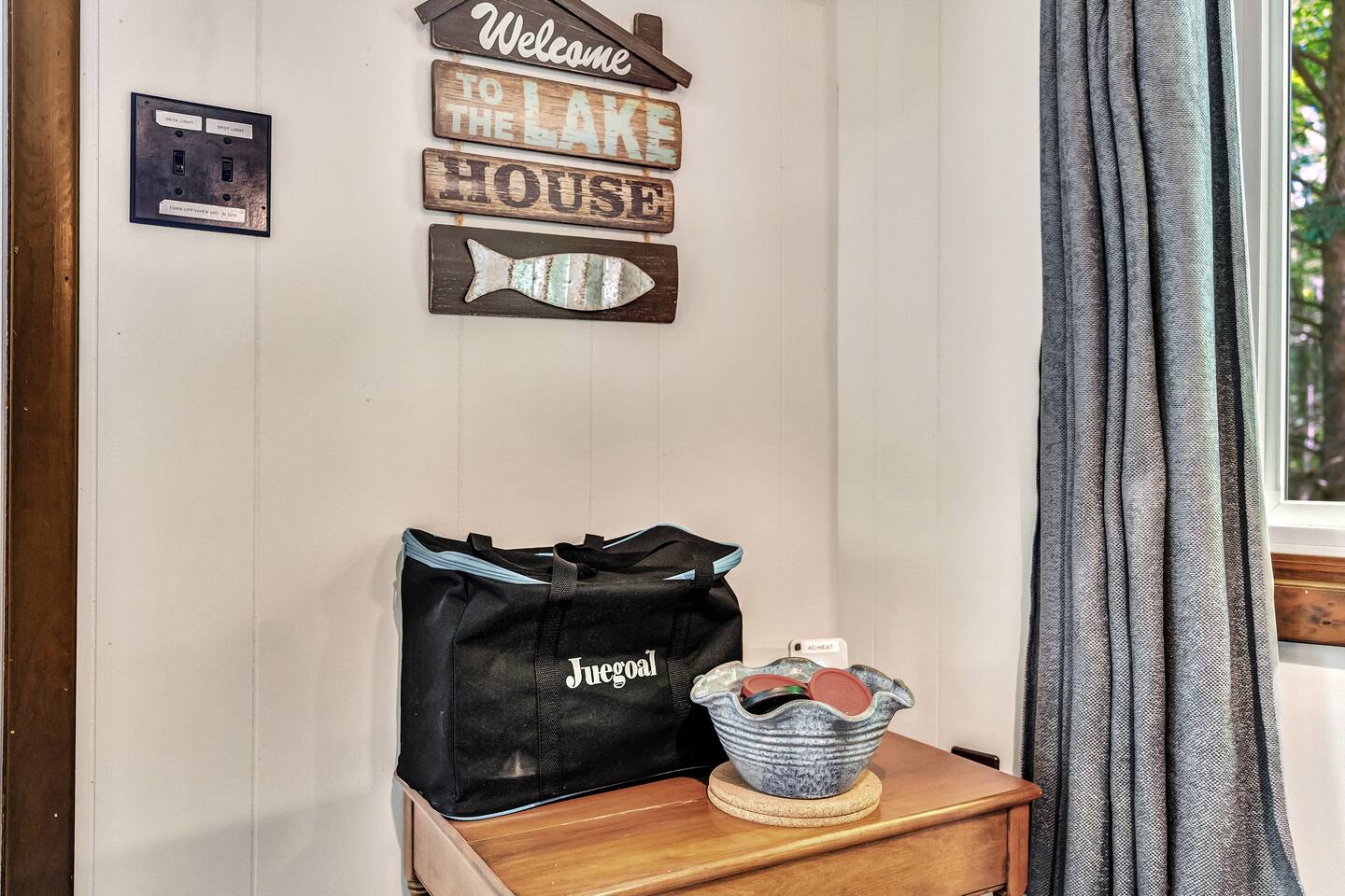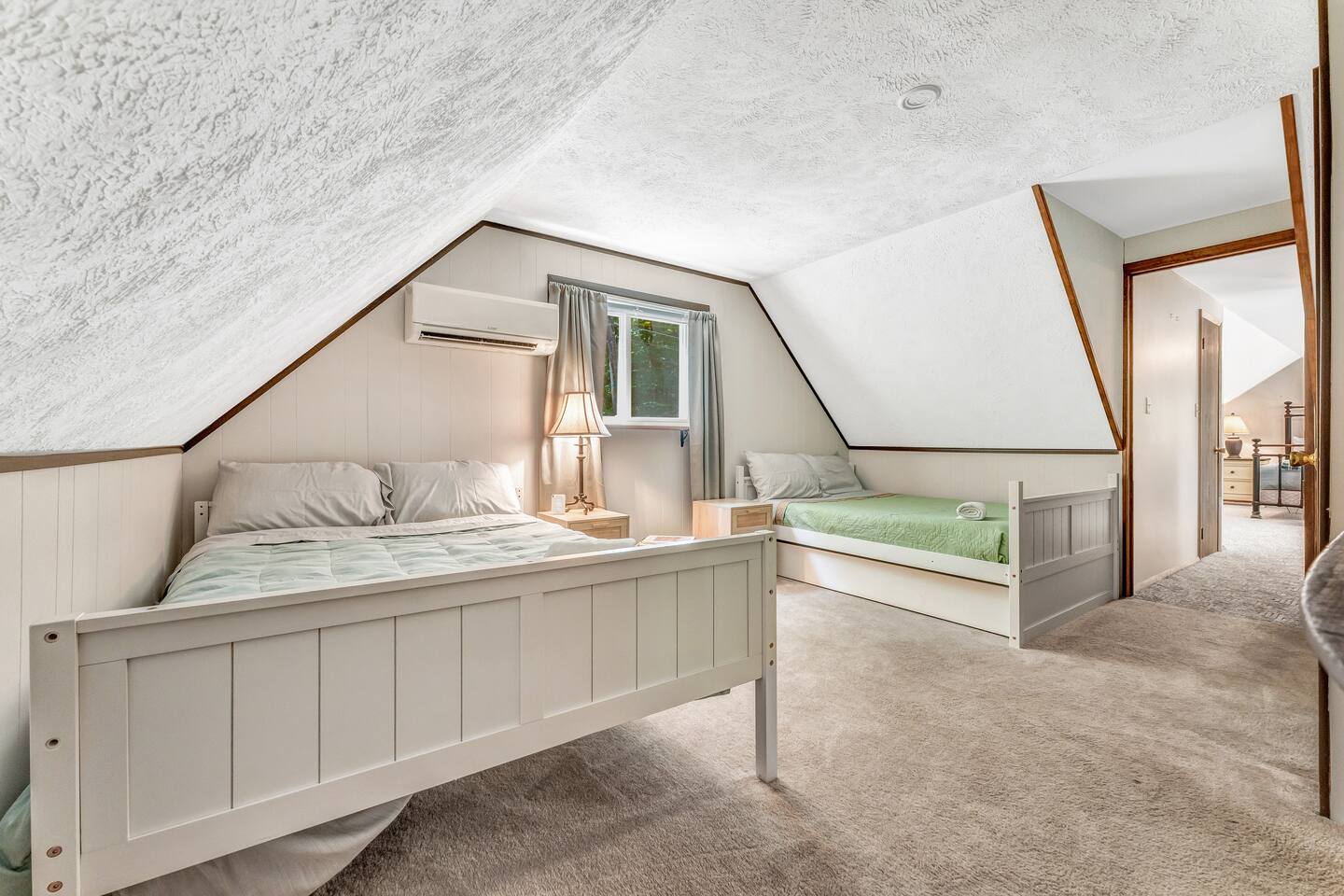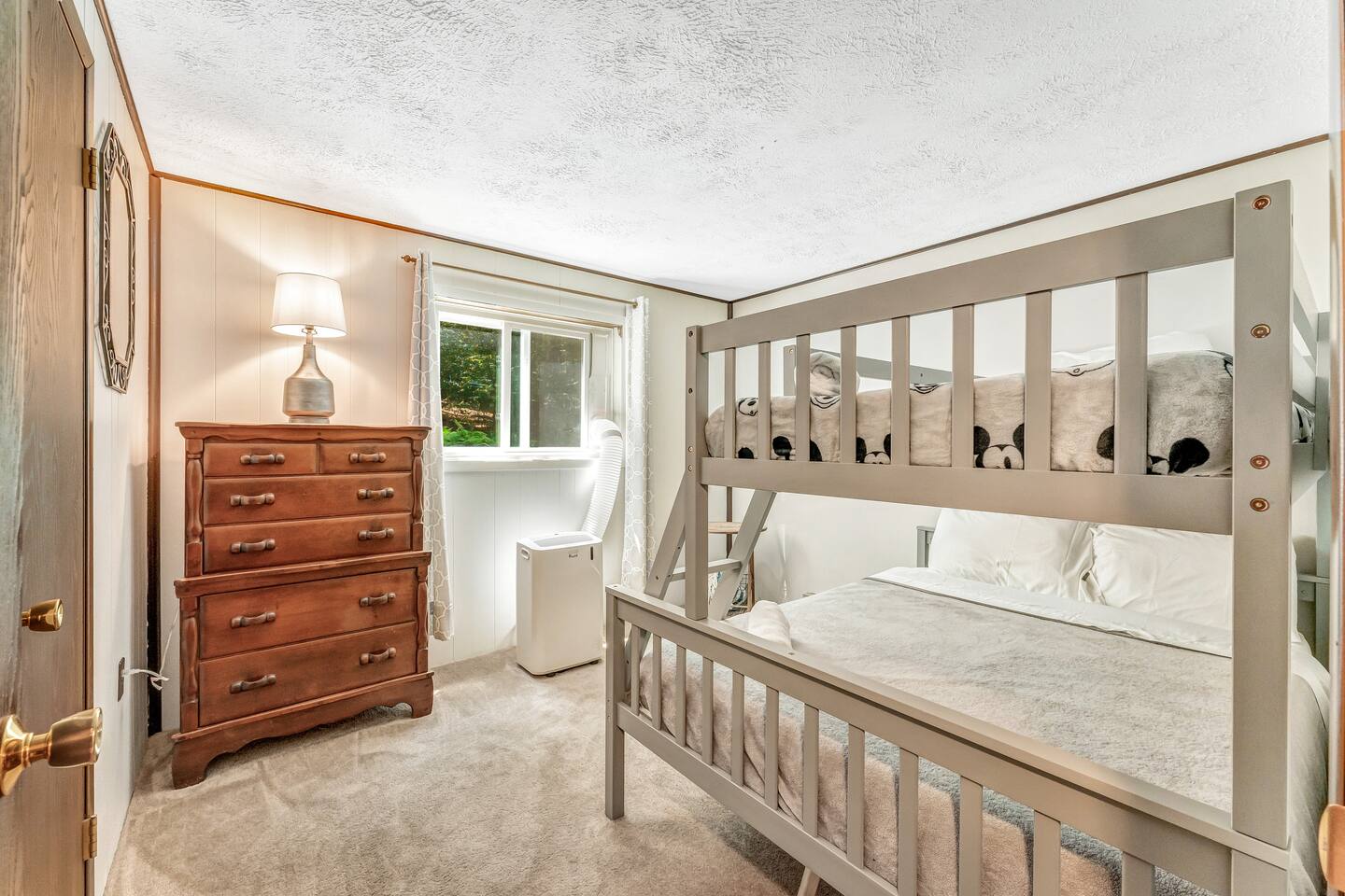 Feel Free to Review the Video of our Property! UPPER LEVEL: Enjoy the comfort of the primary suite featuring a luxurious king-sized bed and a Roku TV for entertainment. For extra sleeping arrangements, there's an additional single bed that rolls out to another single bed, perfect for families or groups needing flexibility. The suite connects to a small hallway where you'll find a locked closet designated for owner use. A full bathroom with a shower completes this level, offering privacy and convenience. Continuing through the hallway you will find another Bedroom with two full beds and a half bathroom. MIDDLE LEVEL: Main Living area offers spacious living space perfect for relaxation. Gather around the wood-burning fireplace on chilly evenings, or unwind in front of the TV after a day of adventure. The cozy living room is designed for comfort and features ample seating for everyone. Adjacent to the living room is the dining area perfect for family meals or group gatherings. The nearby kitchen is equipped with modern appliances, making meal preparation a breeze. Whether you're whipping up breakfast or cooking a gourmet dinner, you'll find everything you need right at your fingertips. A full bathroom with a shower is conveniently located on this level, ensuring everyone has easy access to facilities without having to climb stairs. Bedrooms on Middle Level: On this level, you'll find two additional bedrooms: One bedroom features a comfortable full-sized bed, perfect for a couple or individual seeking privacy and relaxation. The second bedroom offers a full bunk bed setup, with a single bed over a full-sized bed. This arrangement is ideal for families or groups, providing flexibility and plenty of sleeping space. OUTDOOR DECK: Step outside to our private deck, a perfect spot for enjoying the fresh air and soaking in the beautiful surroundings and seasonal view of Lake Wallenpaupack. Whether you're hosting a barbecue or simply relaxing with a good book, our deck is designed with your comfort in mind. BBQ Grill: Fire up the grill and cook up delicious meals for your family or friends. Dining Table: Gather around the outdoor dining table for al fresco meals under the sun or stars. It's the ideal setting for enjoying your favorite dishes while surrounded by nature. Gas Firepit: As the evening cools down, gather around the cozy gas firepit. Perfect for roasting marshmallows, sharing stories, or simply relaxing with a warm drink, the firepit adds a touch of warmth and ambiance to your outdoor experience. LOWER LEVEL: Descend to our lower level and discover a haven of entertainment and relaxation. Second Living Room: Relax on the comfortable couch and catch up on your favorite shows using the Roku-enabled TV. The foosball table and arcade game add a playful touch, perfect for friendly competitions and hours of entertainment. Laundry Room: Conveniently located on the lower level, our laundry room is equipped with a washer and dryer, making it easy to keep your clothes clean and fresh during your stay. Lower Level Deck: Step outside to the lower level deck, where you'll find even more amenities designed for outdoor enjoyment. Wood Burning Hot Tub: Unwind and soothe your muscles in our wood burning hot tub, surrounded by the tranquil ambiance of the outdoors. Please note that we do not provide wood for the hot tub, but it is available for purchase. Outdoor TV: Watch your favorite movies or sports games outdoors with our dedicated outdoor TV, combining the pleasures of soaking in the hot tub with entertainment. ADDITIONAL AMENITIES: Throughout the home, you'll find high-speed Wi-Fi, air conditioning for summer comfort, and heating to keep you warm during cooler months. Lots of parking for multiple cars or even a boat.