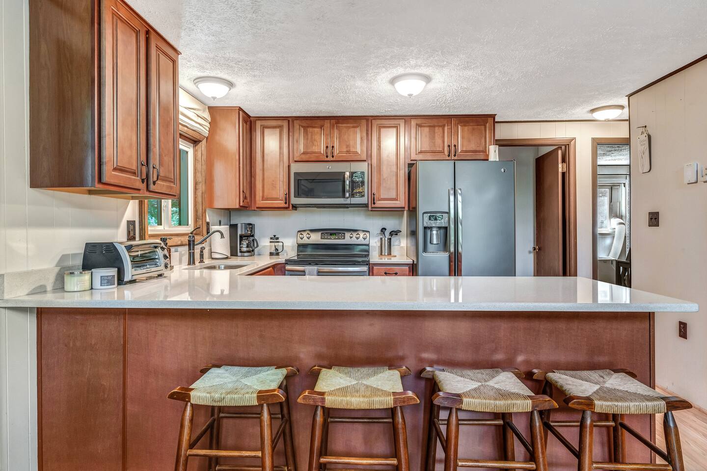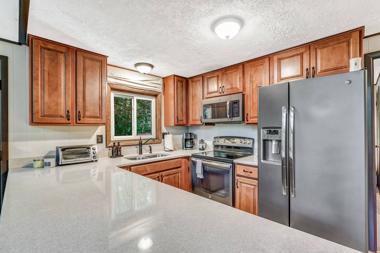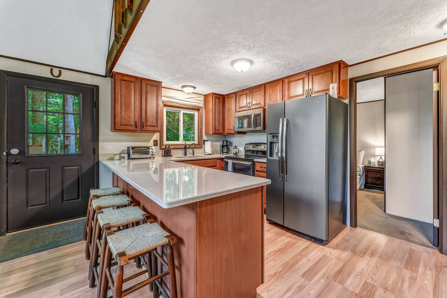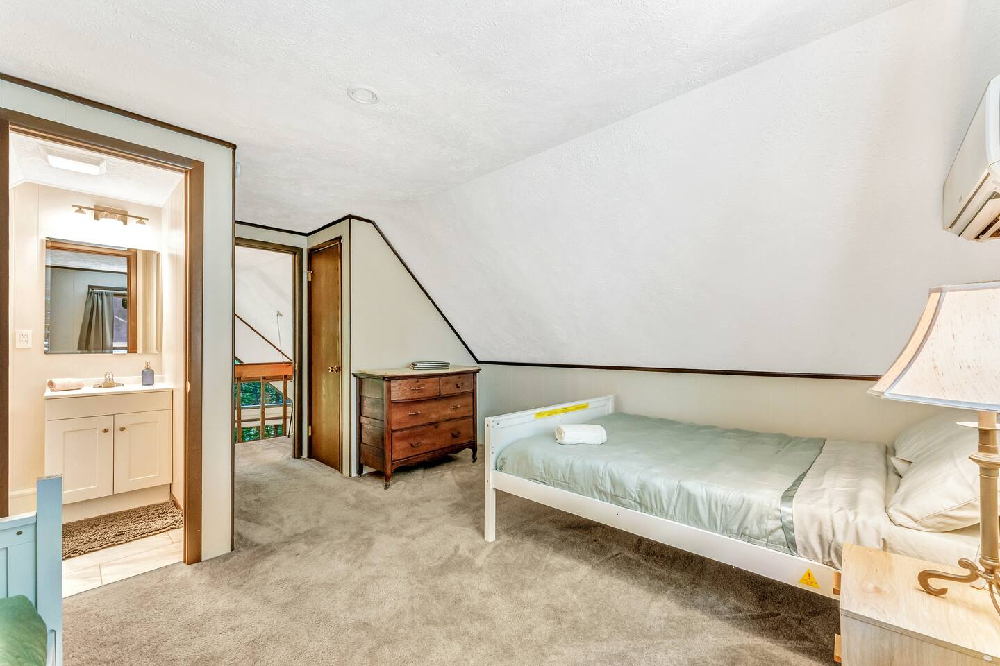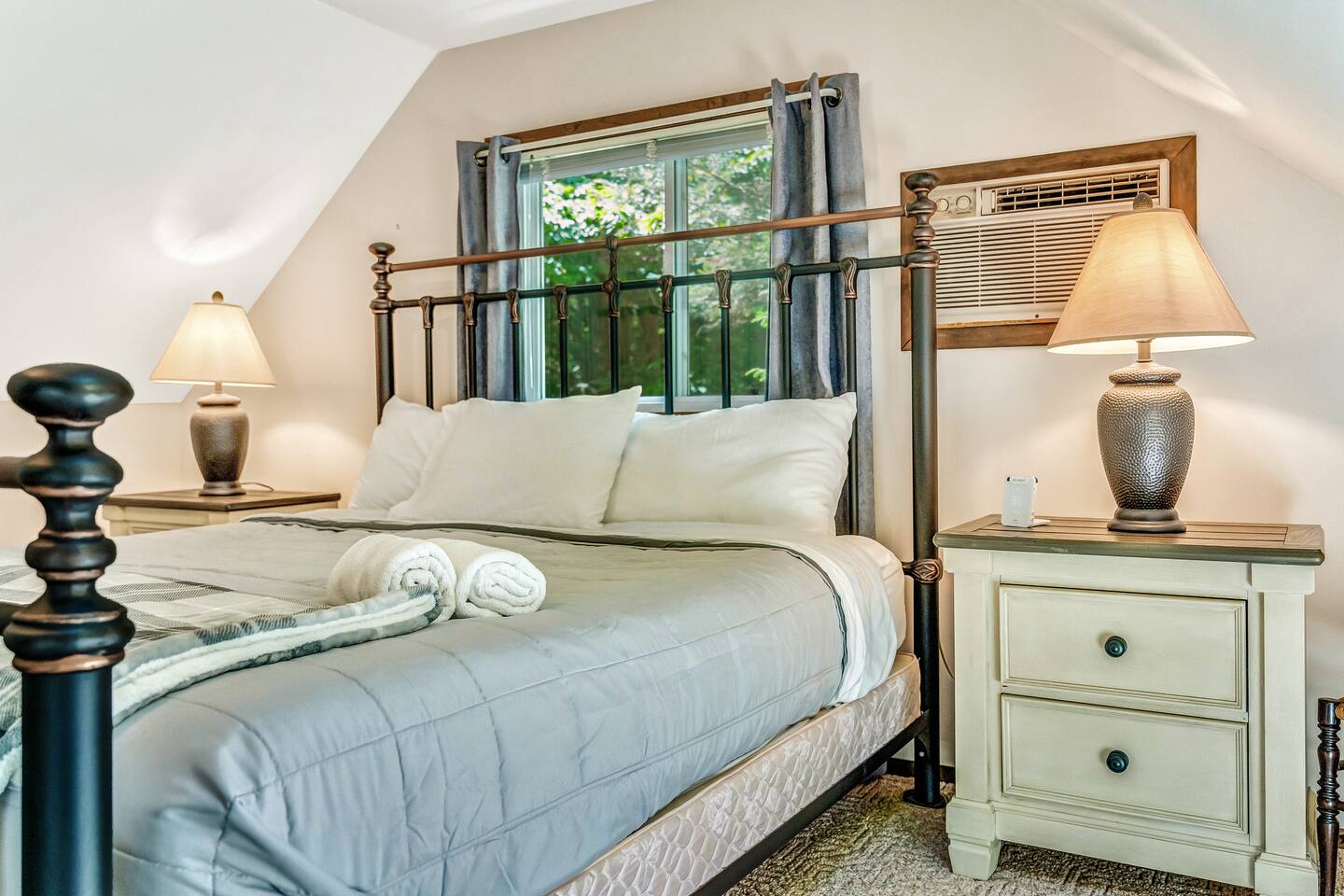 Feel Free to Review the Video of our Property! UPPER LEVEL: Enjoy the comfort of the primary suite featuring a luxurious king-sized bed and a Roku TV for entertainment. For extra sleeping arrangements, there's an additional single bed that rolls out to another single bed, perfect for families or groups needing flexibility. The suite connects to a small hallway where you'll find a locked closet designated for owner use. A full bathroom with a shower completes this level, offering privacy and convenience. Continuing through the hallway you will find another Bedroom with two full beds and a half bathroom. MIDDLE LEVEL: Main Living area offers spacious living space perfect for relaxation. Gather around the wood-burning fireplace on chilly evenings, or unwind in front of the TV after a day of adventure. The cozy living room is designed for comfort and features ample seating for everyone. Adjacent to the living room is the dining area perfect for family meals or group gatherings. The nearby kitchen is equipped with modern appliances, making meal preparation a breeze. Whether you're whipping up breakfast or cooking a gourmet dinner, you'll find everything you need right at your fingertips. A full bathroom with a shower is conveniently located on this level, ensuring everyone has easy access to facilities without having to climb stairs. Bedrooms on Middle Level: On this level, you'll find two additional bedrooms: One bedroom features a comfortable full-sized bed, perfect for a couple or individual seeking privacy and relaxation. The second bedroom offers a full bunk bed setup, with a single bed over a full-sized bed. This arrangement is ideal for families or groups, providing flexibility and plenty of sleeping space. OUTDOOR DECK: Step outside to our private deck, a perfect spot for enjoying the fresh air and soaking in the beautiful surroundings and seasonal view of Lake Wallenpaupack. Whether you're hosting a barbecue or simply relaxing with a good book, our deck is designed with your comfort in mind. BBQ Grill: Fire up the grill and cook up delicious meals for your family or friends. Dining Table: Gather around the outdoor dining table for al fresco meals under the sun or stars. It's the ideal setting for enjoying your favorite dishes while surrounded by nature. Gas Firepit: As the evening cools down, gather around the cozy gas firepit. Perfect for roasting marshmallows, sharing stories, or simply relaxing with a warm drink, the firepit adds a touch of warmth and ambiance to your outdoor experience. LOWER LEVEL: Descend to our lower level and discover a haven of entertainment and relaxation. Second Living Room: Relax on the comfortable couch and catch up on your favorite shows using the Roku-enabled TV. The foosball table and arcade game add a playful touch, perfect for friendly competitions and hours of entertainment. Laundry Room: Conveniently located on the lower level, our laundry room is equipped with a washer and dryer, making it easy to keep your clothes clean and fresh during your stay. Lower Level Deck: Step outside to the lower level deck, where you'll find even more amenities designed for outdoor enjoyment. Wood Burning Hot Tub: Unwind and soothe your muscles in our wood burning hot tub, surrounded by the tranquil ambiance of the outdoors. Please note that we do not provide wood for the hot tub, but it is available for purchase. Outdoor TV: Watch your favorite movies or sports games outdoors with our dedicated outdoor TV, combining the pleasures of soaking in the hot tub with entertainment. ADDITIONAL AMENITIES: Throughout the home, you'll find high-speed Wi-Fi, air conditioning for summer comfort, and heating to keep you warm during cooler months. Lots of parking for multiple cars or even a boat.