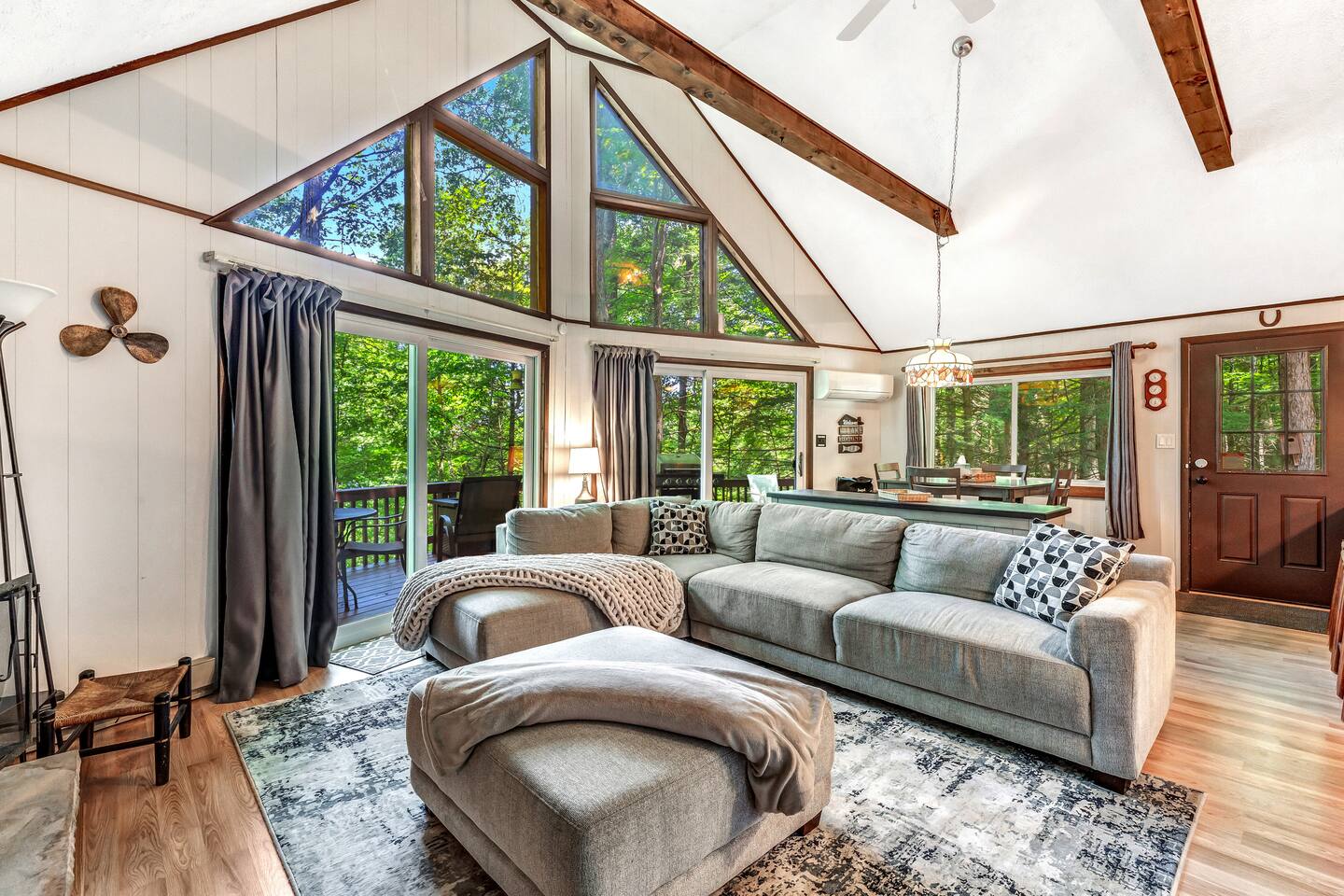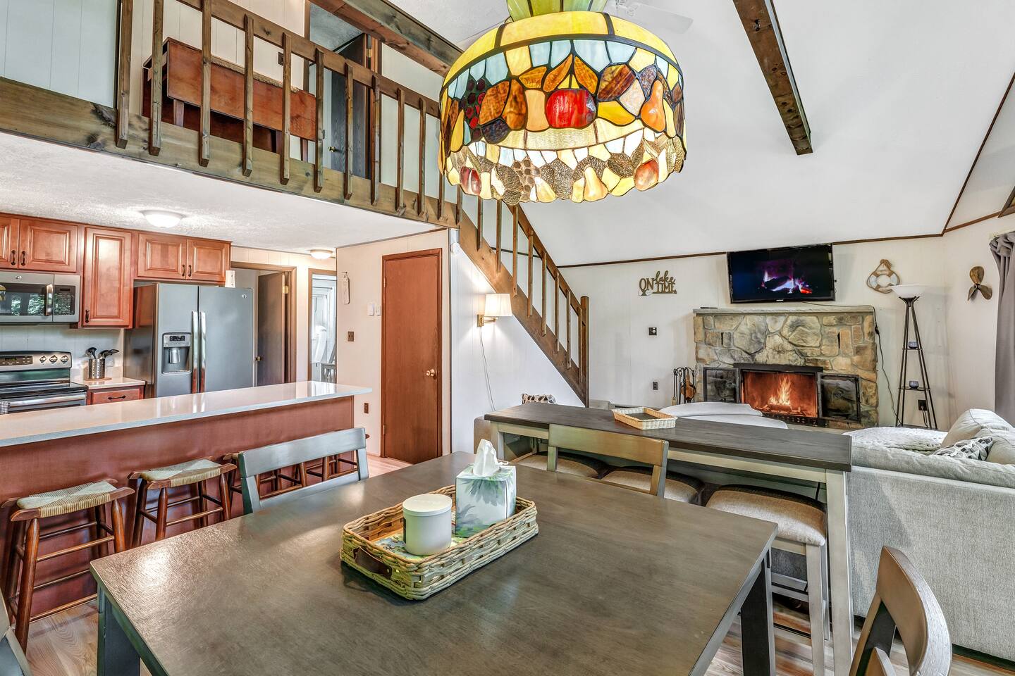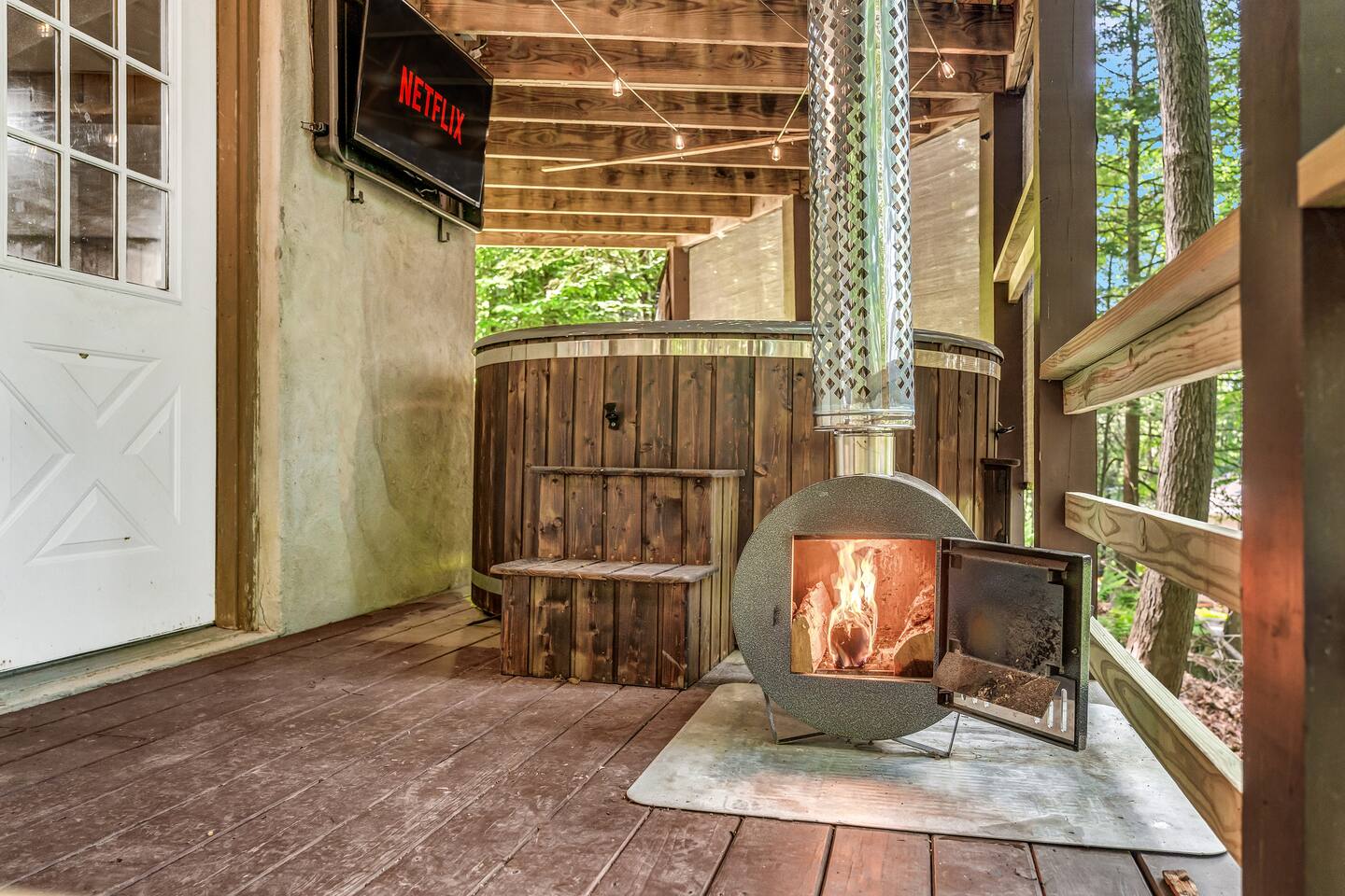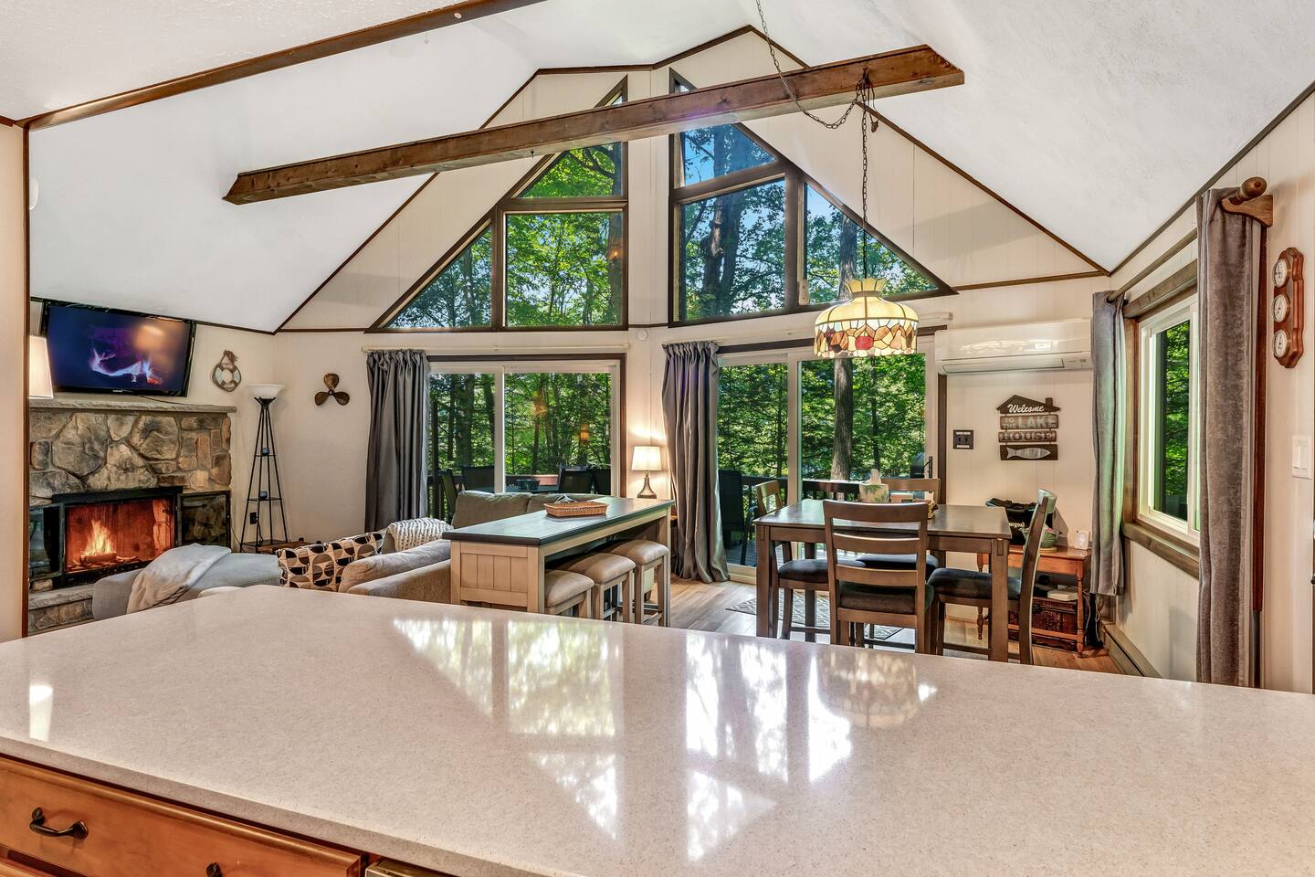 Welcome to our spacious 3BD retreat w/ extra sleeping room just a short walk to Lake Wallenpaupack (Seasonal Views). Experience outdoor living with a wood-burning hot tub & outdoor TV, large deck featuring BBQ and a cozy gas firepit. Inside, unwind by the crackling real wood fireplace. Ideal for families or groups seeking relaxation and outdoor adventures in scenic Greentown. Explore nearby hiking trails, fishing spots and local attractions for a memorable getaway in the heart of the Poconos.