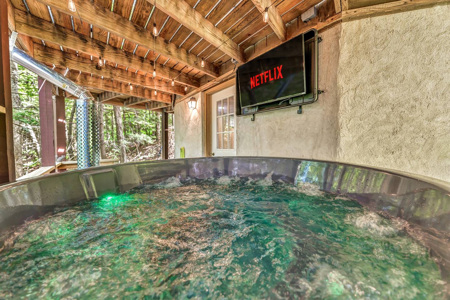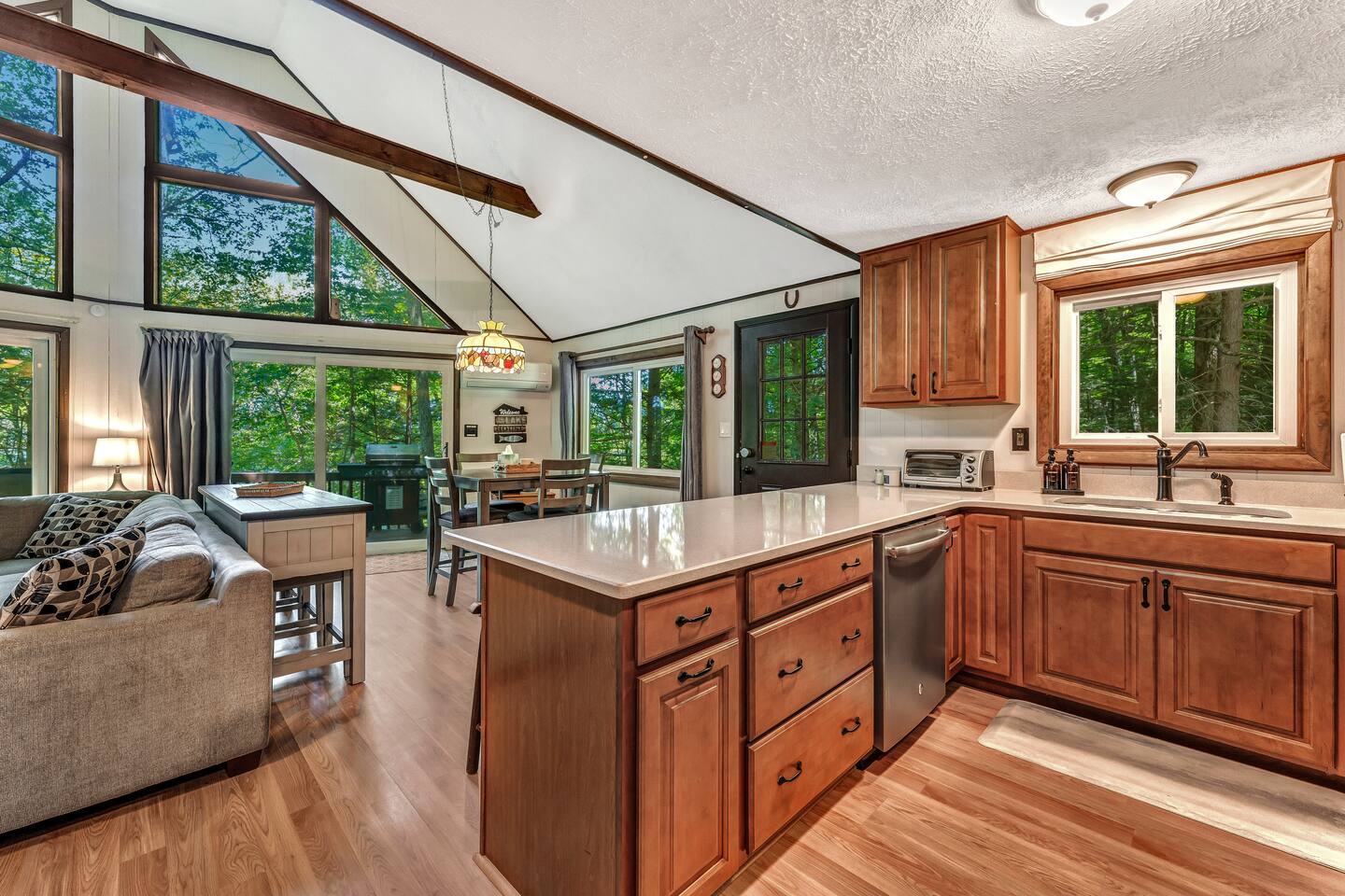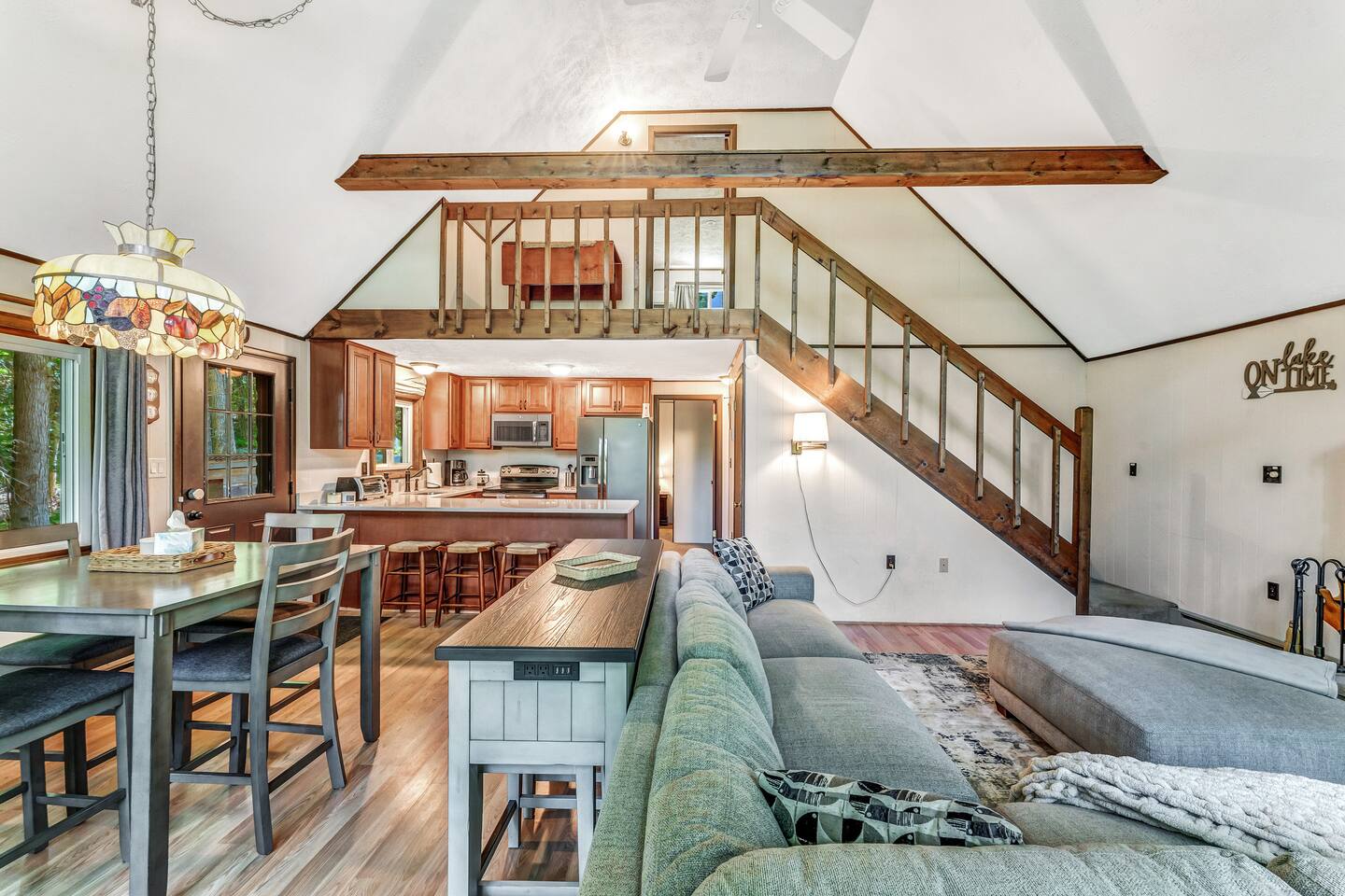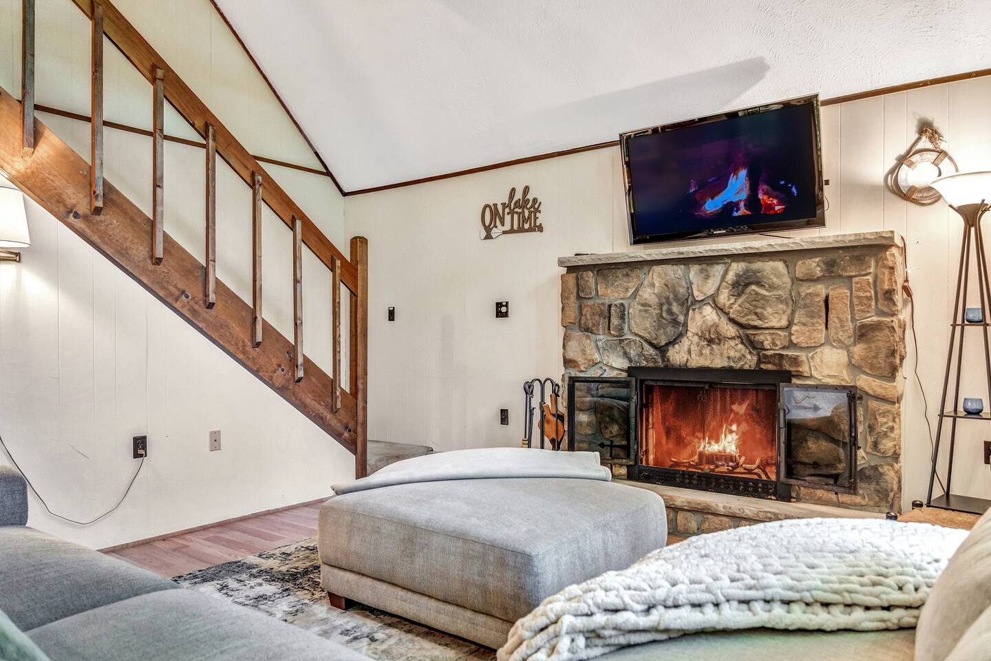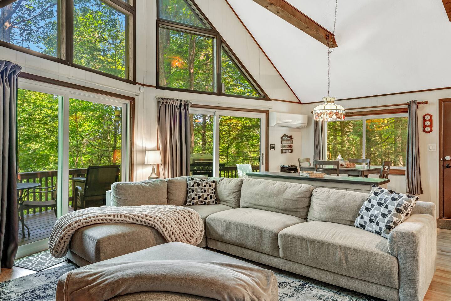 Welcome to our spacious 3BD retreat w/ extra sleeping room just a short walk to Lake Wallenpaupack (Seasonal Views). Experience outdoor living with a wood-burning hot tub & outdoor TV, large deck featuring BBQ and a cozy gas firepit. Inside, unwind by the crackling real wood fireplace. Ideal for families or groups seeking relaxation and outdoor adventures in scenic Greentown. Explore nearby hiking trails, fishing spots and local attractions for a memorable getaway in the heart of the Poconos.