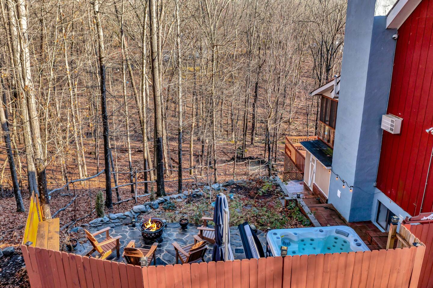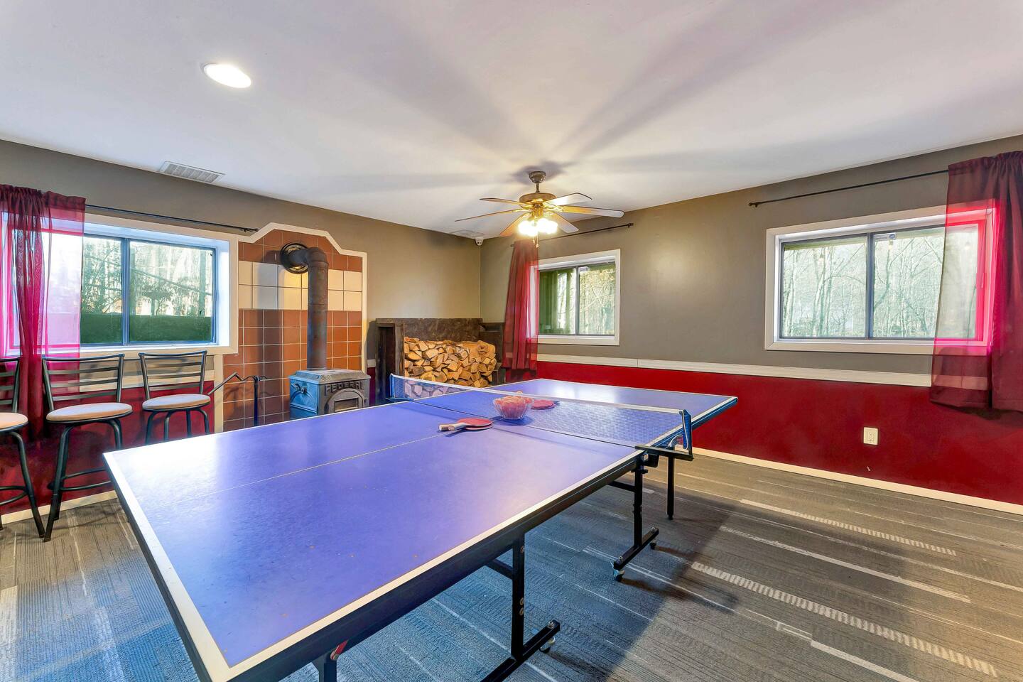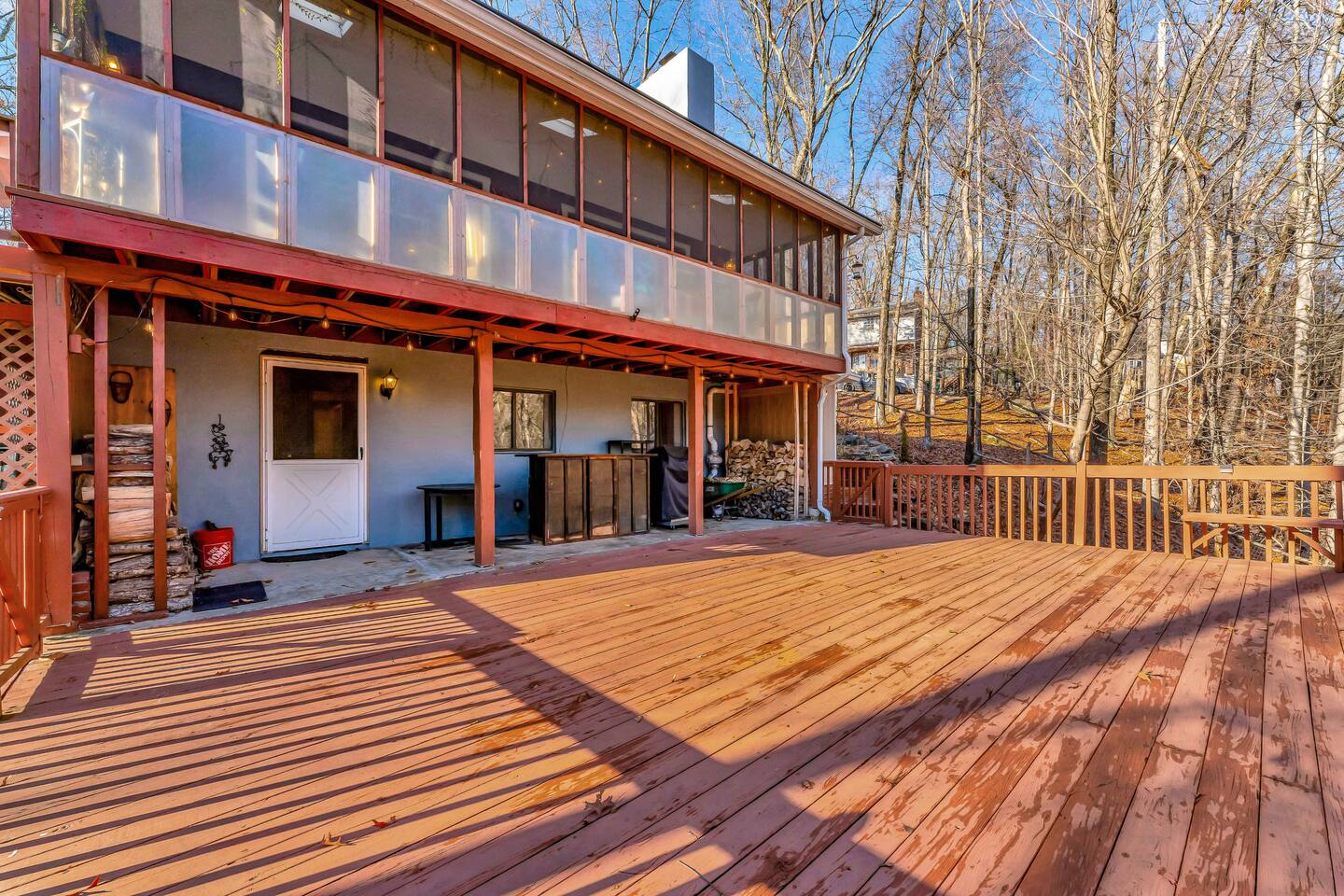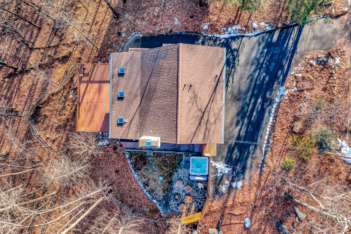 Escape to our cozy 3BD retreat in the Poconos, 20 min from Bushkill Falls & Shawnee Mountain. Relax in the outdoor hot tub or gather around the fire pit while enjoying stunning seasonal views. The spacious deck features a BBQ for outdoor dining, while the open-concept living room with a fireplace and sunroom offer cozy indoor spaces. The lower level boasts a game room with a ping pong table, a sauna, and an additional fire pit. Perfect for families and friends, your mountain getaway awaits!