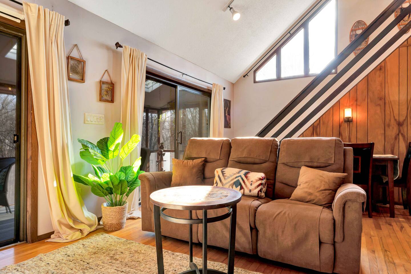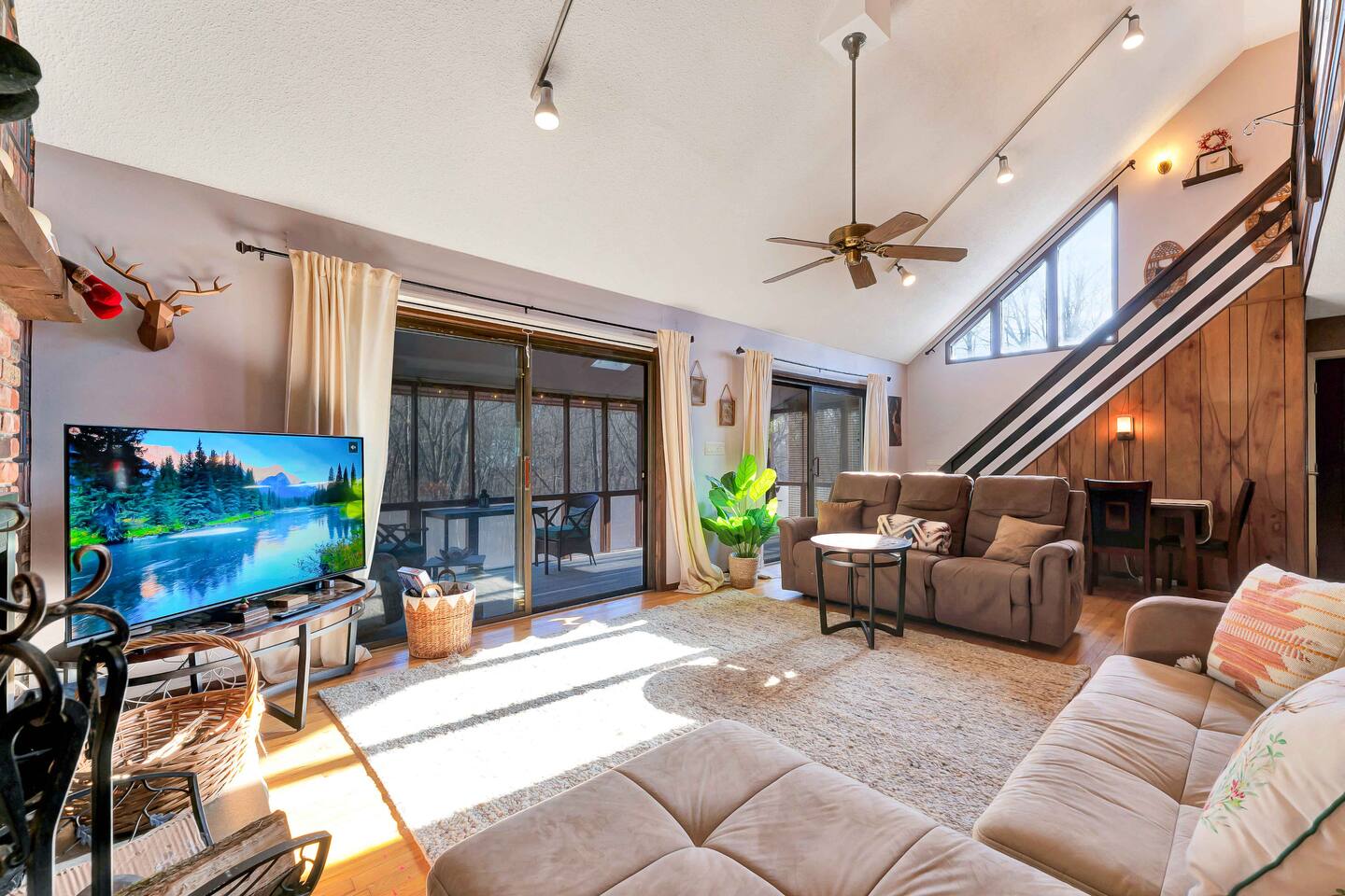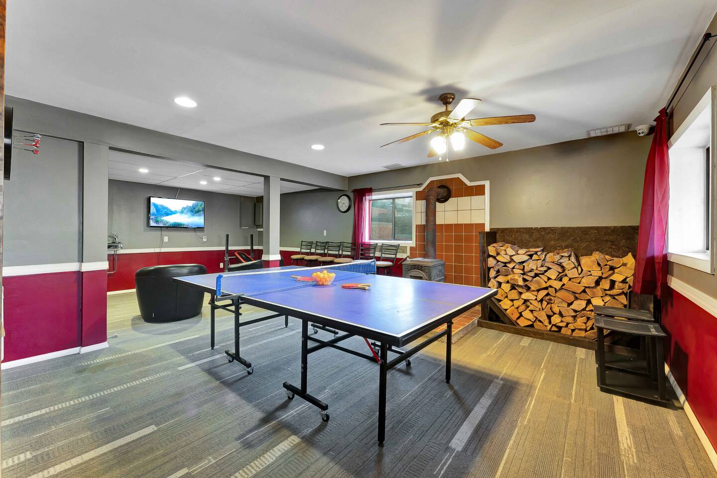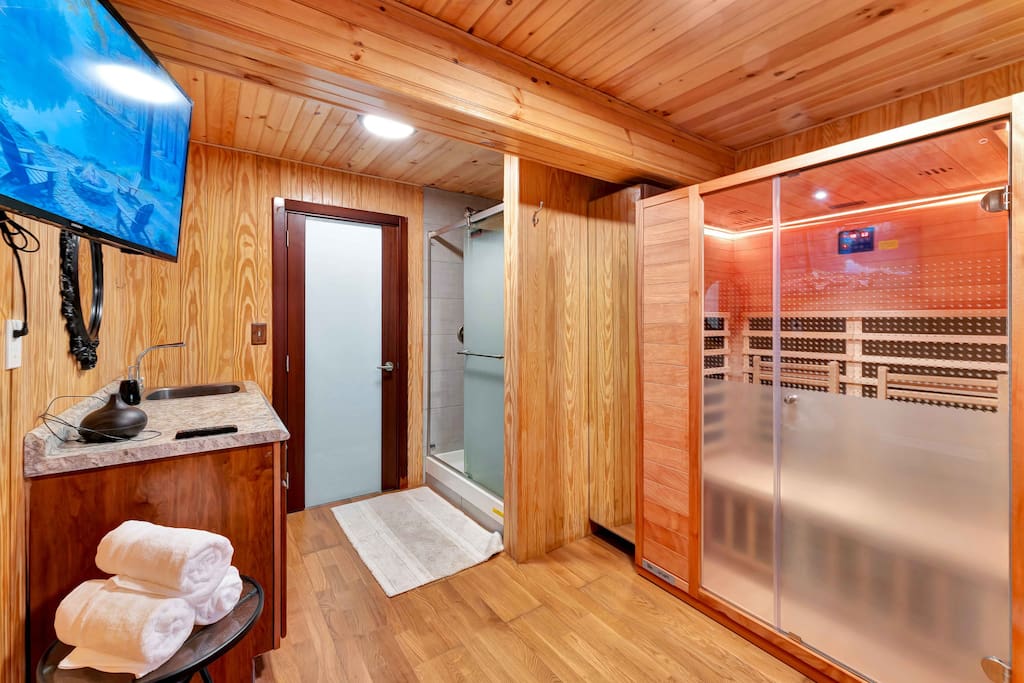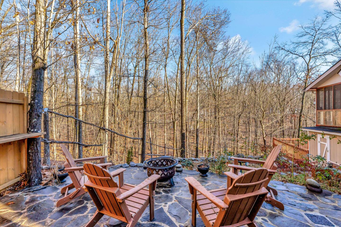 Escape to our cozy 3BD retreat in the Poconos, 20 min from Bushkill Falls & Shawnee Mountain. Relax in the outdoor hot tub or gather around the fire pit while enjoying stunning seasonal views. The spacious deck features a BBQ for outdoor dining, while the open-concept living room with a fireplace and sunroom offer cozy indoor spaces. The lower level boasts a game room with a ping pong table, a sauna, and an additional fire pit. Perfect for families and friends, your mountain getaway awaits!