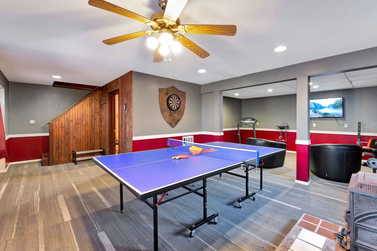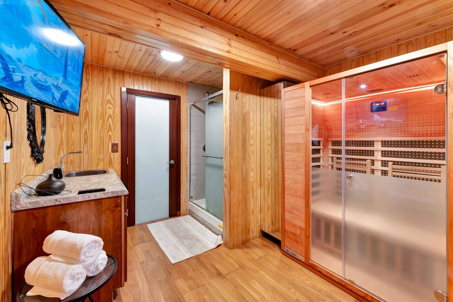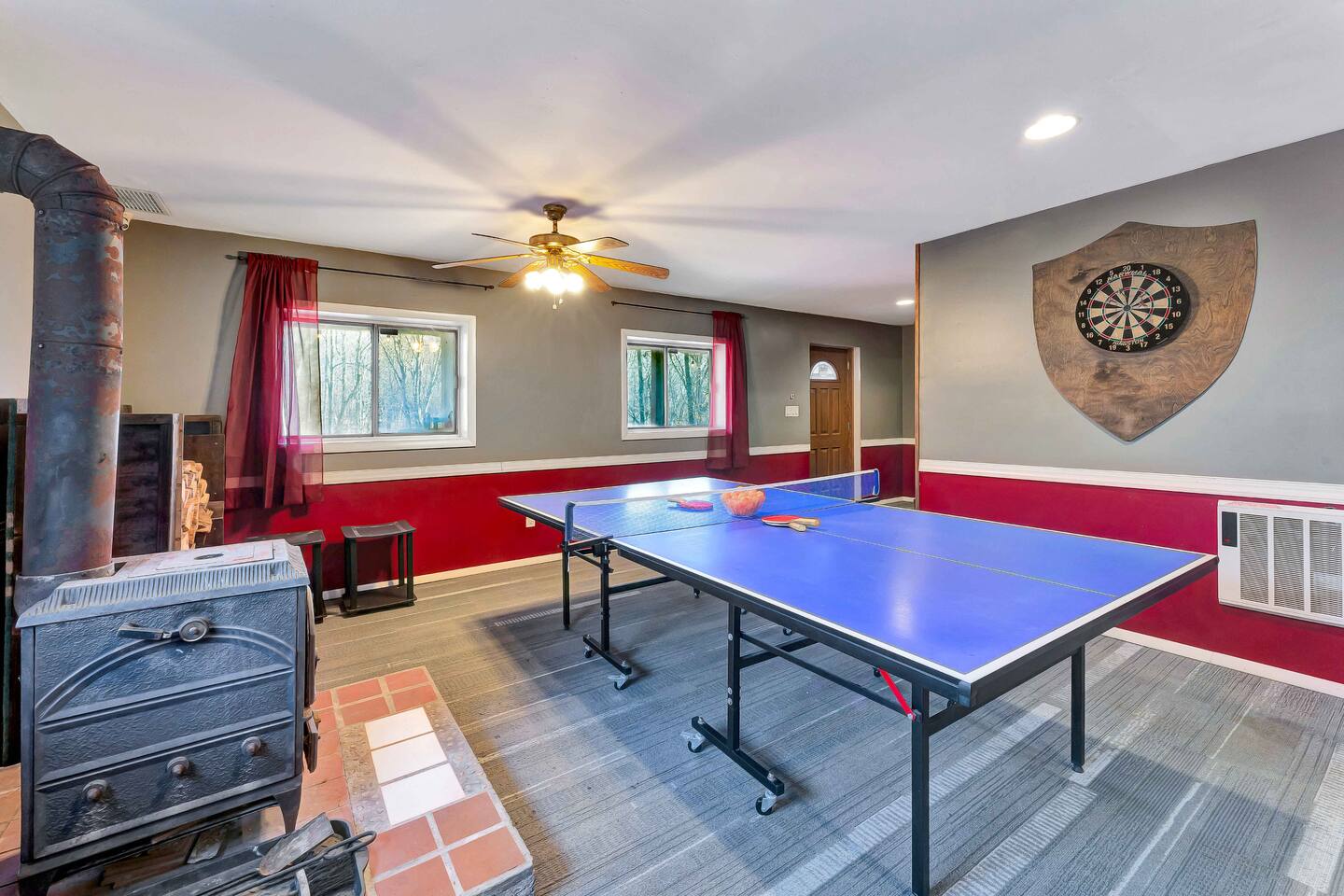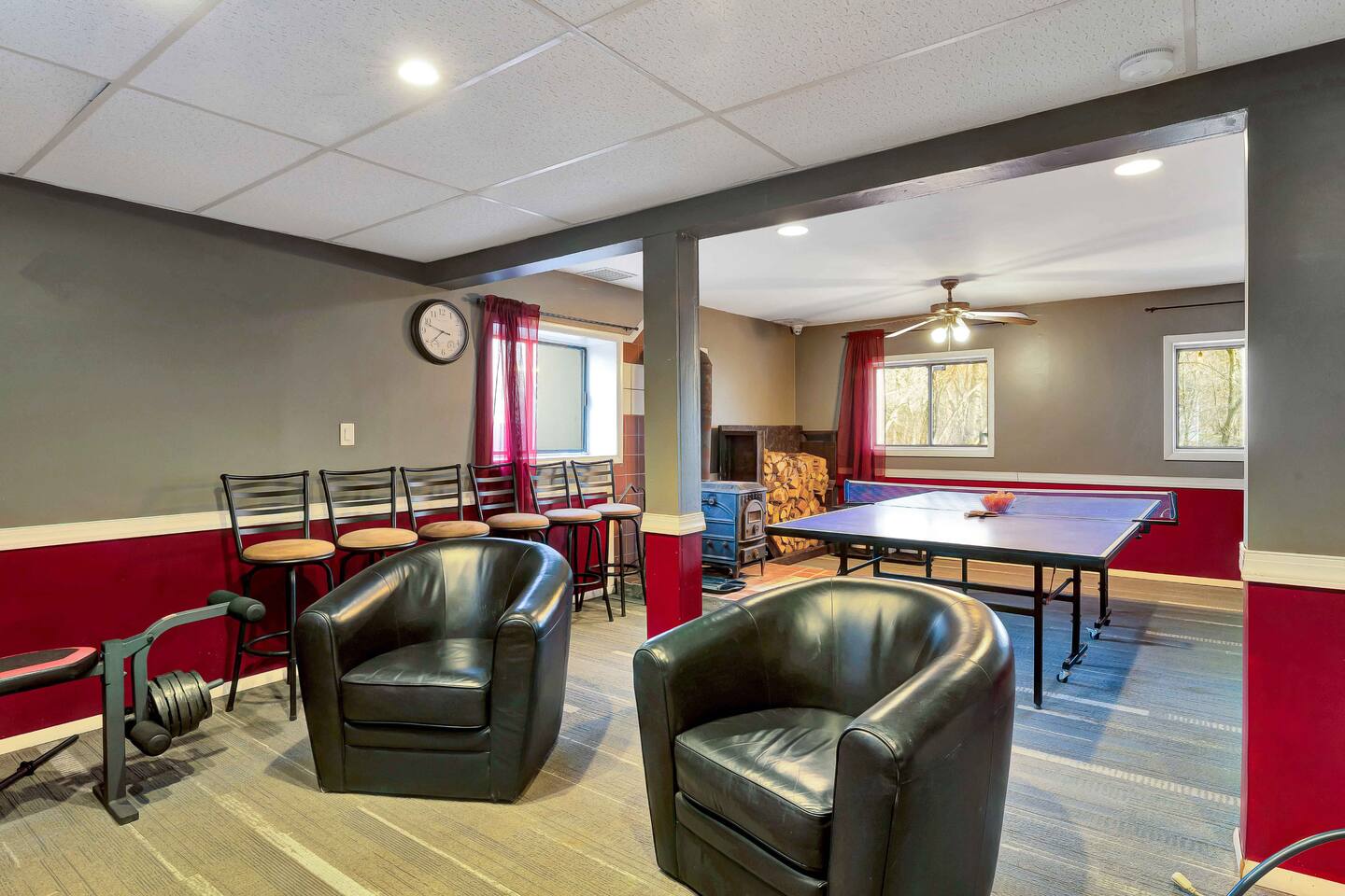 Escape to our cozy 3BD retreat in the Poconos, 20 min from Bushkill Falls & Shawnee Mountain. Relax in the outdoor hot tub or gather around the fire pit while enjoying stunning seasonal views. The spacious deck features a BBQ for outdoor dining, while the open-concept living room with a fireplace and sunroom offer cozy indoor spaces. The lower level boasts a game room with a ping pong table, a sauna, and an additional fire pit. Perfect for families and friends, your mountain getaway awaits!