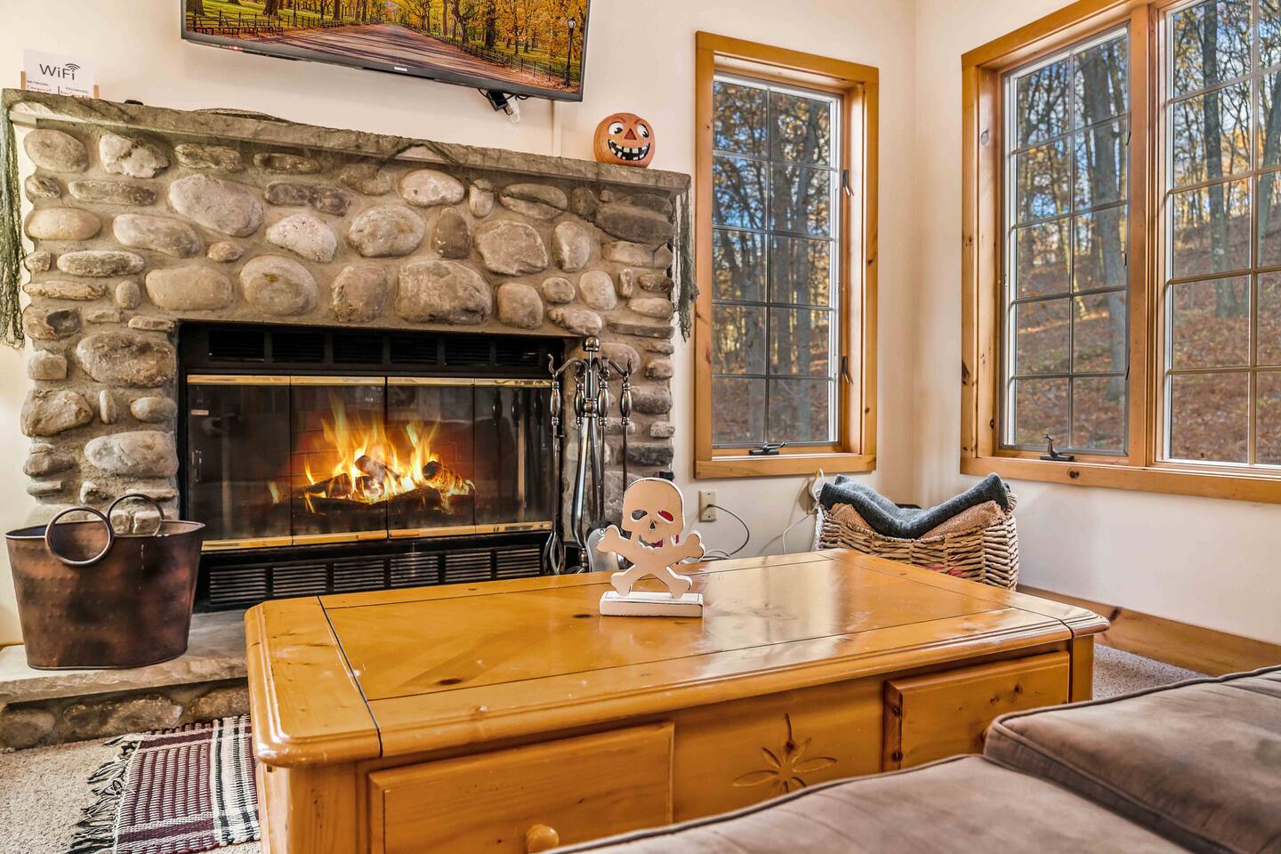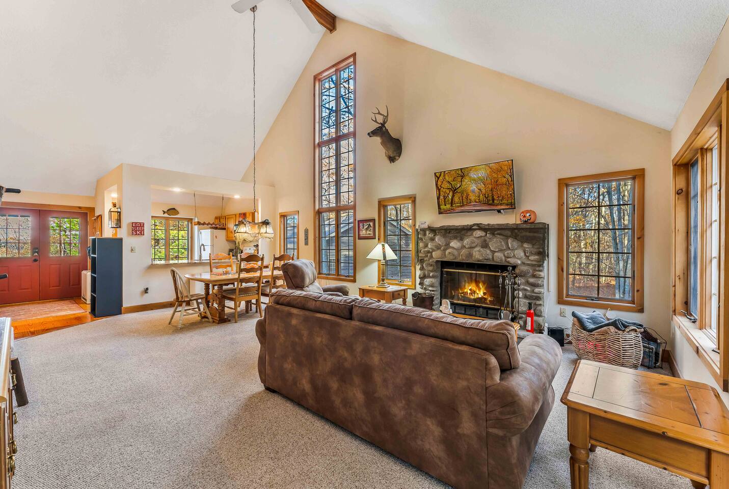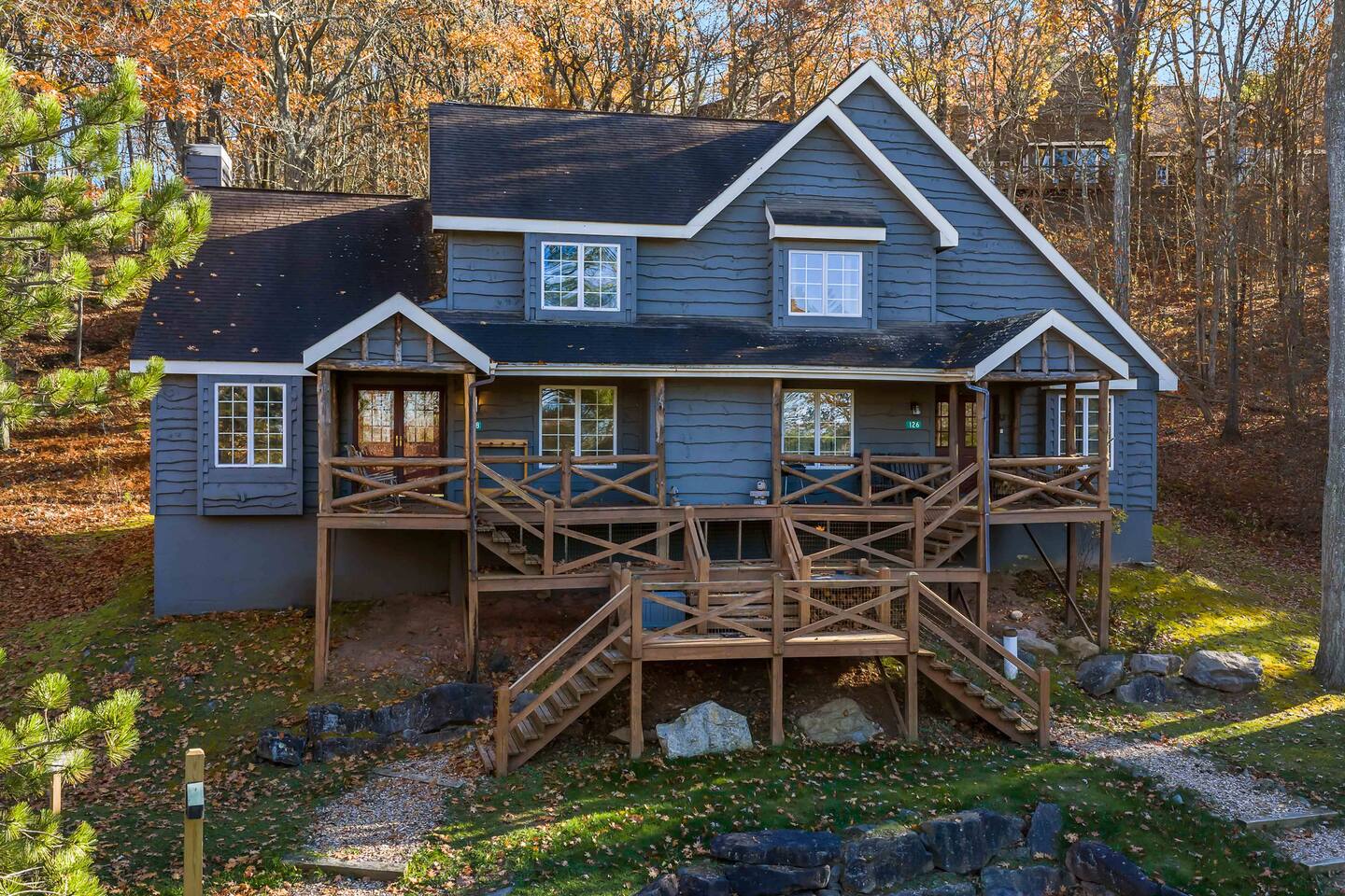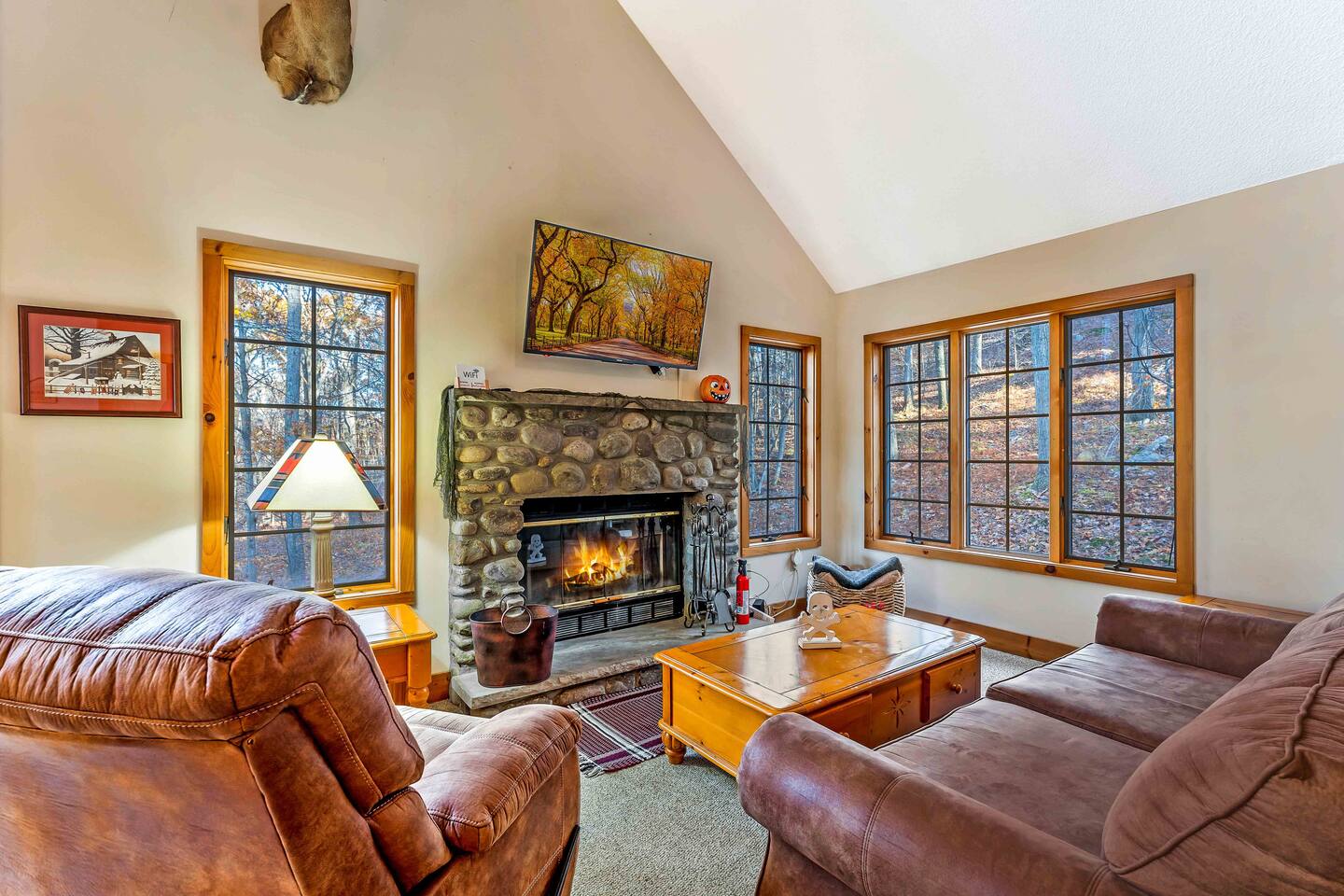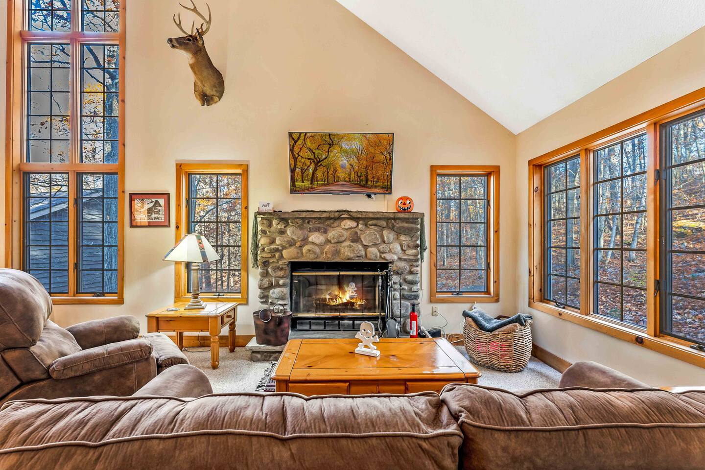 Come relax at this peaceful retreat. Located on Jack Frost mountain. Ski in the winter and golf in the summer! A trail next to the home spills onto Ridge Run, so you can start and end your day skiing without getting in the car. Sit by the fire or soak in the hot tub at night. Perfect this time of year for a weekend golf trip to Jack Frost National Golf Club. Big Boulder and Lake Harmony are only 20 minutes away, which provides additional skiing and lake life.