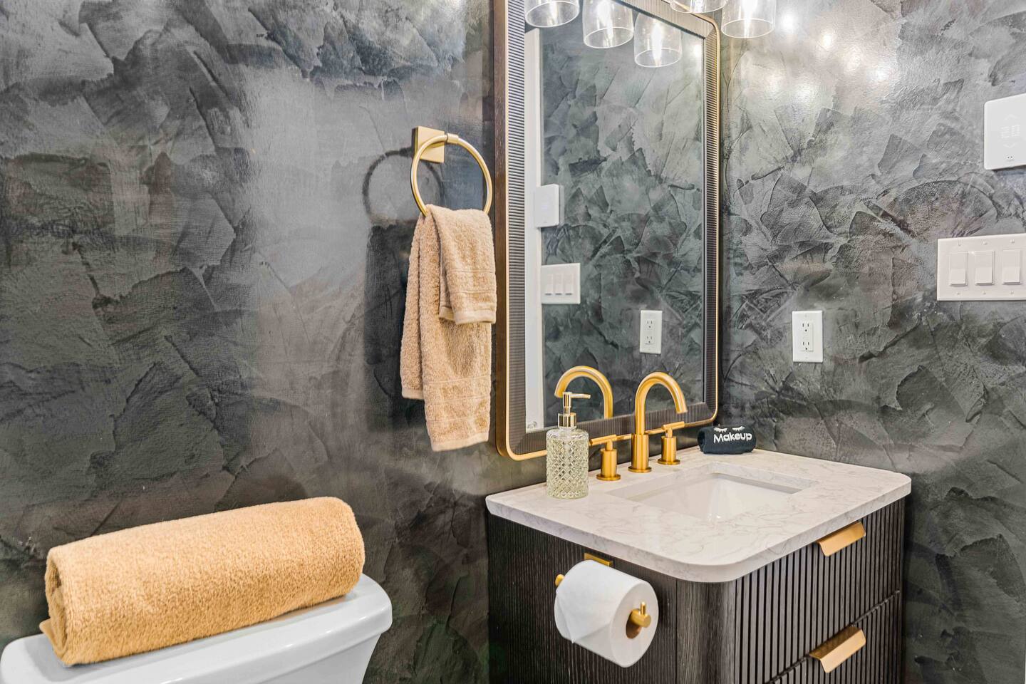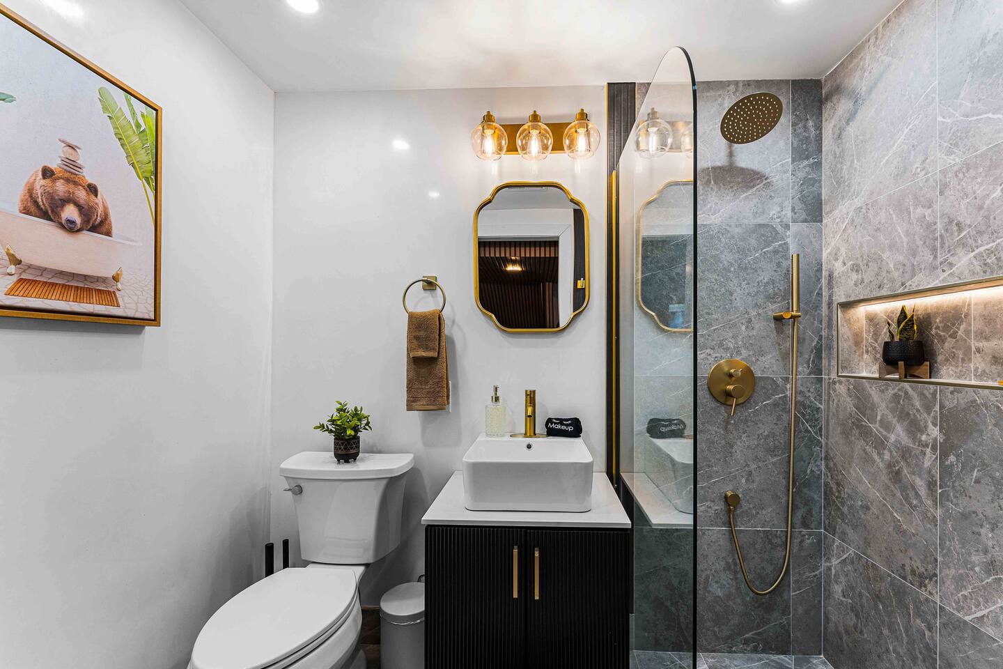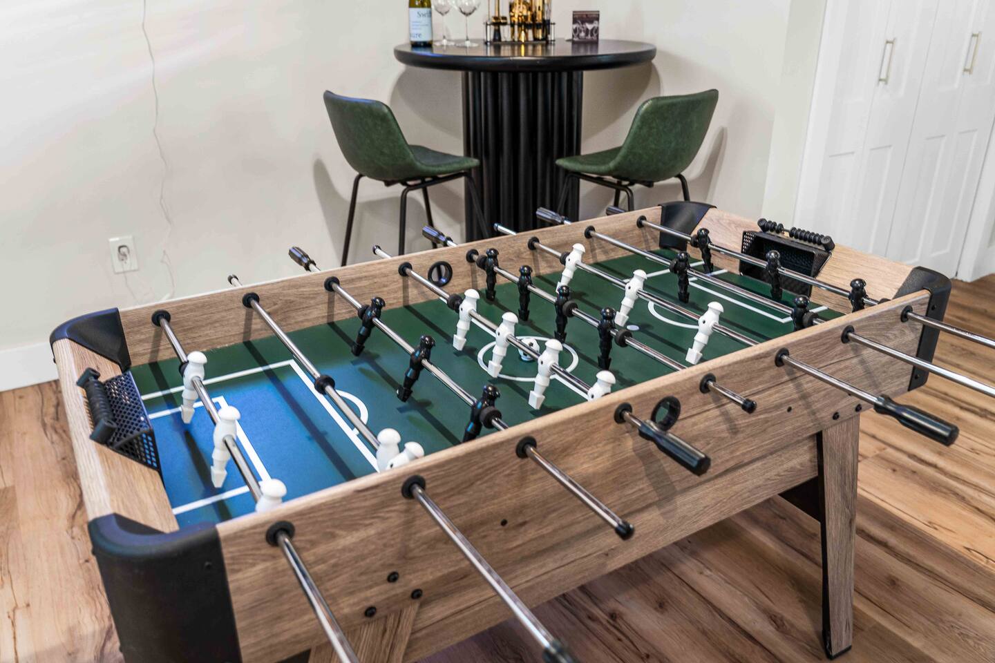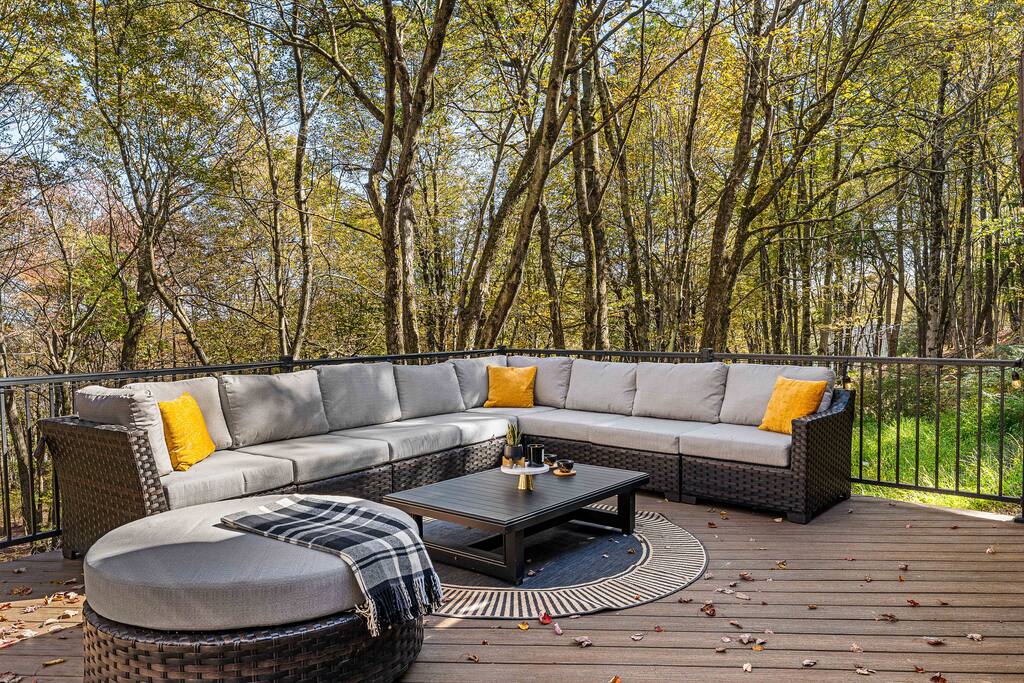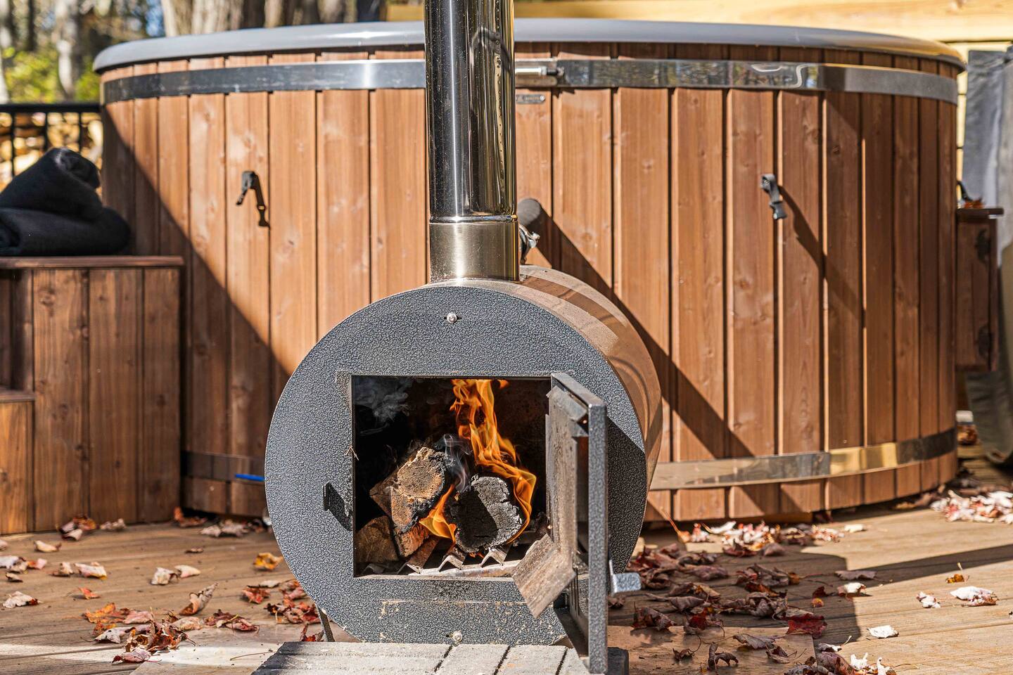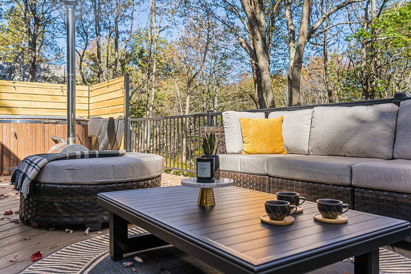 Experience rustic-modern charm in this Poconos A-frame w/ wood, black & gold accents. Relax in the loft w/ freestanding tub, cozy living room w/pellet stove&sleek kitchen w/ black stainless appliances. Enjoy the basement game room, tv area & sauna. Step out to the lower deck with wood-burning hot tub, outdoor TV, and lounge area, or dine on the main deck with BBQ. Enjoy Fire pit w/ swing set in the yard. Nearby community amenities like indoor pool with extra fee.Minutes from Kalahari&Camelback.
