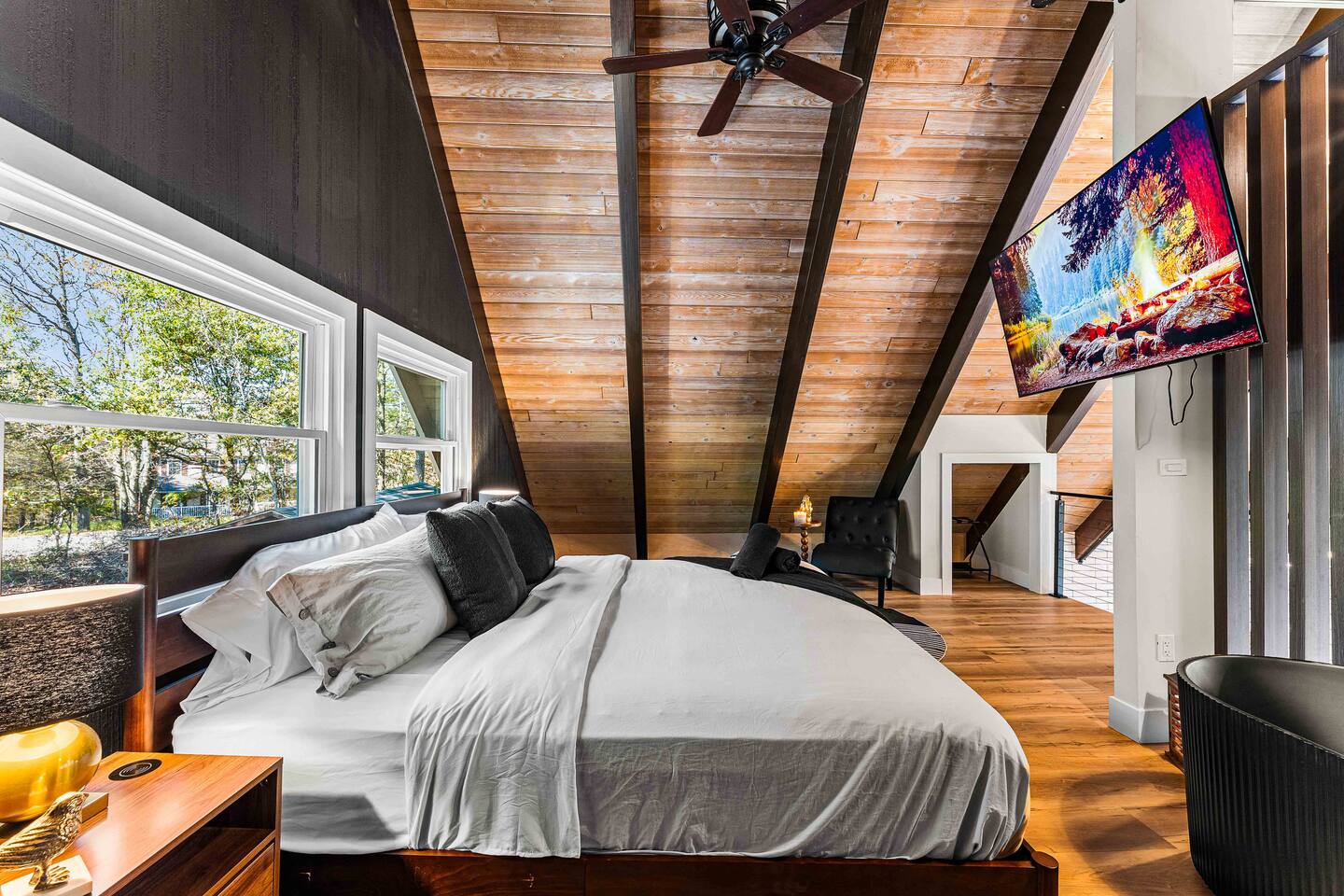 Modern A-Frame Retreat w/ Hot Tub, Sauna&Game Room