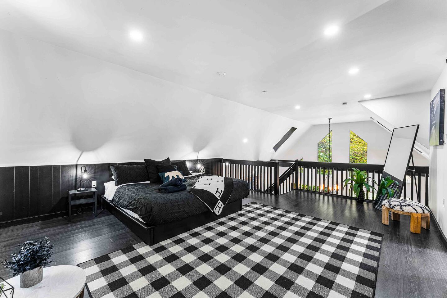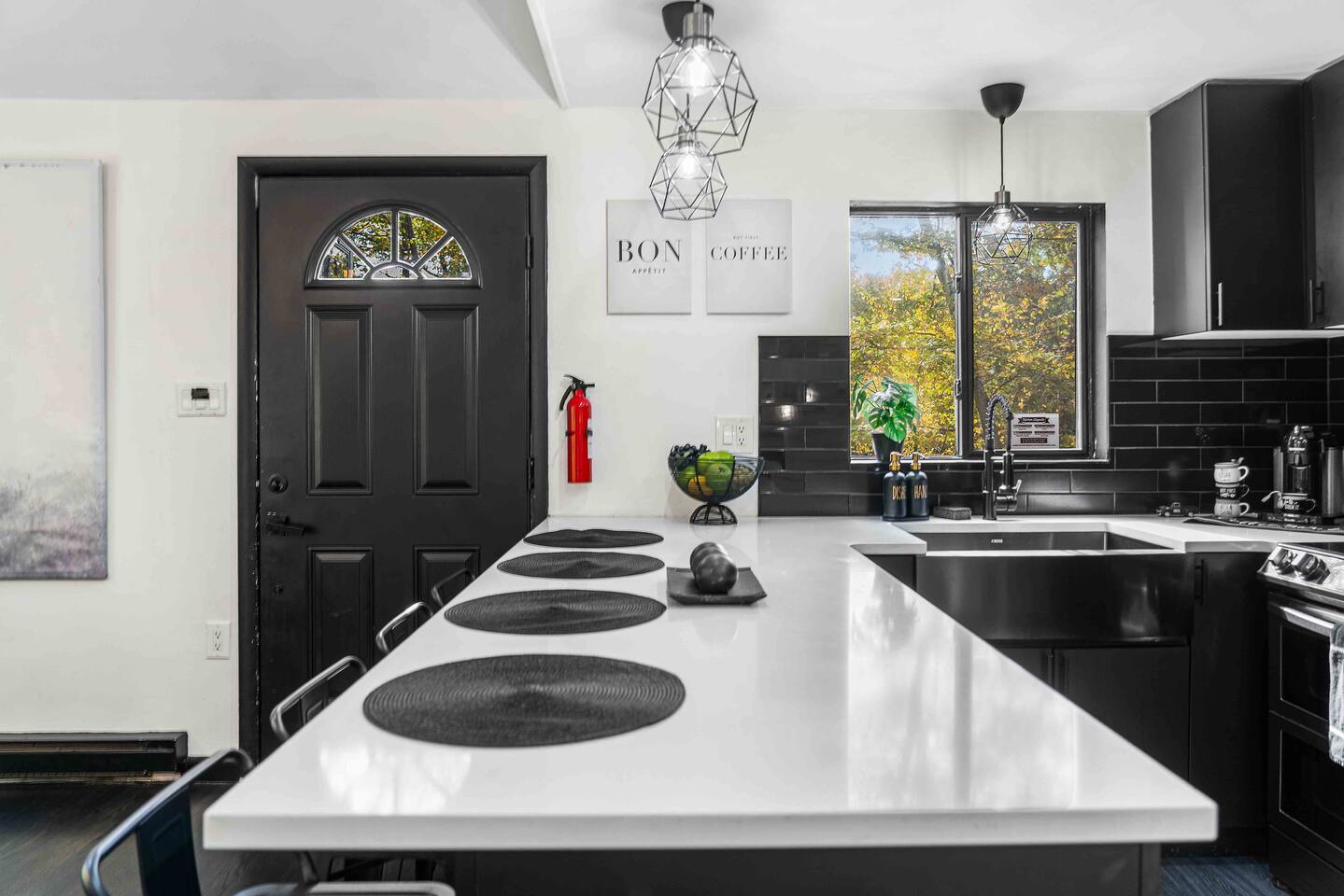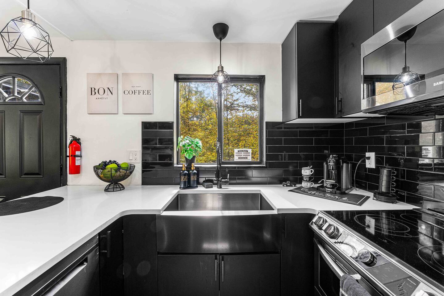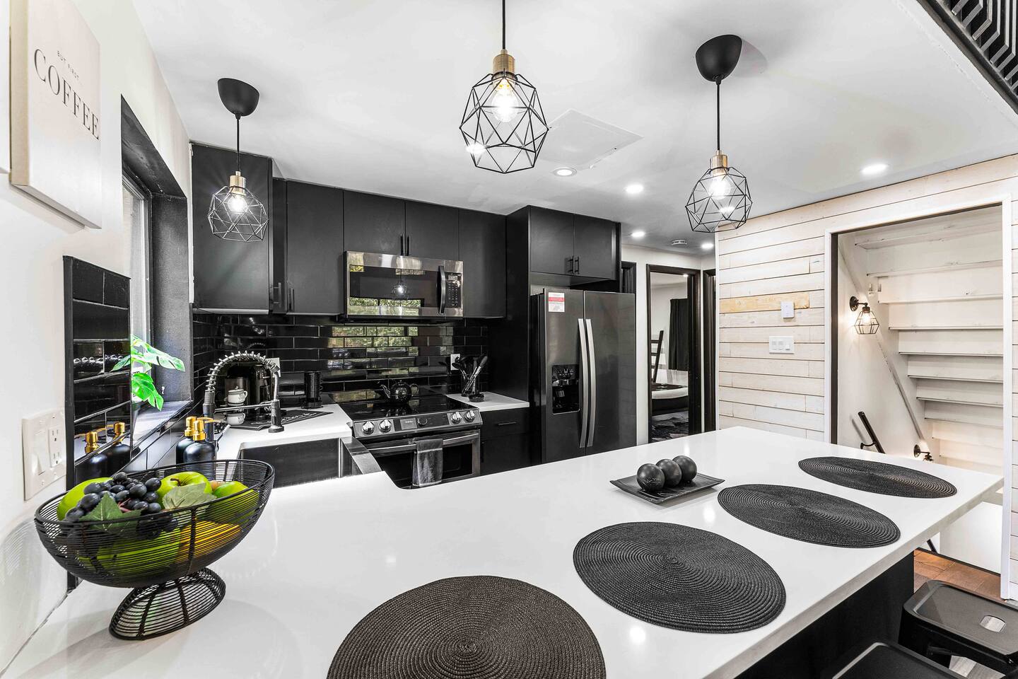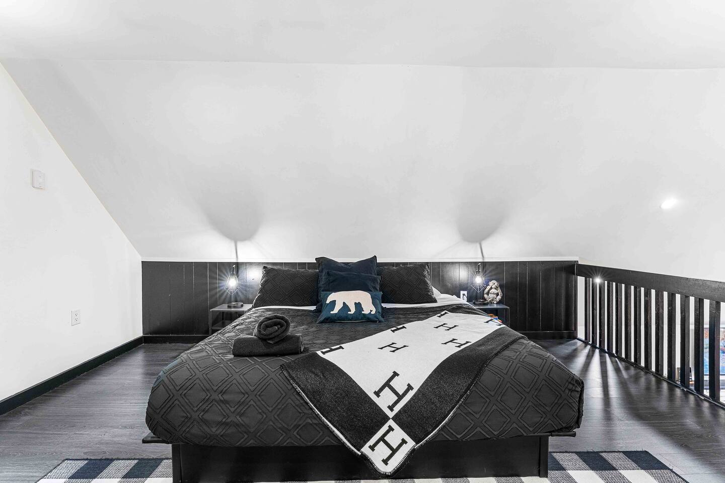 True mountain escape with designer finishes and high end appliances. The Cabin is situated near Bushkill Falls surrounded by a creek accessible for kayaking and fishing. The house is suited for 6 people 2 queen bedrooms on the main level and King Loft on the upper level. Open kitchen plan that connects with the living space highlighted by a beautiful fireplace. Beautiful deck for entertaining with a fire pit. Only 20mins away from Shawnee Mountain & 24/7 Supermarket.