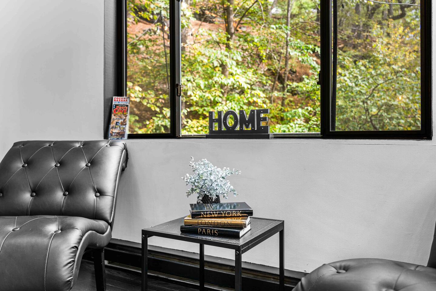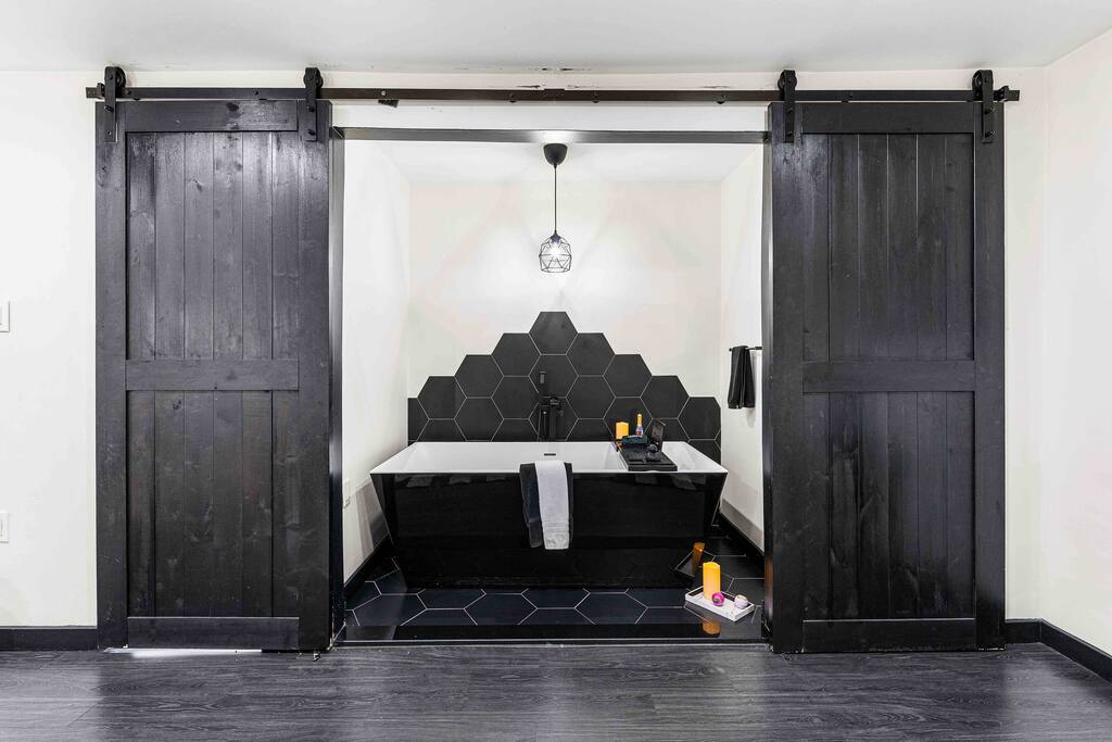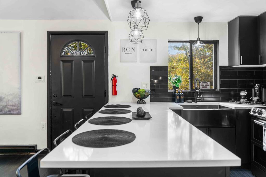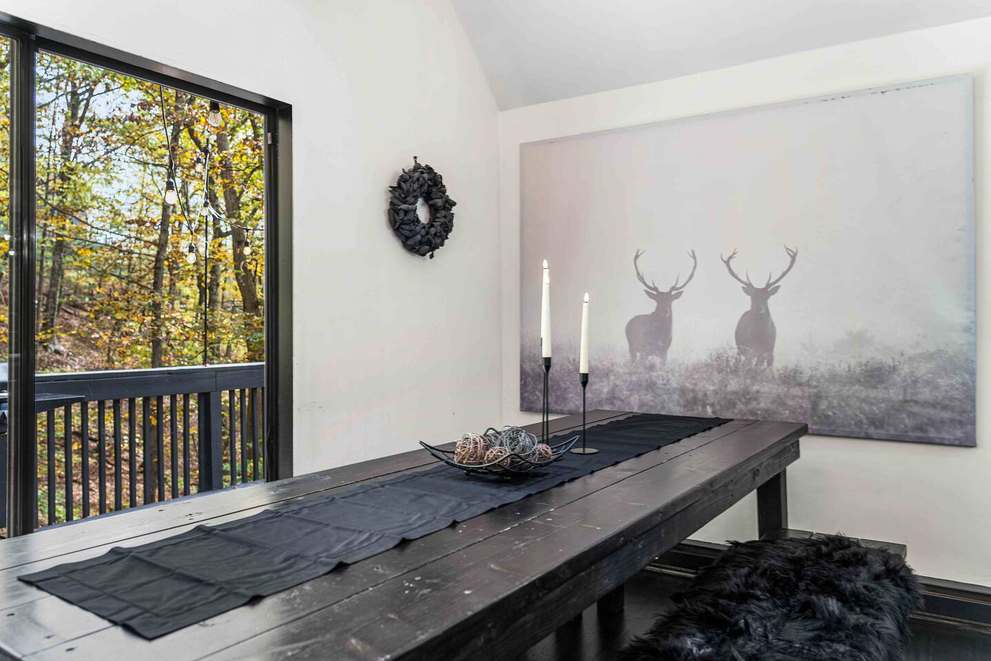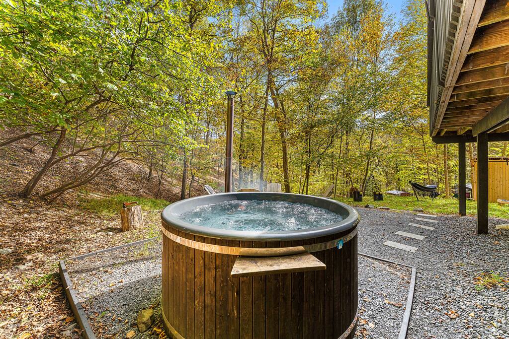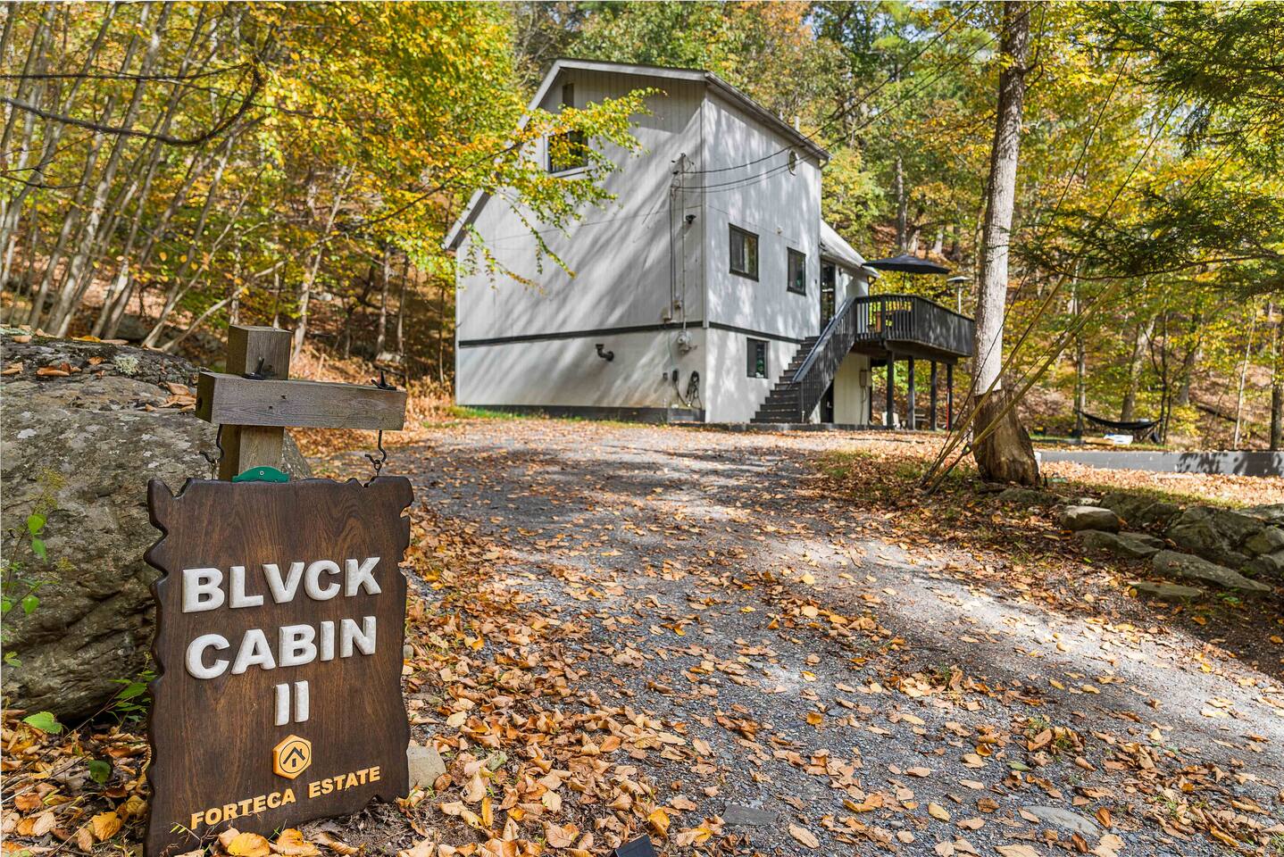 The BLVCK Cabin II is located in the Heart of the Bushkill Mountains area. Being surrounded by creeks, nature, and views this true Mountain terrain also has roads that can be steep and bumpy filled with gravel, please note in the wintertime we recommend vehicles properly equipped for snow to access the property to get around winter storms. The community does plow the snow daily as well as our contracted snow plowers. Price Chopper is a 24/7 Supermarket that will have an amazing selection of seafood, meats, vegetables, beer, wine and so much more. Shawnee Mountain is a short 15-20 minute drive for all your skiing and snowboarding needs. We have a kayaking place roughly 25 minutes from the house as well. Farmers Market happens every weekend as well. Bushkill Falls & hiking is 15-20 minutes as well. Other major snow attractions are 30-45 minutes away to include the Pocono Outlet shopping center.