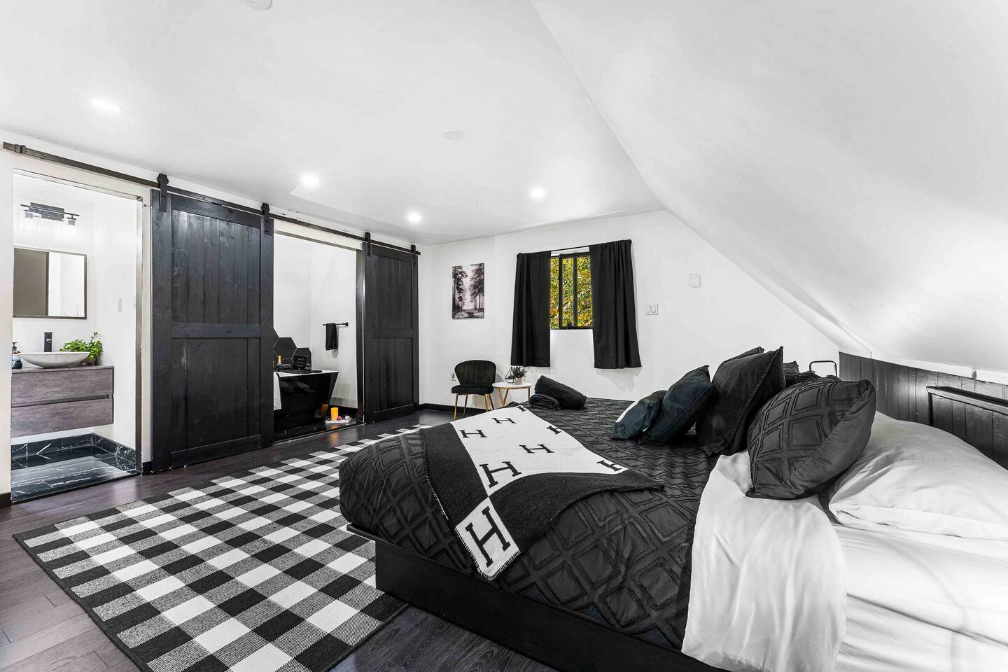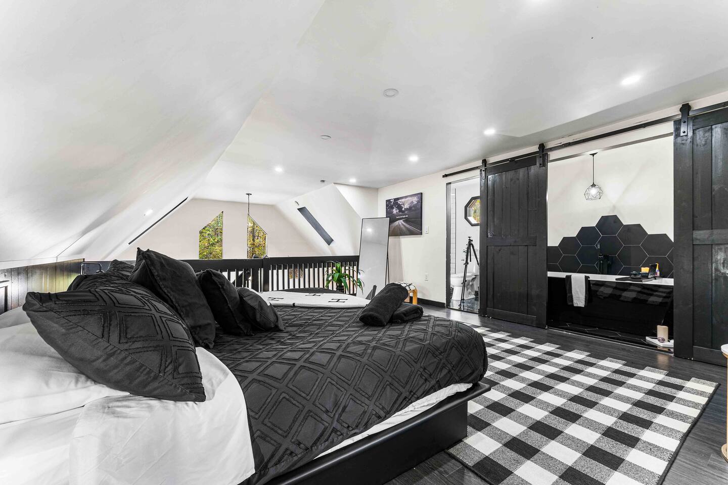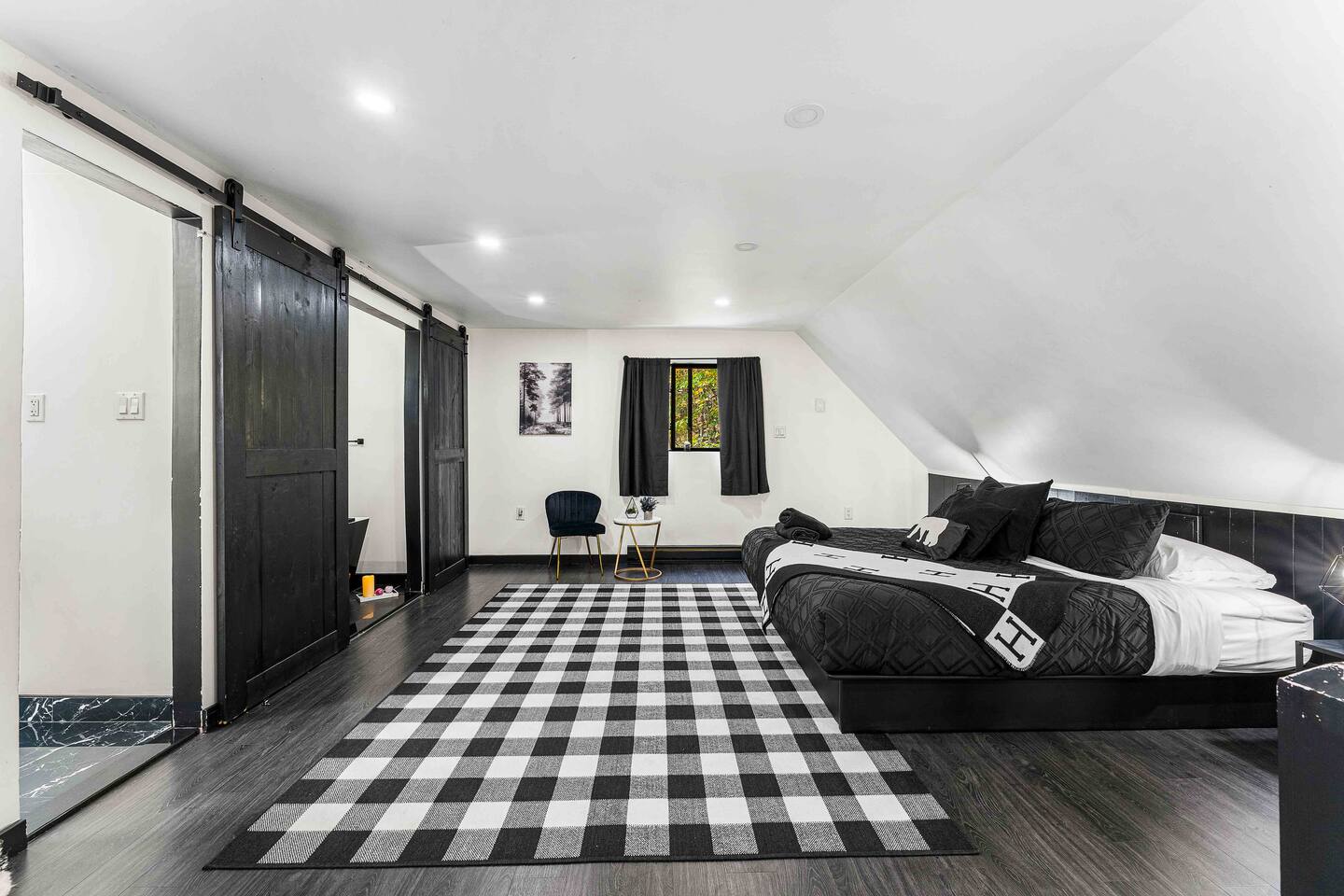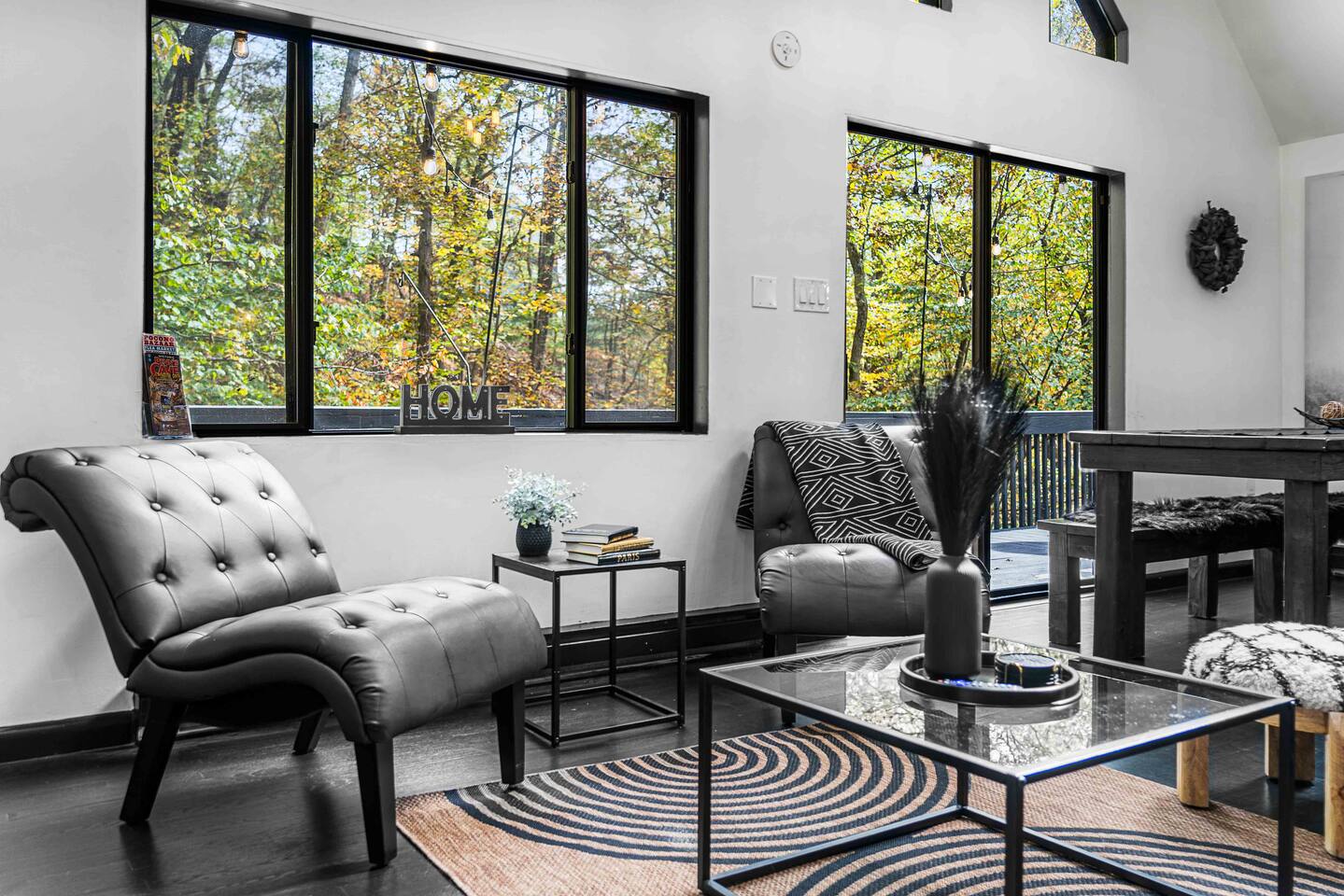 The BLVCK Cabin II is located in the Heart of the Bushkill Mountains area. Being surrounded by creeks, nature, and views this true Mountain terrain also has roads that can be steep and bumpy filled with gravel, please note in the wintertime we recommend vehicles properly equipped for snow to access the property to get around winter storms. The community does plow the snow daily as well as our contracted snow plowers. Price Chopper is a 24/7 Supermarket that will have an amazing selection of seafood, meats, vegetables, beer, wine and so much more. Shawnee Mountain is a short 15-20 minute drive for all your skiing and snowboarding needs. We have a kayaking place roughly 25 minutes from the house as well. Farmers Market happens every weekend as well. Bushkill Falls & hiking is 15-20 minutes as well. Other major snow attractions are 30-45 minutes away to include the Pocono Outlet shopping center.
