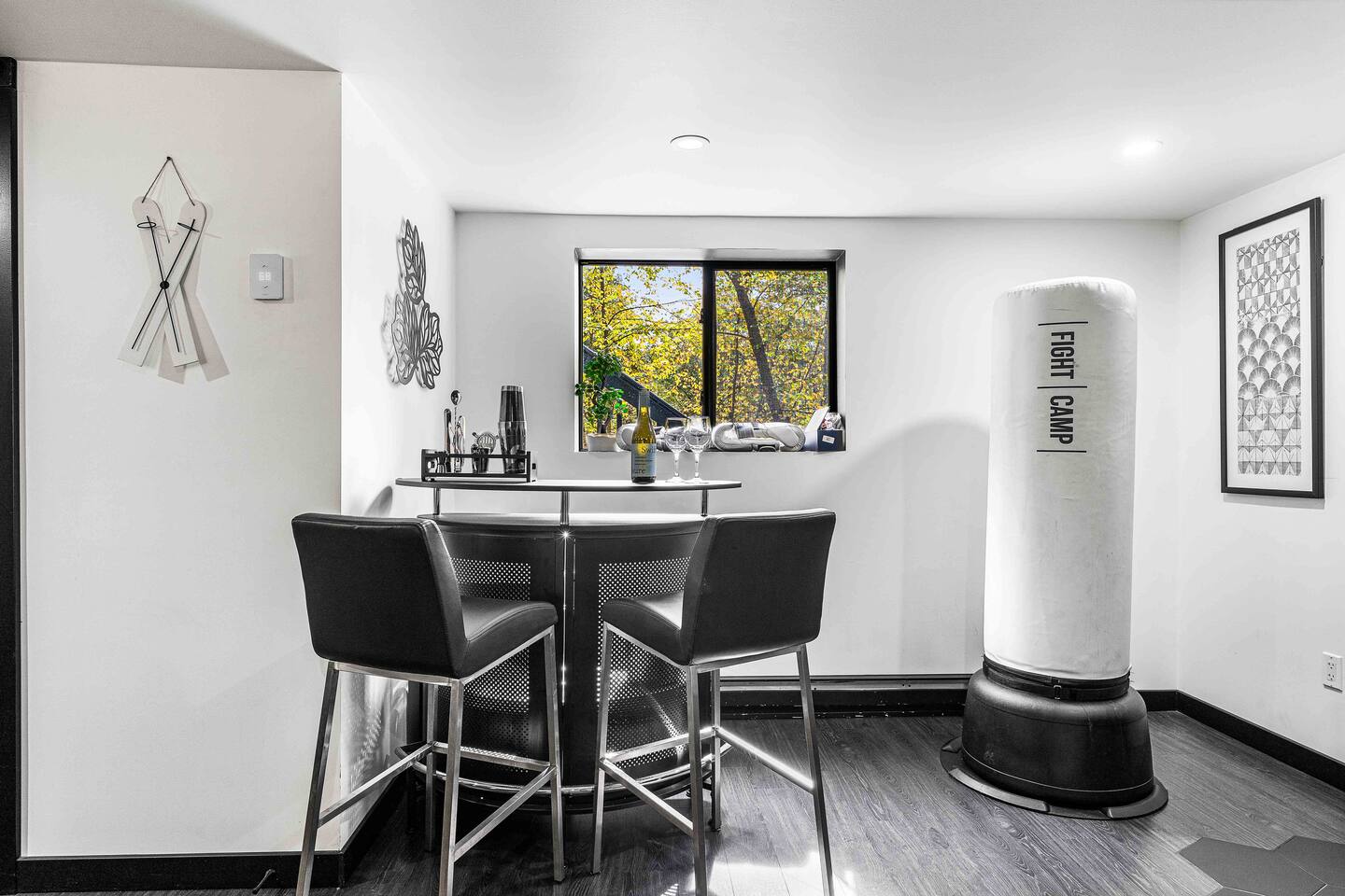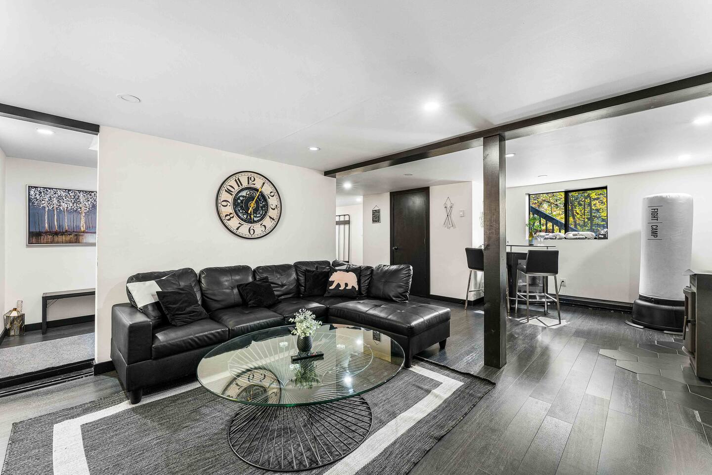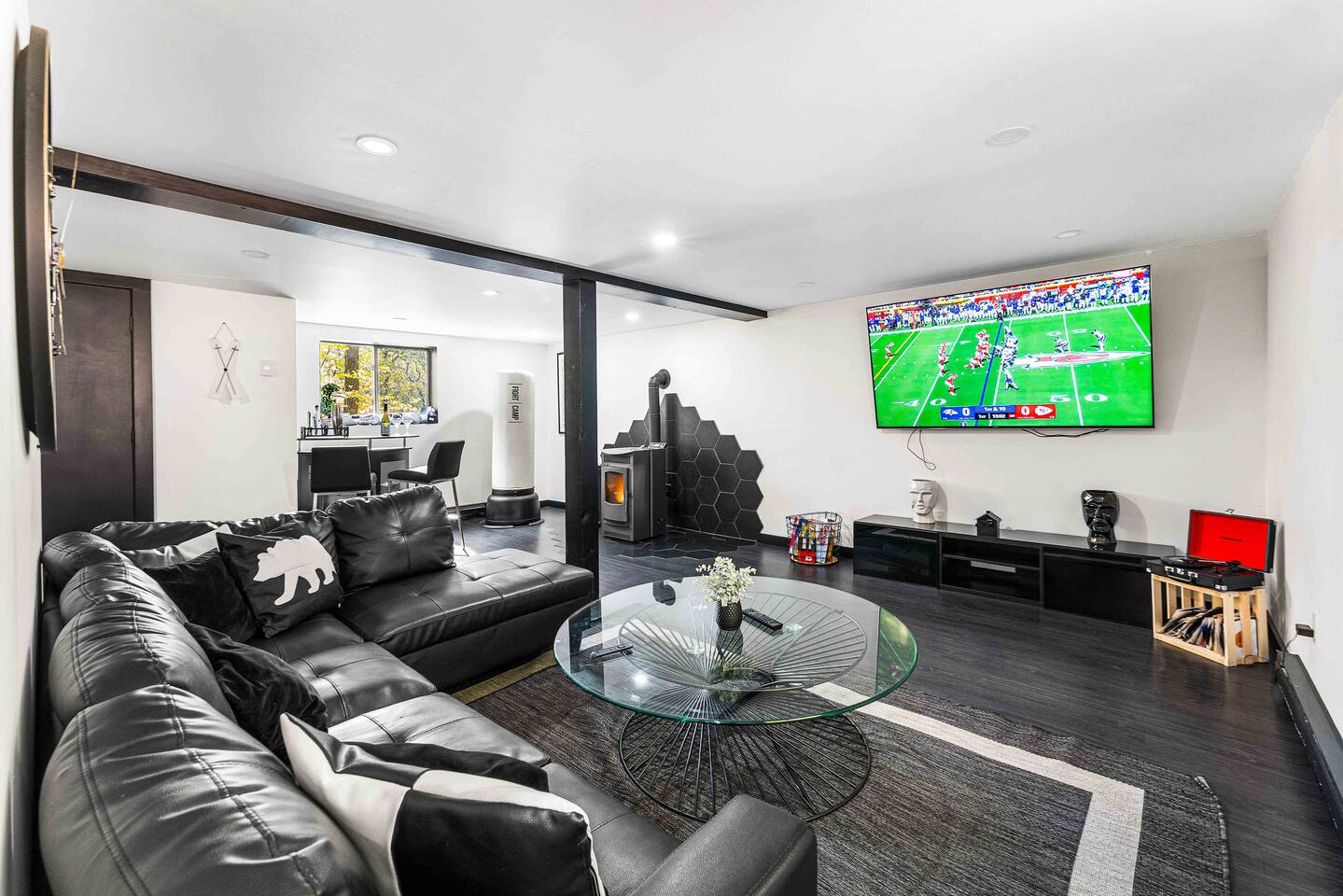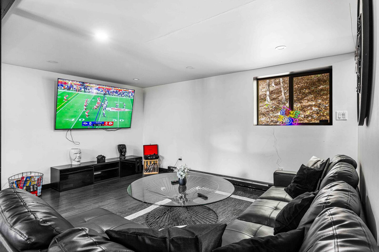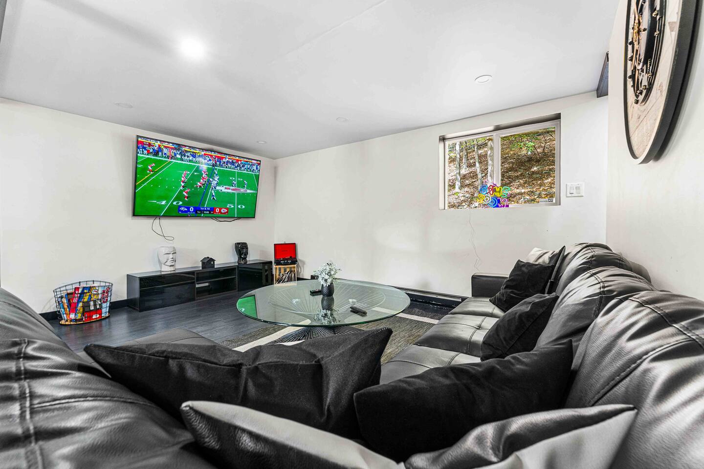 The BLVCK Cabin II is located in the Heart of the Bushkill Mountains area. Being surrounded by creeks, nature, and views this true Mountain terrain also has roads that can be steep and bumpy filled with gravel, please note in the wintertime we recommend vehicles properly equipped for snow to access the property to get around winter storms. The community does plow the snow daily as well as our contracted snow plowers. Price Chopper is a 24/7 Supermarket that will have an amazing selection of seafood, meats, vegetables, beer, wine and so much more. Shawnee Mountain is a short 15-20 minute drive for all your skiing and snowboarding needs. We have a kayaking place roughly 25 minutes from the house as well. Farmers Market happens every weekend as well. Bushkill Falls & hiking is 15-20 minutes as well. Other major snow attractions are 30-45 minutes away to include the Pocono Outlet shopping center.