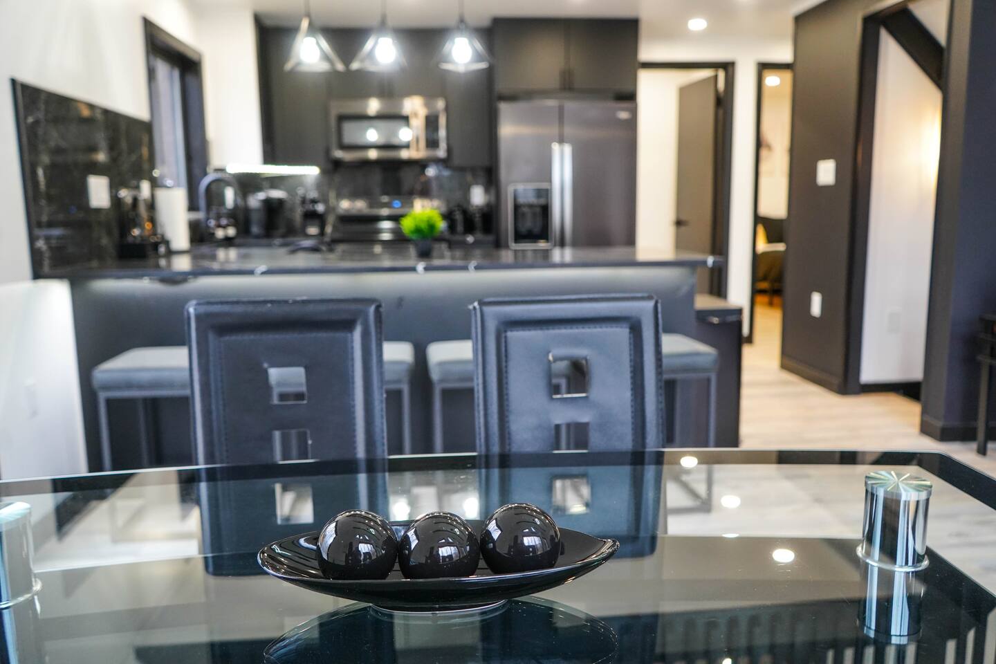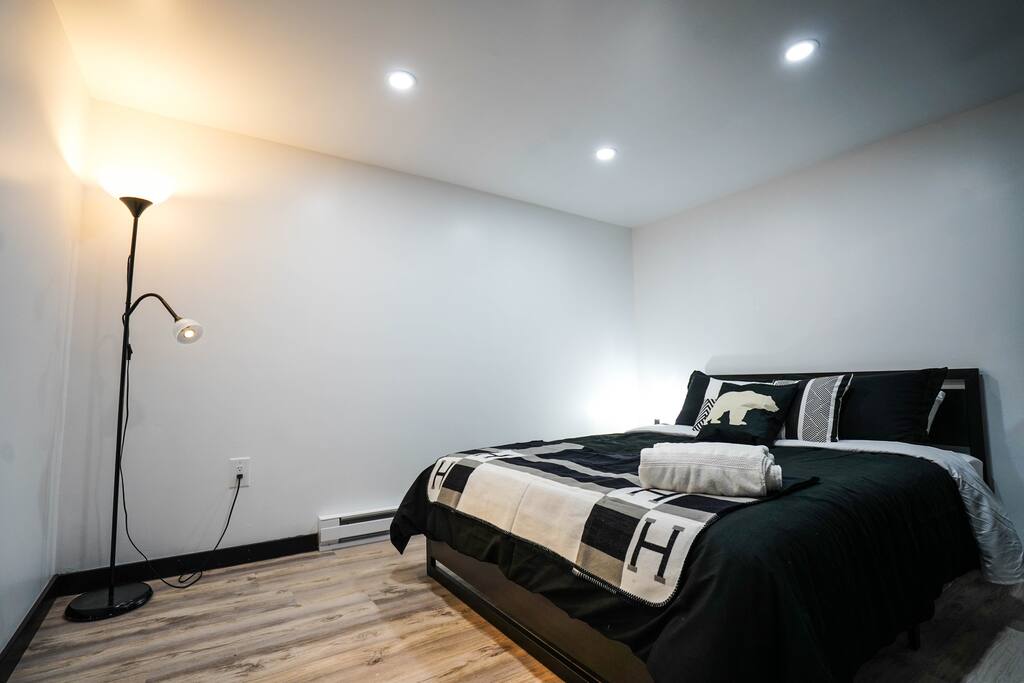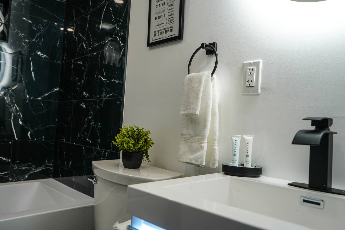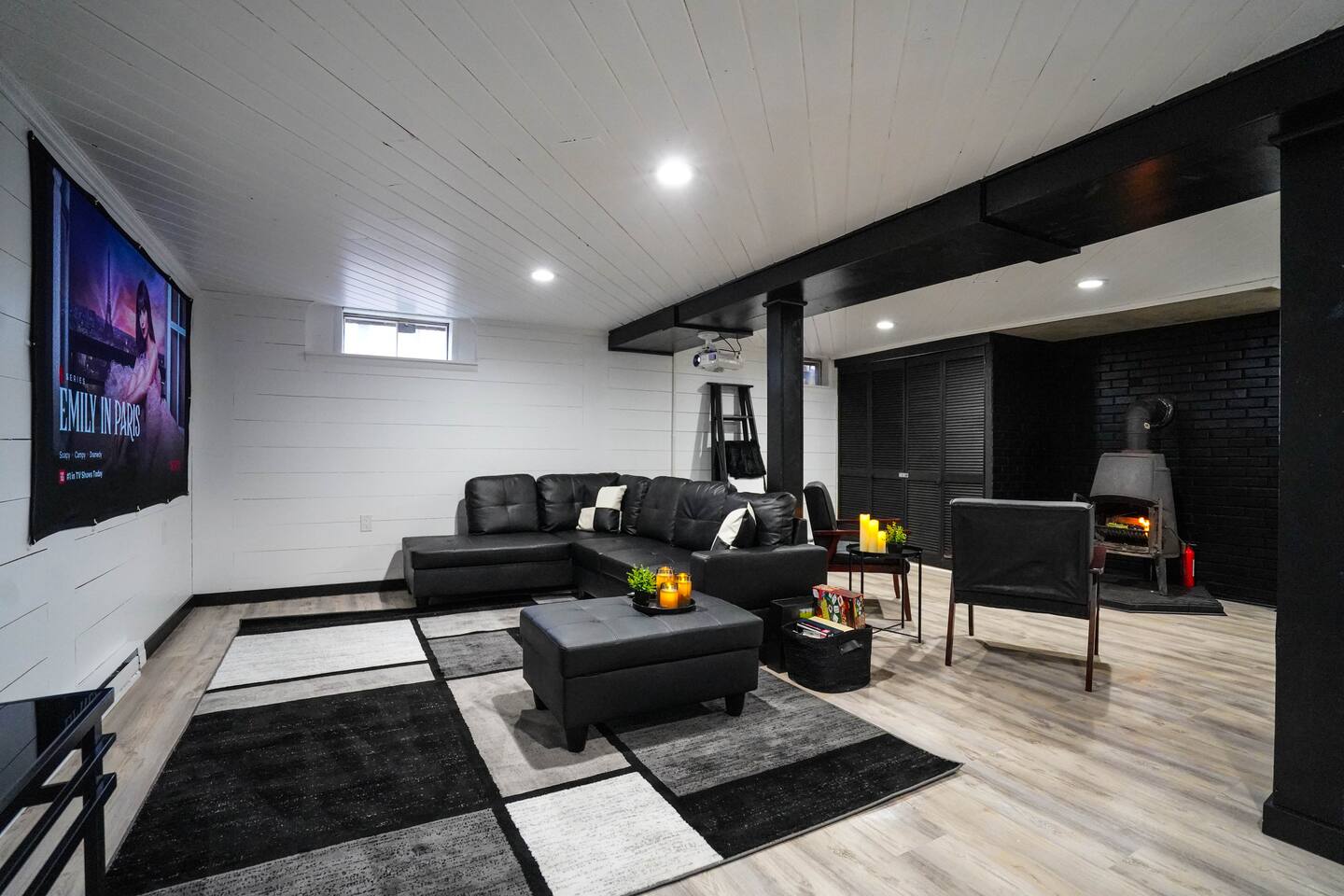 The house has 3 levels. Upper level: Loft with queen-size bed, TV and free standing tub. Main Level: Kitchen/Dinning Room/Living Room Area with wood burning Fireplace, full bathroom, 2 bedrooms with queen-size beds. Lower Level: Wood burning stove, Movie theater/Projector area, Full bathroom, bedroom with queen-size bed, Washer + Dryer available throughout your stay.