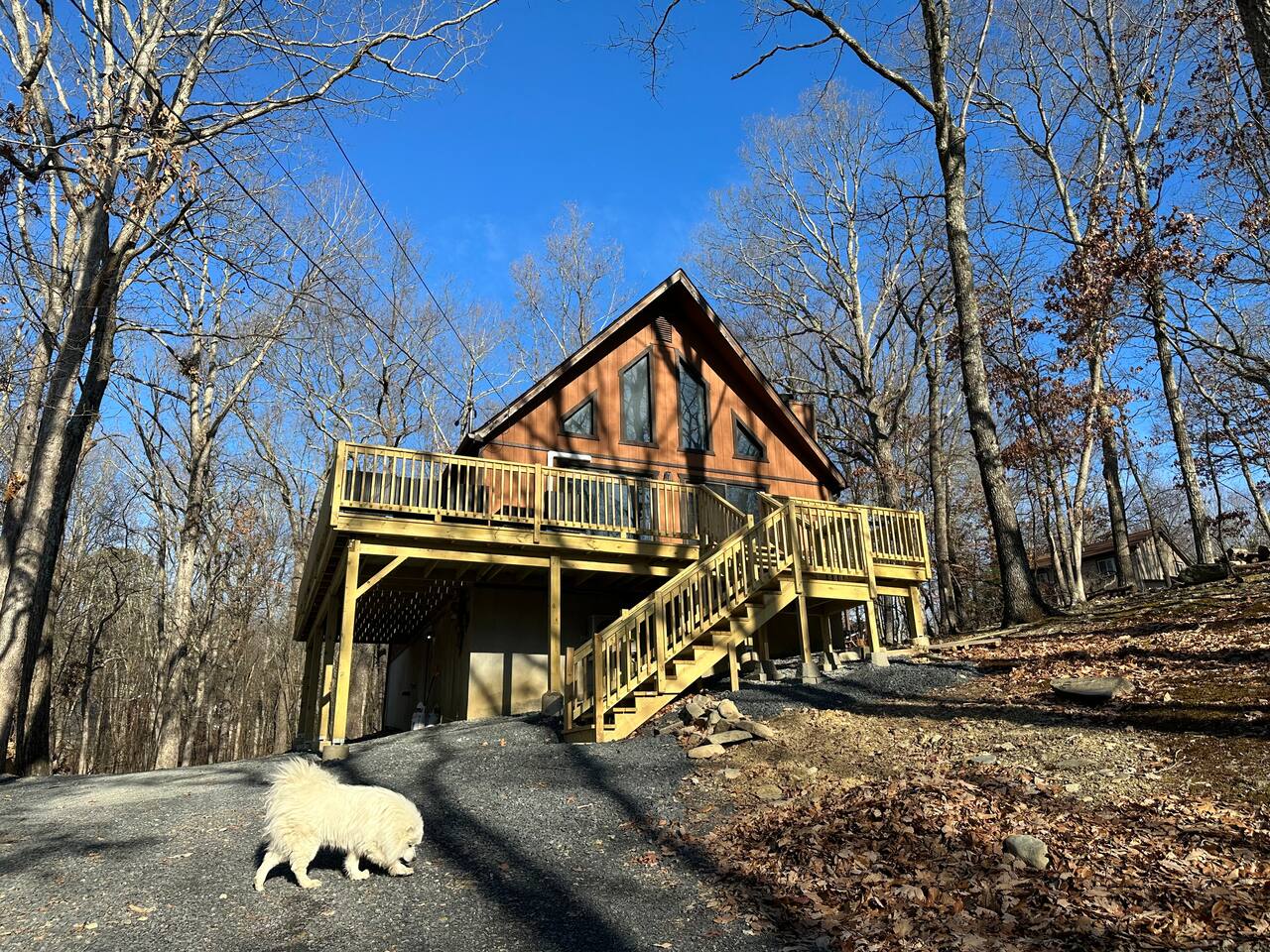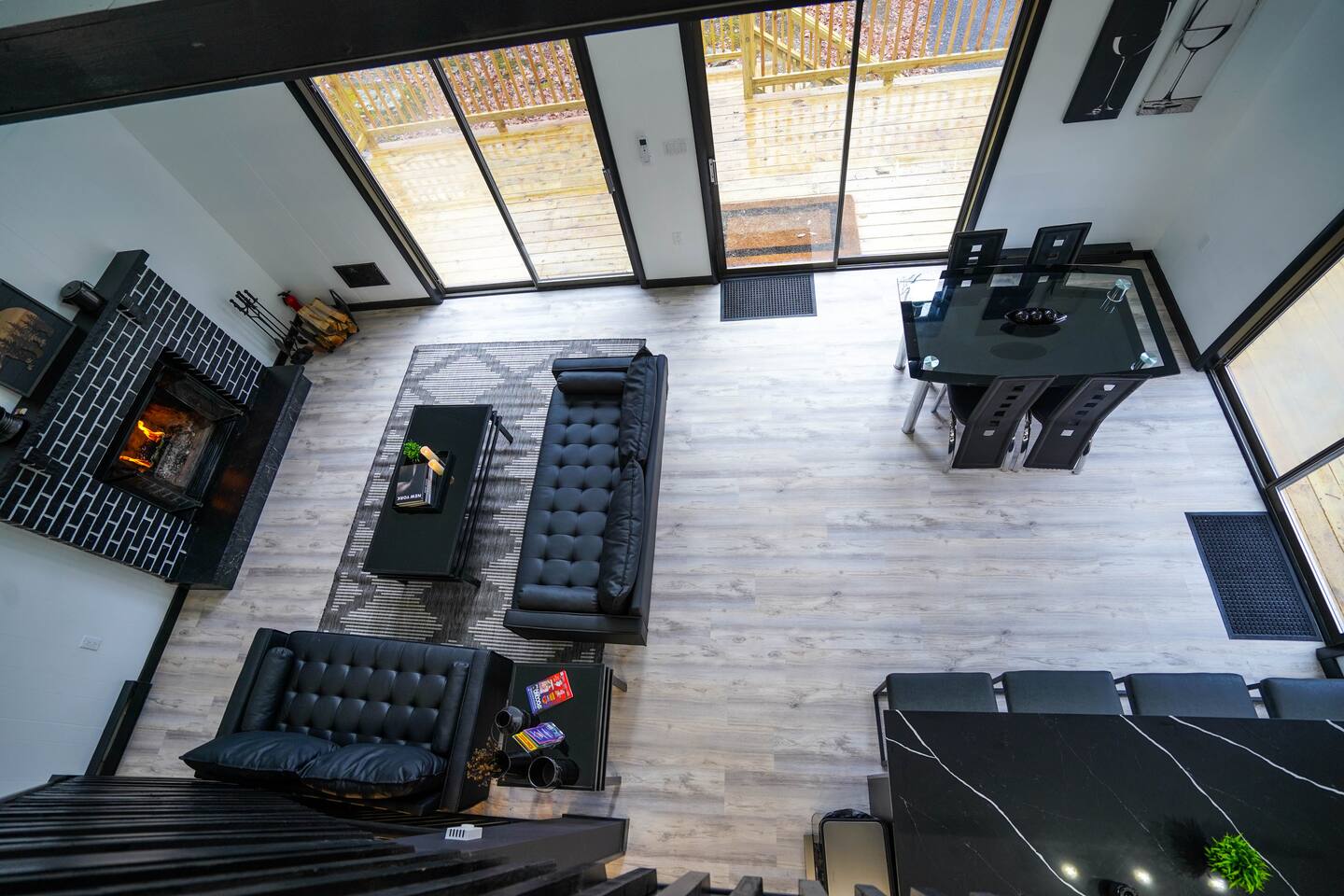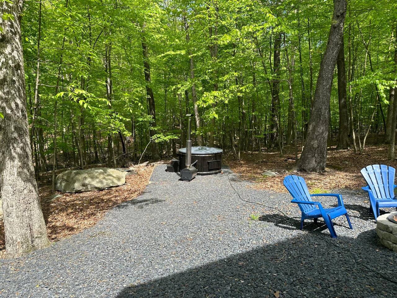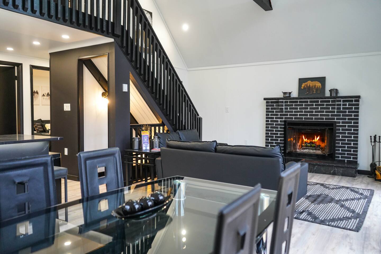 True mountain escape with designer finishes and high end appliances. The Cabin is situated near Bushkill Falls. The house is suited for 8 people with 3 queen bedrooms and Queen Loft on the upper level. Open kitchen plan that connects with the living space highlighted by a beautiful fireplace. Beautiful deck for entertaining with a gas fire pit. Basement with cozy fireplace and projector. Only 20mins away from Shawnee Mountain and Bushkill Falls. Backyard with a fire pit and wood burning hot tub!