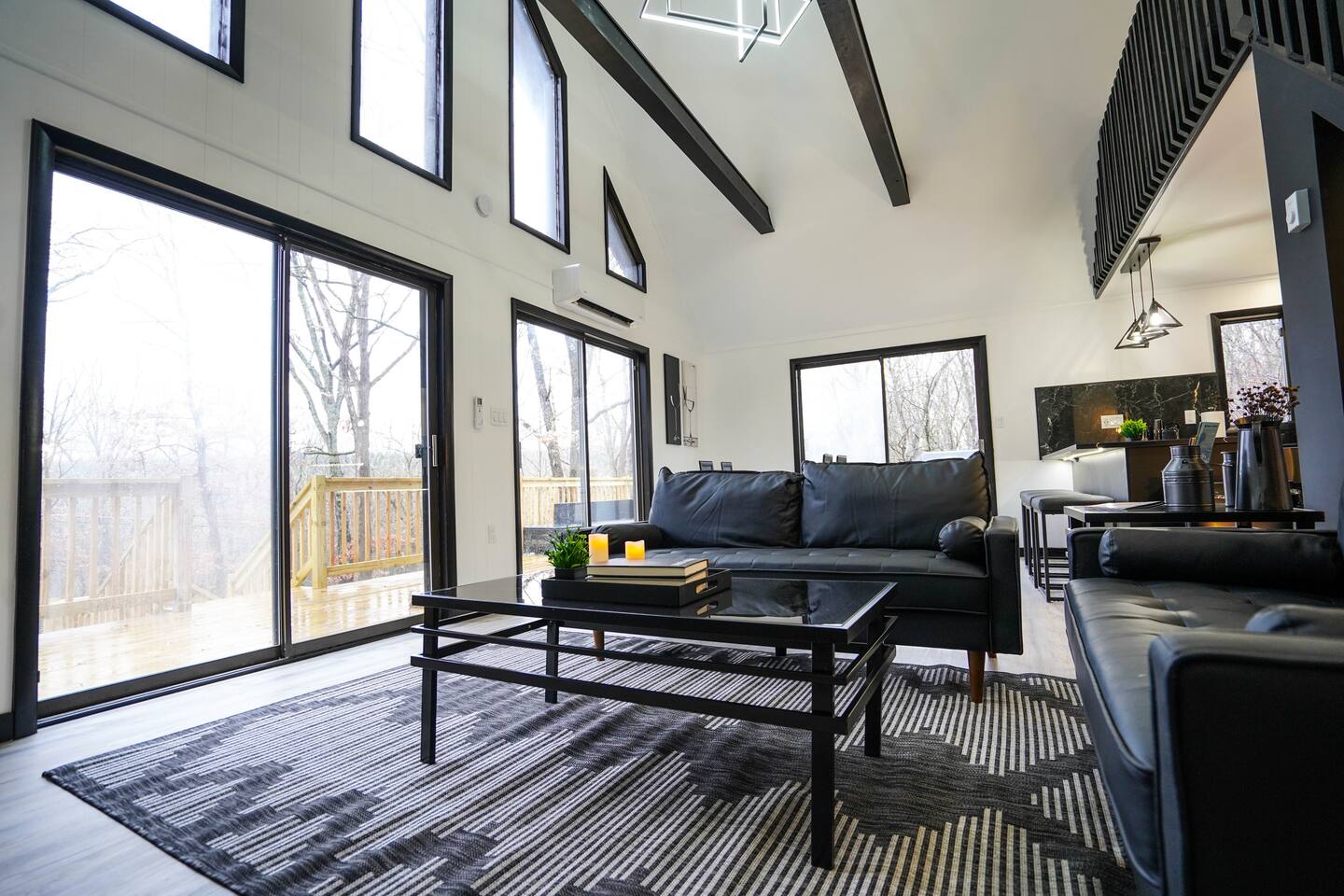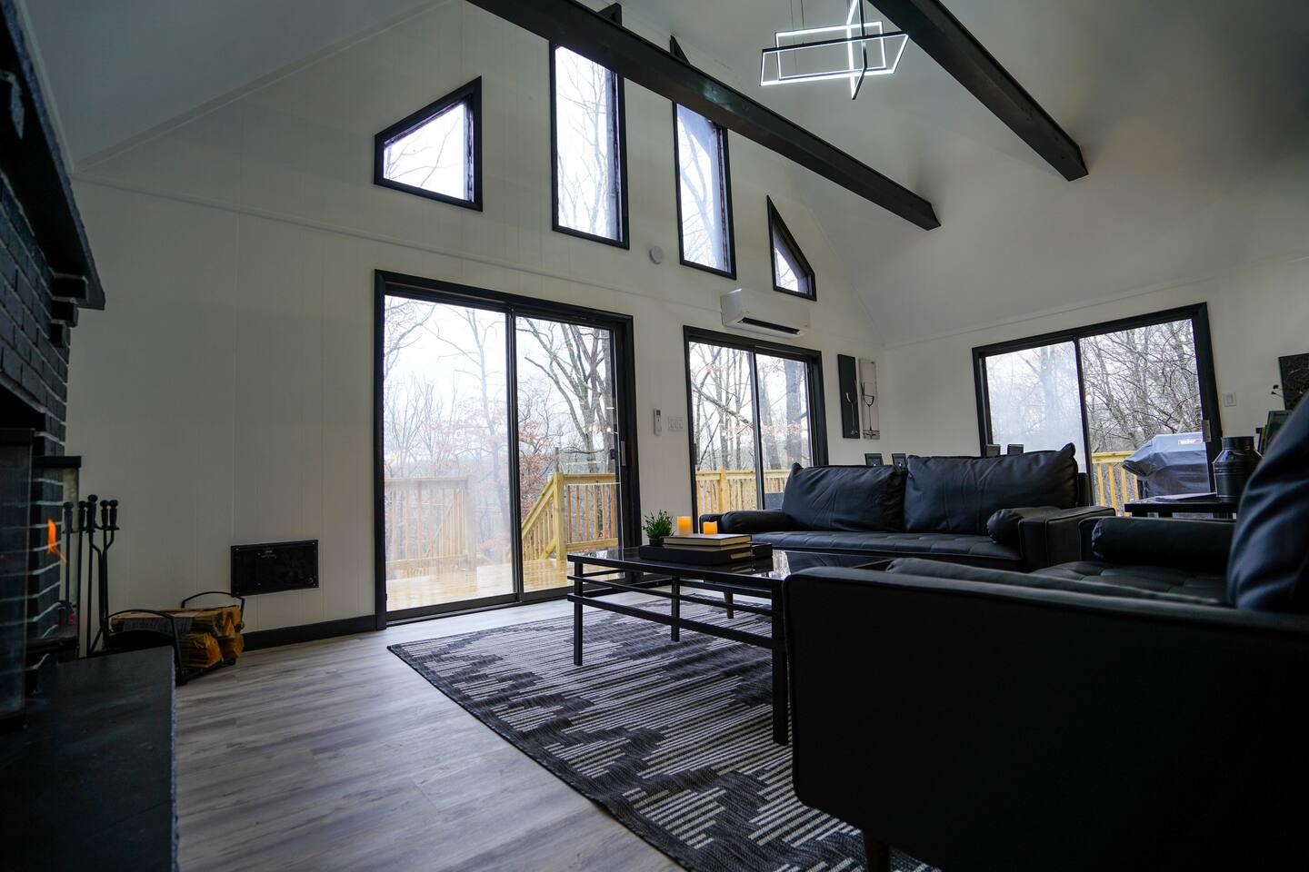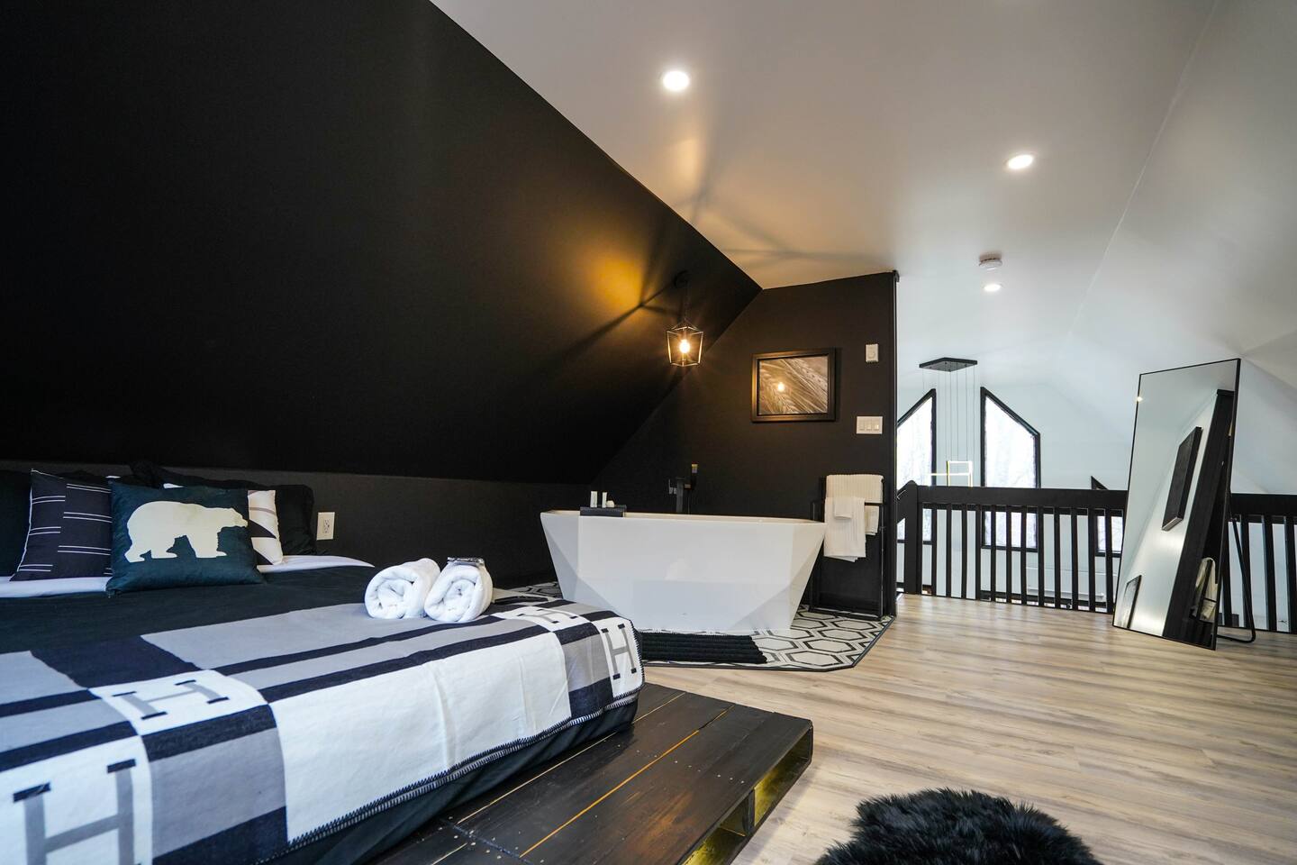 Modern BLVCK Cabin 3 near Bushkill Fall Hot Tub