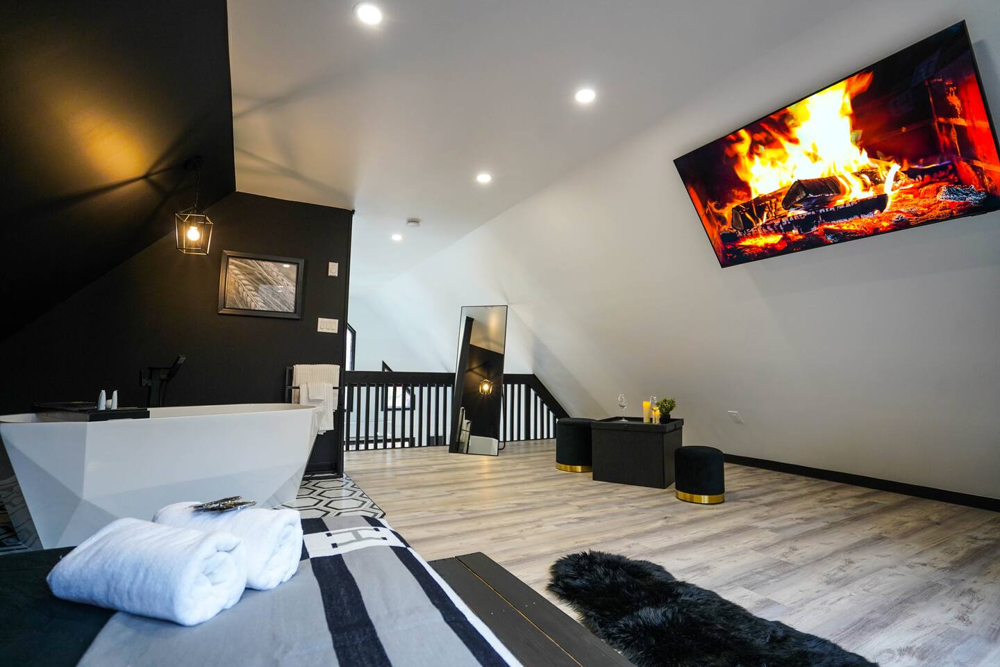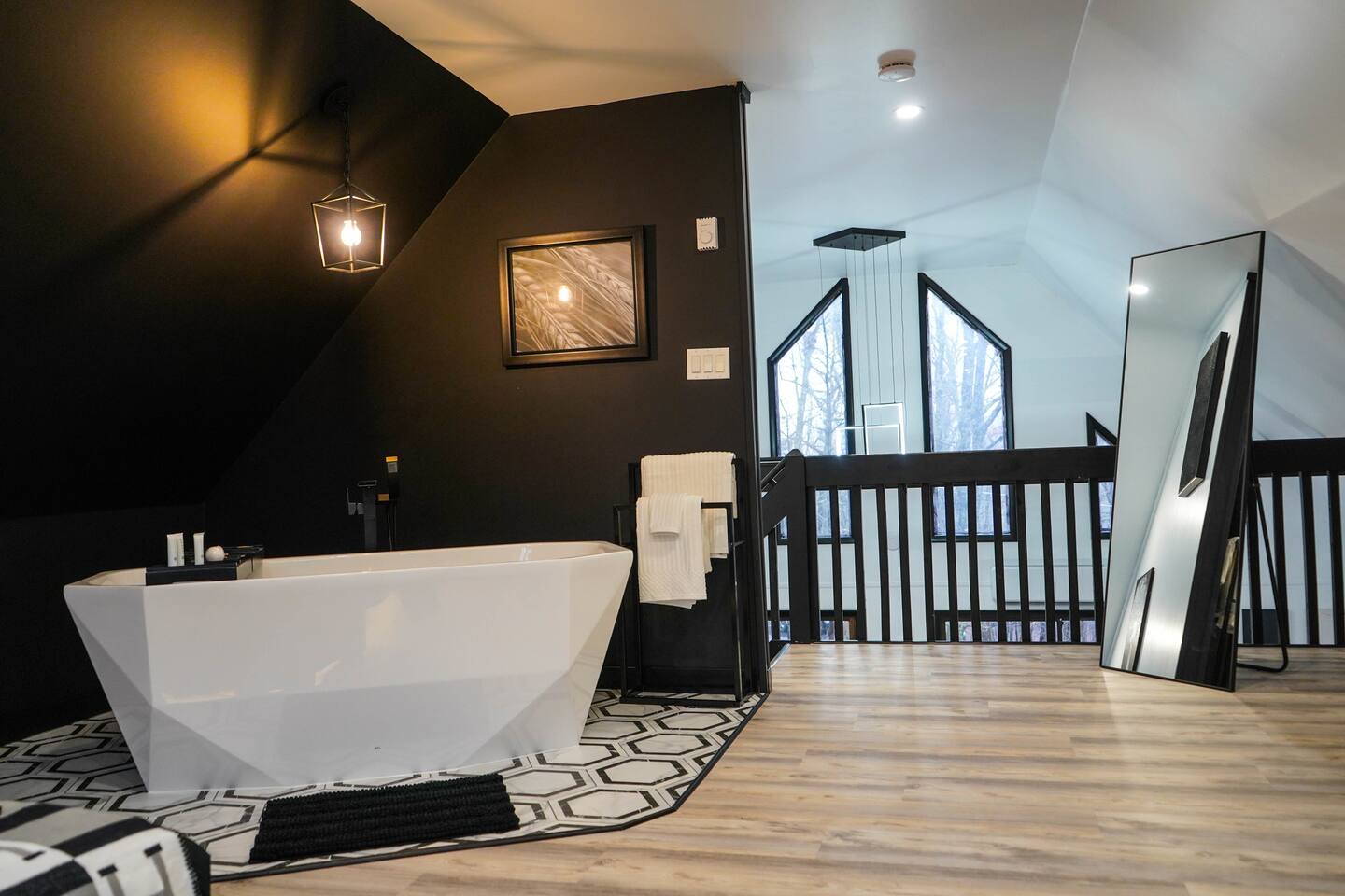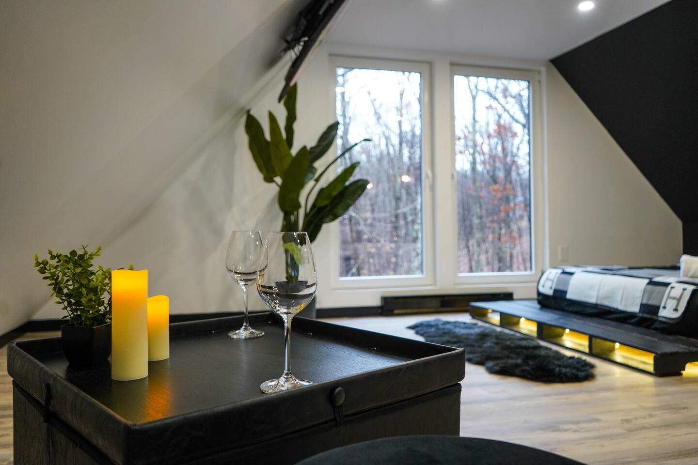 Modern BLVCK Cabin 3 near Bushkill Fall Hot Tub