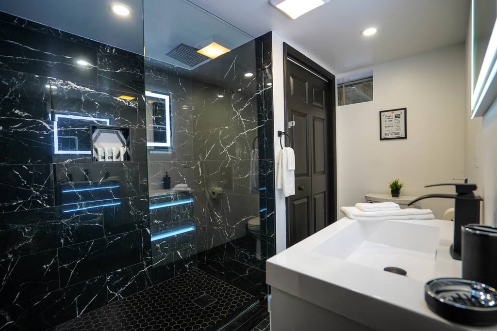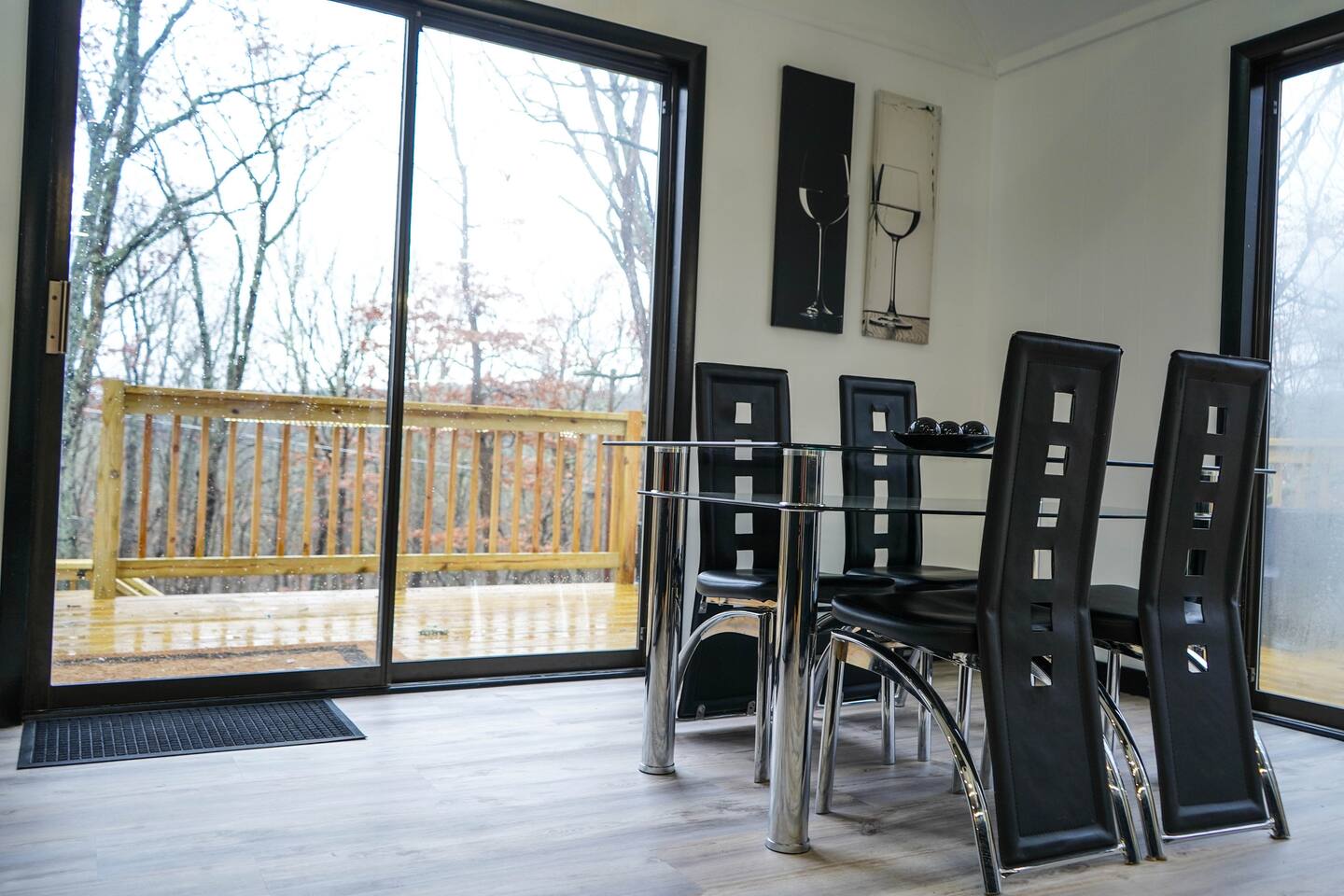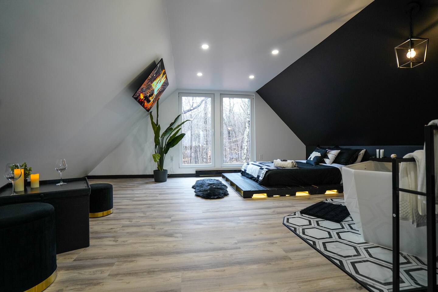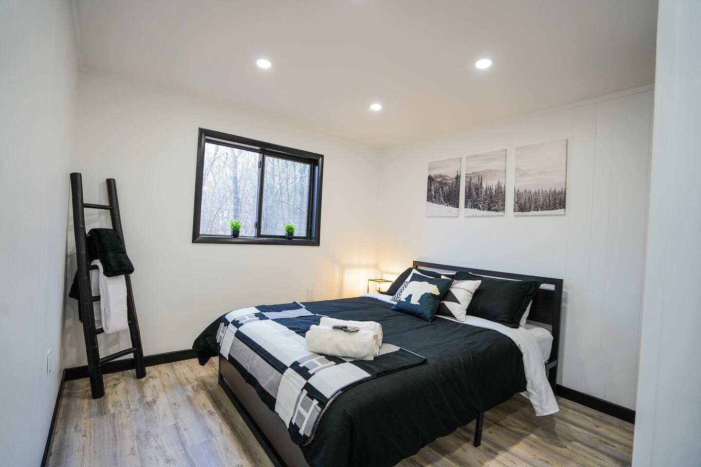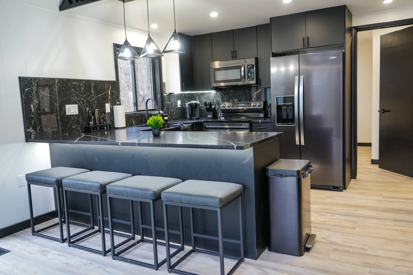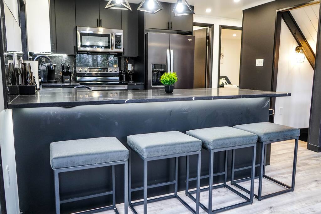 The BLVCK Cabin III is located in the Heart of the Bushkill Mountain area. Being surrounded by creeks, nature, and views this true Mountain terrain also has roads that can be steep and bumpy filled with gravel, please note in the wintertime we recommend vehicles properly equipped for snow to access the property to get around winter storms. The community does plow the snow daily as well as our contracted snow plowers. Price Chopper is a 24/7 Supermarket that will have an amazing selection of seafood, meats, vegetables, beer, wine and so much more. Shawnee Mountain is a short 15-20 minute drive for all your skiing and snowboarding needs. We have a kayaking place roughly 25 minutes from the house as well. Farmers Market happens every weekend as well. Bushkill Falls & hiking is 15-20 minutes as well. Other major snow attractions are 30-45 minutes away to include the Pocono Outlet shopping center.