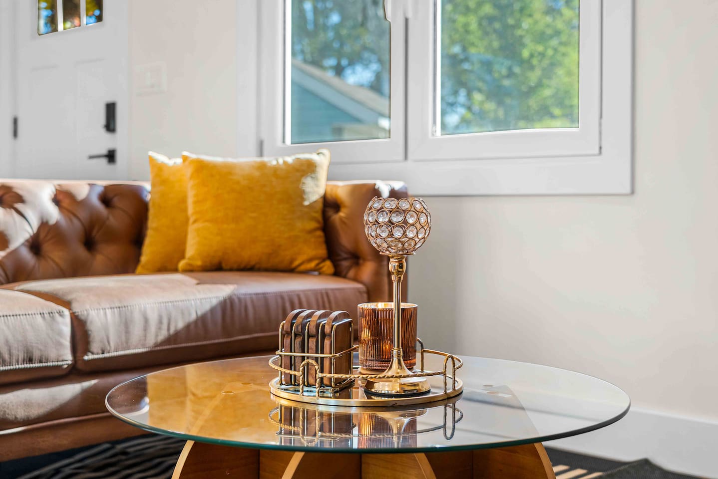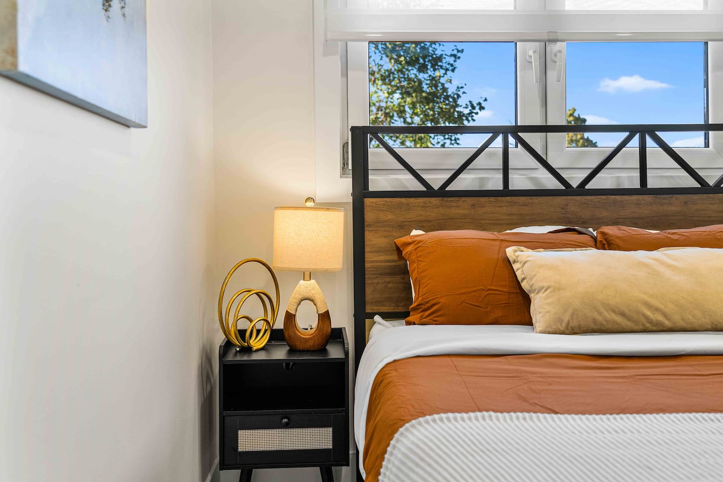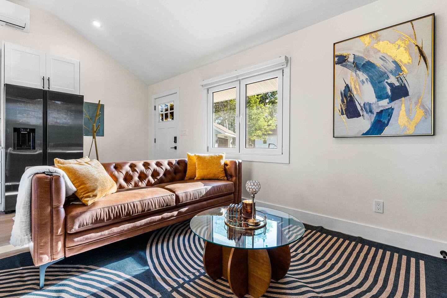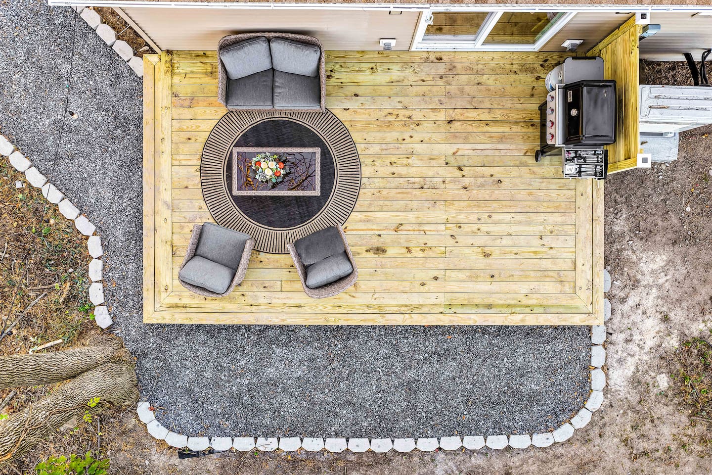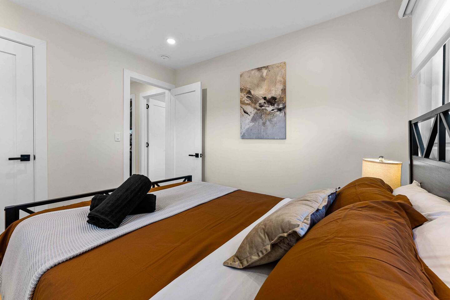 Welcome to your serene lakeside retreat — where modern comfort meets natural beauty. Step inside to an open-concept space with stylish décor and plenty of natural light. To the left, unwind in the living room featuring a cozy electric fireplace, smart TV, and plush seating. Straight ahead, a fully equipped kitchen with stainless steel appliances connects seamlessly to a dining area with seating for four. A sliding glass door opens to a peaceful back patio with a BBQ grill and outdoor seating, overlooking nothing but nature. Down the hallway, you’ll find a full bathroom with a shower/tub combo, heated floors, and complimentary toiletries. The open closet area includes a washer and dryer for your convenience. The main bedroom offers a queen bed and tranquil lake views, while the second bedroom features another queen bed and stunning sunrise scenery. Outside, enjoy your private lake deck, wood-burning hot tub, and firepit area with benches and a swing — the perfect spot to relax and take in the breathtaking surroundings.