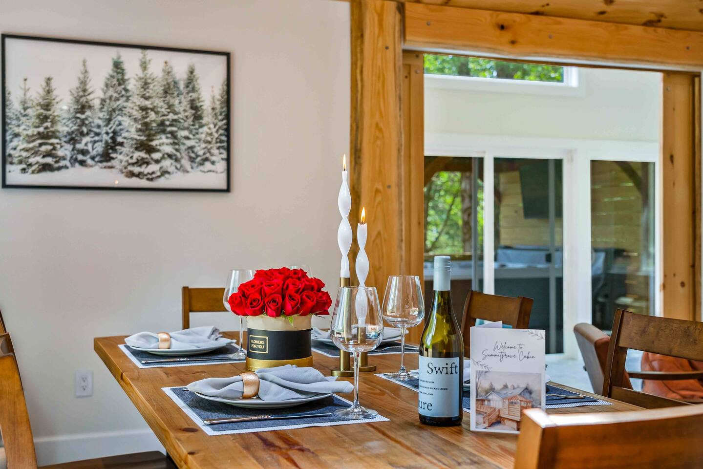Since our cabin is located in a private (but not gated) community, we’ll need a few details after booking in order to register your stay with the community office. This includes the main guest’s full name, the number of additional guests, and vehicle information (main car's detailed information: Make/Model/Plate Number and number of any extra cars). Once we submit this, we’ll provide you with detailed check-in instructions ahead of your arrival to ensure a smooth and easy start to your stay. Are you celebrating a special occasion during your stay? Let us know in advance—we’d be delighted to help make it extra memorable and can arrange something special upon request.
