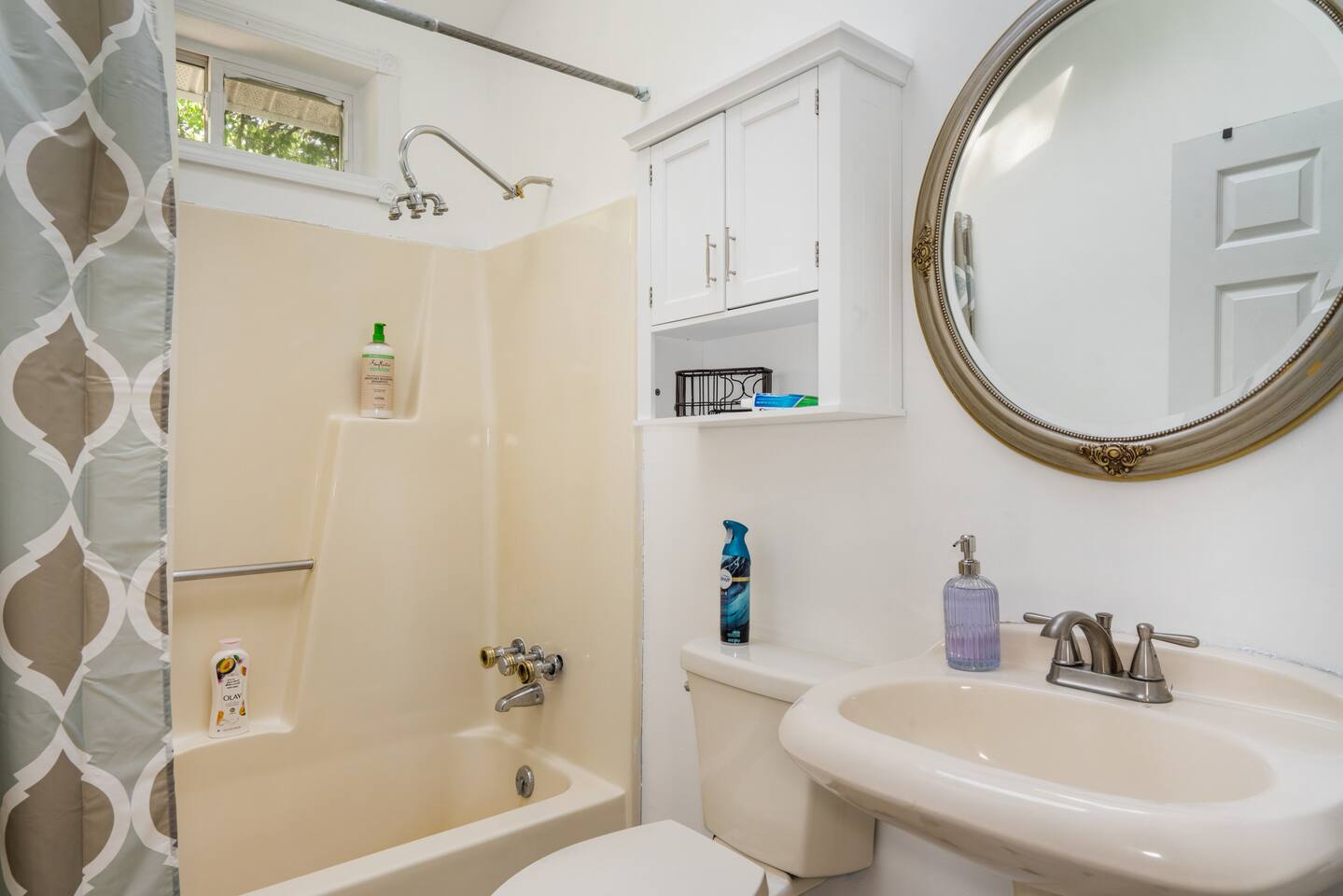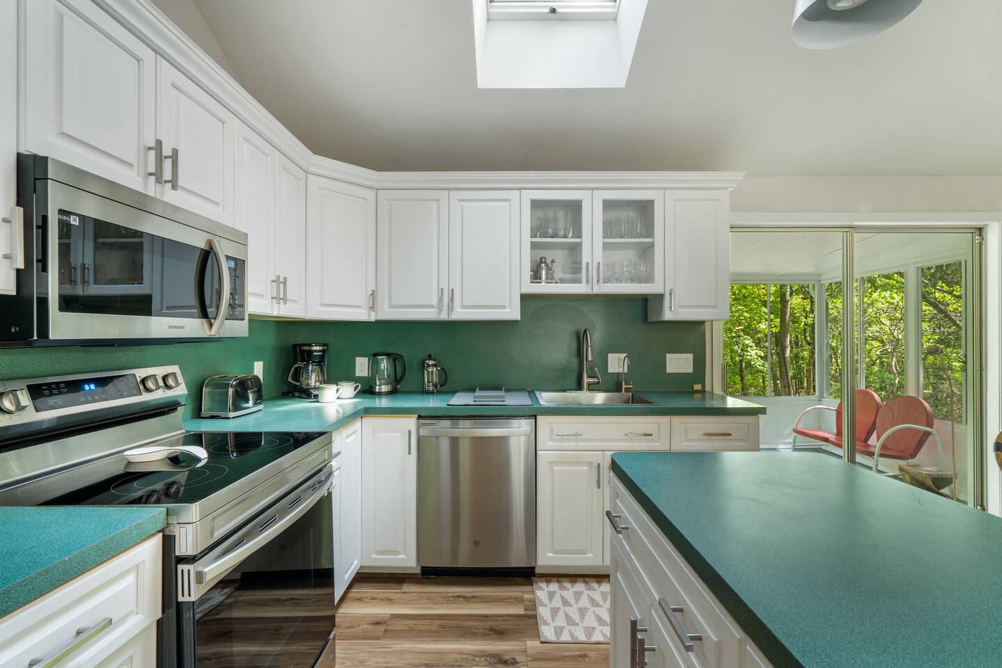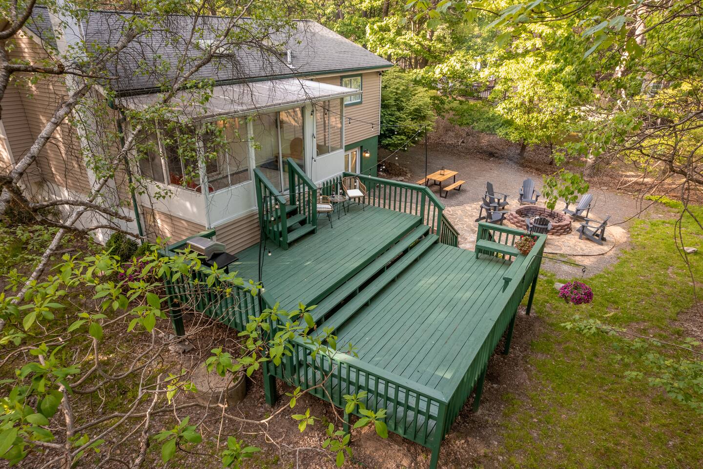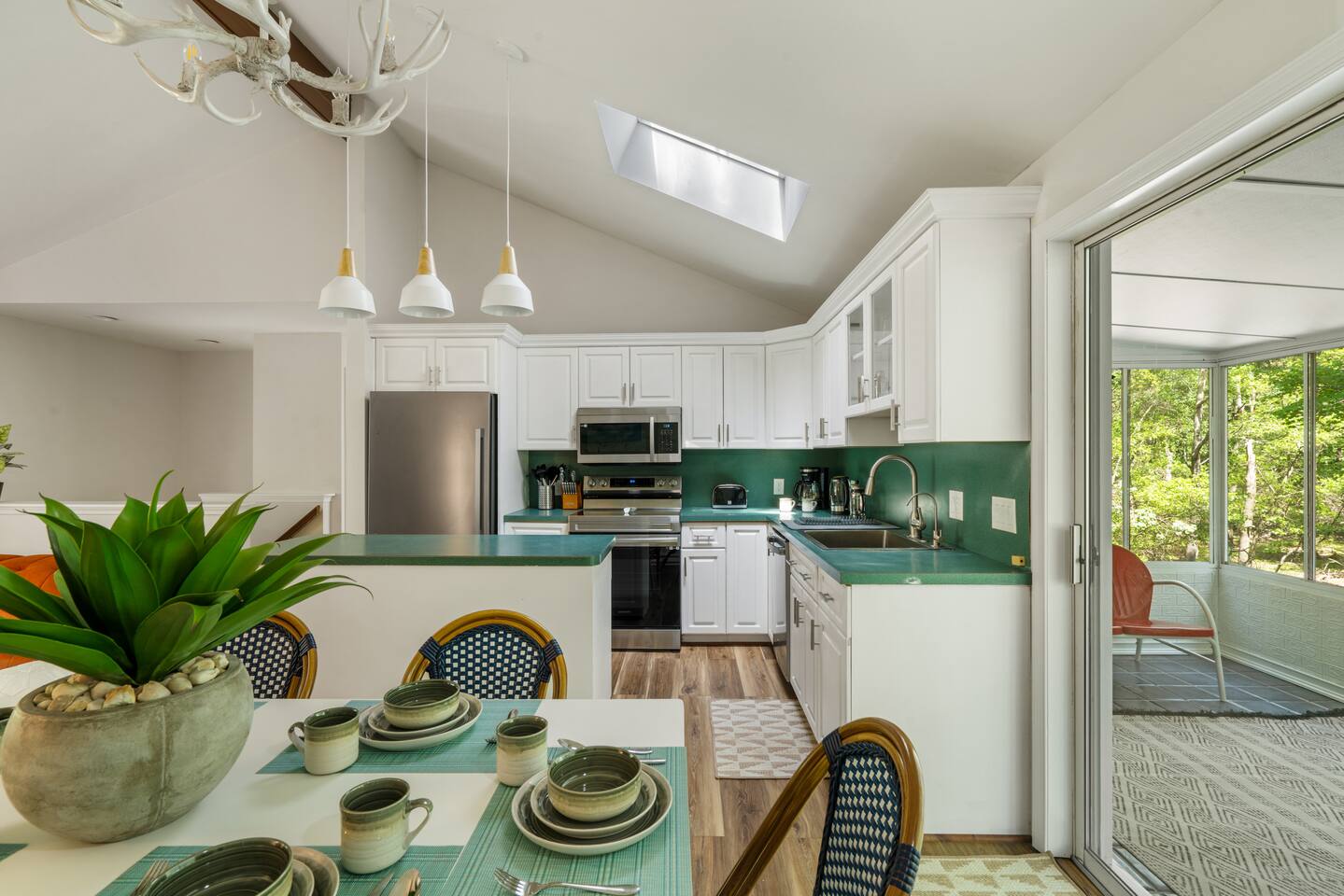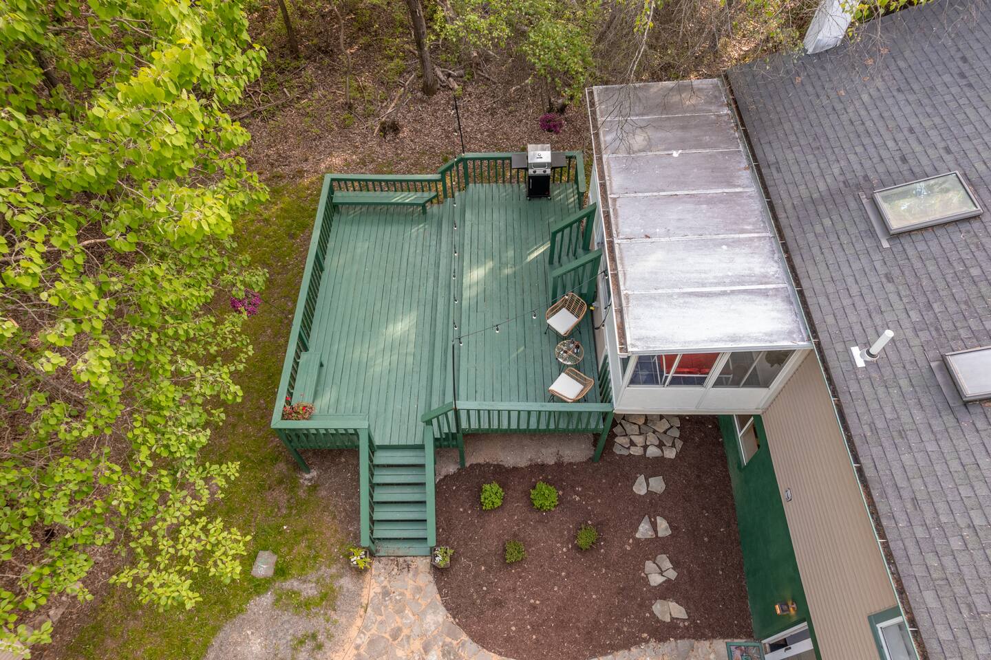 Nestled within the picturesque community of Emerald Lakes, our charming cabin offers an array of wonderful amenities provided by the Emerald Lakes Association. As our guest, you'll have exclusive access to outdoor and indoor pools, a basketball court, tennis court, three serene lakes with boat ramps, and a welcoming community center. Please note that a nominal fee allows you to enjoy these fantastic facilities, payable directly at the community center (cost per badge for amenities are $20 per day, $30 for 3 days, $50 for 7 days per person (2 years and older)). >> Work from Home We provide high speed internet throughout the house. Besides, we have an office desk and a 23 inch monitor that you can use to make it like your home office. >> Living Room Step into our thoughtfully designed living space, where the main living room beckons with its inviting open layout - perfect for both memorable gatherings with loved ones and cherished moments of togetherness. Our elegant dining table comfortably seats six, setting the stage for delightful shared meals and laughter-filled conversations. >> Kitchen The kitchen is a culinary haven, fully equipped to cater to your every need. From the modern fridge, microwave, and full stove/oven, to the convenient coffee maker and basic kitchen utensils and cookware, we have everything you require to whip up delicious meals and create lasting memories around the dining table. We also offer the luxury of 6-stage filtered water from the kitchen sink, ensuring your drinking and cooking needs are met with utmost care. >> Sunroom One of our most beloved spaces is the sunroom, an oasis of relaxation with two large love chairs. Here, you can savor tranquil moments while gazing out at the enchanting forest, where friendly deer occasionally pause to say hello. It's a true testament to the beauty of nature that surrounds us. >> Deck and Backyard Step out onto the deck, where a cozy hammock awaits, beckoning you to curl up with your favorite book and immerse yourself in the soothing sounds of the surrounding wilderness. And as the sun sets, unleash your inner adventurer and gather around the large firepit, relishing the magic of crackling flames under the starlit sky. For those seeking a more adventurous experience, we provide an extra hammock in the game room, perfect for setting up under the gentle sway of the trees. As you start each day at the Green Utopia, don't miss the chance to enjoy breakfast at our charming picnic table, relishing the refreshing morning breeze unless it's raining – then you can always cozy up indoors. >> Bedrooms When it's time to retreat and rest, our two bedrooms upstairs beckon with comfort and serenity. Each room features a plush queen bed and a private air conditioner, ensuring you have a blissful night's sleep. A small bathroom conveniently adjoins the bedrooms, offering ease and comfort. >> Master Bedroom For those seeking a touch of seclusion and additional amenities, our master bedroom downstairs awaits. With a private entrance to the backyard and a dedicated work space, this room is perfect for guests seeking both relaxation and productivity. During warmer months, the cooling fan keeps the room refreshingly pleasant. >> Master Bathroom The master bathroom is a true sanctuary, reminiscent of a spa-like haven. Picture yourself unwinding in the indulgent bathtub or enjoying a refreshing walk-in shower, all while marveling at the serene views of the backyard firepit. It's a space where you can truly pamper yourself and revel in pure relaxation. >> Game room In the game room, you'll find a delightful gathering spot for both children and adults alike. Enjoy bonding over board games at the large table with six chairs, or unwind on the comfortable bed-convertible sofa while watching your favorite shows on the 50" TV. For added convenience, the washer/dryer is thoughtfully placed in this space, making it easy to take care of your laundry needs.