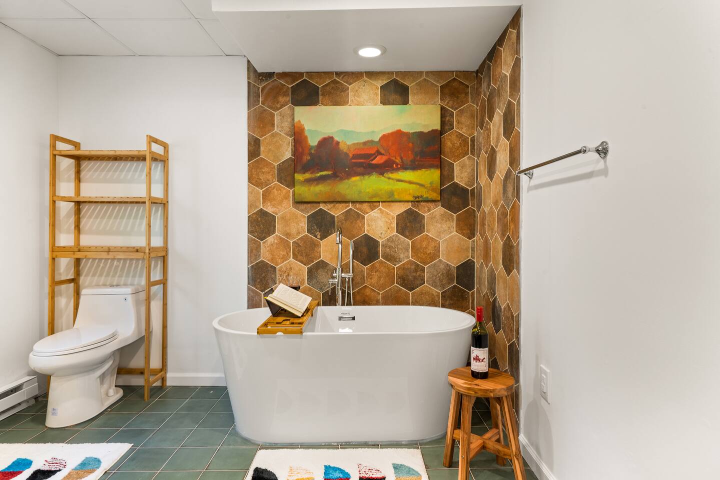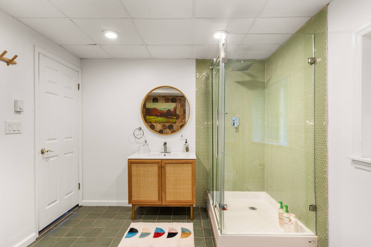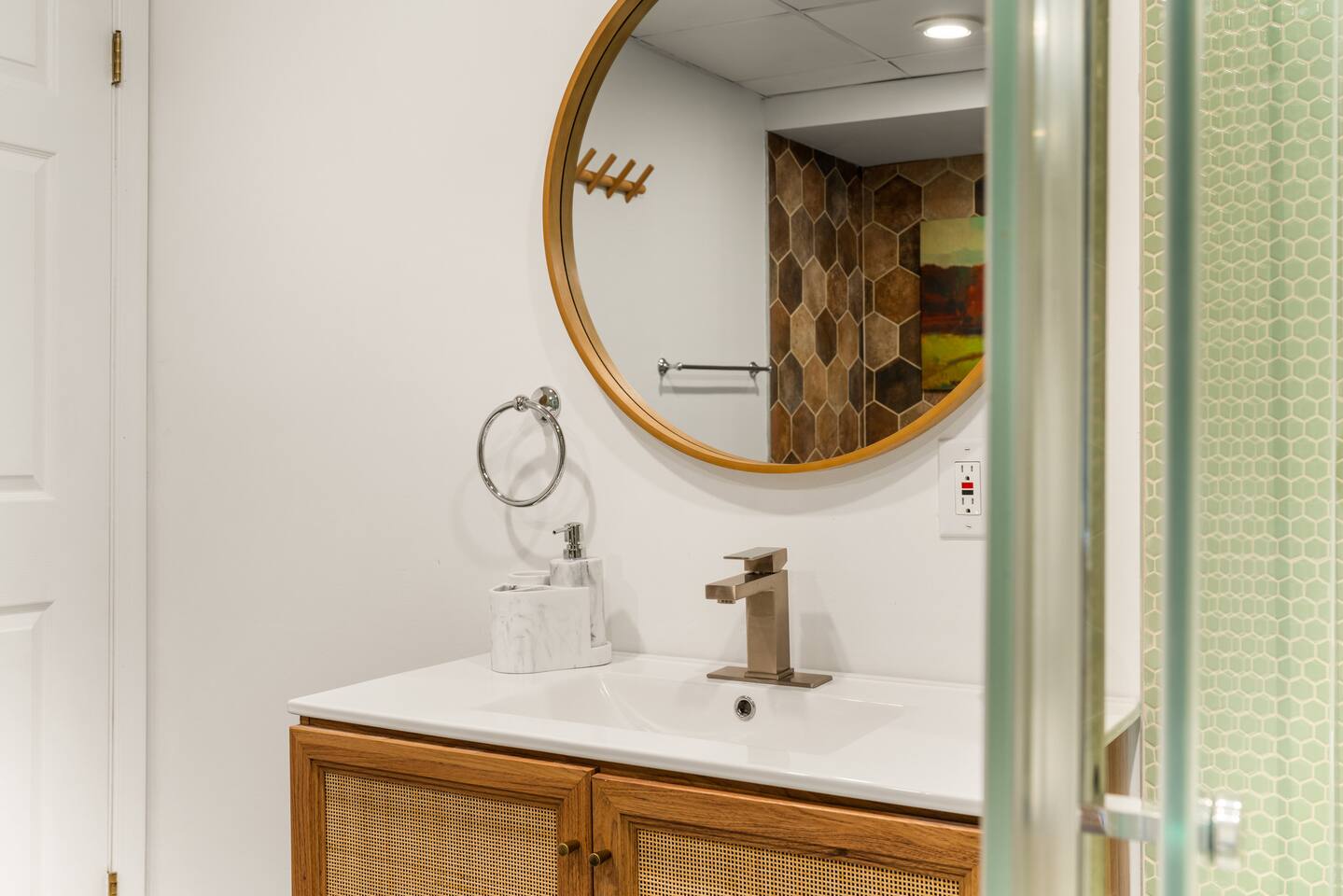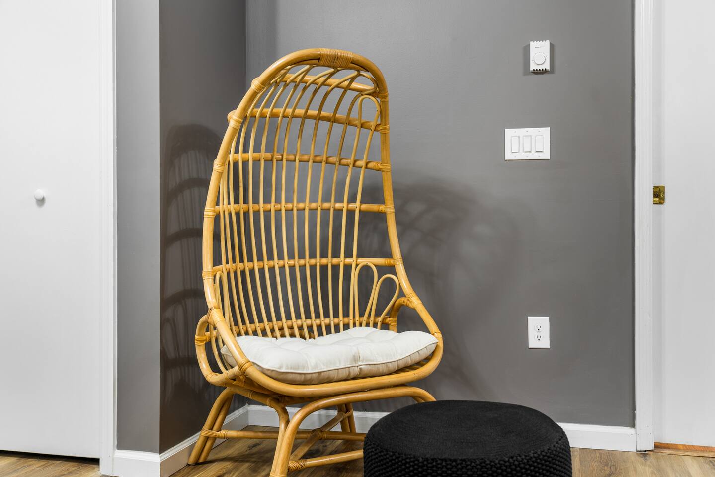 Nestled within the picturesque community of Emerald Lakes, our charming cabin offers an array of wonderful amenities provided by the Emerald Lakes Association. As our guest, you'll have exclusive access to outdoor and indoor pools, a basketball court, tennis court, three serene lakes with boat ramps, and a welcoming community center. Please note that a nominal fee allows you to enjoy these fantastic facilities, payable directly at the community center (cost per badge for amenities are $20 per day, $30 for 3 days, $50 for 7 days per person (2 years and older)). >> Work from Home We provide high speed internet throughout the house. Besides, we have an office desk and a 23 inch monitor that you can use to make it like your home office. >> Living Room Step into our thoughtfully designed living space, where the main living room beckons with its inviting open layout - perfect for both memorable gatherings with loved ones and cherished moments of togetherness. Our elegant dining table comfortably seats six, setting the stage for delightful shared meals and laughter-filled conversations. >> Kitchen The kitchen is a culinary haven, fully equipped to cater to your every need. From the modern fridge, microwave, and full stove/oven, to the convenient coffee maker and basic kitchen utensils and cookware, we have everything you require to whip up delicious meals and create lasting memories around the dining table. We also offer the luxury of 6-stage filtered water from the kitchen sink, ensuring your drinking and cooking needs are met with utmost care. >> Sunroom One of our most beloved spaces is the sunroom, an oasis of relaxation with two large love chairs. Here, you can savor tranquil moments while gazing out at the enchanting forest, where friendly deer occasionally pause to say hello. It's a true testament to the beauty of nature that surrounds us. >> Deck and Backyard Step out onto the deck, where a cozy hammock awaits, beckoning you to curl up with your favorite book and immerse yourself in the soothing sounds of the surrounding wilderness. And as the sun sets, unleash your inner adventurer and gather around the large firepit, relishing the magic of crackling flames under the starlit sky. For those seeking a more adventurous experience, we provide an extra hammock in the game room, perfect for setting up under the gentle sway of the trees. As you start each day at the Green Utopia, don't miss the chance to enjoy breakfast at our charming picnic table, relishing the refreshing morning breeze unless it's raining – then you can always cozy up indoors. >> Bedrooms When it's time to retreat and rest, our two bedrooms upstairs beckon with comfort and serenity. Each room features a plush queen bed and a private air conditioner, ensuring you have a blissful night's sleep. A small bathroom conveniently adjoins the bedrooms, offering ease and comfort. >> Master Bedroom For those seeking a touch of seclusion and additional amenities, our master bedroom downstairs awaits. With a private entrance to the backyard and a dedicated work space, this room is perfect for guests seeking both relaxation and productivity. During warmer months, the cooling fan keeps the room refreshingly pleasant. >> Master Bathroom The master bathroom is a true sanctuary, reminiscent of a spa-like haven. Picture yourself unwinding in the indulgent bathtub or enjoying a refreshing walk-in shower, all while marveling at the serene views of the backyard firepit. It's a space where you can truly pamper yourself and revel in pure relaxation. >> Game room In the game room, you'll find a delightful gathering spot for both children and adults alike. Enjoy bonding over board games at the large table with six chairs, or unwind on the comfortable bed-convertible sofa while watching your favorite shows on the 50" TV. For added convenience, the washer/dryer is thoughtfully placed in this space, making it easy to take care of your laundry needs.