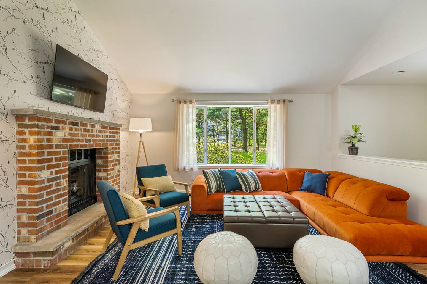 Escape to this beautifully styled 3BR/2BA home in Long Pond’s Emerald Lakes. Backyard features a private hot tub, hammock & fire pit. Inside, enjoy chic design with fireplaces & smart TVs. Access community amenities—seasonal outdoor pool, year-round indoor pool, lakes & more (passes required, fee). Just 10 min to Kalahari, 12 min to Camelback & Pocono Raceway, 20 min to Mount Airy Casino. Perfect Poconos retreat for families & friends!