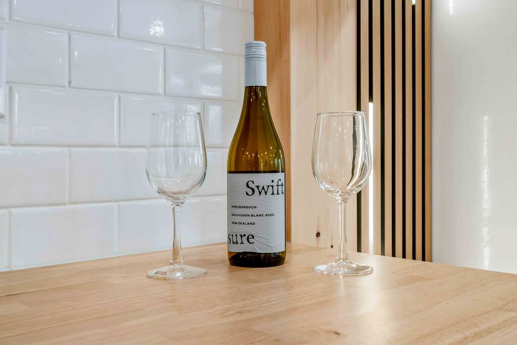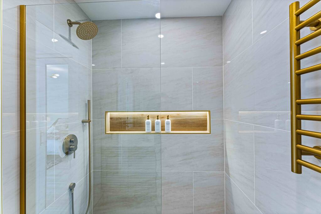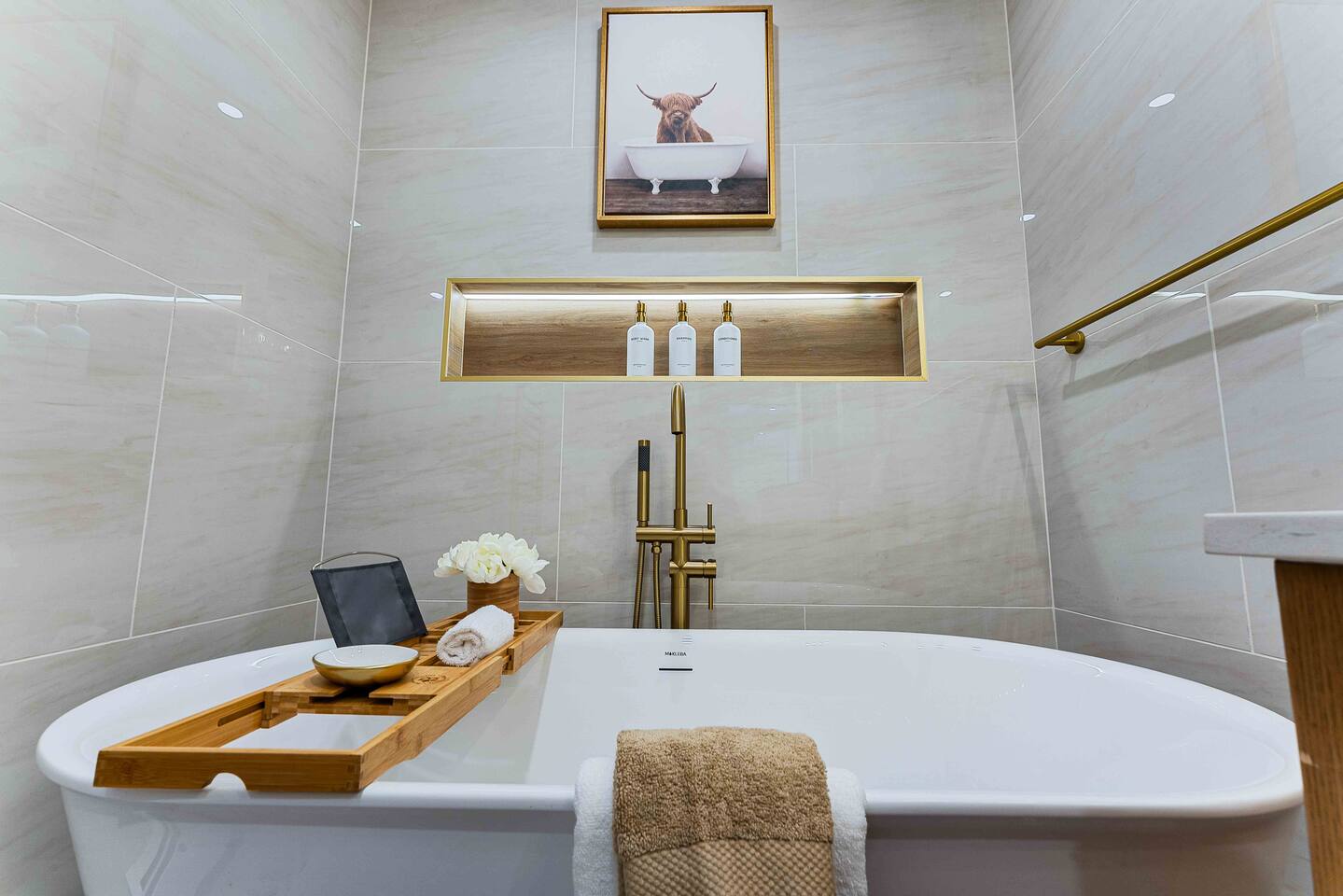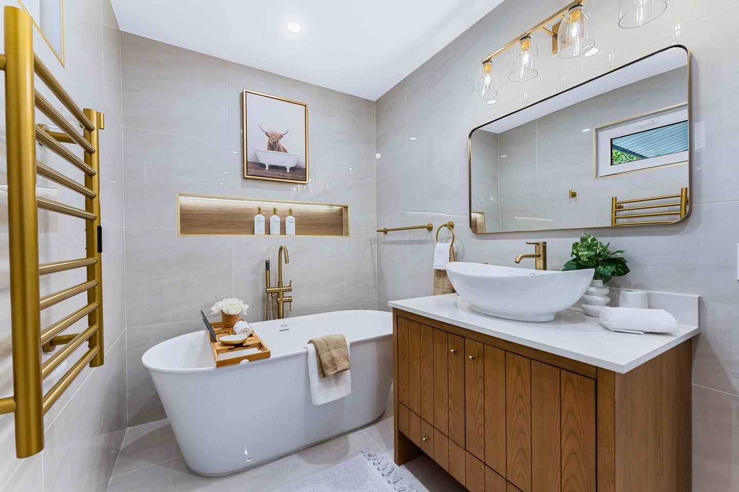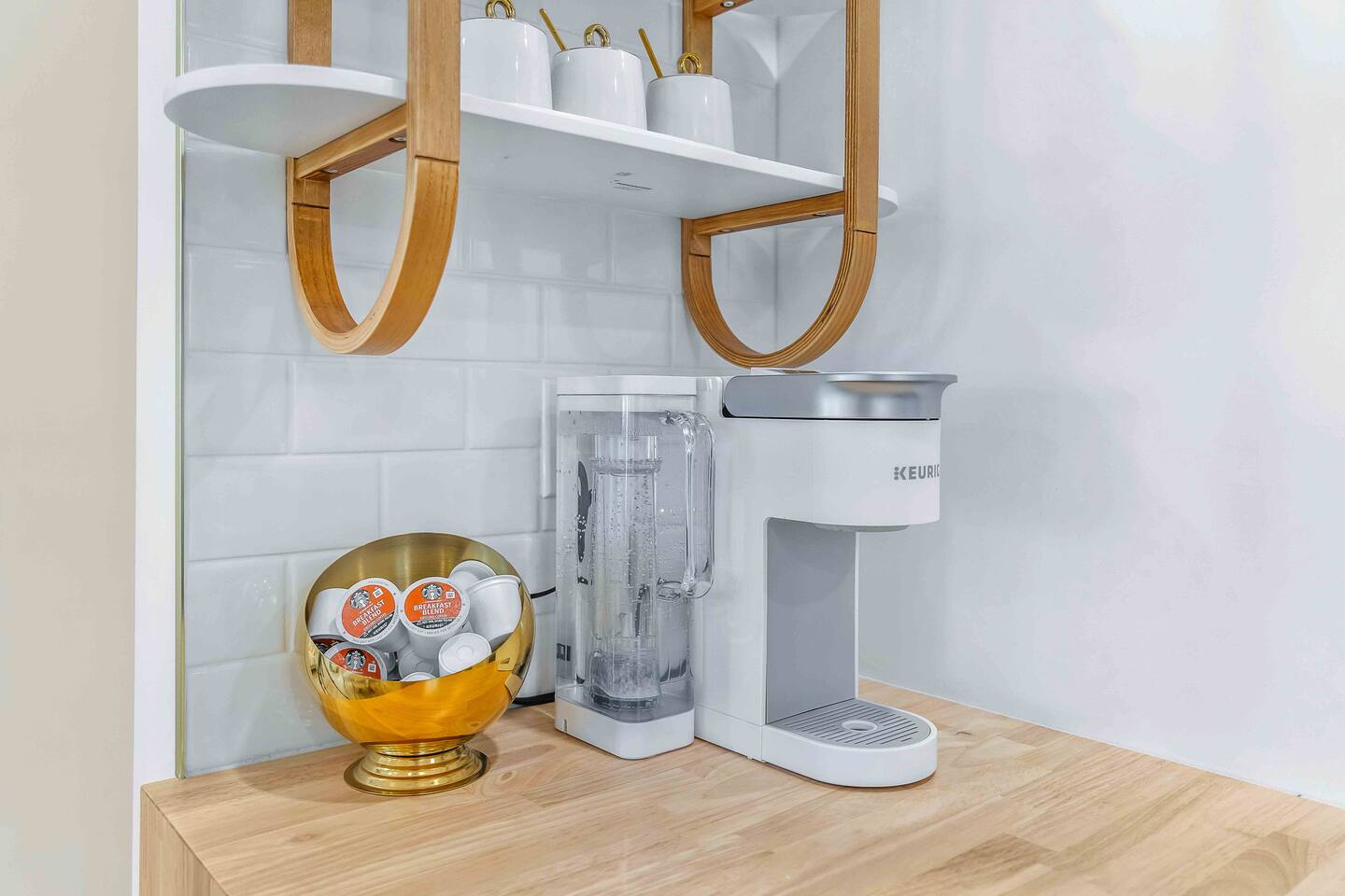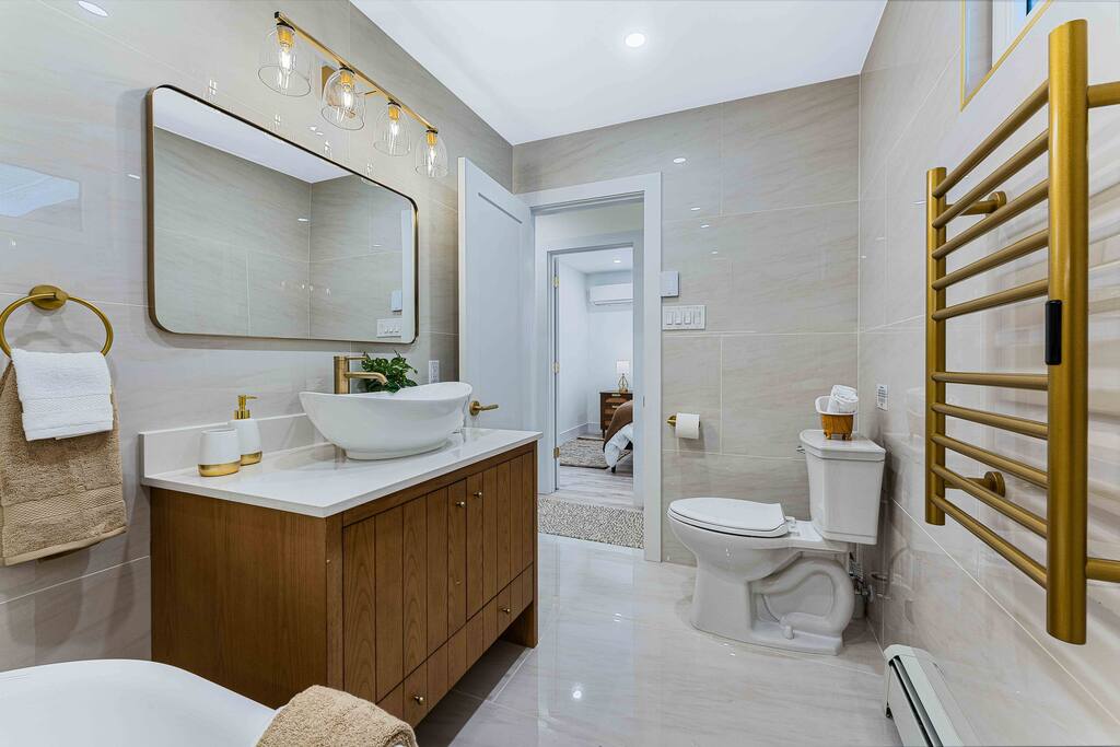 INSIDE: Enter through the main side entrance from the private driveway and step into a bright, elegant interior with a cozy, all-white modern design. To the right, discover the spacious primary bedroom featuring a TV, ample closet space, and a private en-suite bathroom with a shower. To the left, a hallway leads you to a full bathroom with a beautiful freestanding tub. Adjacent is the owner's locked closet. On the right side of the hall, you'll find two guest bedrooms—one with a full-size bed, the other with a queen-size bed, both with closet space. At the end of the hall, the space opens into a welcoming open-concept kitchen, dining, and living area. The fully equipped kitchen includes a washer and dryer, and the dining area seats six around a round table. The living room features a comfortable couch, smart TV, and cozy chairs facing a gas fireplace. Step through to the front porch with a small outdoor couch and coffee table, offering a serene partial lake view framed by trees. BACKYARD: The beautifully designed backyard is also accessible through the sliding door in the primary bedroom. Relax in style with outdoor furniture surrounding a pellet stove, a gas BBQ, and an outdoor TV. Unwind in the wood-burning hot tub or the private wood-burning sauna. Enjoy evenings by the firepit, surrounded by stylish benches and a charming swing set. An outdoor dining table completes this peaceful retreat. GARAGE/GAME ROOM: Step into the ultimate entertainment space. The garage-turned-game-room features a pool table, pellet stove, and movie theater setup. In the far corner, enjoy a bar area. The room also includes board games, little fridge a karaoke machine, dart board, and cornhole boards—perfect for fun-filled nights with friends or family.