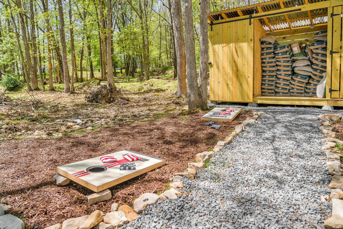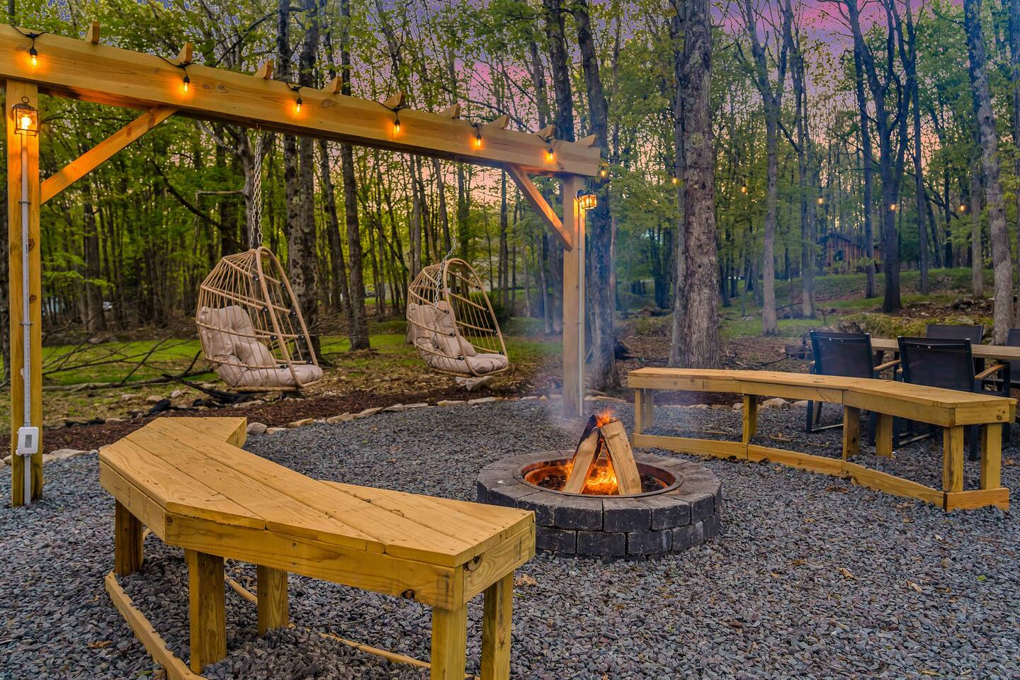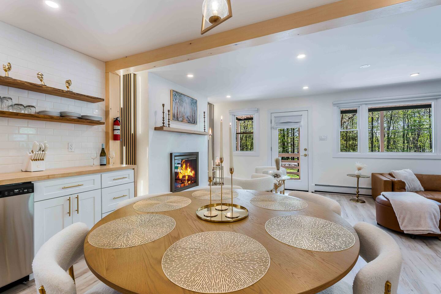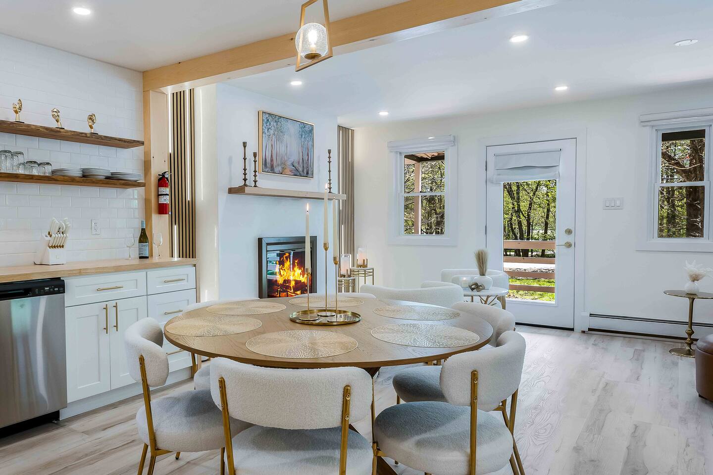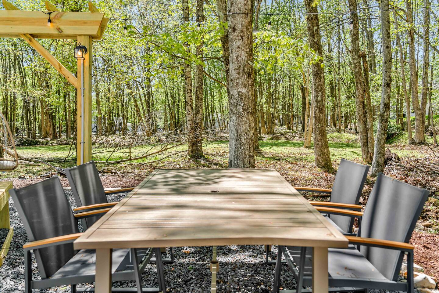 Cozy all-white modern design meets mountain charm at the White Cabin in the Poconos. Step into beautifully situated backyard with a wood-burning hot tub & sauna, firepit and outdoor pellet stove & Outdoor TV. Enjoy the Game Room with movie theater, pool table, pellet stove & Board Games & Karaoke Machine! Stylish interior with open concept kitchen-living room & gas fireplace. Enjoy coffee on the porch with a partial lake view. Located in community with 5 lakes, seasonal pools.